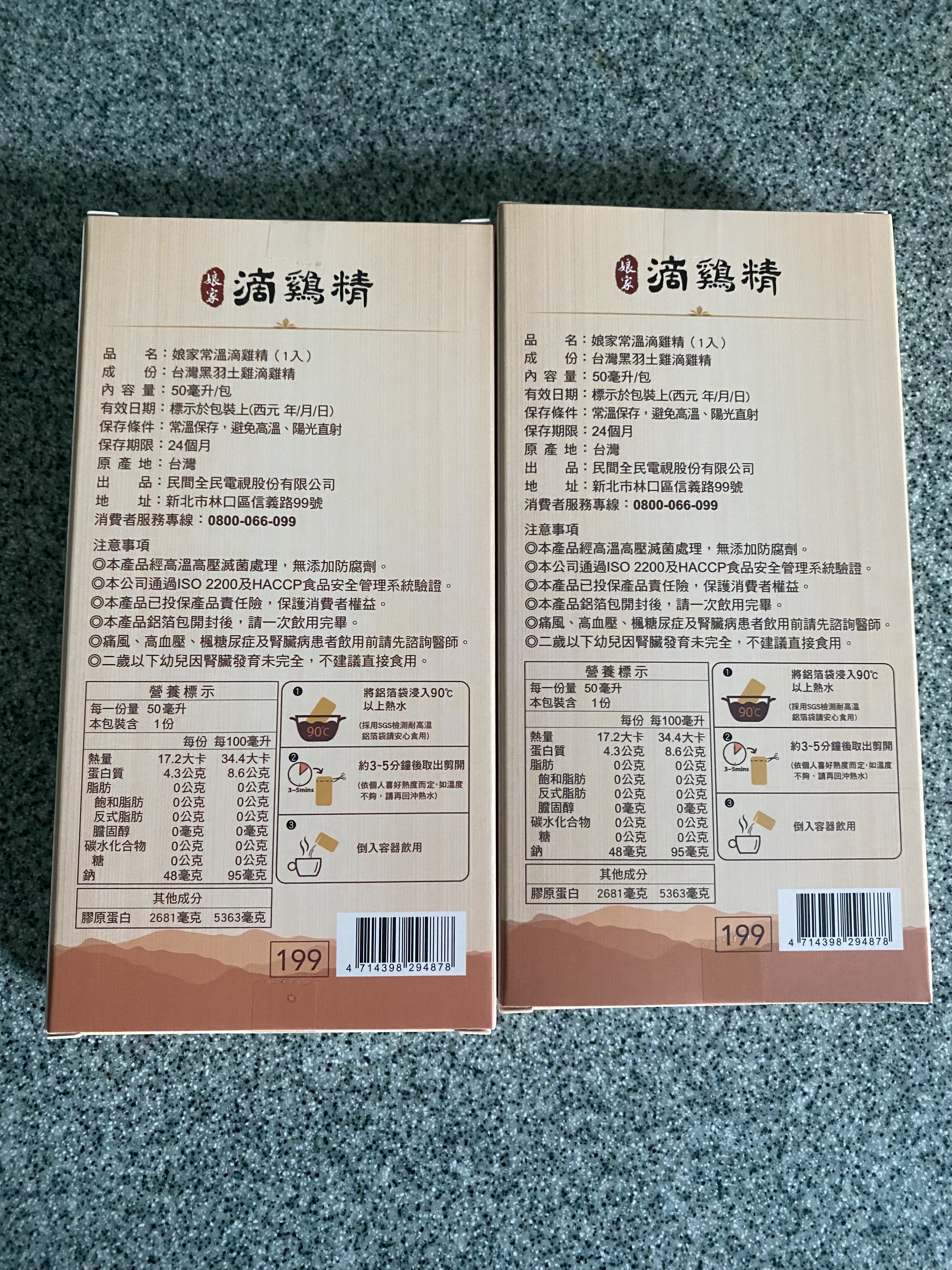 回列表 娘家常溫滴雞精 品質世界肯定 每一口都來自極鮮3小時滴煉 市價199元(免費申請) 所需等級 一般會員以上 所需學分 50 體驗份數 100 關注人數 1457 申請人數 358 申請截止 品牌業者:娘家 負責廠商 民間全民電視股份有限公司 廠商地址 新北市林口區信義路99號 產地 台灣 試用產品規格 2盒(一盒1入) 食品業者登錄字號 E-196975768-00000-9 投保產品責任險字號 0525字第22AML0002428號 心得分享 商品介紹 商品成分 使用方法 注意事項 體驗名單 9.2 娘家常溫滴雞精 香醇濃厚 9.2 好喝無腥味 9.2 滿滿膠原蛋白 8.9 元氣滋補 9.1 推薦送禮/自用保養 9.1 建議推薦 9.1 心得分享 96則 Jessica Su 鑽石達人 39歲 雲林縣 2023/08/18 對娘家常溫滴雞精留下評價 9 感謝食力食驗室這次提供寶貴的機會體驗"娘家常溫滴雞精"產品主打 品質世界肯定 每一口都來自極鮮3小時滴煉推薦"娘家常溫滴雞精"的理由1.娘家這款滴雞精有別於一般市售滴雞精需要冷凍保存,常溫滴雞精可以隨身攜帶,出外旅行帶著喝也很方便~2.直接喝味道滿濃厚,但沒有腥味希望改善的地方:1.定價一小包199,價格有點高。2.一小包用一個紙盒裝,有點過度包裝,希望能考慮減碳環保減少過度包裝感謝食力食驗室提供這次體驗機會,希望下次還能有機會體驗其他產品~~ 陳卡比 金食達人 37歲 臺南市 2023/08/18 對娘家常溫滴雞精留下評價 8 最近因為懷孕的關係開始喝起了滴雞精感謝這次能有機會體驗到不同品牌的滴雞精娘家這款滴雞精很方便的是可以常溫保存,攜帶很方便口味上是純雞精,沒有添加中藥材, 是很純粹的味道喝起來比我之前喝的品牌還要濃郁,雞味比較重不過如果是怕味道太重的人 可能會不太習慣但還是在可接受的範圍內包裝簡潔,有單入的紙盒包裝要送禮時也蠻方便的 張芷瑋 金食達人 39歲 新北市 2023/08/18 對娘家常溫滴雞精留下評價 9 這是我第一次嘗試喝滴雞精,以前不敢喝還以為會有雞腥味,不過這次體驗,讓我對滴雞精印象超好的!平常放常溫就好,不需要冷藏,想喝的時候放進90度的熱水裡隔水加熱,就能吃到香噴噴的滴雞精了,撕開鋁箔袋的瞬間,濃郁的香味撲鼻而來,滴雞精舀起來顏色金黃金黃,看起來就很美味,娘家滴雞精是用黑羽土雞,它的營養價值相當高的因為不加任何一滴水,喝下去味道相當濃郁,很溫暖順口,每一口都能感受到它的純粹,對我這種超忙碌的人來說,真的是很方便補充營養的方式! Lily Liao 鑽石達人 33歲 新北市 2023/08/20 對娘家常溫滴雞精留下評價 7 感謝食力給予機會試吃娘家常溫滴雞精。此款滴雞精標榜極鮮3小時滴煉,含有100%全雞膠原精華,先前我只喝過冷凍保存的滴雞精,很好奇常溫的滴雞精是什麼味道。食用方法是浸入90℃以上的水3~5分鐘後取出剪開倒入容器,我得老實說90℃讓我滿困擾的,我知道水滾是100℃但我不知道該怎麼在沒有溫度計下的方式測量90℃,所以我就是等水滾,關火後就把滴雞精放進去計時5分鐘。剪開倒入容器後先聞到一個非常明顯的雞精味,這味道讓我有點害怕,以前喝瓶裝雞精都得捏著鼻子皺著臉才有辦法喝下去,一聞到就跟我過去的經驗做連結,先有了比較負面的印象,不過實際上喝下肚後,並沒有讓我害怕的雞精味,感覺上比較像雞湯,然而香氣沒有很足,就是一款還不錯的常溫滴雞精。雖然沒有比我之前試吃的冷凍滴雞精好喝,但常溫保存方便許多,這一點就略勝一籌,價格上也更實惠,我覺得是個很好的選擇。 AK Stein 鑽石達人 43歲 花蓮縣 2023/08/21 對娘家常溫滴雞精留下評價 9 包裝收納得很好,每包滴雞精都密封得很紮實平整,娘家滴雞精是目前喝完後覺得喝過的滴雞精中接受度最高的。娘家滴精雞精的份量介於中等,成分夠,適量的補充。製造日期直接壓印在每一包包裝上,而不是只有統一印於外盒,這樣每一包都有清楚效時間,設計很貼心。娘家滴雞精採用全程封存全雞的原汁精華,利用獨特的蒸氣不回流技術,每一隻三公斤的黑羽土雞只能滴出大概2包左右的娘家滴雞精,油脂分離零脂肪,滴滴甘醇不油膩。 irene yang 金食達人 31歲 新北市 2023/08/22 對娘家常溫滴雞精留下評價 10 很榮幸抽到試喝"娘家常溫滴雞精",真的讓我超驚艷的!首先,它的味道鮮美,帶有濃濃的雞香卻不人工也沒加任何一滴水,喝了一包還覺得不後夠。不同以往古早口味不大眾的雞精,喝起來超順口,一點都沒有腥味或是難嚥的感覺,就像喝了一碗超濃縮卻營養十足的雞湯。最方便的是,它簡單隔水加熱,隨時隨地都能喝到暖胃的雞湯,真的太方便了!對於忙碌的上班族,終於找到可以隨時補充能量的好拍擋。 陳昭安 鑽石達人 33歲 雲林縣 2023/08/23 對娘家常溫滴雞精留下評價 10 很開心能參與這次食驗室-「娘家常溫滴雞精」的試吃體驗,*外包裝:有明顯產品名稱、熱量、商品成分、保存期限以及外盒有說明食用方式。*商品成分內容物為: 台灣黑羽土雞滴雞精。*食用方式【隔水加熱】1. 將鋁箔包直接浸入90度c以上熱水。2. 約3-5分鐘後取出。3. 剪開鋁箔包,倒入容器內飲用。*試吃心得: 1.包裝隔水加熱預熱快。2.食用方式有圖解清楚明瞭。3.味道不腥不膩。4.隨身包好攜帶。5.很推薦大家食用。 涂秀英 鑽石達人 36歲 臺北市 2023/08/24 對娘家常溫滴雞精留下評價 10 市面上琳瑯滿目的雞精品牌,今天我要慎重推薦娘家100%全雞膠原精華滴雞精.拆開來就可以聞到淡淡的香氣,一般來說雞湯冷了會浮一