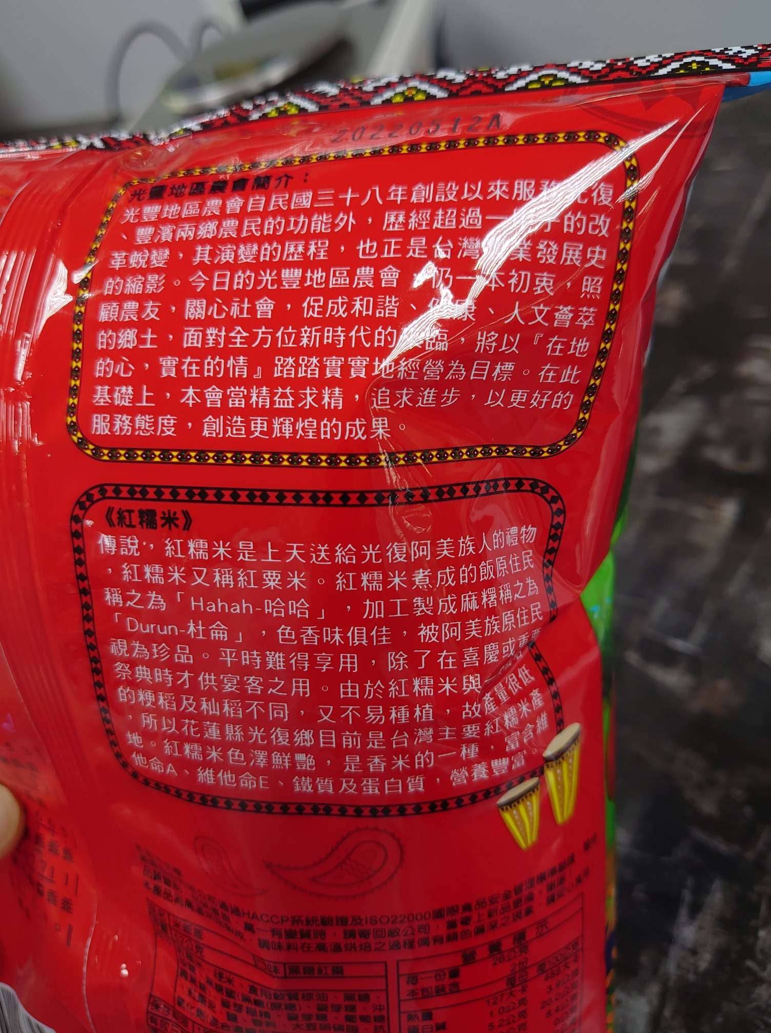 傳說,紅糯米是上天送給光復阿美族人的禮物,與一般栽培的梗稻及秈稻不同,又不易種植,故產量很低,所以花蓮縣光復鄉目前是台灣主要紅糯米產地。紅糯米色澤鮮艷,是香米的一種。