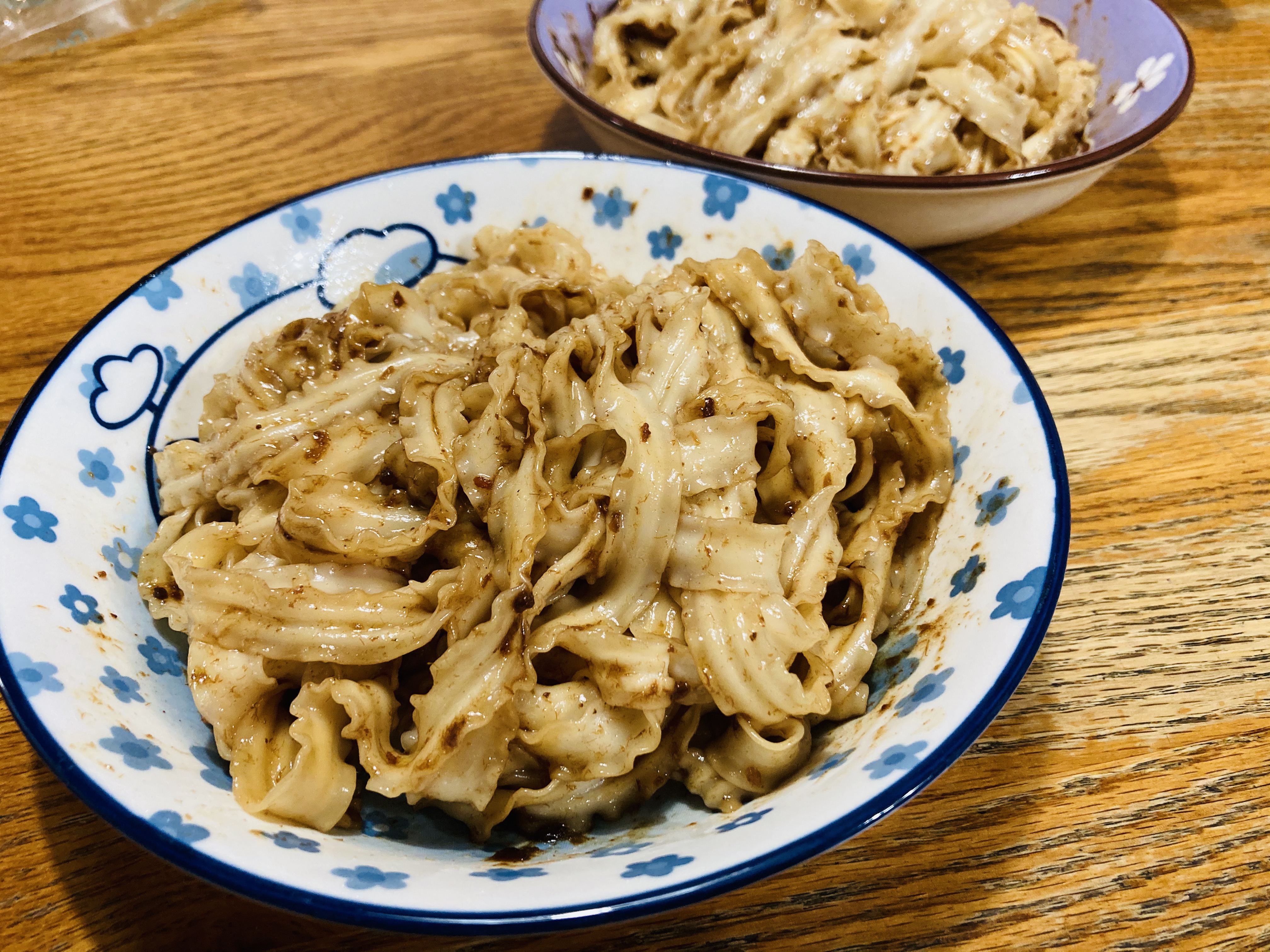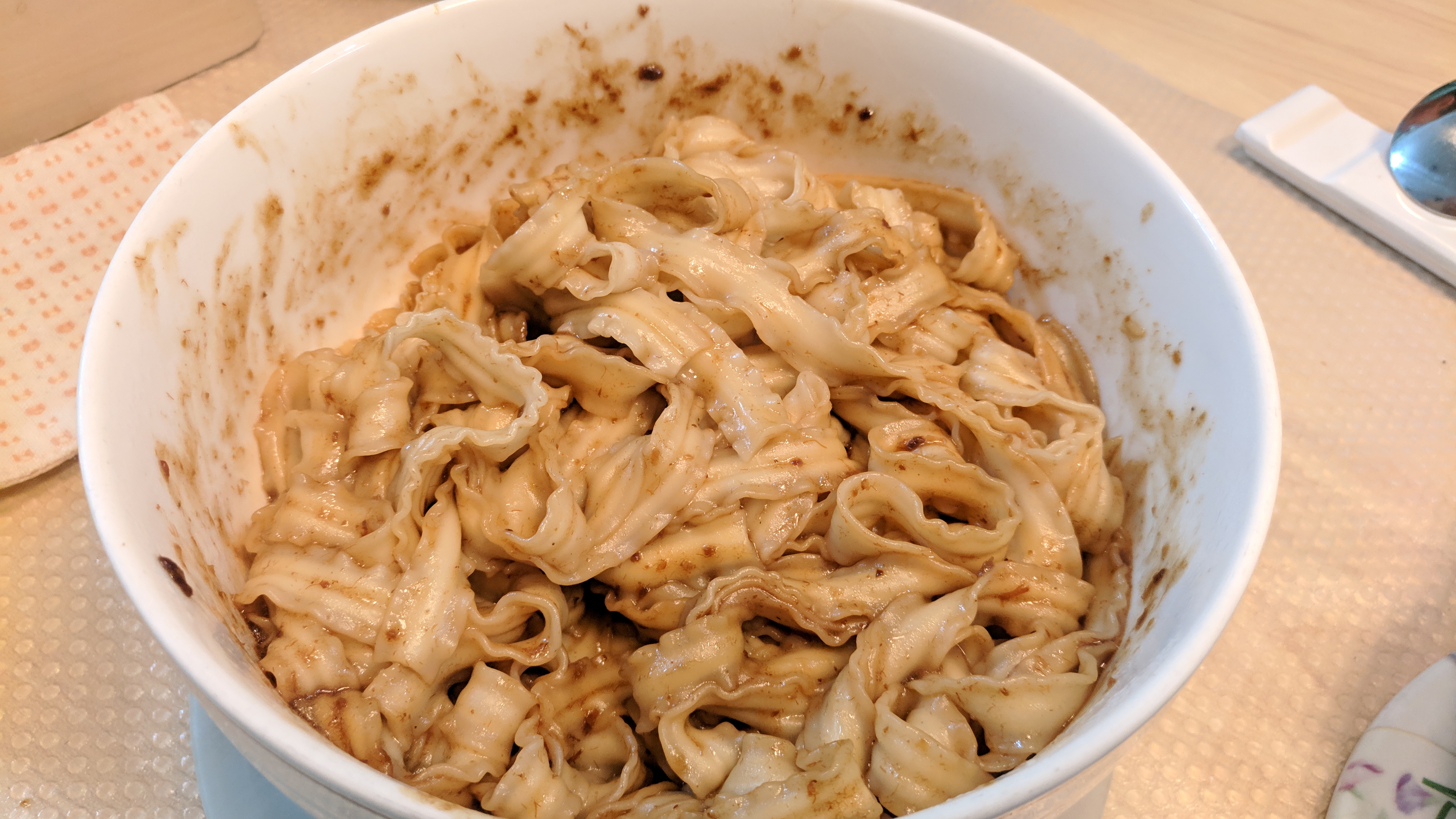 為了做出最好吃的乾拌麵,大叔們反覆的試吃過的麵條應該超過100種,最後『台南手工日曬麵』在各個評分項目中勝出。