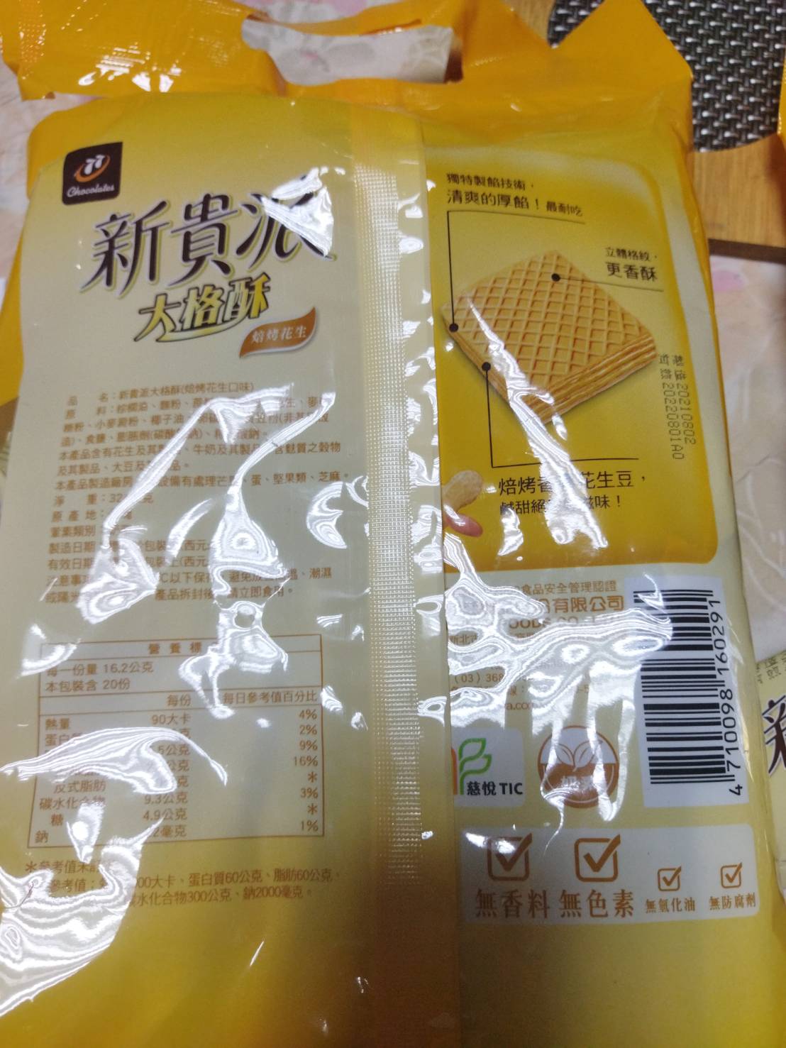 回列表 新貴派 大格酥 烘烤花生口味 酥脆花生研磨入餡 鹹中帶甜的絕妙滋味 市價198元 所需等級 一般會員以上 所需學分 60 體驗份數 15 關注人數 1557 申請人數 316 申請截止 品牌業者:77 負責廠商 宏亞食品股份有限公司 廠商地址 新北市新店區寶興路45巷8弄3號5樓 產地 台灣 試用產品規格 324g/包,共2包。 食品業者登錄字號 0519字第20AML0000116號 投保產品責任險字號 新光產物保險130810AKP0000085 心得分享 商品介紹 商品成分 使用方法 注意事項 體驗名單 8.8 新貴派 大格酥 烘烤花生口味 包裝美學 8.2 口感酥脆 9.1 花生香氣 8.6 鹹甜平衡 8.5 建議推薦 8.9 心得分享 14則 Judy 金食達人 68歲 臺北市 2021/11/27 對新貴派 大格酥 烘烤花生口味留下評價 8 這次試吃的品項是新貴派大格酥 烘烤花生口味 主打酥脆鹹中帶甜!✱包裝大小數量:一大袋共20小包入,獨立包裝,一小包有兩片,一片大小為手掌大(約四個五元硬幣大小)。✱特色:為蛋奶素,無添加香料、色素、氫化油,及防腐劑,成分比起一般市售多數零食點心更為單純,由於減少添加也因此通過慈悅認證,減少人工化學添加物、讓配方更簡單,而且仔細看成份表發現,連黃豆粉也有標示是使用非基因改造的,吃起來也比較安心無負擔。✱試吃心得:這次吃的新貴派大格酥口感上我覺得酥脆程度和一般威化酥相較,確實沒那麼酥脆,應該是氫化油的差異,通常餅乾會添加氫化酥油來增加酥脆感,吃多容易引發身體的心血管疾病。甜度的話對平日不嗜甜的人來說滿分10分約7分,算是偏甜,所以搭配了無糖咖啡比較恰到好處,鹹味倒是沒那麼凸顯。花生的香氣在入口後咀嚼時會充滿鼻腔,算是蠻驚豔的,喜歡花生的人應該會驚喜!唯一小可惜的是沒能吃到花生的顆粒口感,不然餅乾的層次應該會更加豐富,以上心得分享。整體而言有獨立包裝攜帶方便,加上少添加成分單純,會沒那麼罪惡,適合作為家庭平日零嘴。 鄭惠文 金食達人 33歲 臺中市 2021/11/24 對新貴派 大格酥 烘烤花生口味留下評價 8 一口一個大格酥吃起來很滿足!而且甜而不膩,就是從小吃到大的新貴派!但是覺得花生味沒有很明顯,跟期待中有小小的落差,口味偏甜(但我個人很喜歡這個甜度),不曉得對甜度介意的人會不會覺得太甜很開心入選試吃體驗,而且一次就給兩大包,覺得很驚喜^^ 張素真 金食達人 54歲 臺中市 2021/11/24 對新貴派 大格酥 烘烤花生口味留下評價 9 包裝相當符合花生的感覺,令人一看到包裝便會想到花生口味,吃起來想到酥脆,小包裝也非常棒,一小包裡面有兩小塊,大小雖然不是一口大小,但吃兩口更讓人有滿足感,入口後,香氣濃厚的花生在嘴中綻放,若是使用花生顆粒的話,會使餅乾更具口感,顧客購買率也會更高。 洪暐弦 金食達人 34歲 臺南市 2021/11/25 對新貴派 大格酥 烘烤花生口味留下評價 9 今天收到了新貴派 大格酥 烘烤花生口味 馬上打開來試吃那酥脆花生研磨入餡 鹹中帶甜的絕妙滋味,伴隨著現煎威化餅的焦香味,鹹鹹甜甜真的太美味了餅乾大小也是非常好入口適合追劇看電視時吃。小朋友也是非常喜歡 花生口味鹹鹹甜甜 孩子吃的非常滿足呢! 李承駿 金食達人 38歲 新北市 2021/11/25 對新貴派 大格酥 烘烤花生口味留下評價 9 很開心收到新貴派大格酥的食用體驗,迫不及待打開包裹,映入眼簾的是兩大包澎派的包裝,包裝上寫得大大三個字:「新貴派」,是大家從小吃到大的知名派對點心,即使到了現在,到賣場也常購買,因為分量充足、好吃又平價。這次試吃的是大格酥,在外觀包裝上很好區分,示意的圖片文字很搶眼,感覺大格酥是沒穿巧克力外套的新貴派。而在包裝下方見到「慈悅TIC」,除了感覺到食品對身體較無負擔之外,也感受到宏亞公司的用心和嚴謹,知道現今消費會追求健康,即使只是一塊點心餅乾,也會細看包裝上寫的成分。打開外包裝,裡頭有20包大格酥,不用一口氣吃完,可以留下來慢慢享用,冬天到了,可以隨時吃甜甜,補充能量。撕開大格酥長方形包裝,裡頭有兩塊大格酥,聞得到淡淡的烤花生香氣,餅乾上立體菱格紋路很漂亮,方方正正拿在手上,滿足視覺和嗅覺的追求。咬下第一口,聽得到餅乾酥脆的聲音,餅乾本體類似是威化餅,所以層層堆疊的餅乾碰到牙齒,隨即分離,是酥酥香香的口感。舌頭品嘗到大格酥的同時,餡料花生口味很濃醇,有點像花生醬的絲滑,可能是因為有經過焙烤的處理,餅乾味道稍甜,但後味有鹹香出現,口味帶出層次感,不至於甜膩。整體而言,大格酥相較於新貴派,有降低甜度,但餅乾餡料的口味,依然維持巧克力公司的水準,聞得到獨特烤花生風味,也吃得出來有絲滑感但不會單調甜膩,若再配上無糖茶品會更唰嘴,是值得推薦的派對點心! sunshihju 金食達人 29歲 桃園市 2021/11/26 對新貴派 大格酥 烘烤花生口味留下評價 7 一袋有20包,一包有2個照片中方型的餅乾。花生香氣是有的,大口咀嚼的話,比較能感受到那個濃郁,但餅乾的部份吃起來還是更搶戲一些。如果期待內餡是很強烈花生醬感的話,可能會稍微失望,內餡除了花生味,尾韻會有一個像是吃比較平價蛋糕鮮奶油的味道浮出,容易比較快覺得膩口,少了會讓人想要一包接著一包吃的唰嘴感。如果不喜歡新貴派外面有層巧克力的人可以嘗試,但如果喜歡香濃花生醬口味的新貴派的話對這個會有點失望。一包平均約5元,如果很想吃花生產品,但臨時買不到其他更濃花生產品的