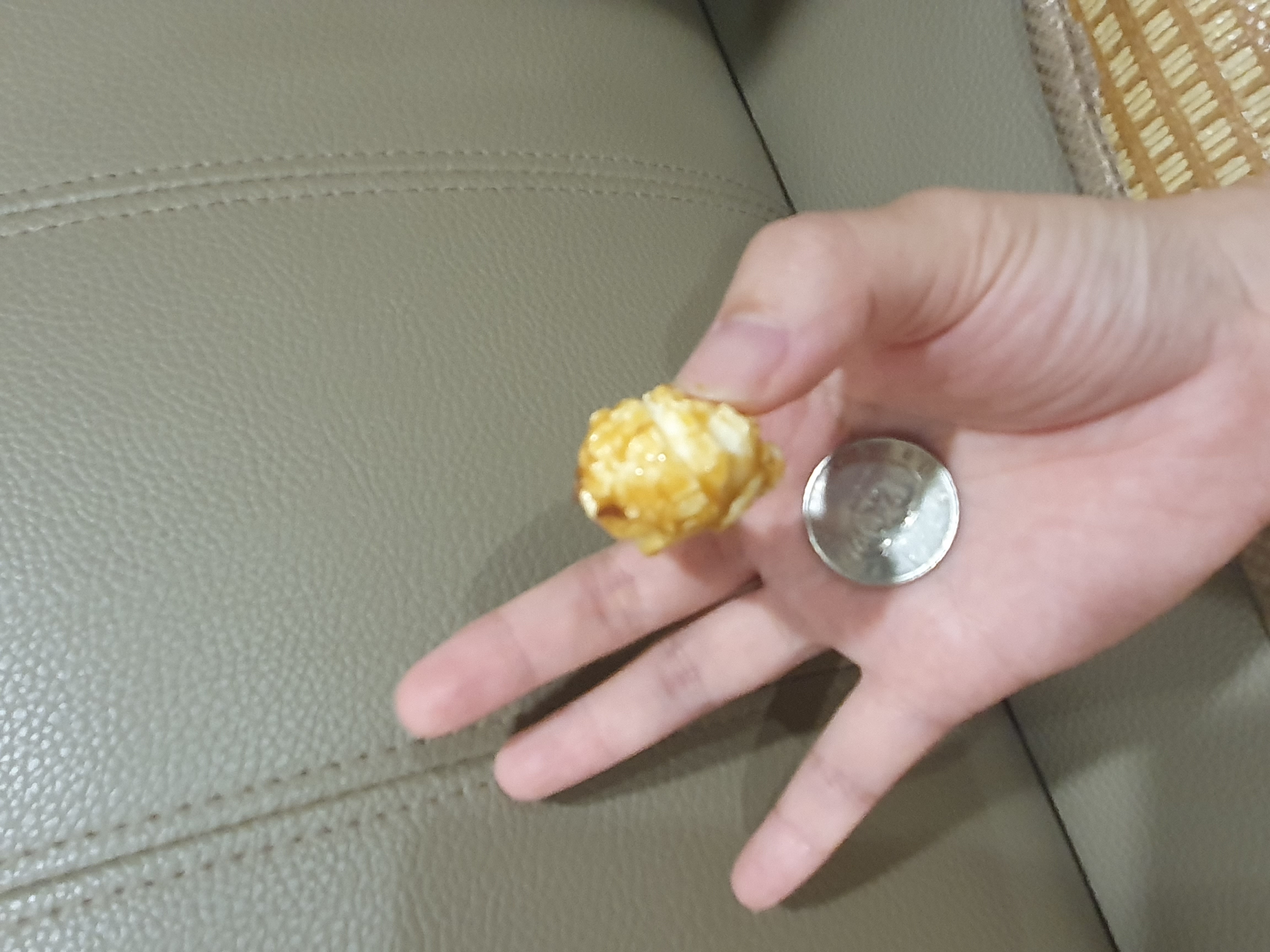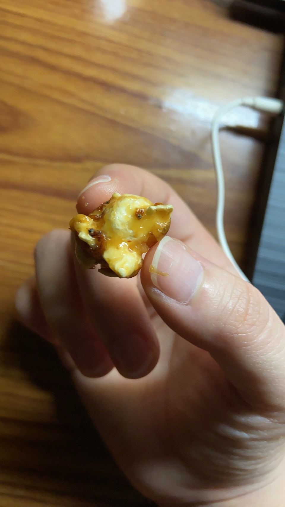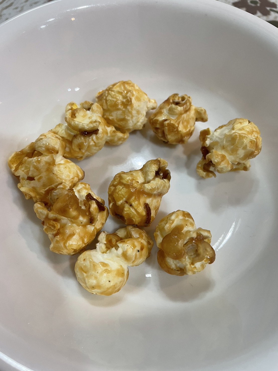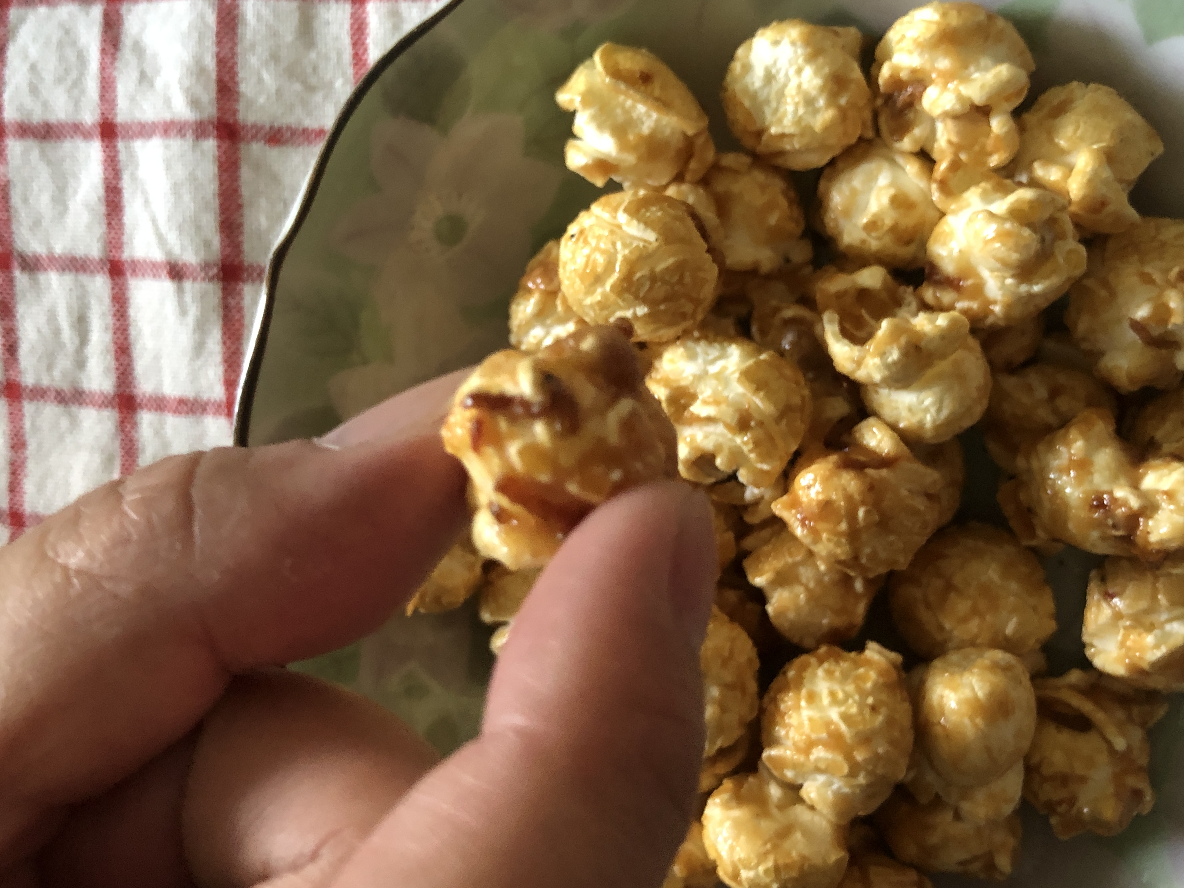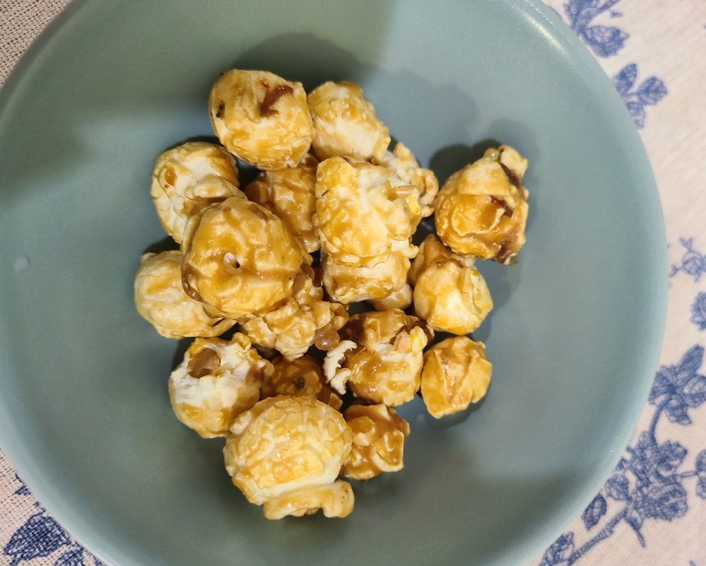 爆糖(砂糖、鹽、卵磷脂)、玉米粒(非基因改造)、麥芽糖(樹薯澱粉、水)、水、椰子油{(椰子油、抗氧化劑(混合濃縮生育醇、L-抗壞血酸棕櫚酸酯))、魩仔魚粉(魩仔魚、醬油、大豆油、蒜頭、辣椒)、無鹽奶油(乳脂、水、非乳脂固體)、雞粉(麥芽糊精、L-麩酸鈉、糖、玉米澱粉、雞肉粉(含迷迭香萃取物)、棕櫚油[含抗氧化劑(第三丁基氫醌)]、調味劑(5’-次黃嘌呤核苷磷酸二鈉、5’-鳥嘌呤核苷磷酸二鈉)、胡椒)、岩鹽