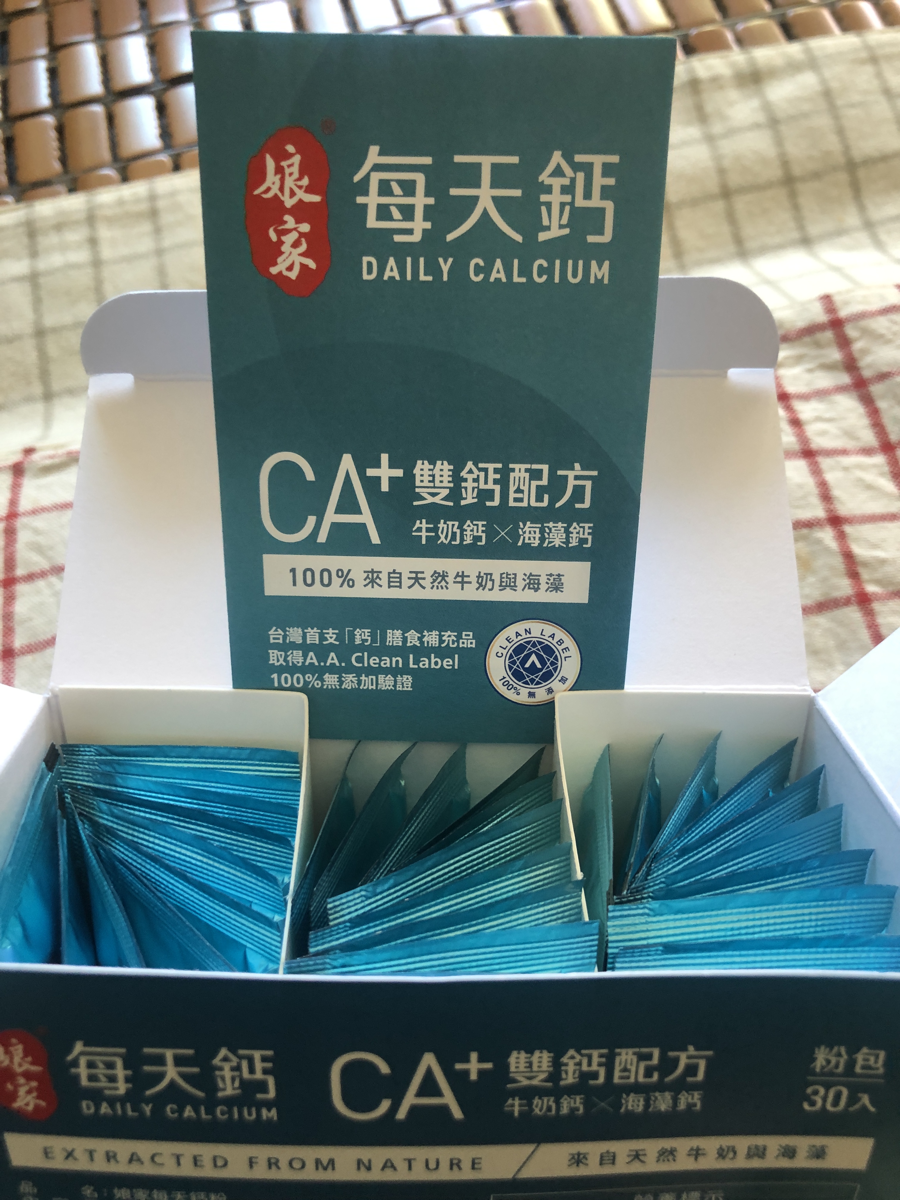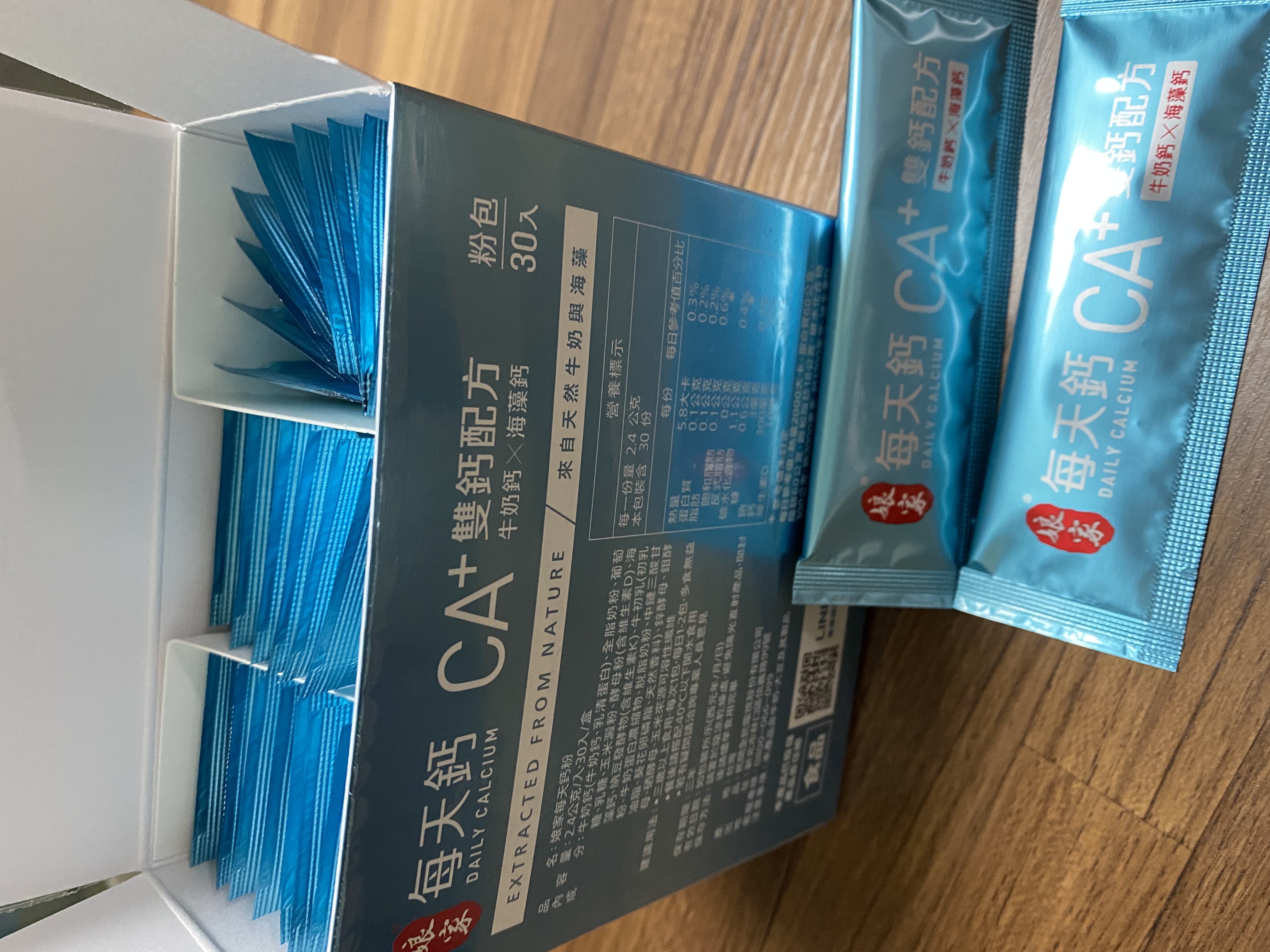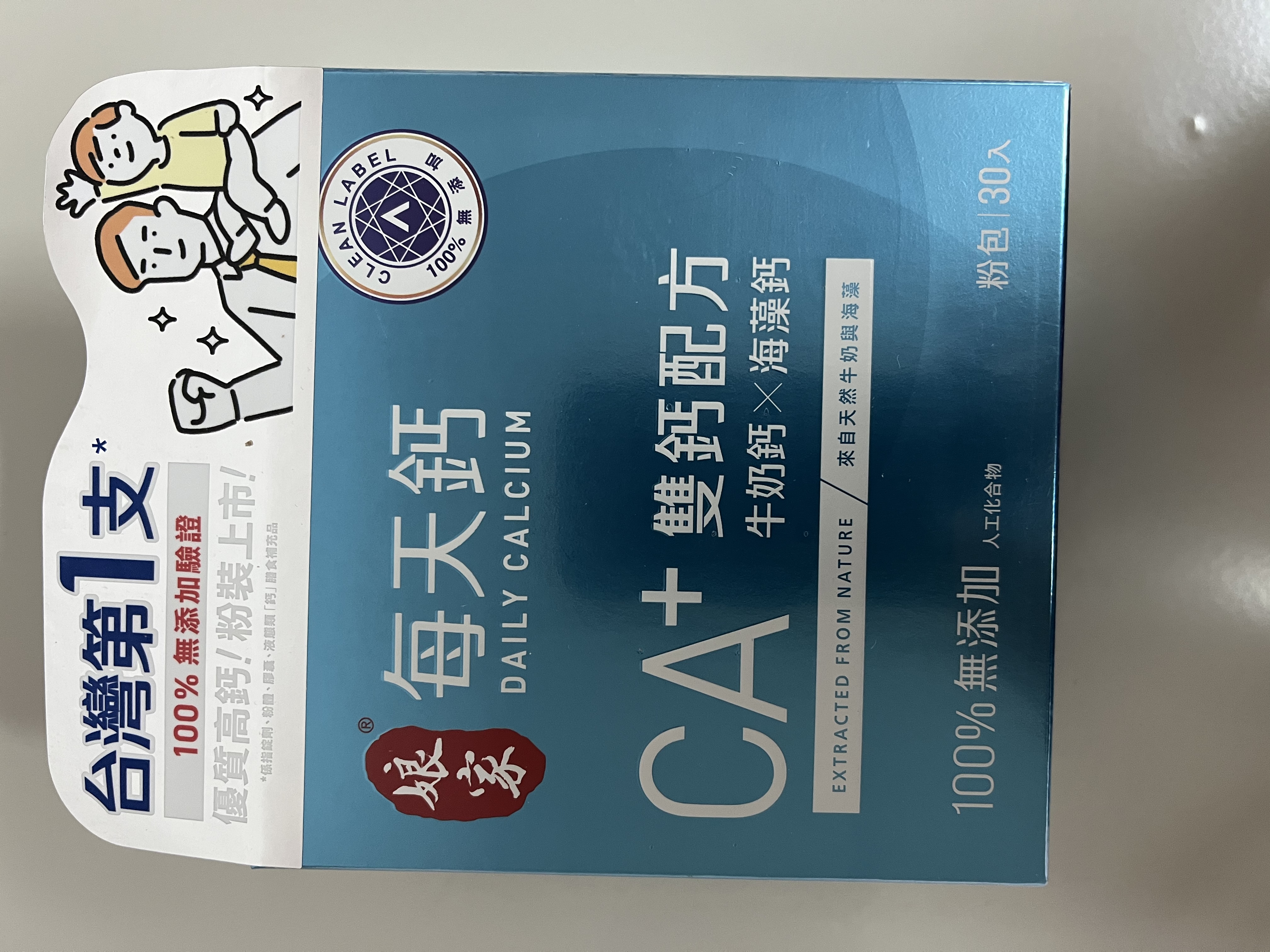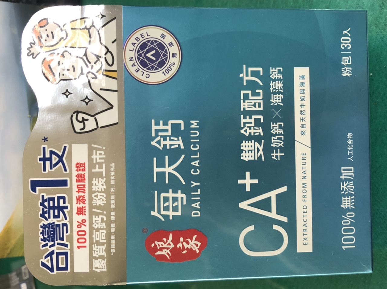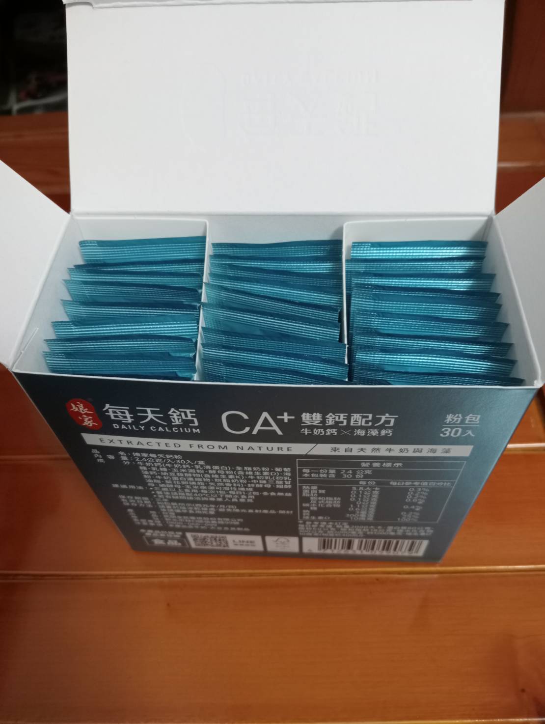 牛奶鈣(牛奶鈣、乳清蛋白)、全脂奶粉、葡萄糖、乳糖、玉米澱粉、酵母粉(含維生素D)、海藻鈣、納豆發酵物(含維生素K)、牛初乳(初乳粉、牛奶蛋白濃縮物、脫脂奶粉、中鏈三酸甘油脂、葵花卵磷脂、天然香料)、鋅酵母、鉬酵母、硒酵母、玉米來源可溶性纖維。