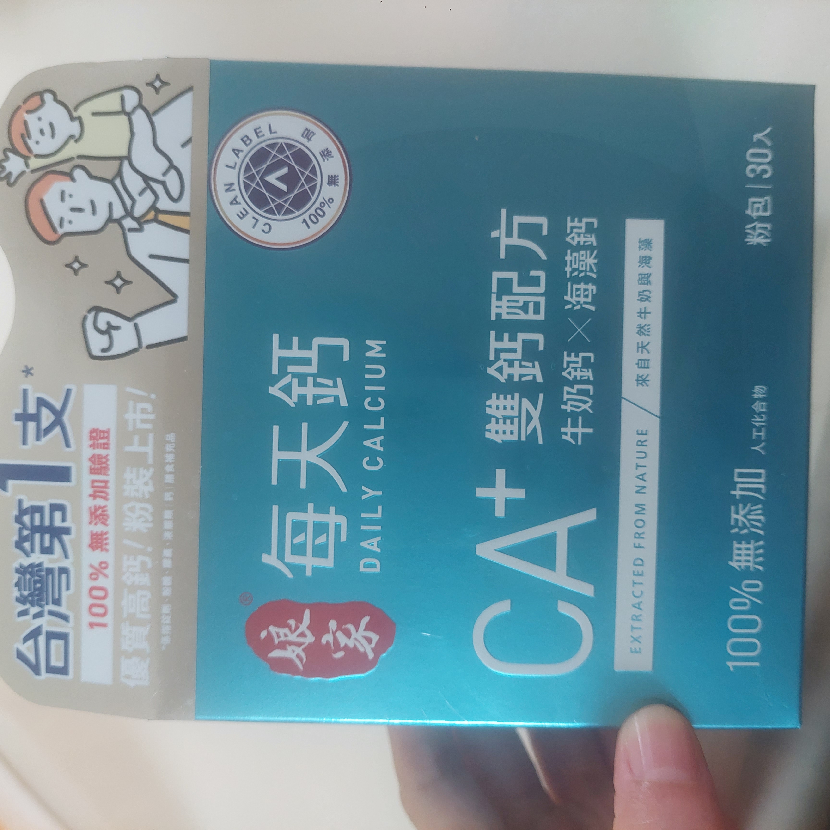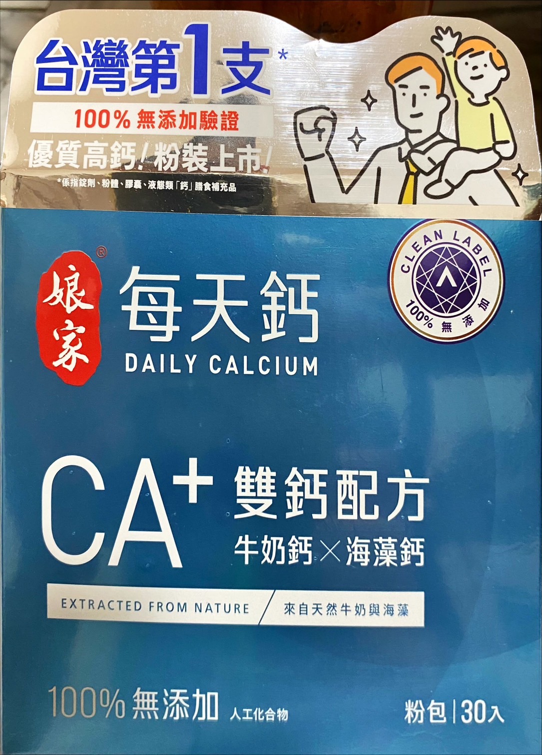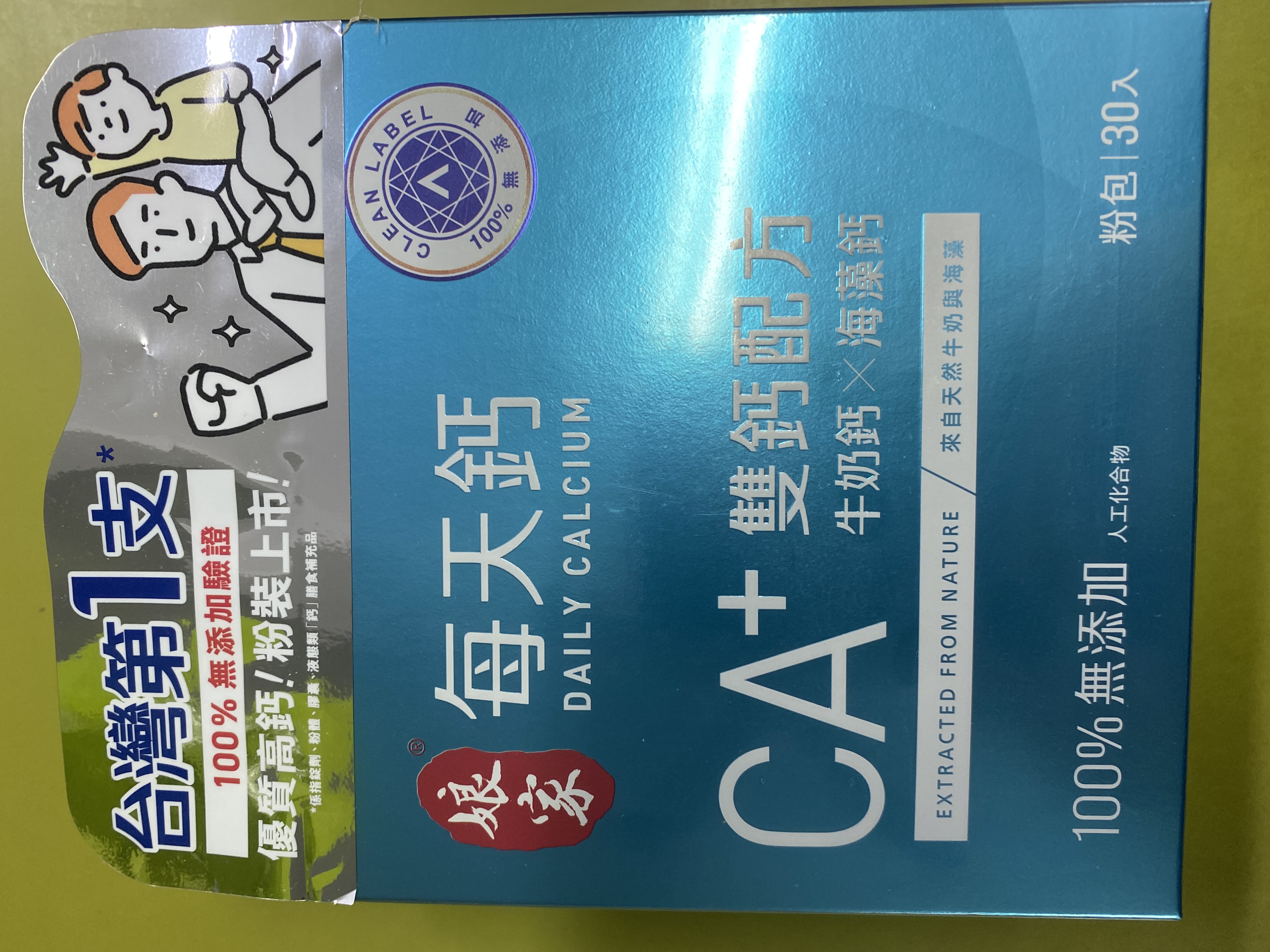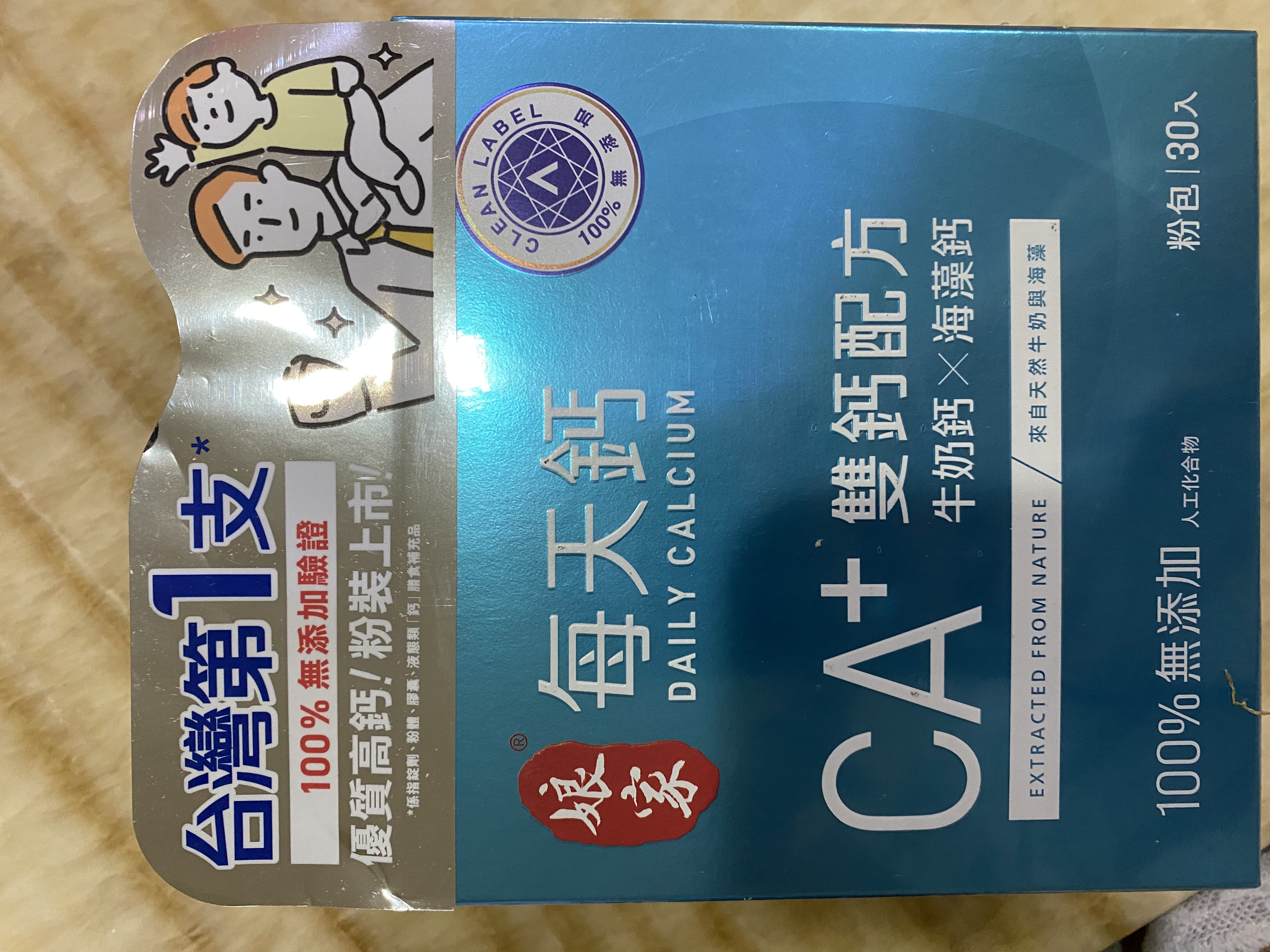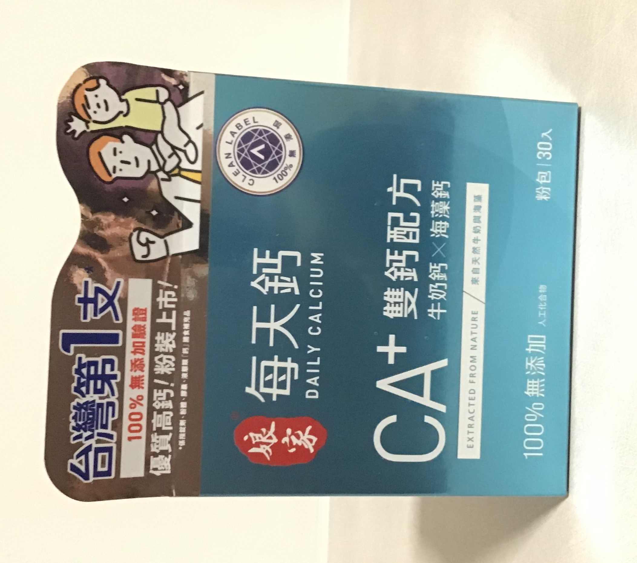牛奶鈣(牛奶鈣、乳清蛋白)、全脂奶粉、葡萄糖、乳糖、玉米澱粉、酵母粉(含維生素D)、海藻鈣、納豆發酵物(含維生素K)、牛初乳(初乳粉、牛奶蛋白濃縮物、脫脂奶粉、中鏈三酸甘油脂、葵花卵磷脂、天然香料)、鋅酵母、鉬酵母、硒酵母、玉米來源可溶性纖維。