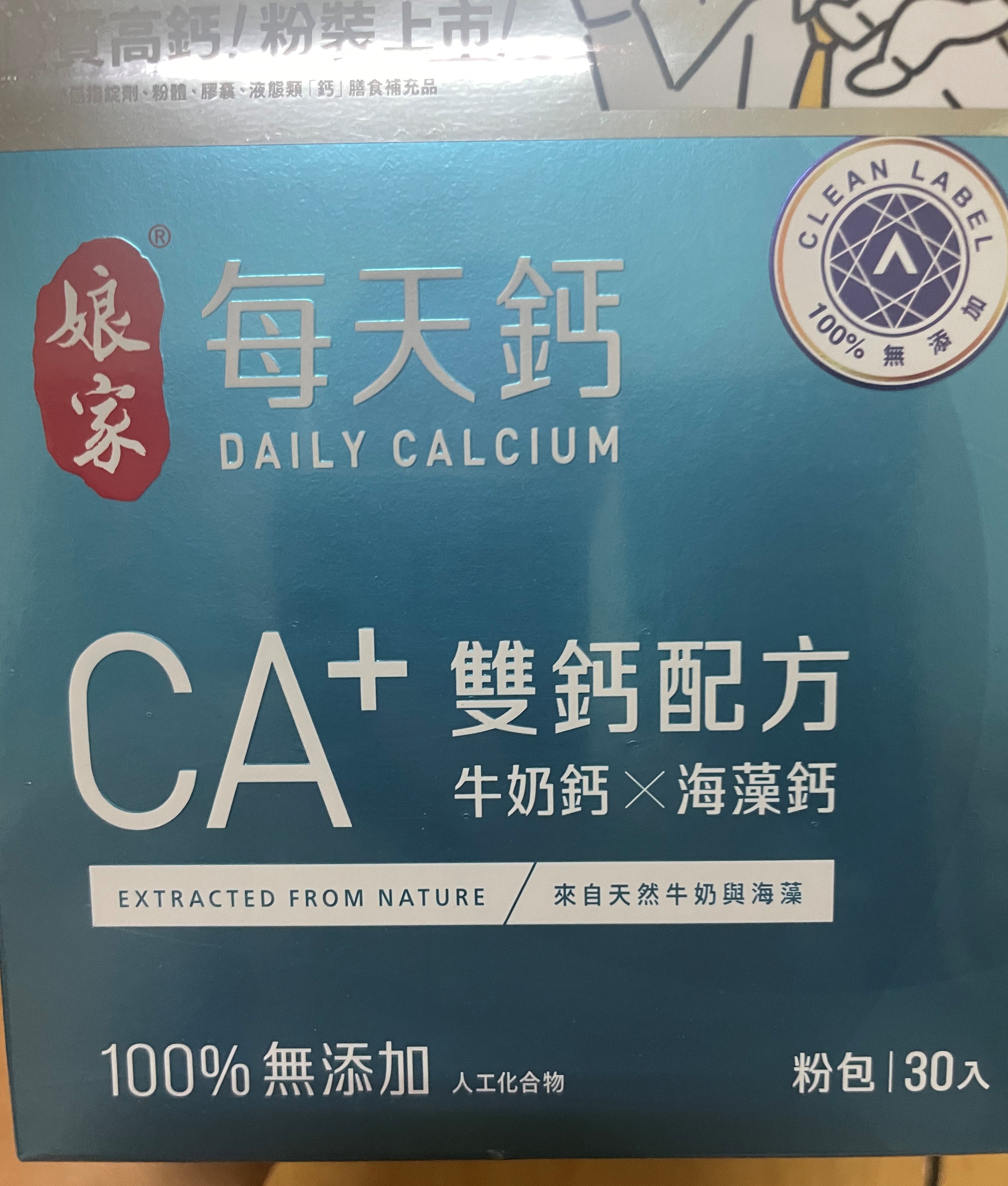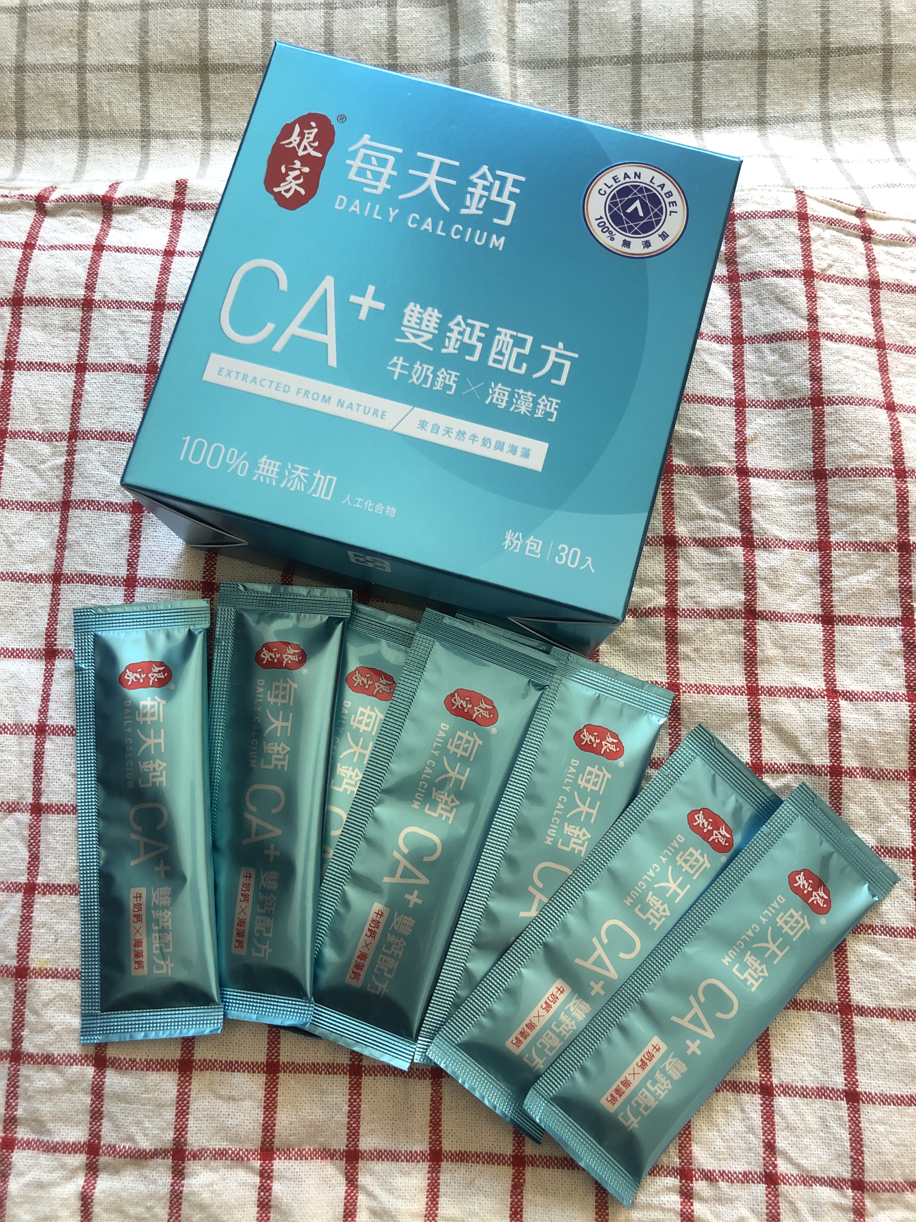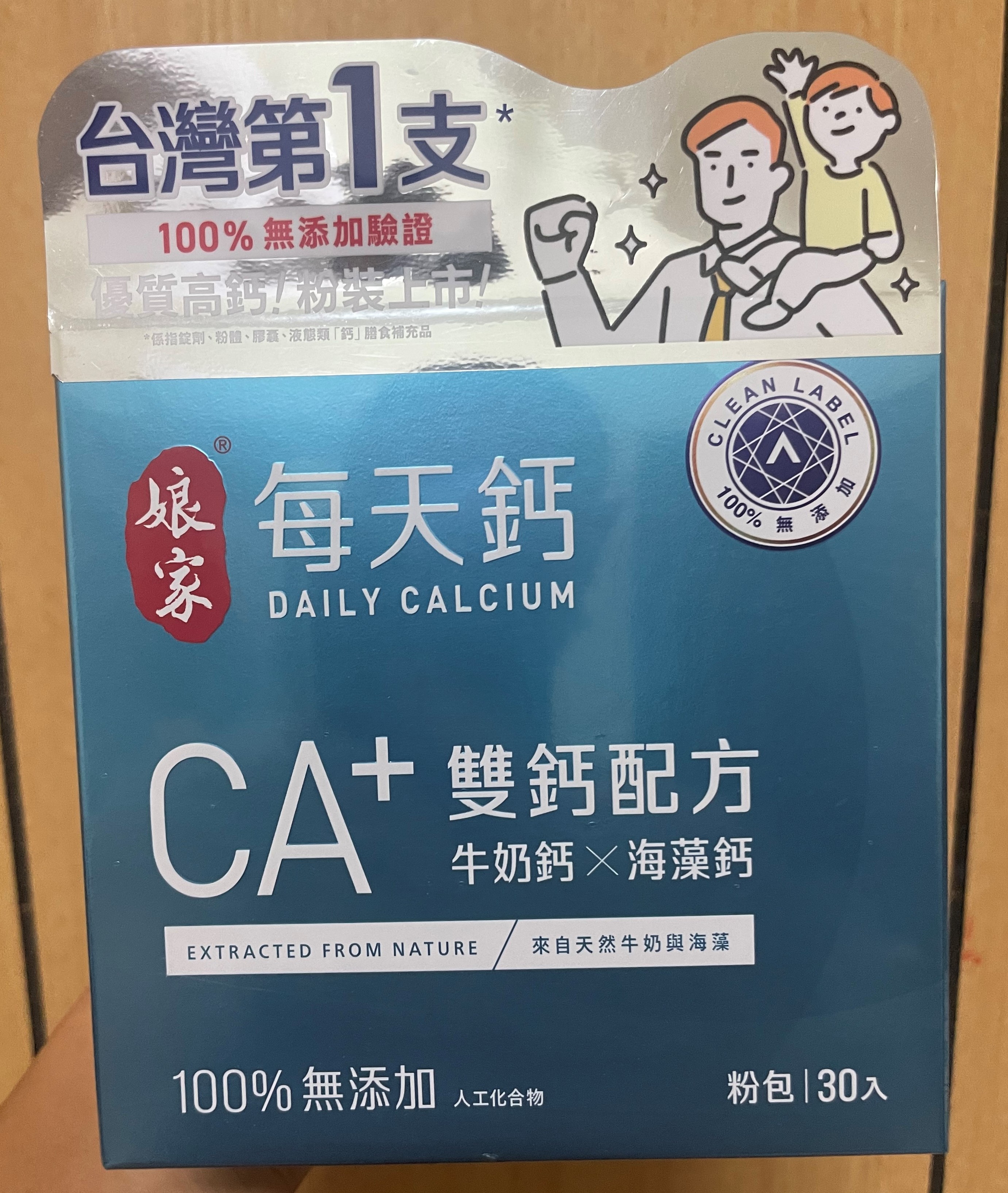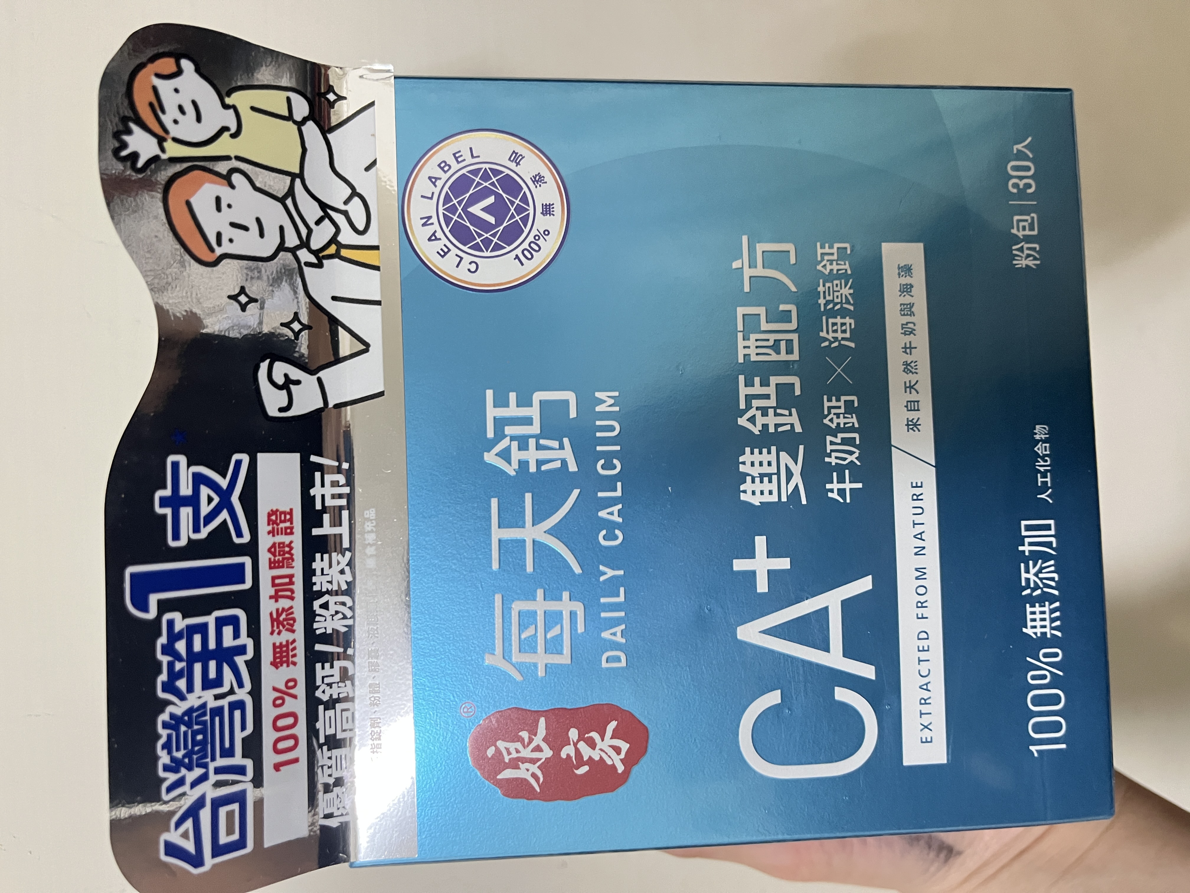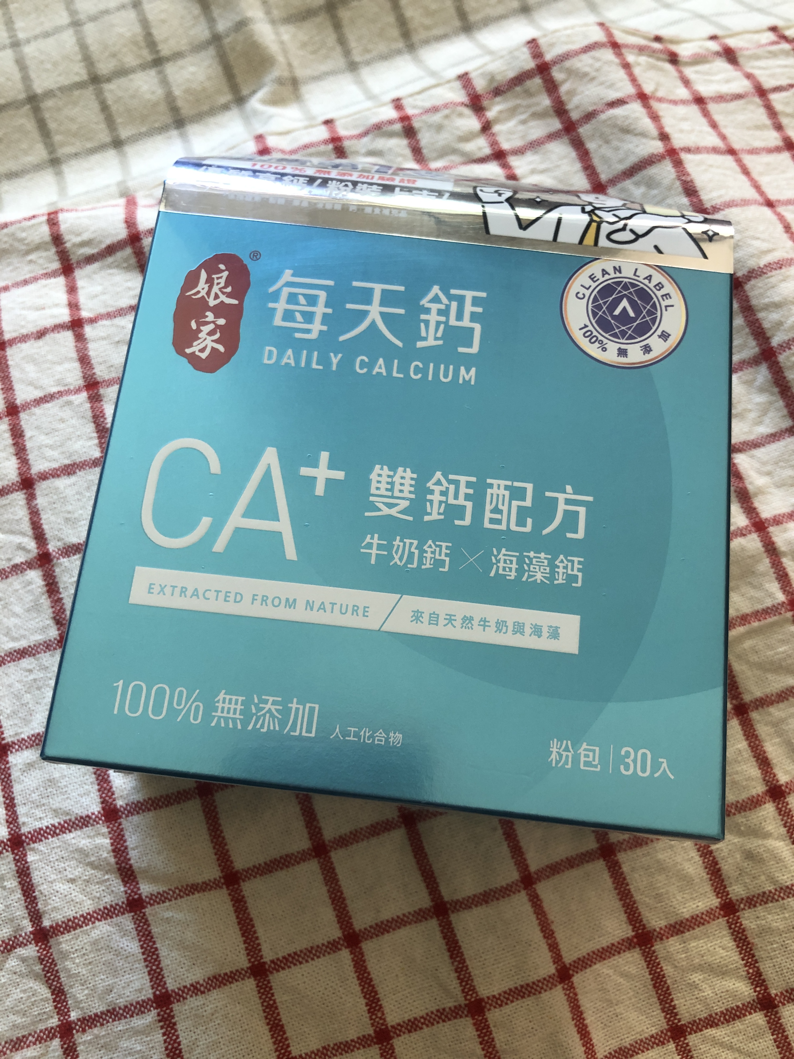 牛奶鈣(牛奶鈣、乳清蛋白)、全脂奶粉、葡萄糖、乳糖、玉米澱粉、酵母粉(含維生素D)、海藻鈣、納豆發酵物(含維生素K)、牛初乳(初乳粉、牛奶蛋白濃縮物、脫脂奶粉、中鏈三酸甘油脂、葵花卵磷脂、天然香料)、鋅酵母、鉬酵母、硒酵母、玉米來源可溶性纖維。