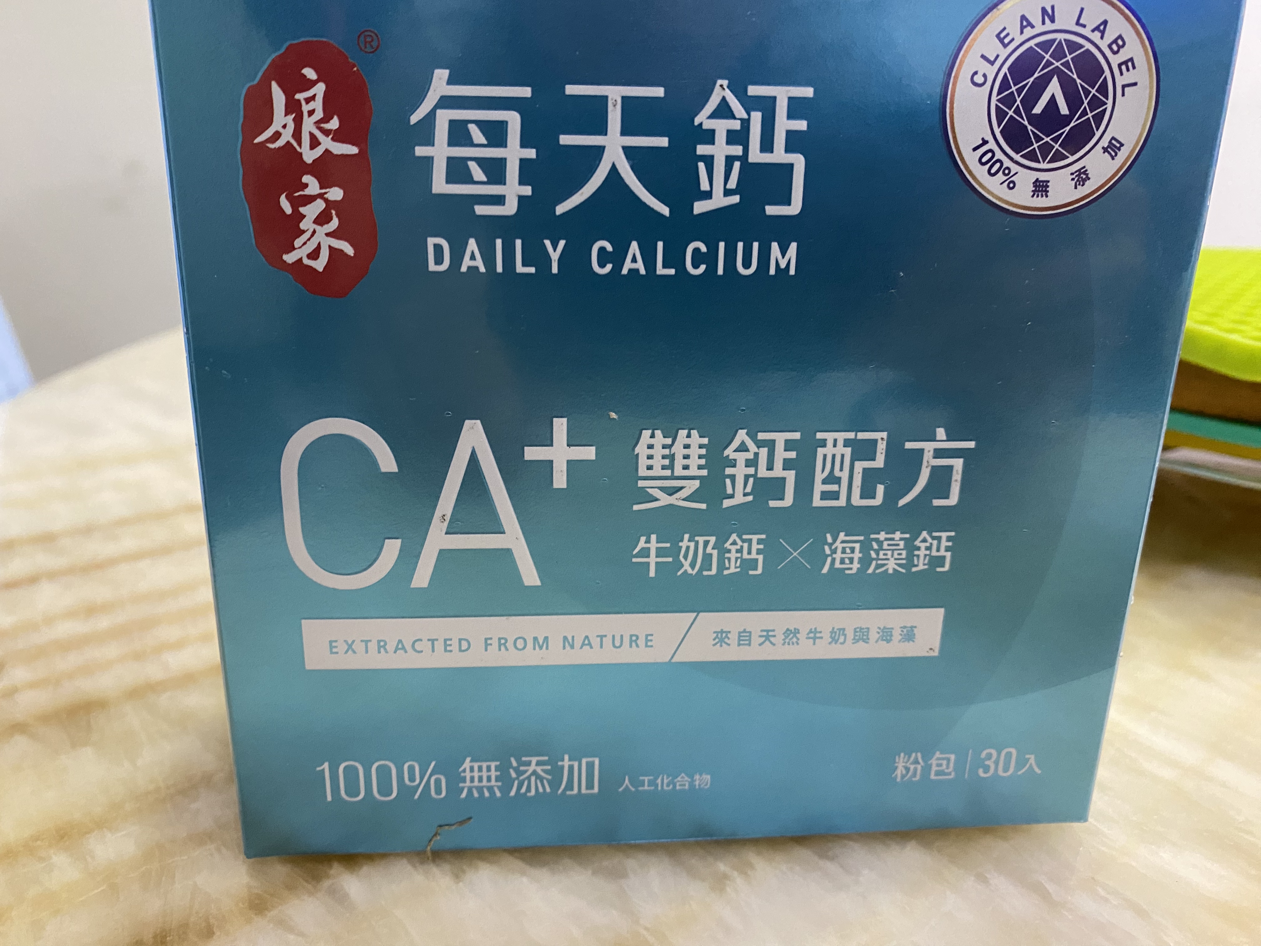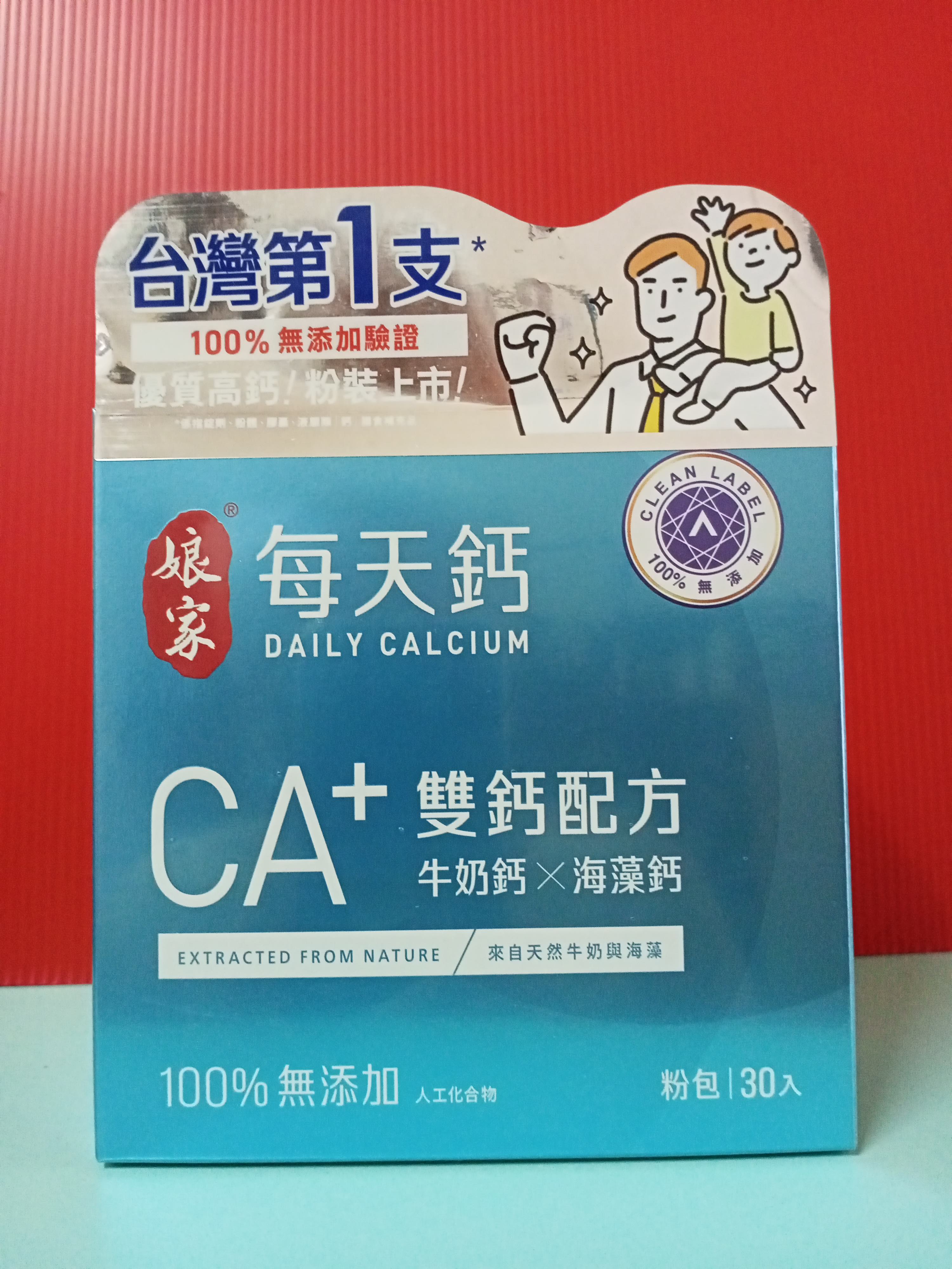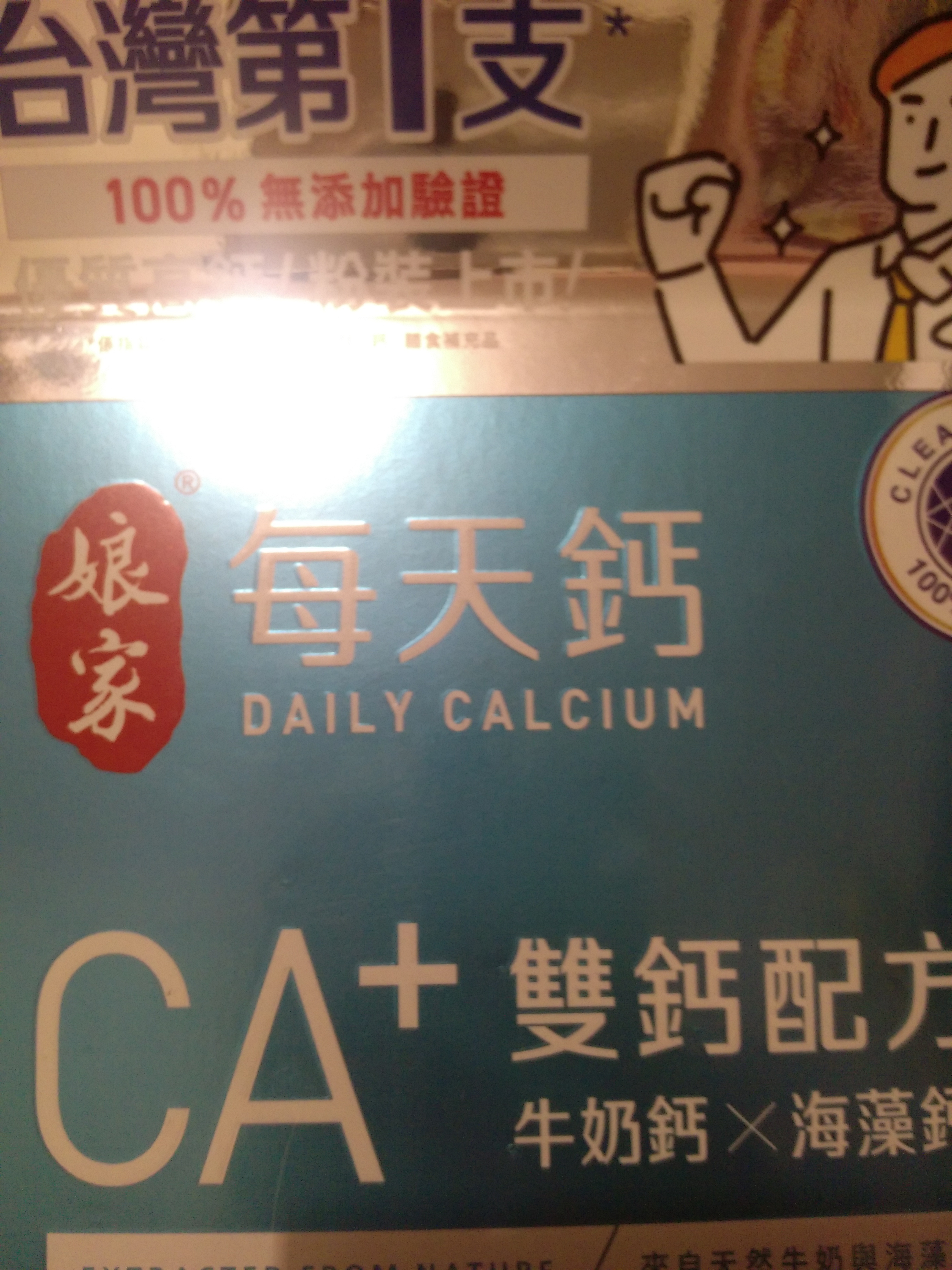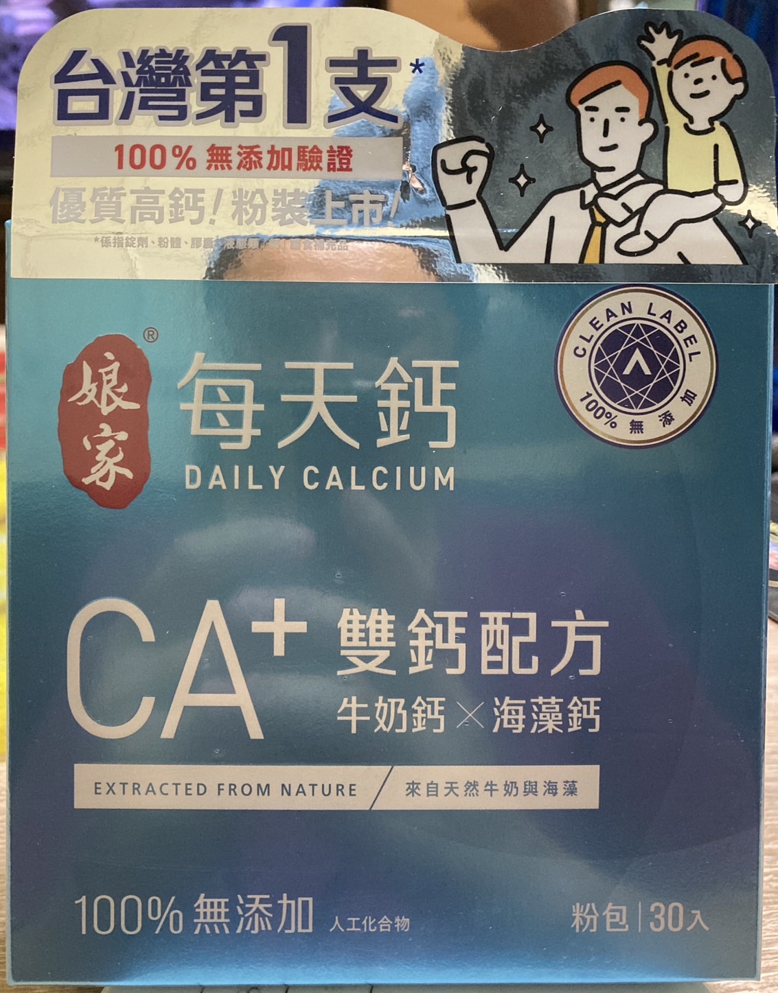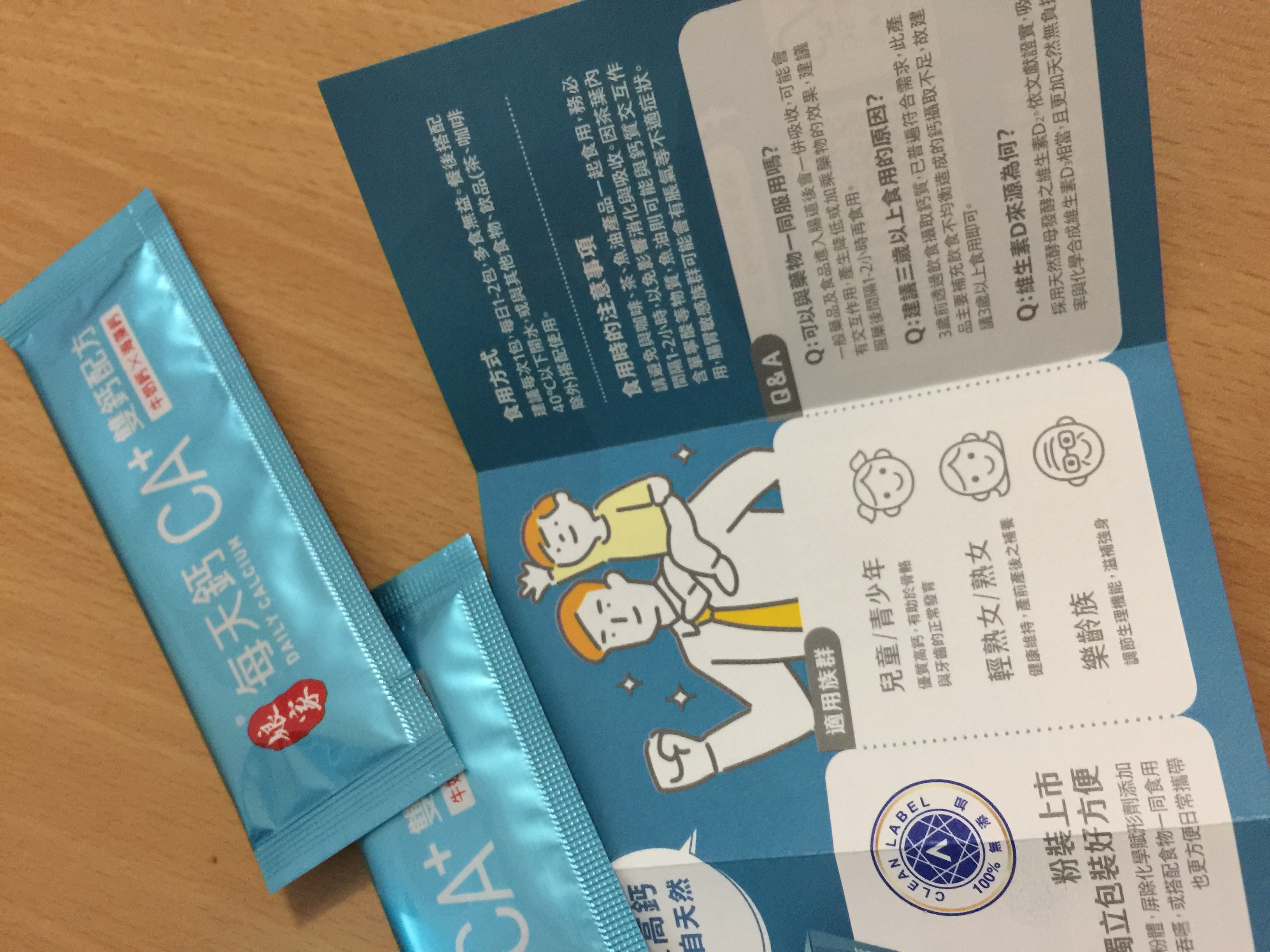 牛奶鈣(牛奶鈣、乳清蛋白)、全脂奶粉、葡萄糖、乳糖、玉米澱粉、酵母粉(含維生素D)、海藻鈣、納豆發酵物(含維生素K)、牛初乳(初乳粉、牛奶蛋白濃縮物、脫脂奶粉、中鏈三酸甘油脂、葵花卵磷脂、天然香料)、鋅酵母、鉬酵母、硒酵母、玉米來源可溶性纖維。
