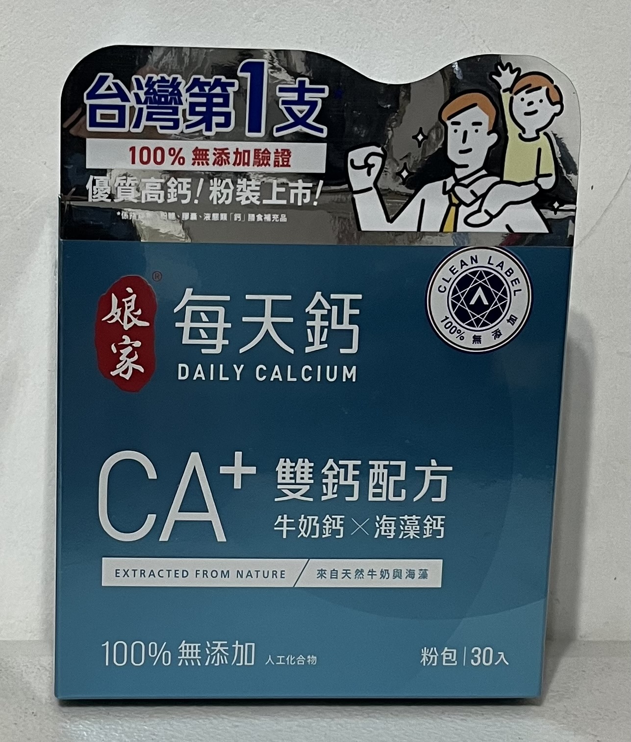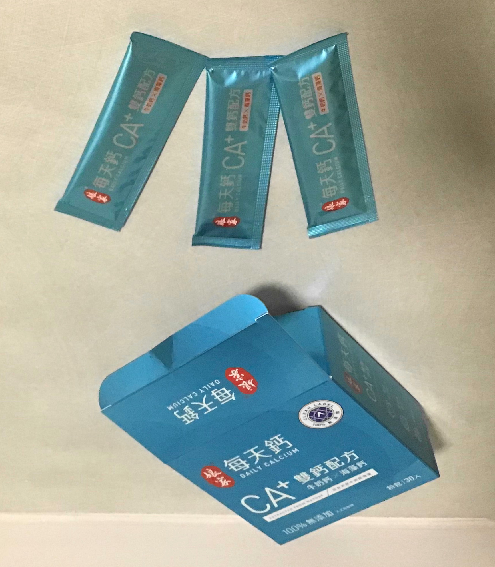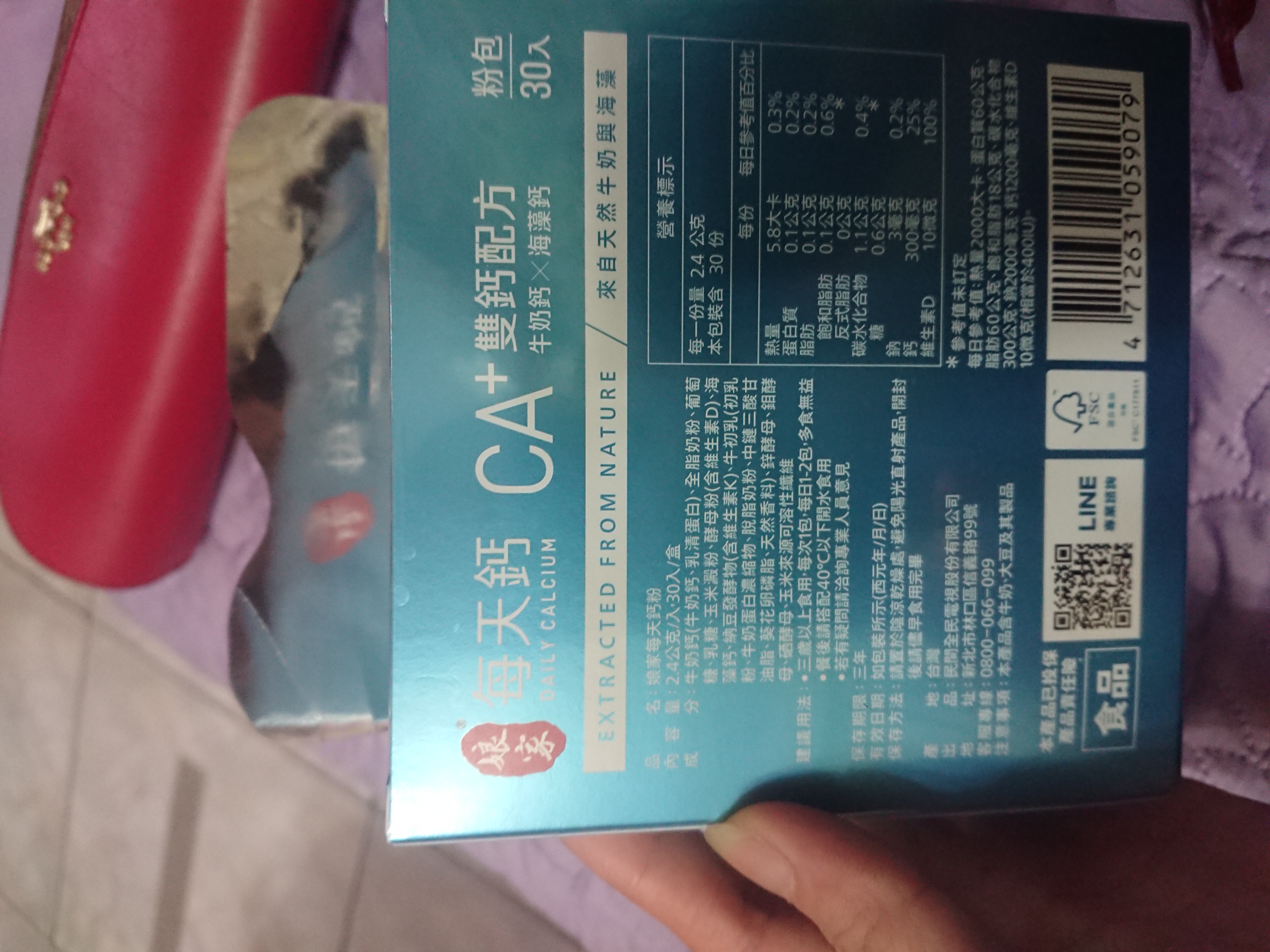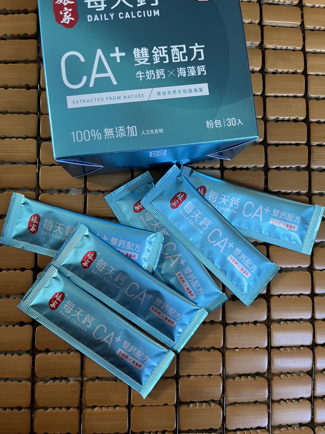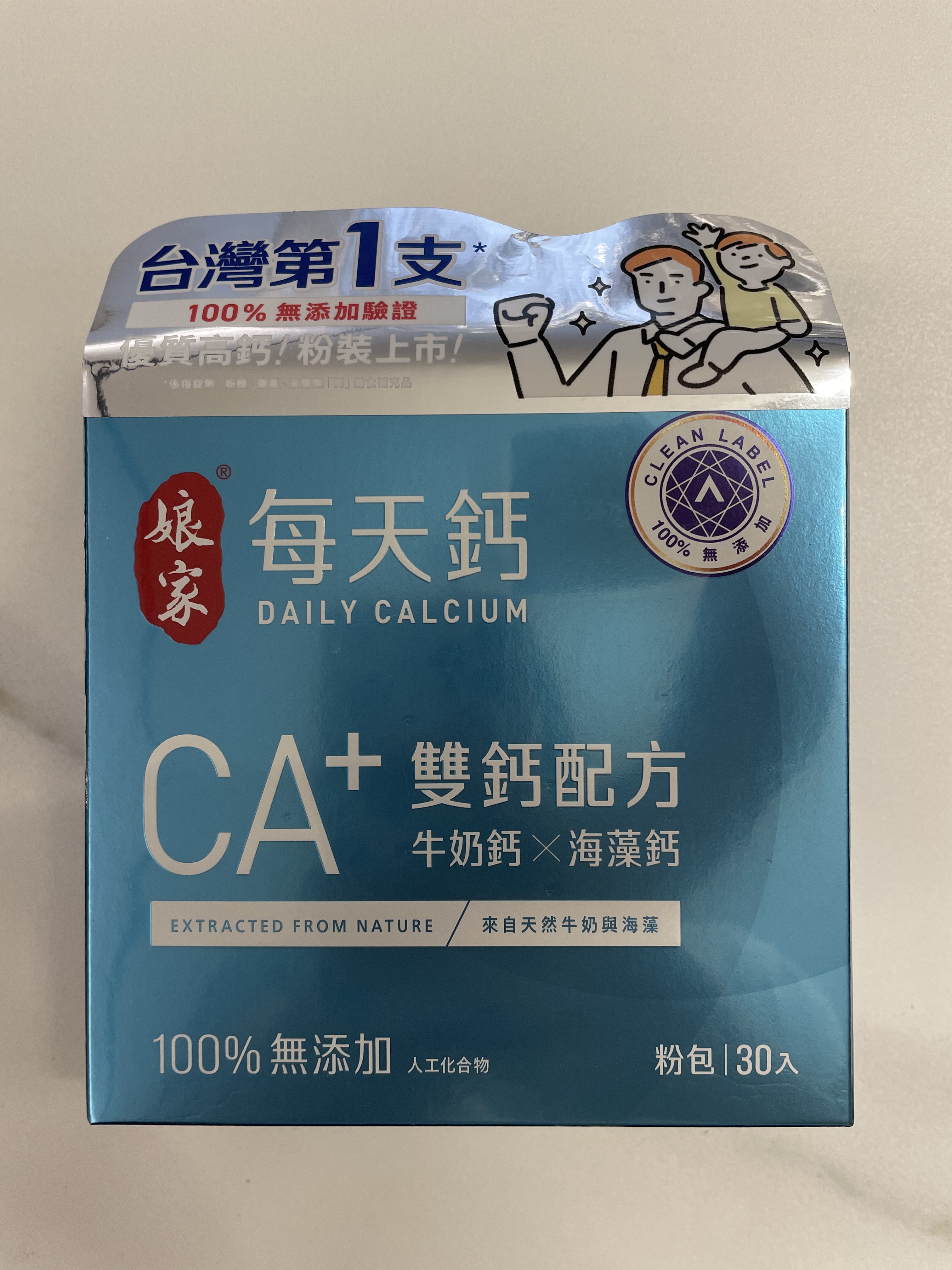 牛奶鈣(牛奶鈣、乳清蛋白)、全脂奶粉、葡萄糖、乳糖、玉米澱粉、酵母粉(含維生素D)、海藻鈣、納豆發酵物(含維生素K)、牛初乳(初乳粉、牛奶蛋白濃縮物、脫脂奶粉、中鏈三酸甘油脂、葵花卵磷脂、天然香料)、鋅酵母、鉬酵母、硒酵母、玉米來源可溶性纖維。