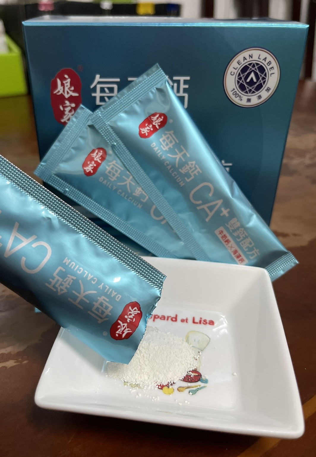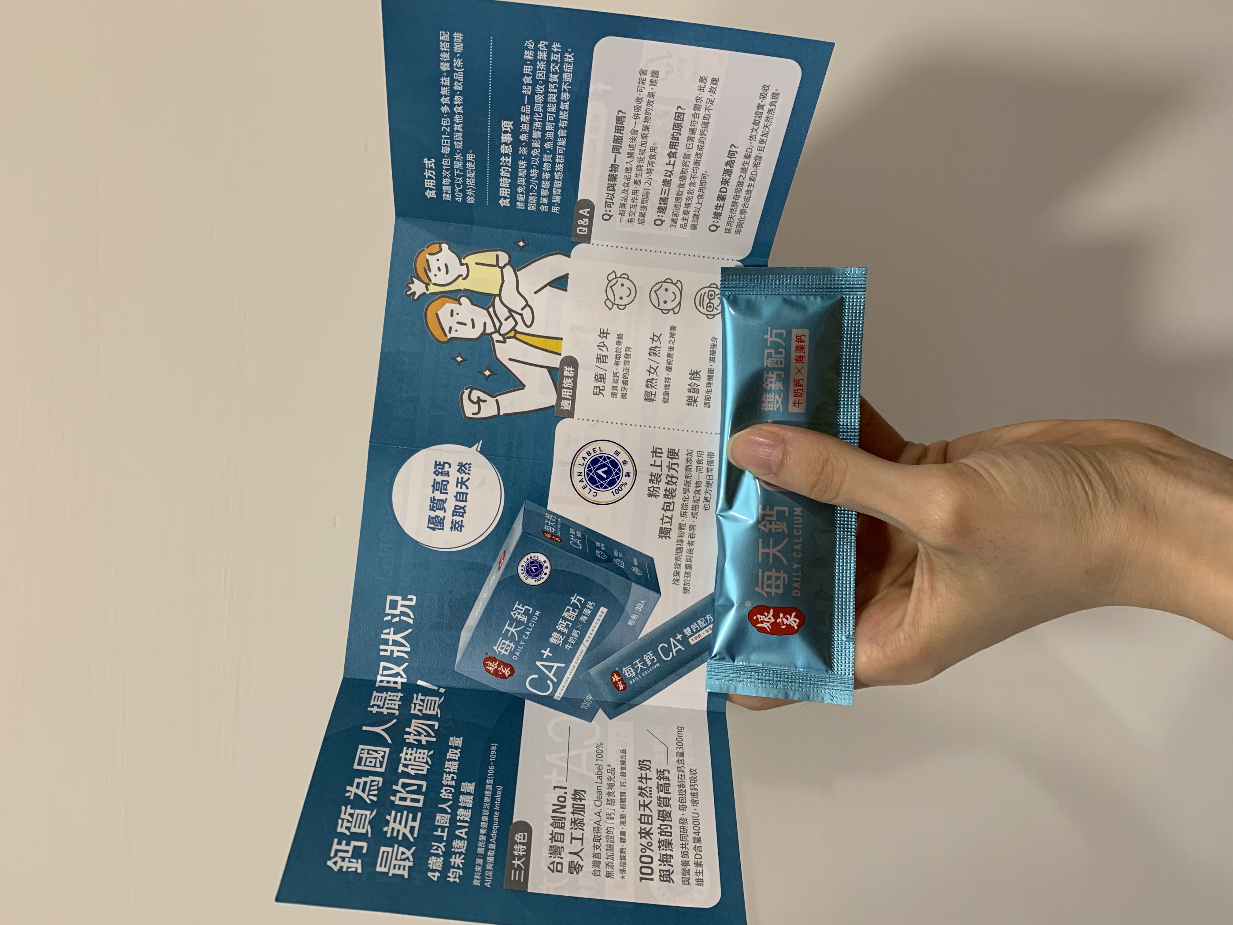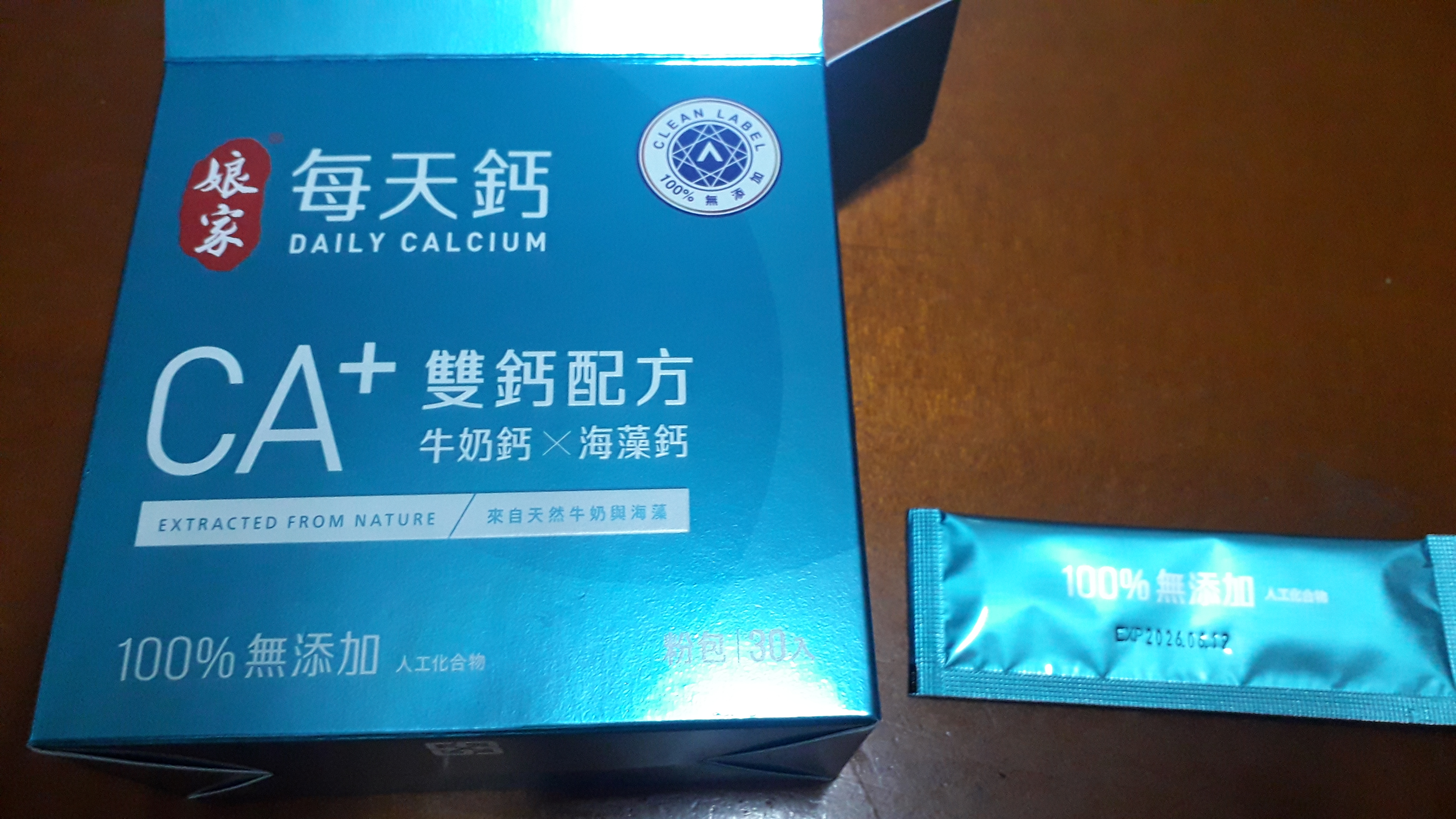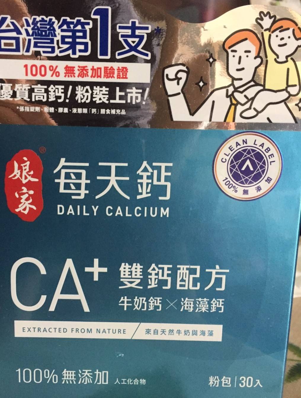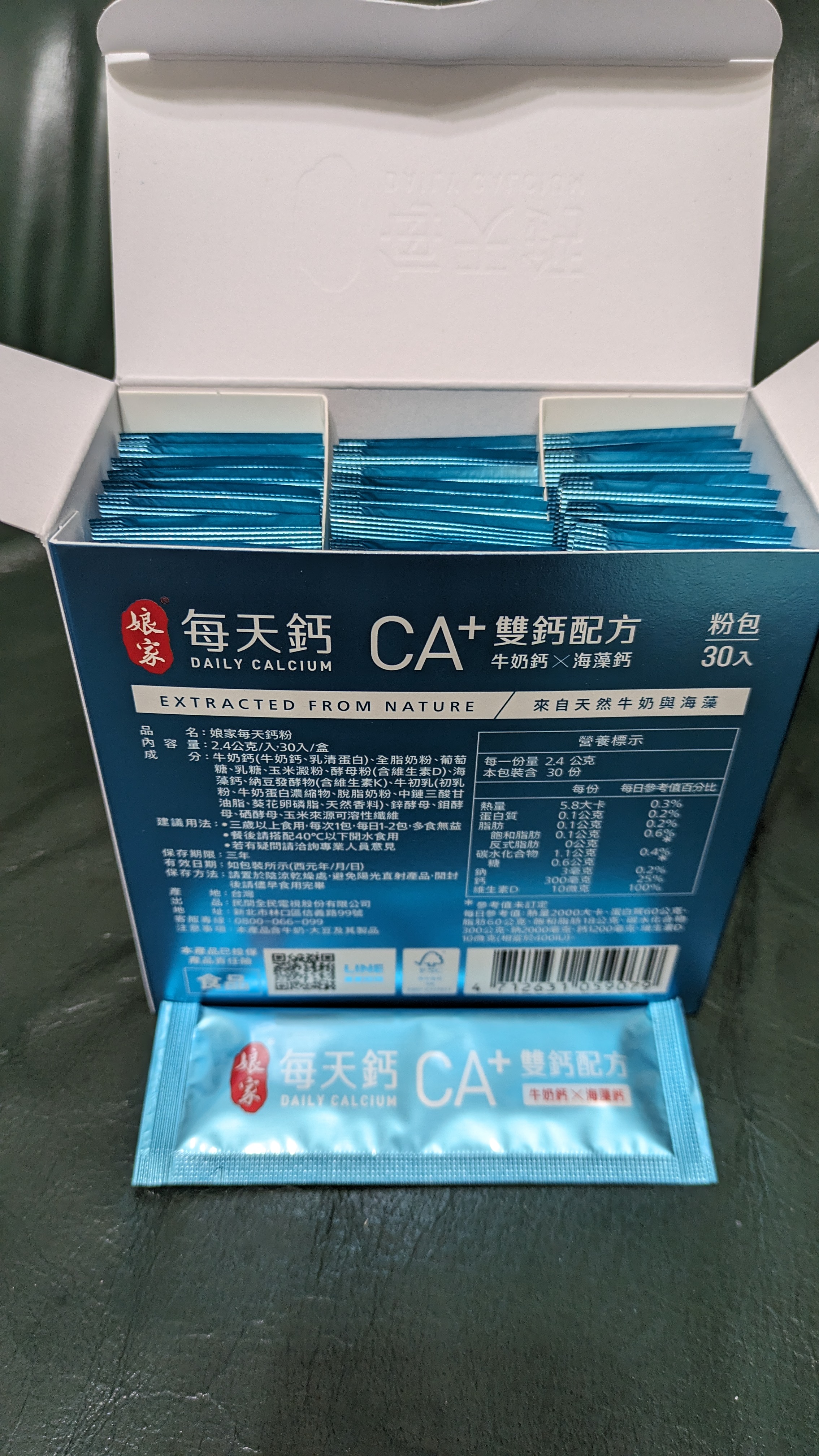 牛奶鈣(牛奶鈣、乳清蛋白)、全脂奶粉、葡萄糖、乳糖、玉米澱粉、酵母粉(含維生素D)、海藻鈣、納豆發酵物(含維生素K)、牛初乳(初乳粉、牛奶蛋白濃縮物、脫脂奶粉、中鏈三酸甘油脂、葵花卵磷脂、天然香料)、鋅酵母、鉬酵母、硒酵母、玉米來源可溶性纖維。