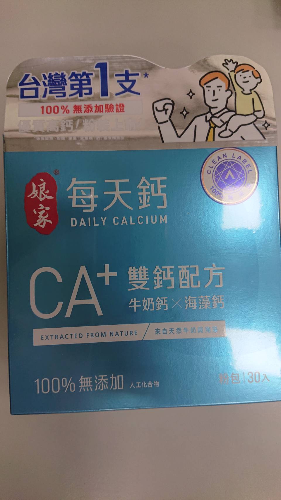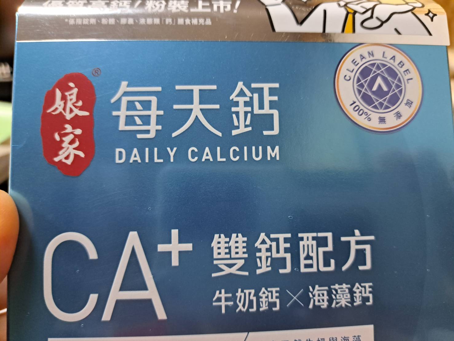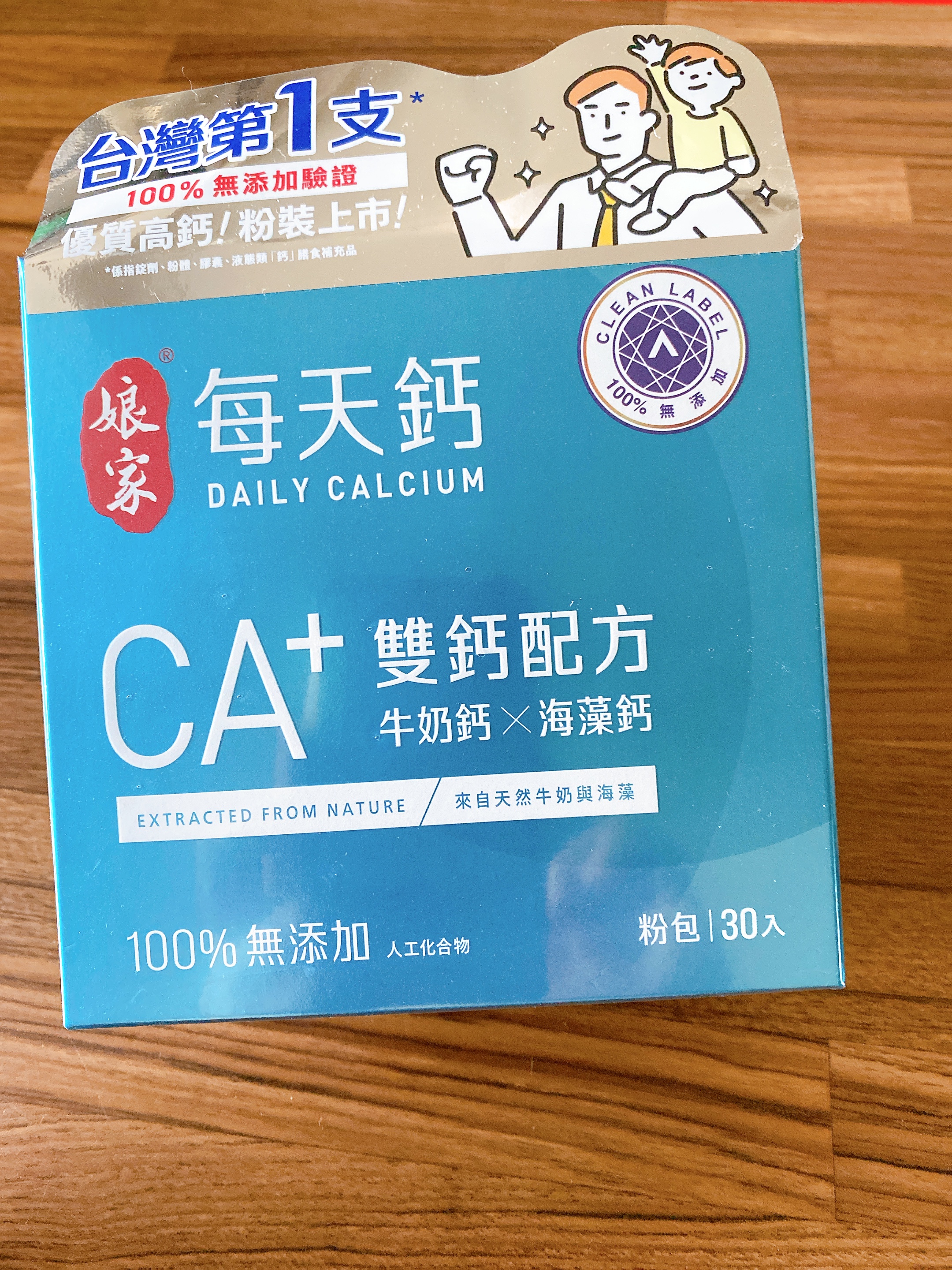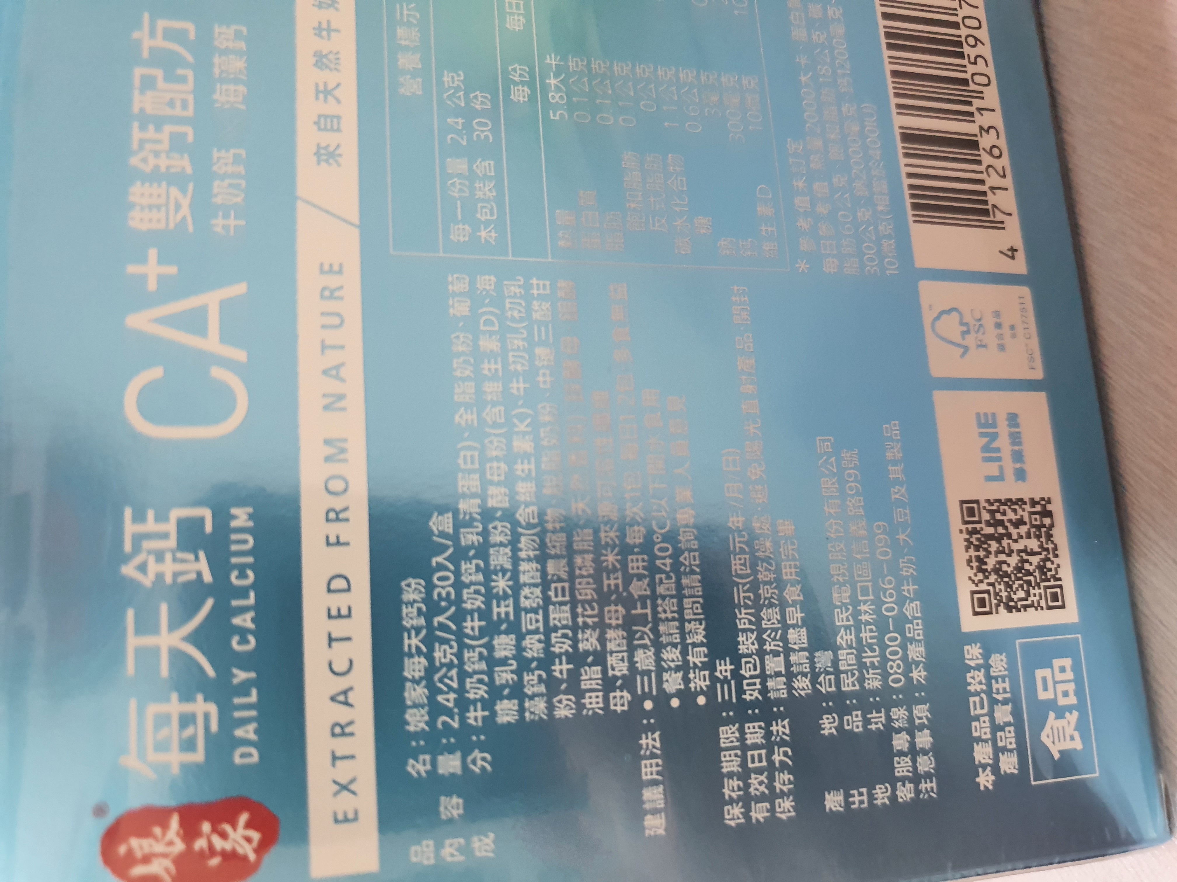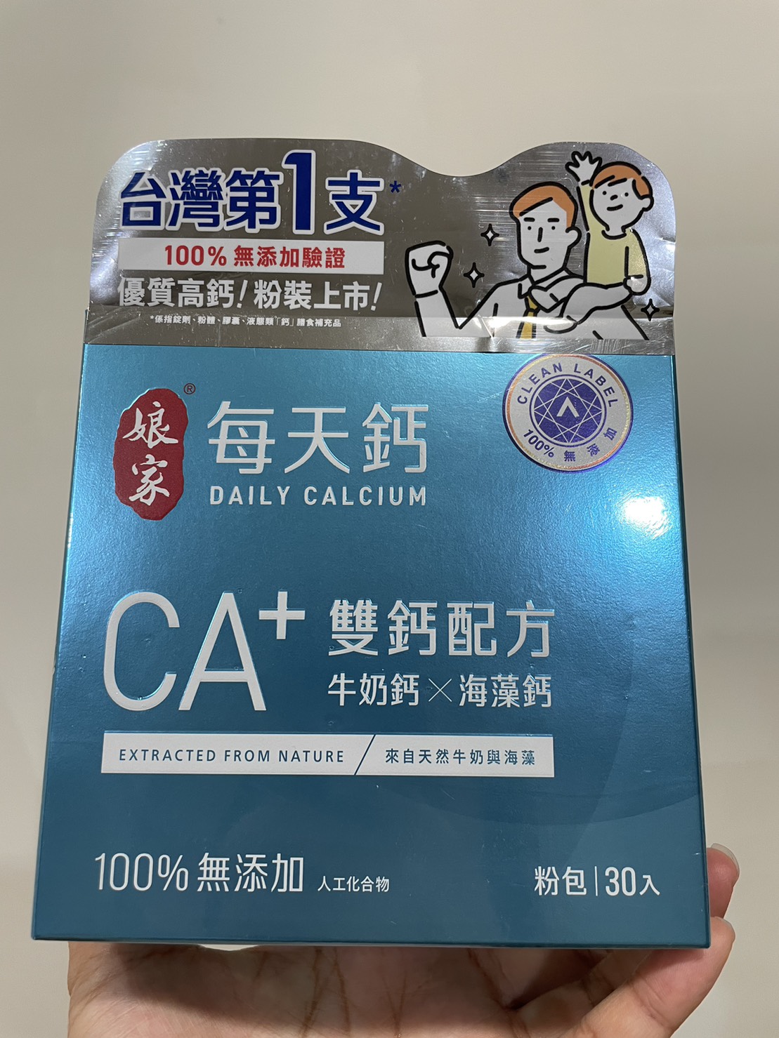 牛奶鈣(牛奶鈣、乳清蛋白)、全脂奶粉、葡萄糖、乳糖、玉米澱粉、酵母粉(含維生素D)、海藻鈣、納豆發酵物(含維生素K)、牛初乳(初乳粉、牛奶蛋白濃縮物、脫脂奶粉、中鏈三酸甘油脂、葵花卵磷脂、天然香料)、鋅酵母、鉬酵母、硒酵母、玉米來源可溶性纖維。