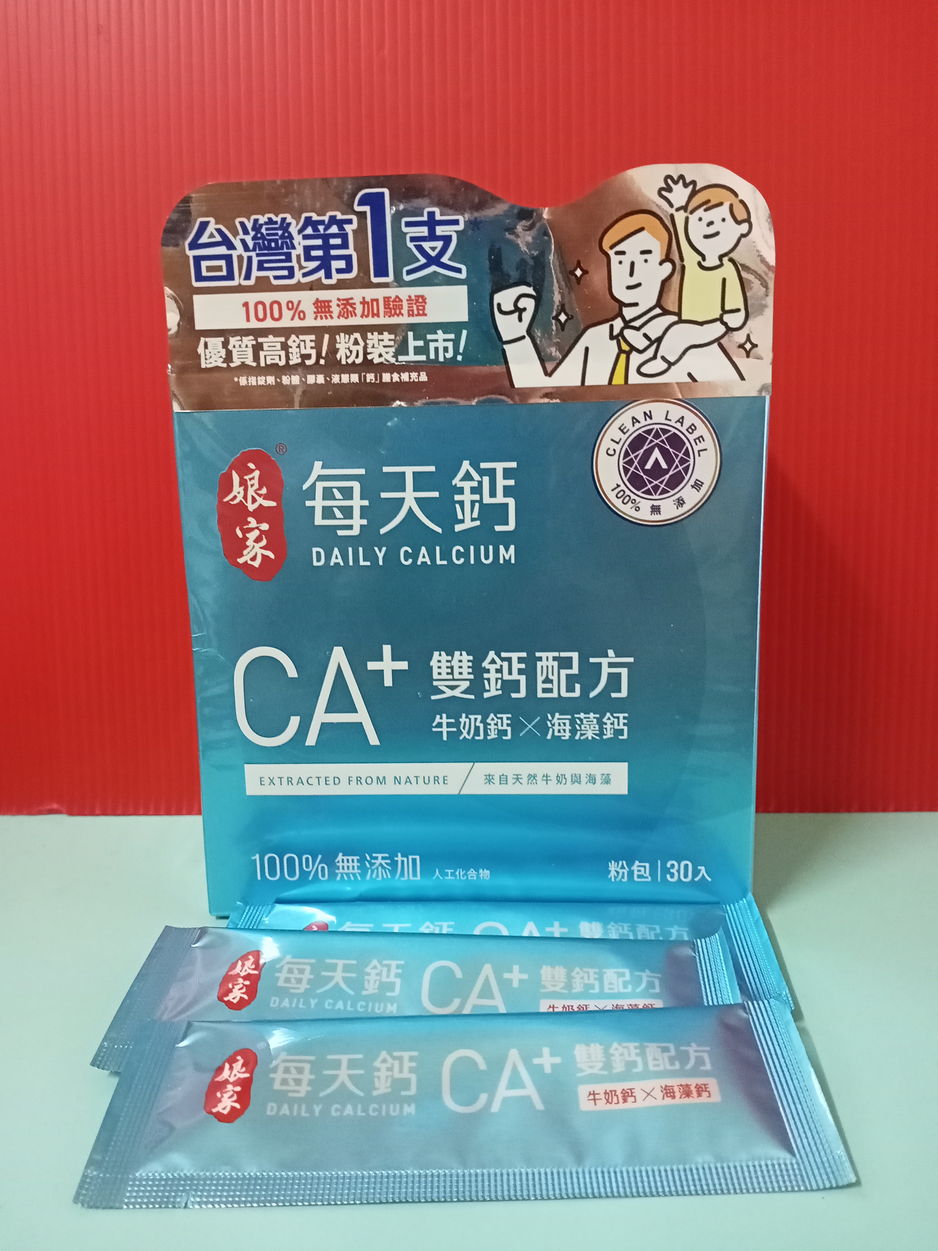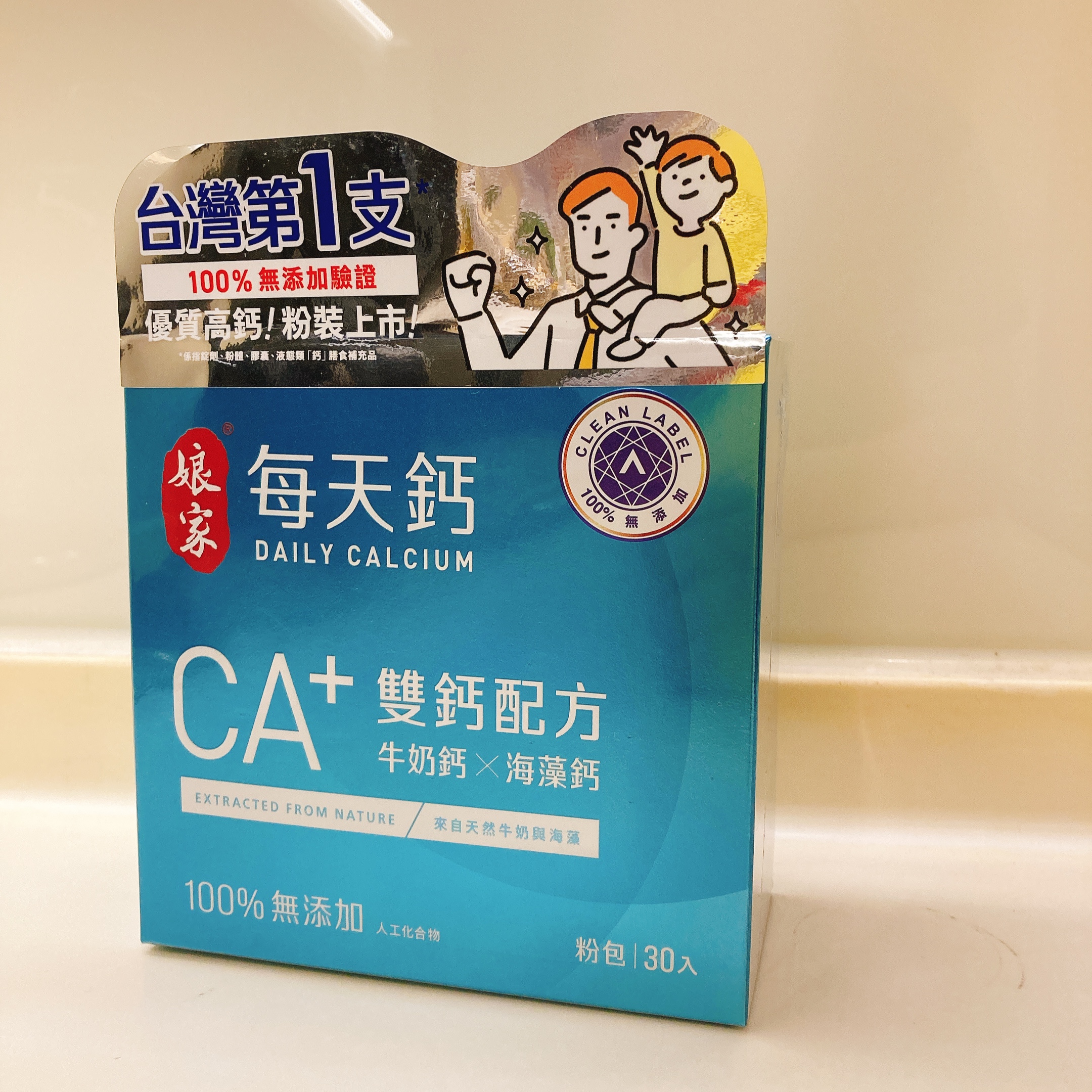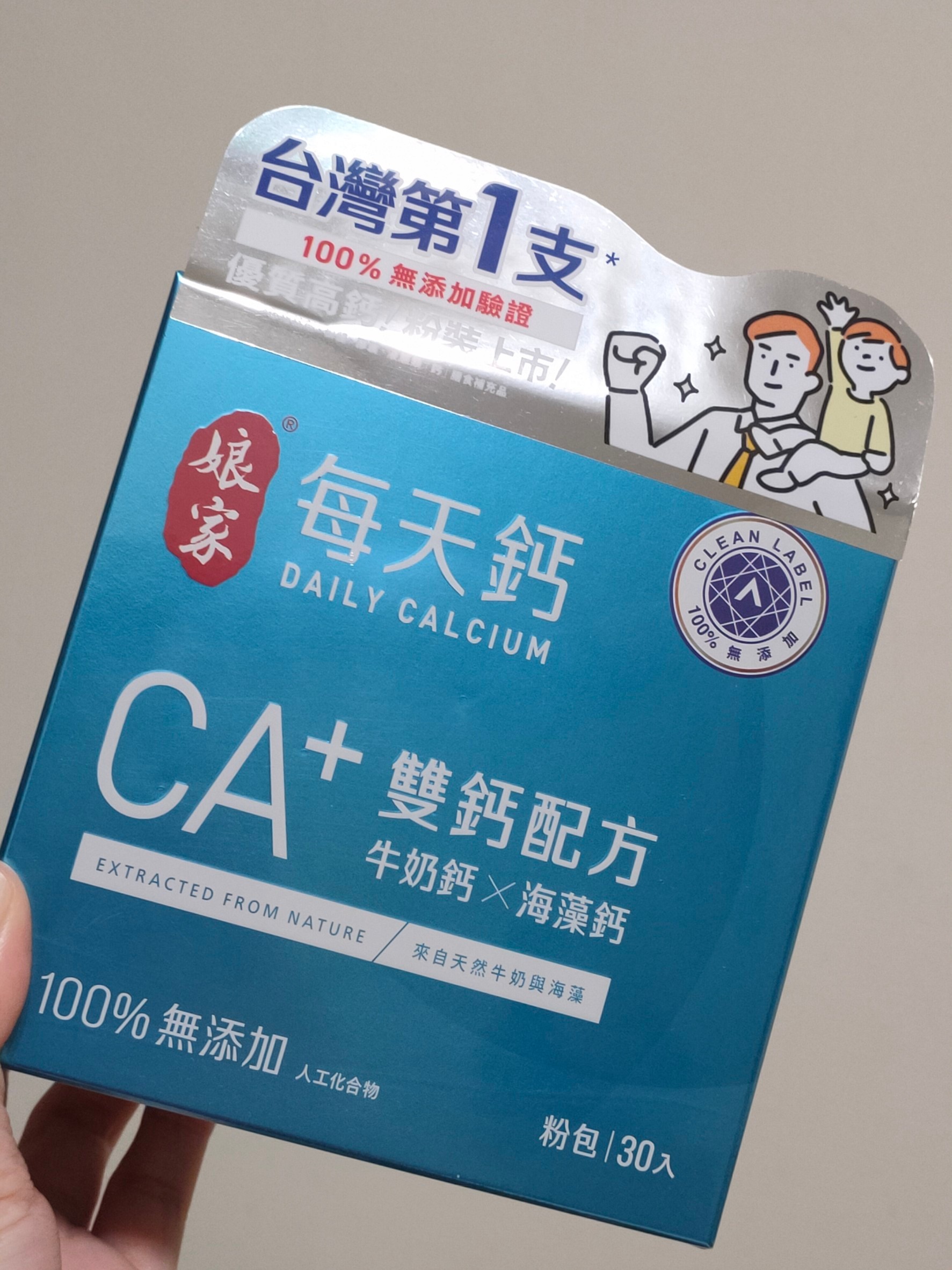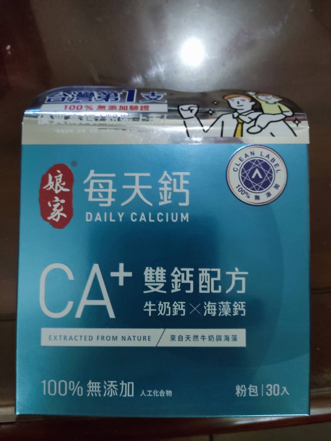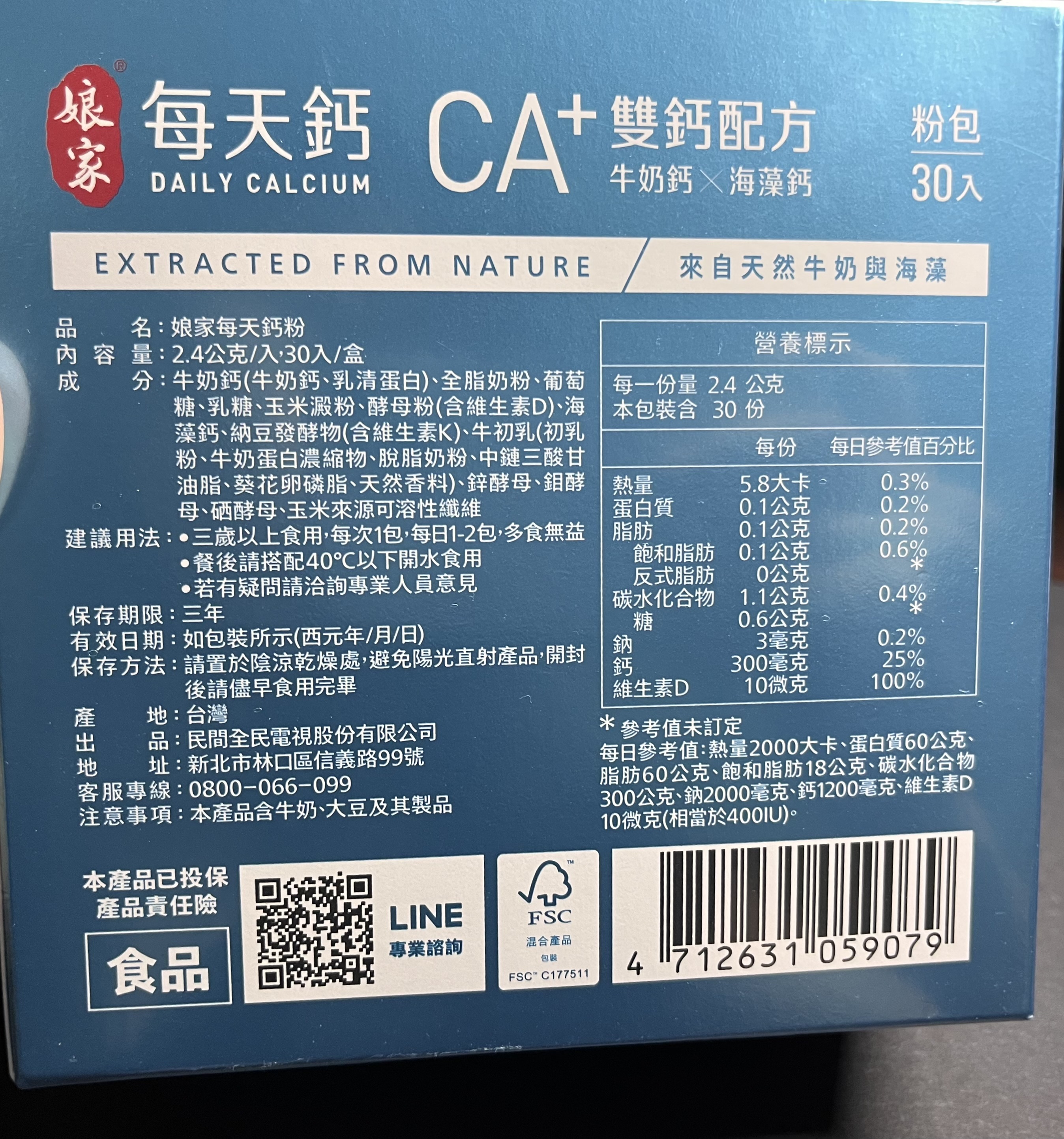 牛奶鈣(牛奶鈣、乳清蛋白)、全脂奶粉、葡萄糖、乳糖、玉米澱粉、酵母粉(含維生素D)、海藻鈣、納豆發酵物(含維生素K)、牛初乳(初乳粉、牛奶蛋白濃縮物、脫脂奶粉、中鏈三酸甘油脂、葵花卵磷脂、天然香料)、鋅酵母、鉬酵母、硒酵母、玉米來源可溶性纖維。