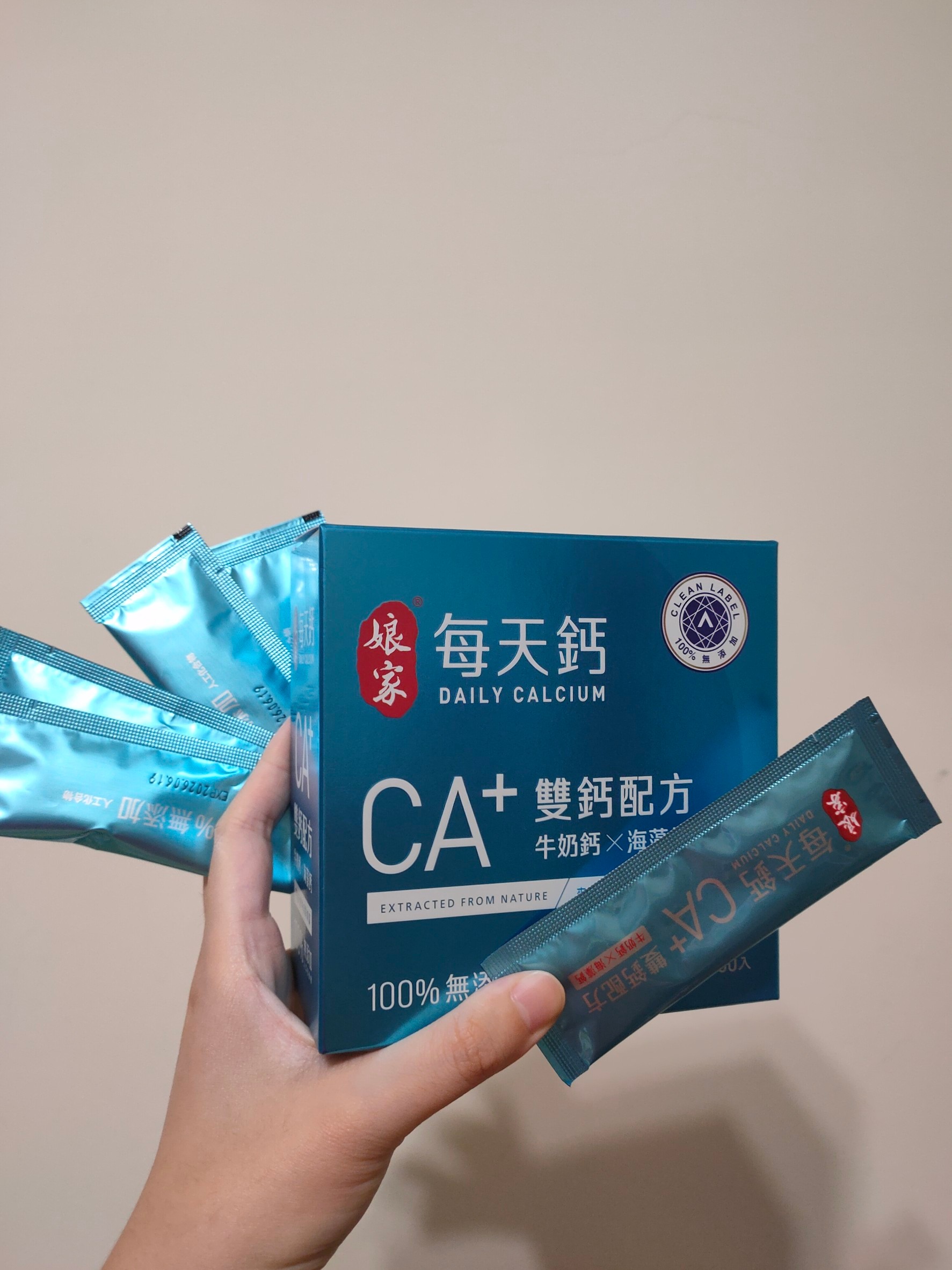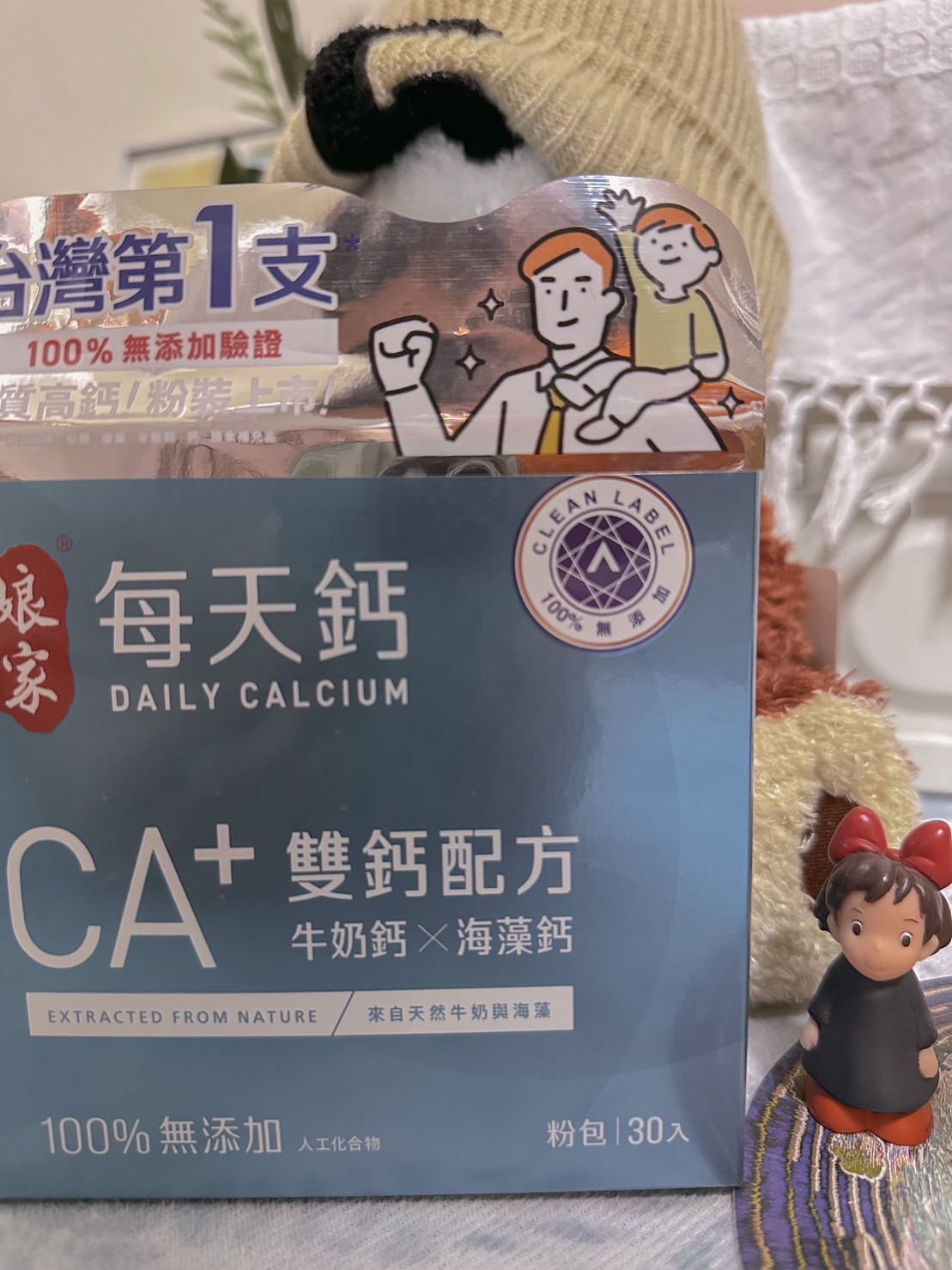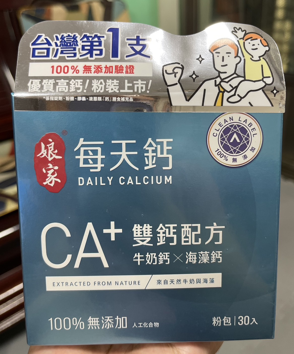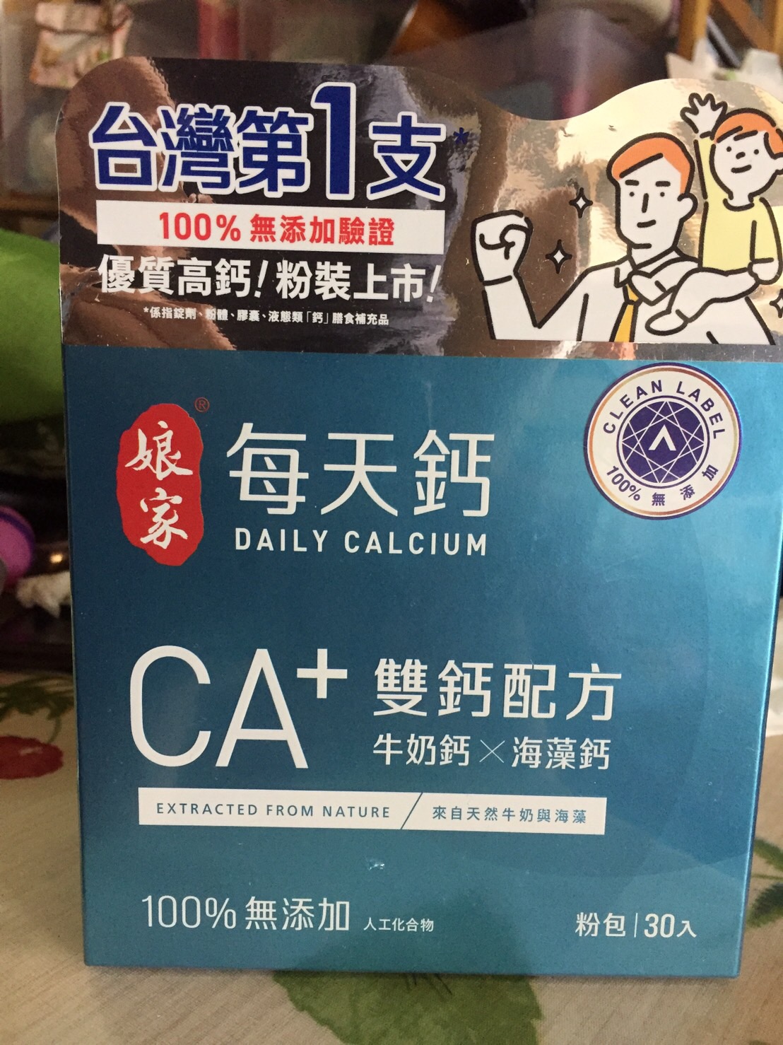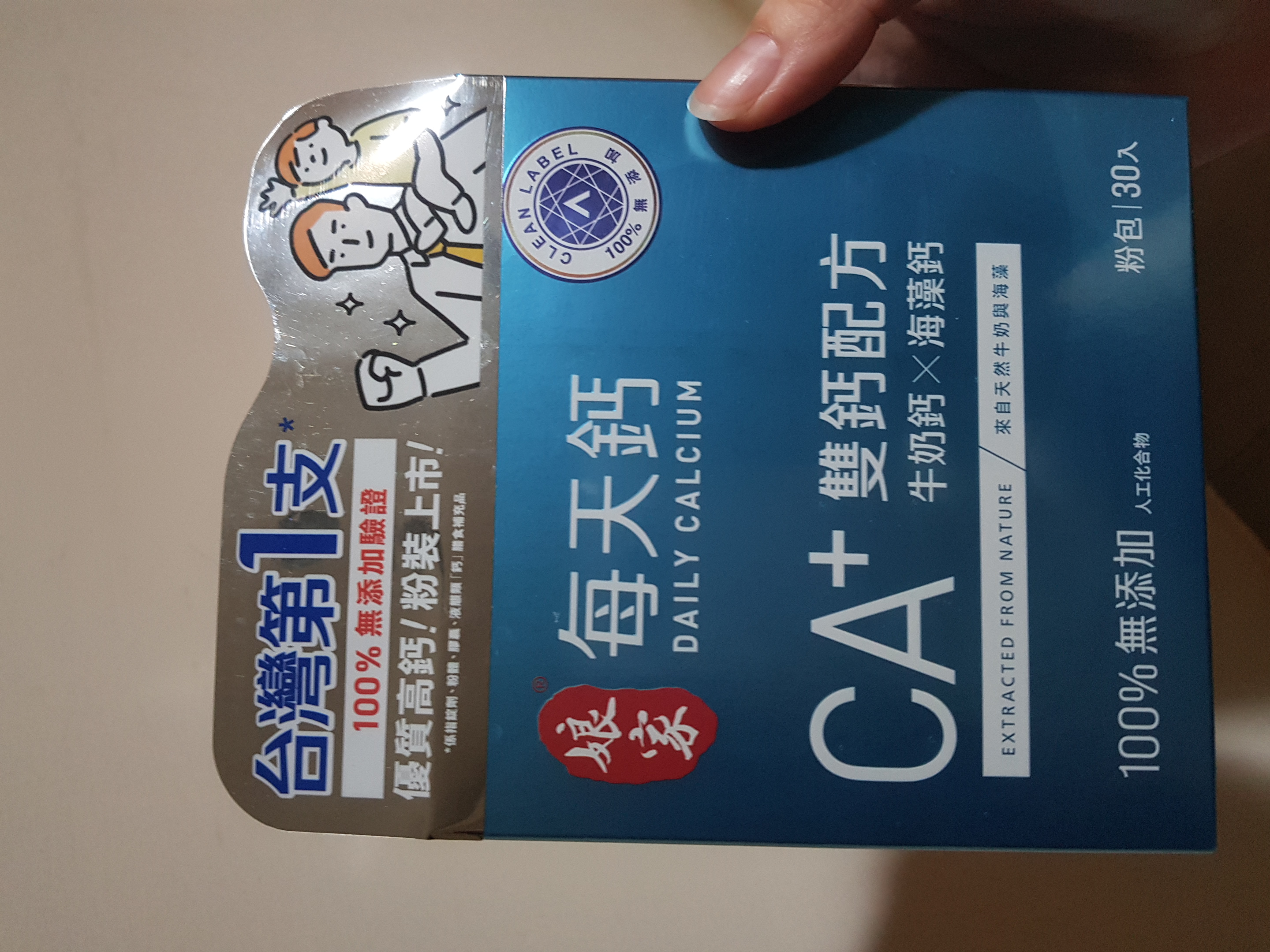 牛奶鈣(牛奶鈣、乳清蛋白)、全脂奶粉、葡萄糖、乳糖、玉米澱粉、酵母粉(含維生素D)、海藻鈣、納豆發酵物(含維生素K)、牛初乳(初乳粉、牛奶蛋白濃縮物、脫脂奶粉、中鏈三酸甘油脂、葵花卵磷脂、天然香料)、鋅酵母、鉬酵母、硒酵母、玉米來源可溶性纖維。
