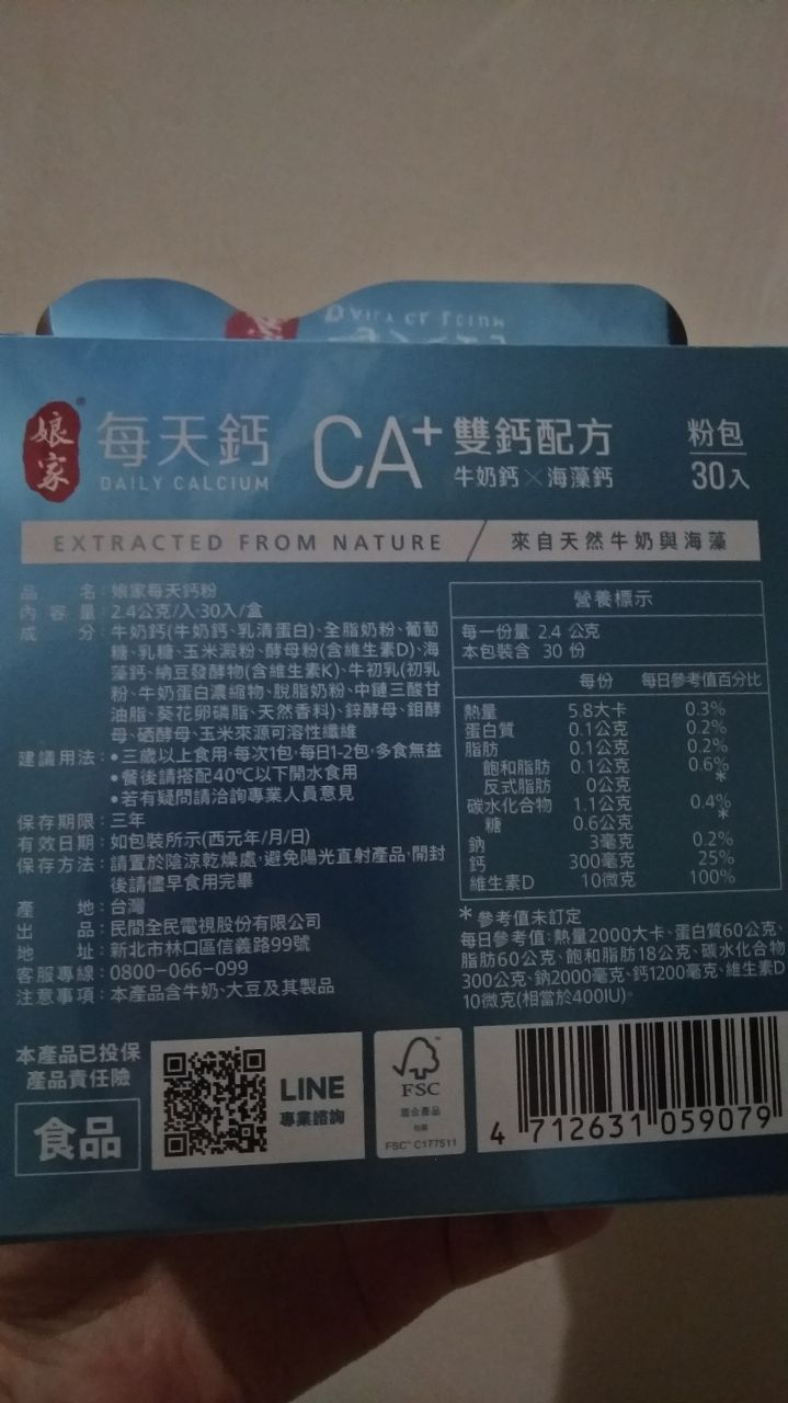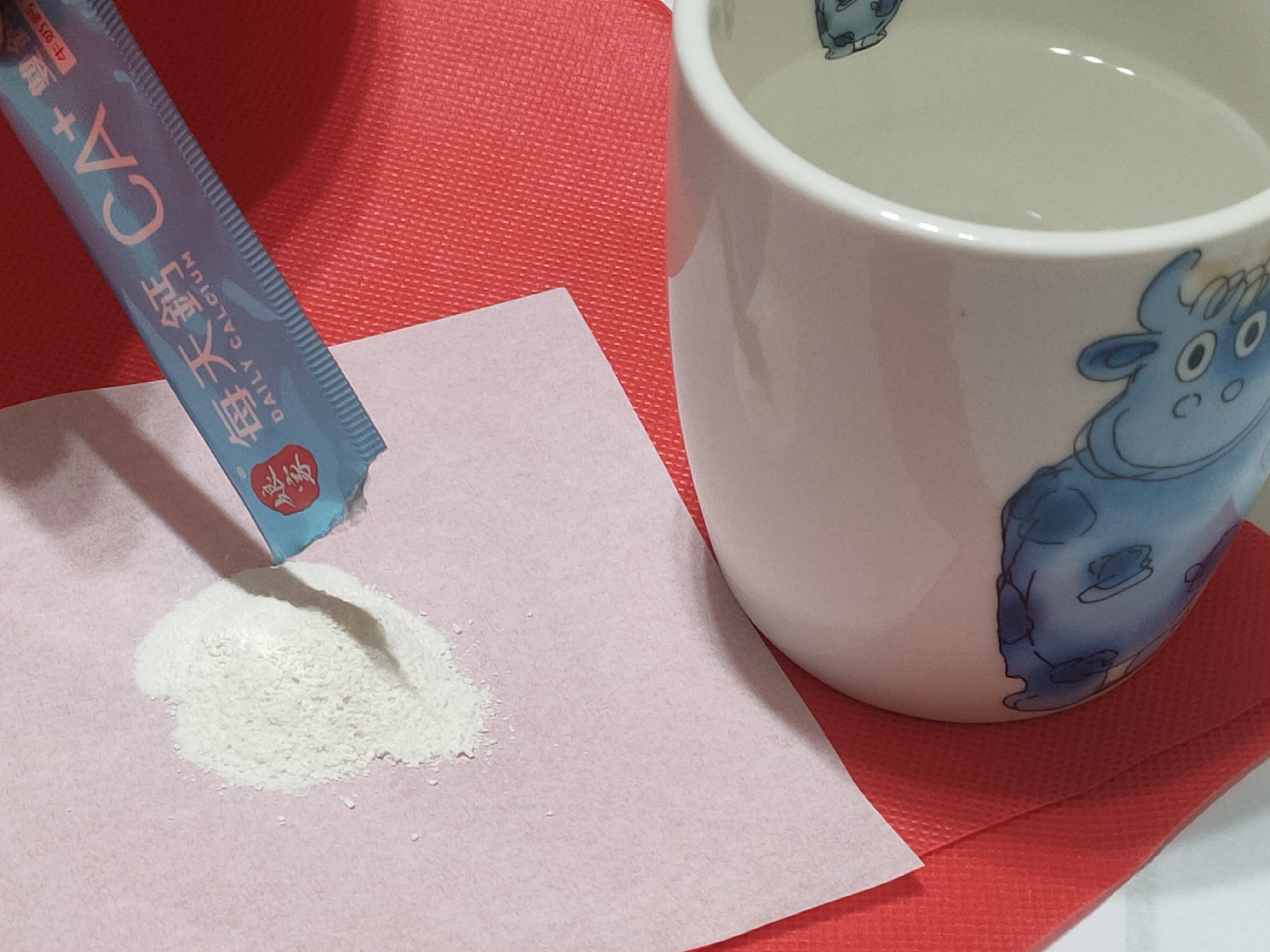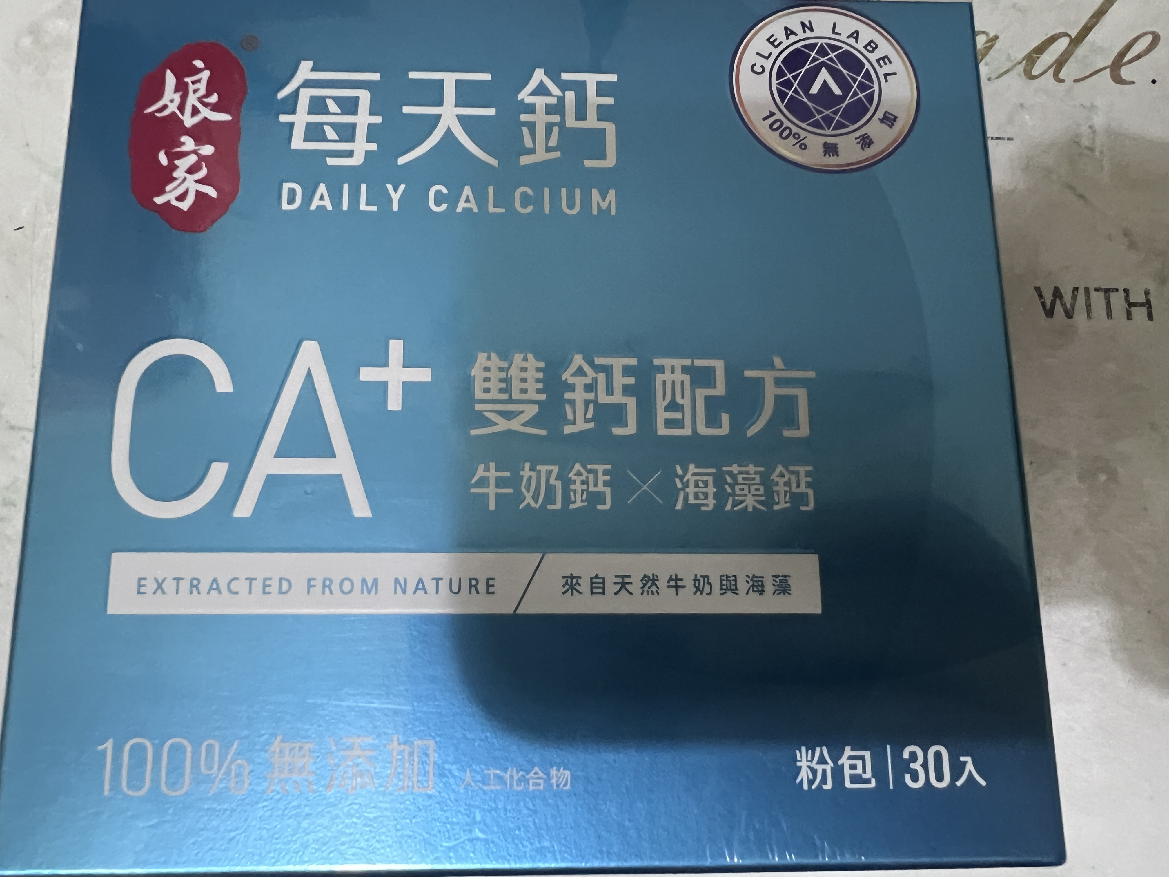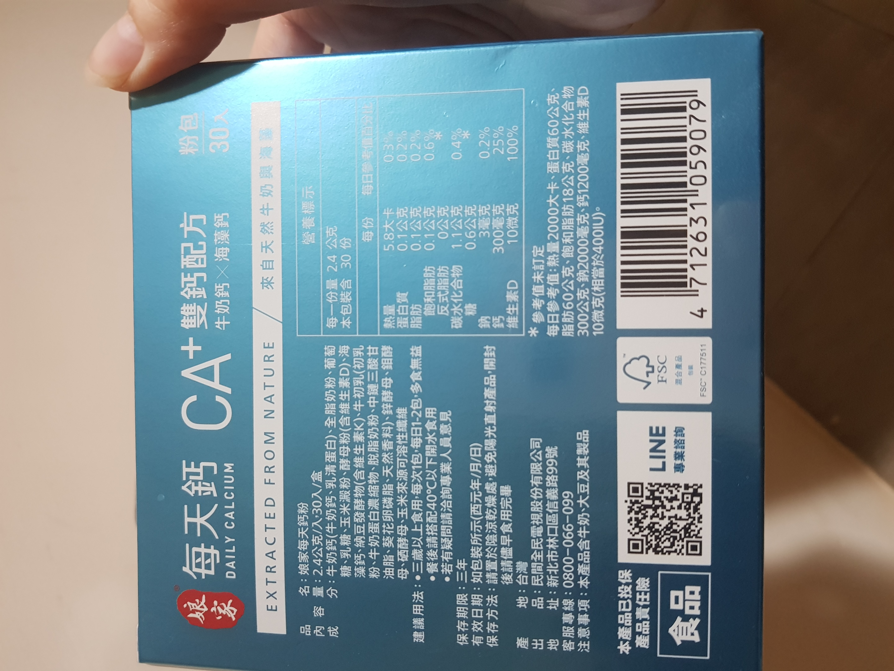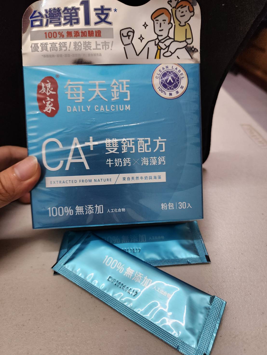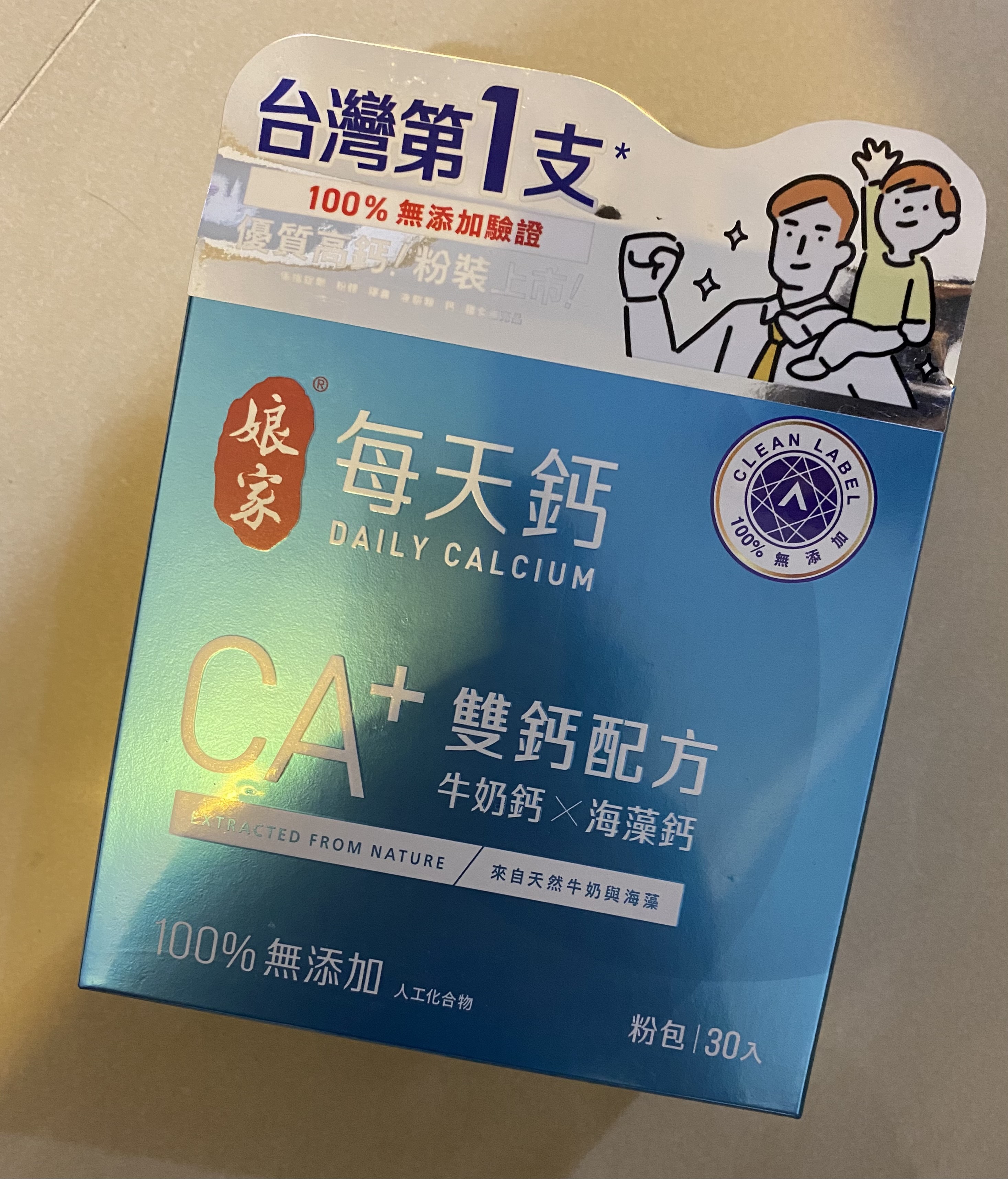 牛奶鈣(牛奶鈣、乳清蛋白)、全脂奶粉、葡萄糖、乳糖、玉米澱粉、酵母粉(含維生素D)、海藻鈣、納豆發酵物(含維生素K)、牛初乳(初乳粉、牛奶蛋白濃縮物、脫脂奶粉、中鏈三酸甘油脂、葵花卵磷脂、天然香料)、鋅酵母、鉬酵母、硒酵母、玉米來源可溶性纖維。