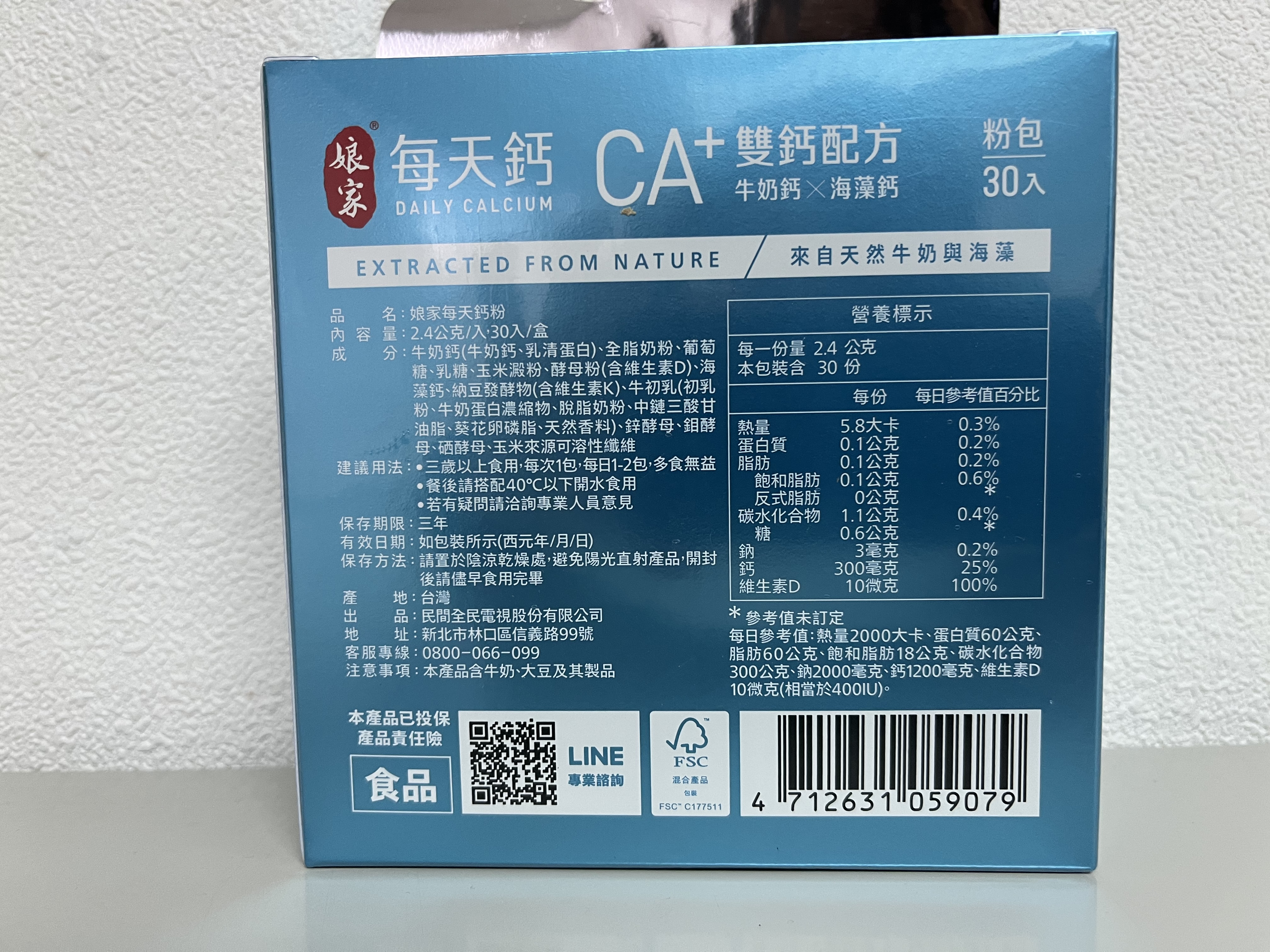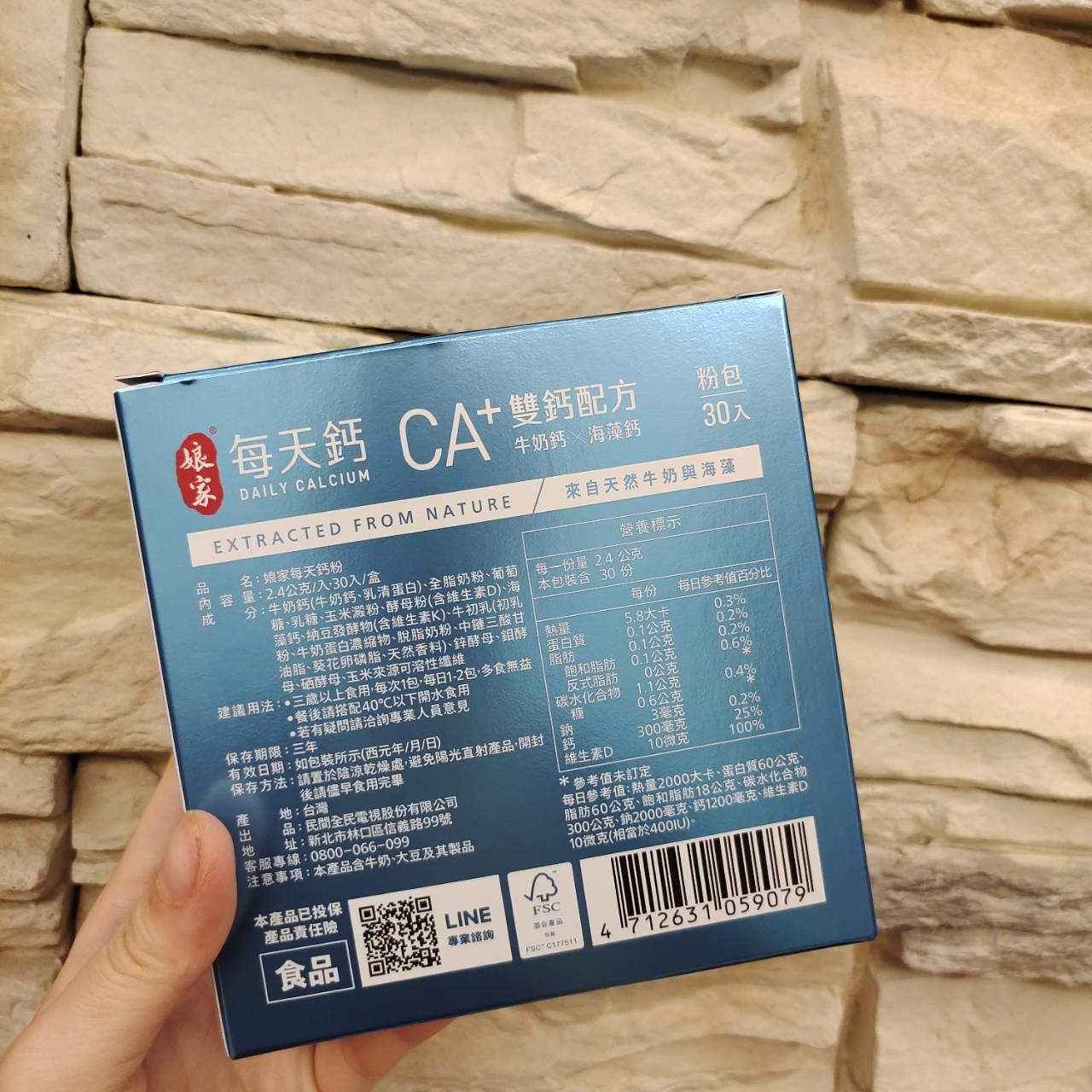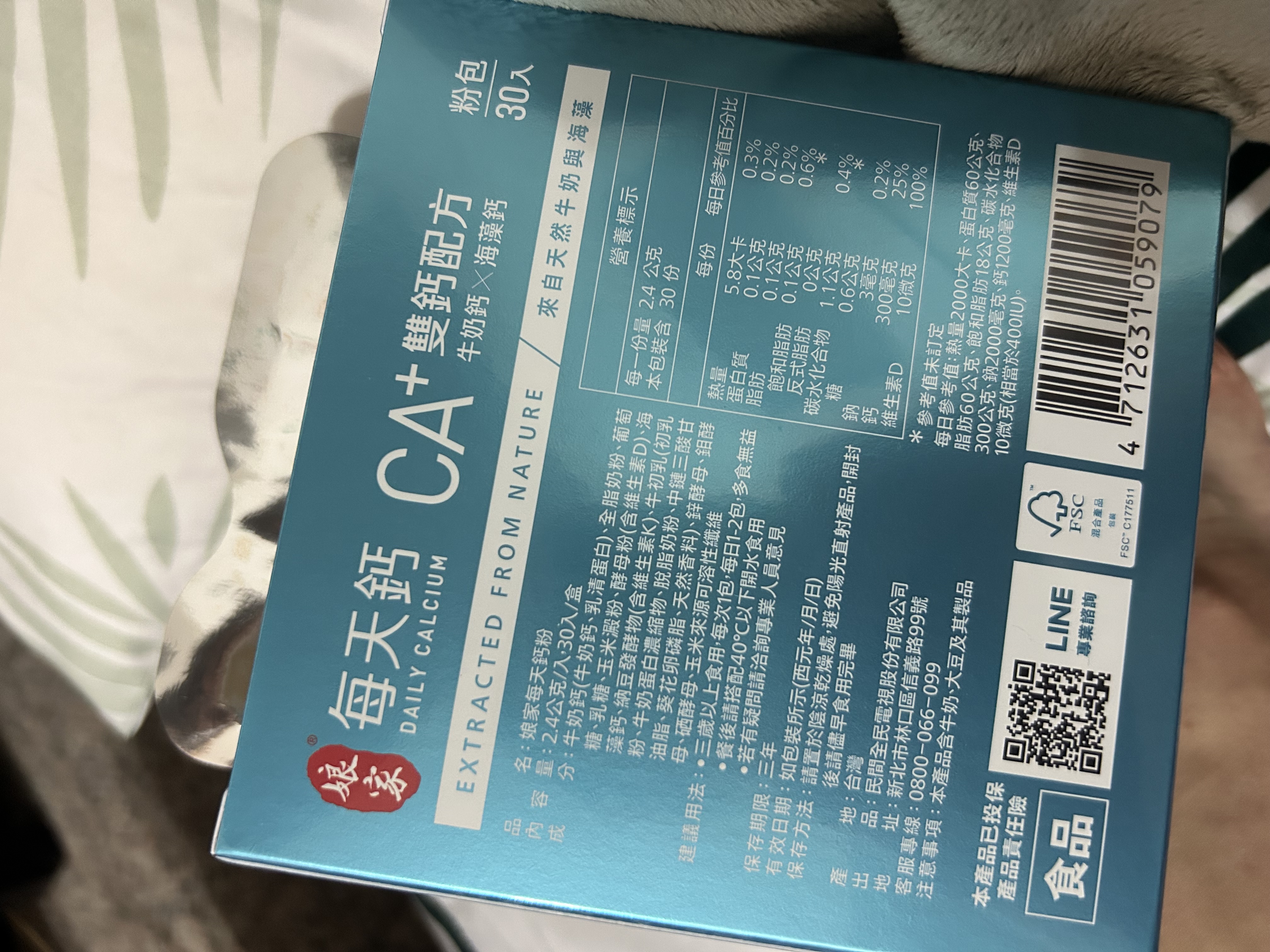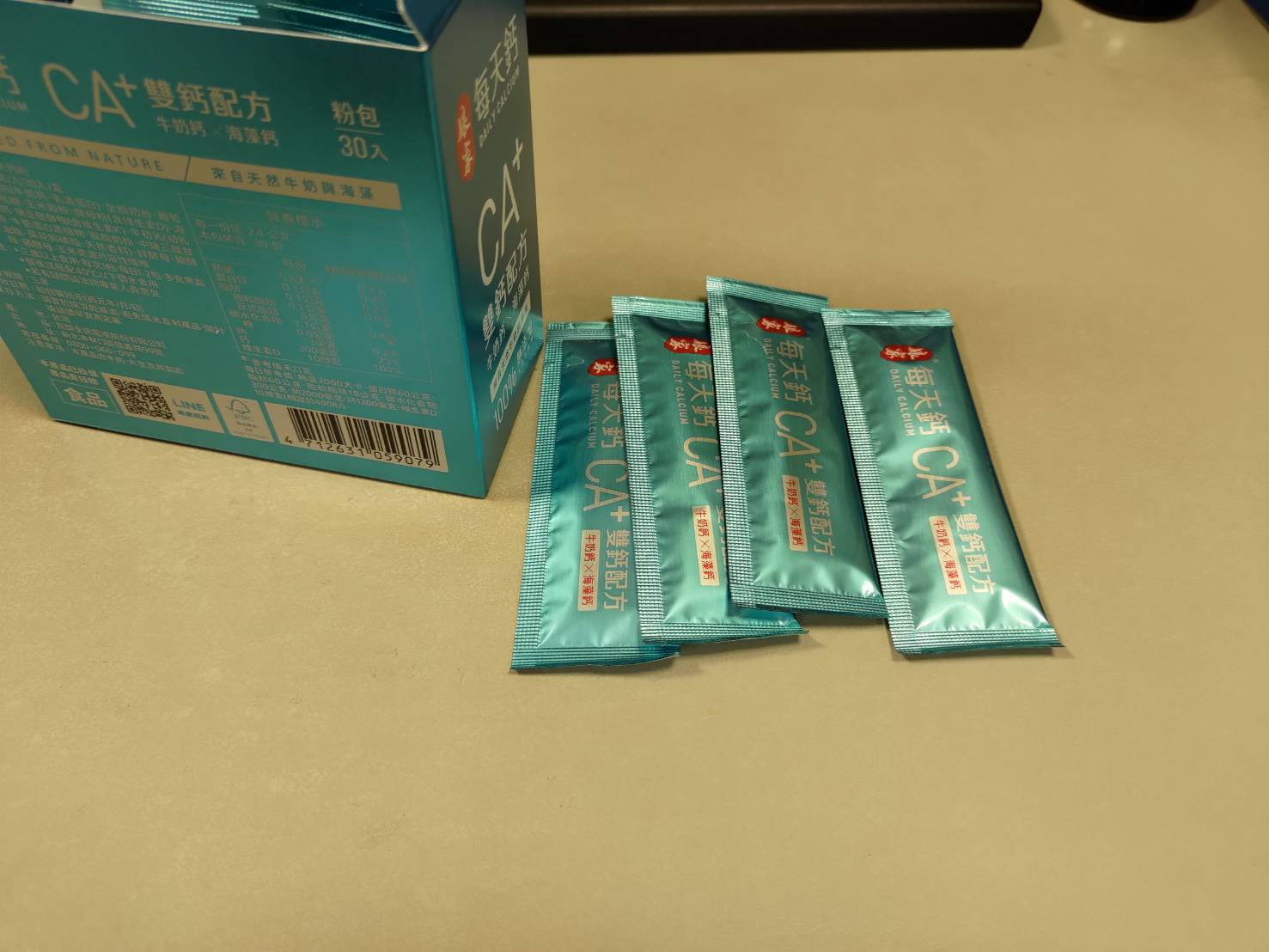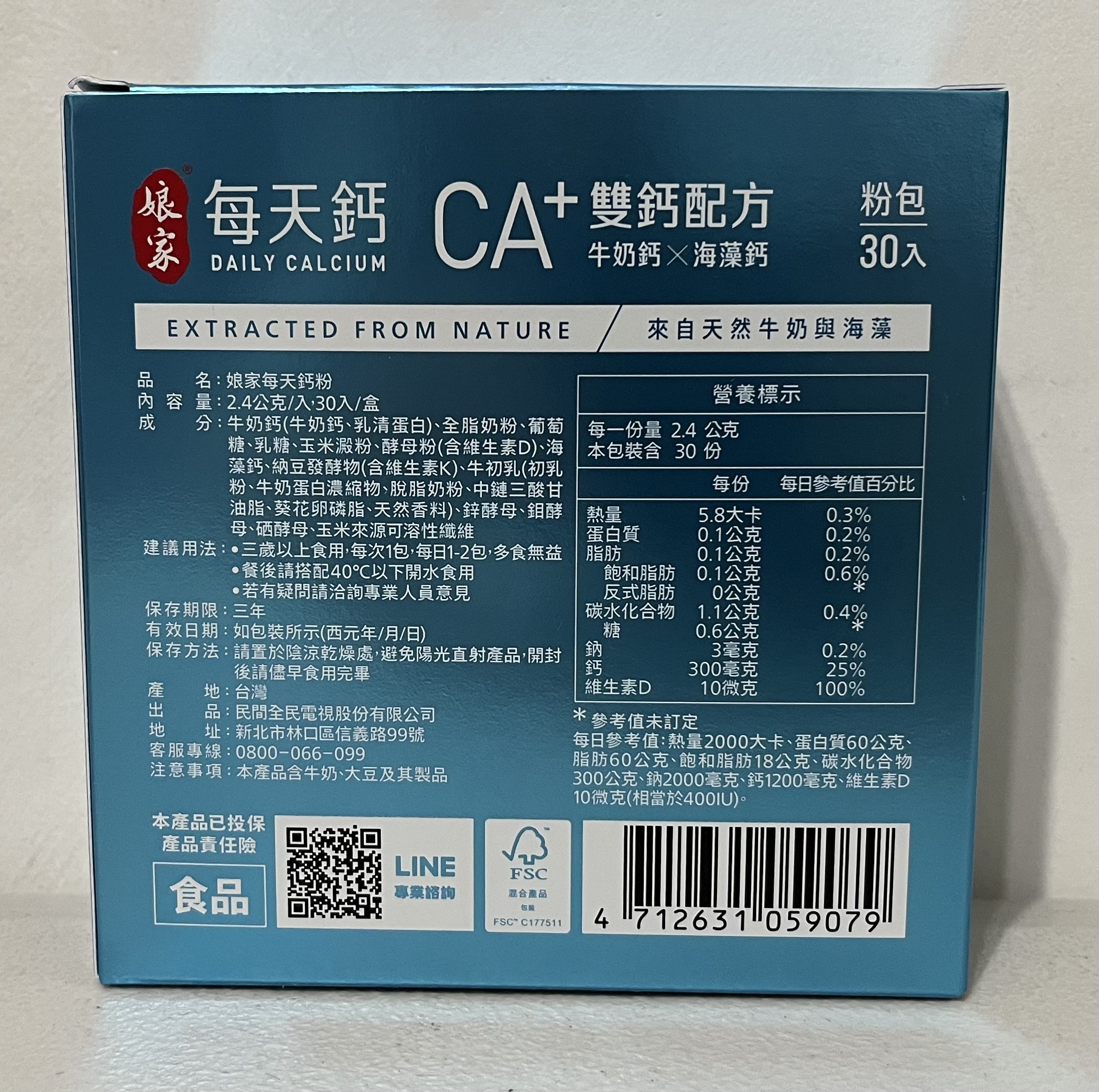 牛奶鈣(牛奶鈣、乳清蛋白)、全脂奶粉、葡萄糖、乳糖、玉米澱粉、酵母粉(含維生素D)、海藻鈣、納豆發酵物(含維生素K)、牛初乳(初乳粉、牛奶蛋白濃縮物、脫脂奶粉、中鏈三酸甘油脂、葵花卵磷脂、天然香料)、鋅酵母、鉬酵母、硒酵母、玉米來源可溶性纖維。