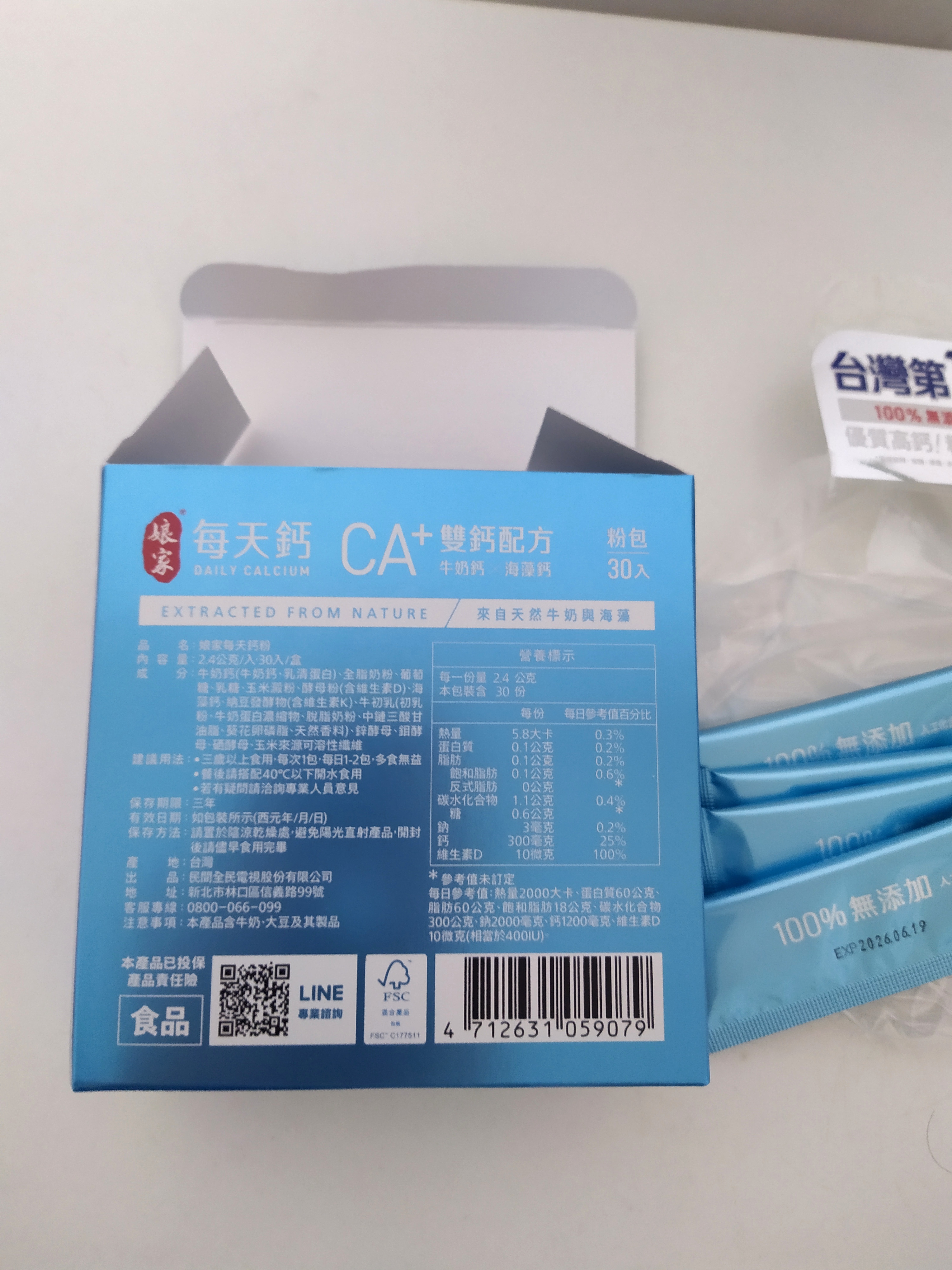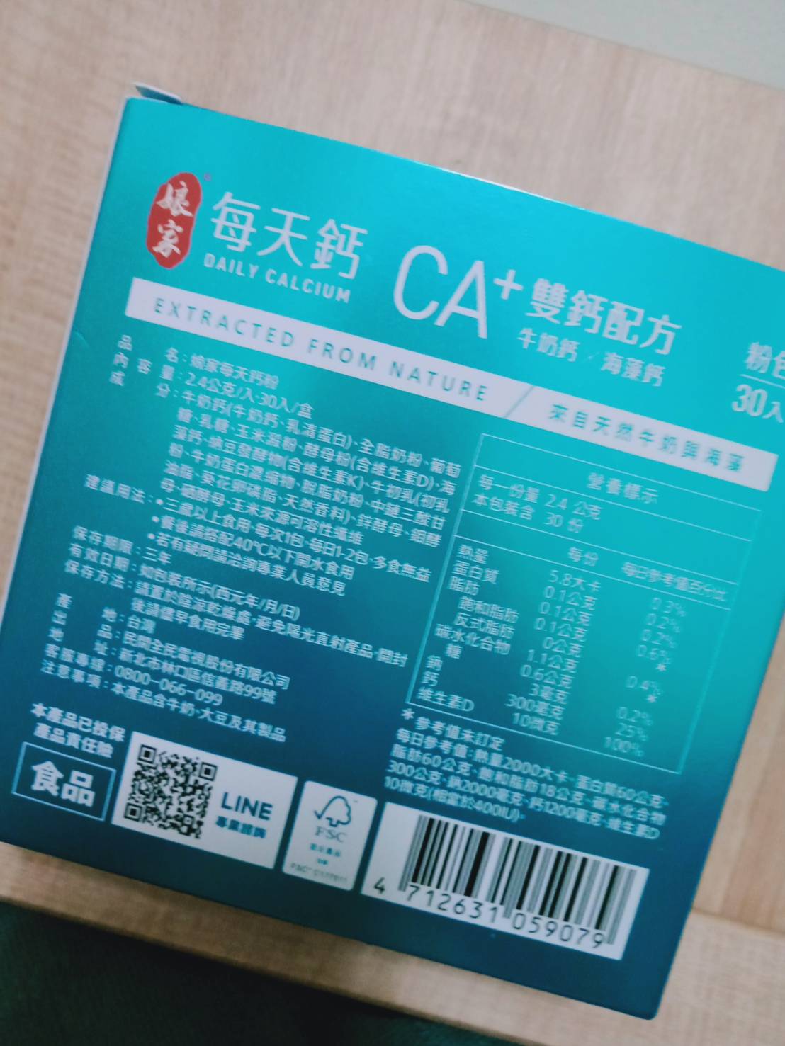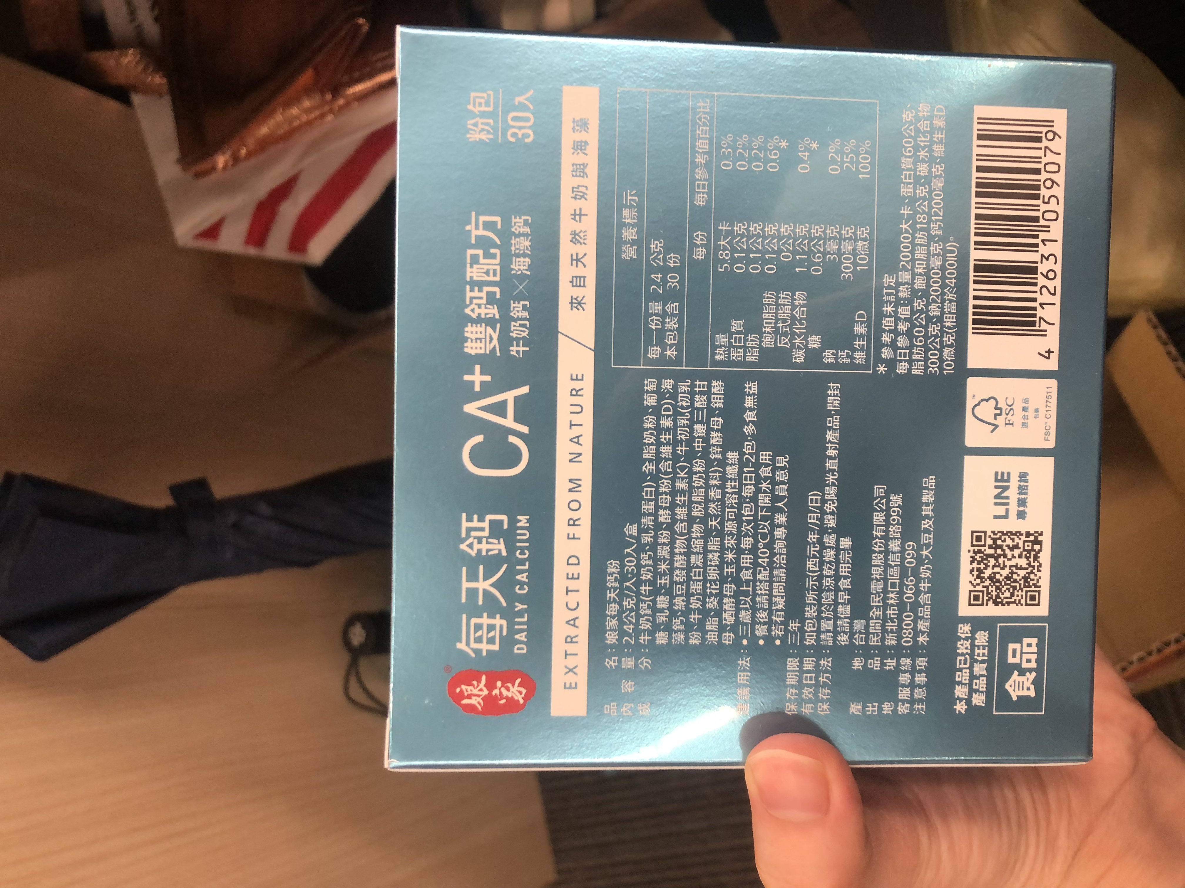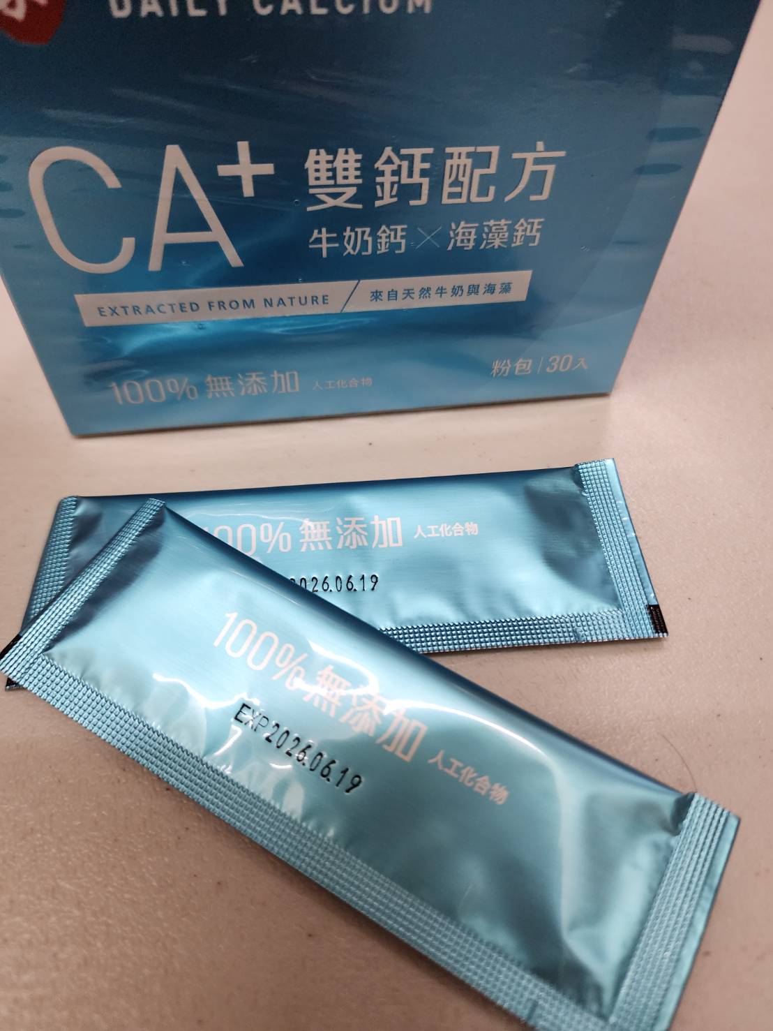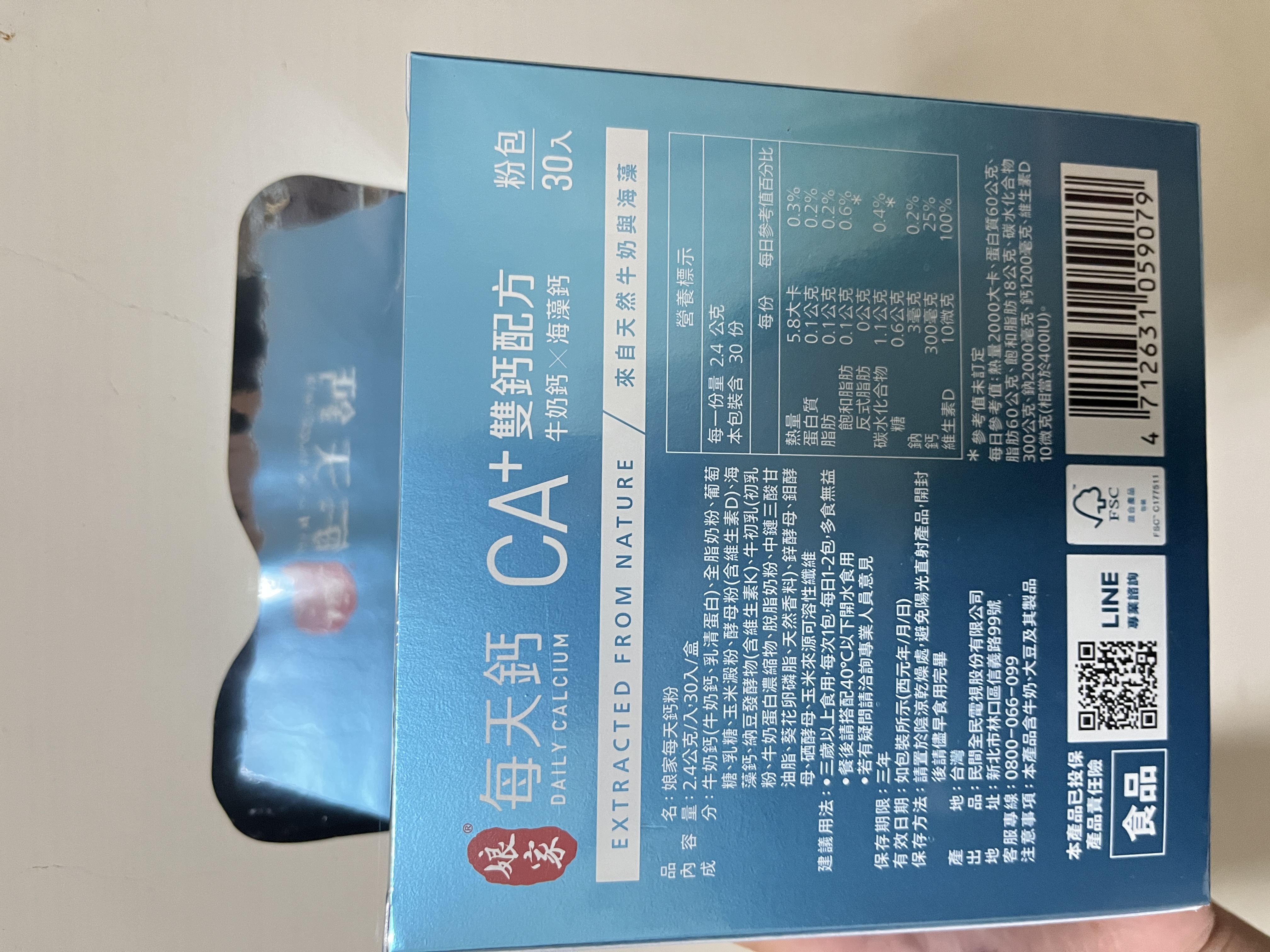 牛奶鈣(牛奶鈣、乳清蛋白)、全脂奶粉、葡萄糖、乳糖、玉米澱粉、酵母粉(含維生素D)、海藻鈣、納豆發酵物(含維生素K)、牛初乳(初乳粉、牛奶蛋白濃縮物、脫脂奶粉、中鏈三酸甘油脂、葵花卵磷脂、天然香料)、鋅酵母、鉬酵母、硒酵母、玉米來源可溶性纖維。