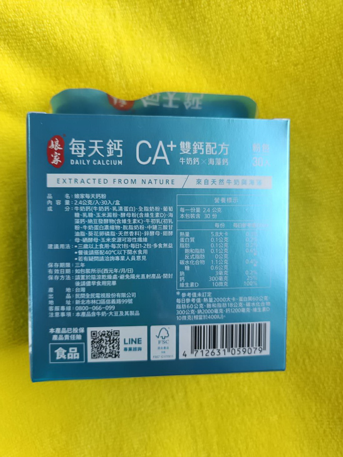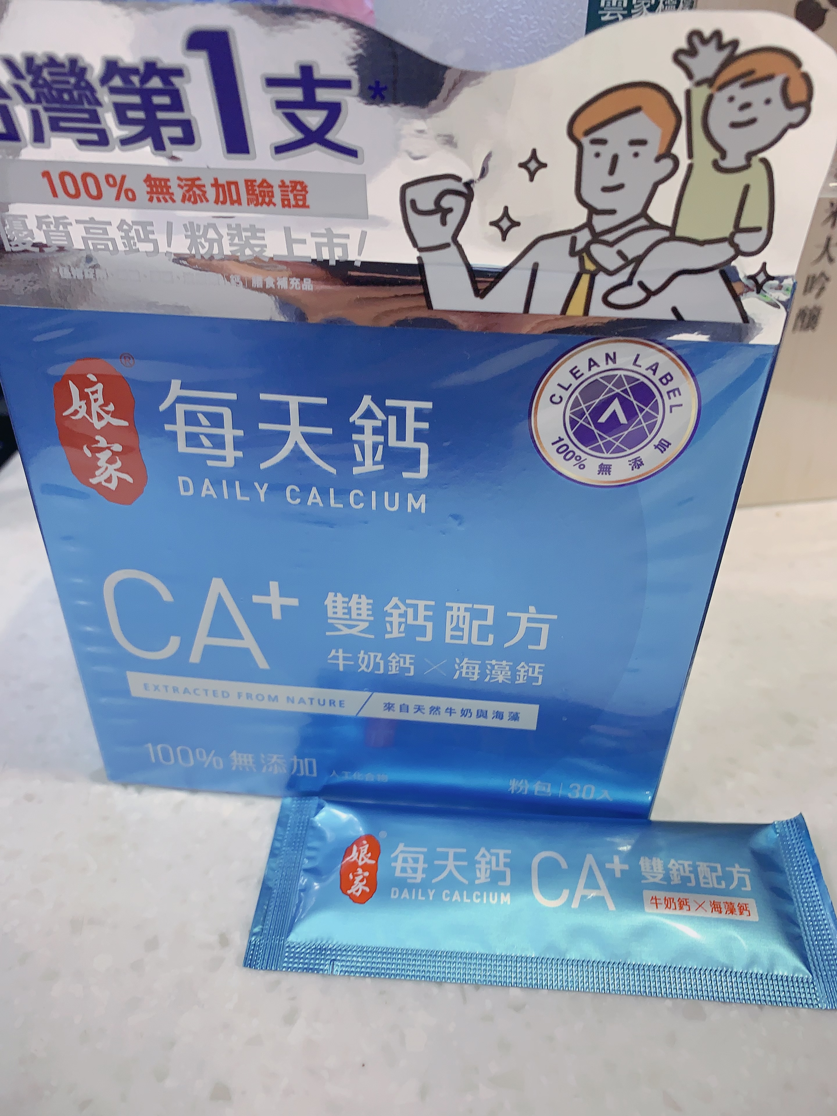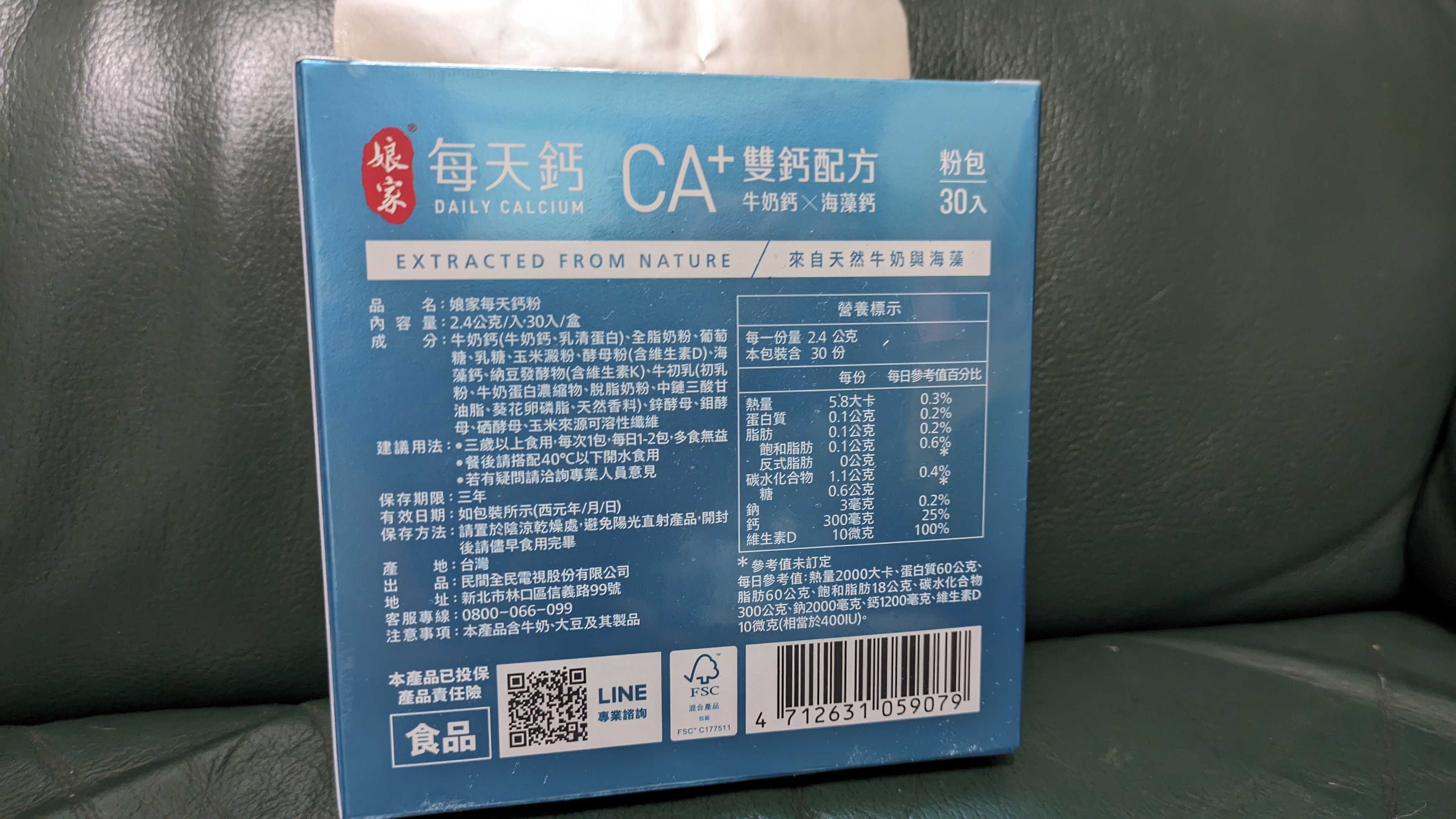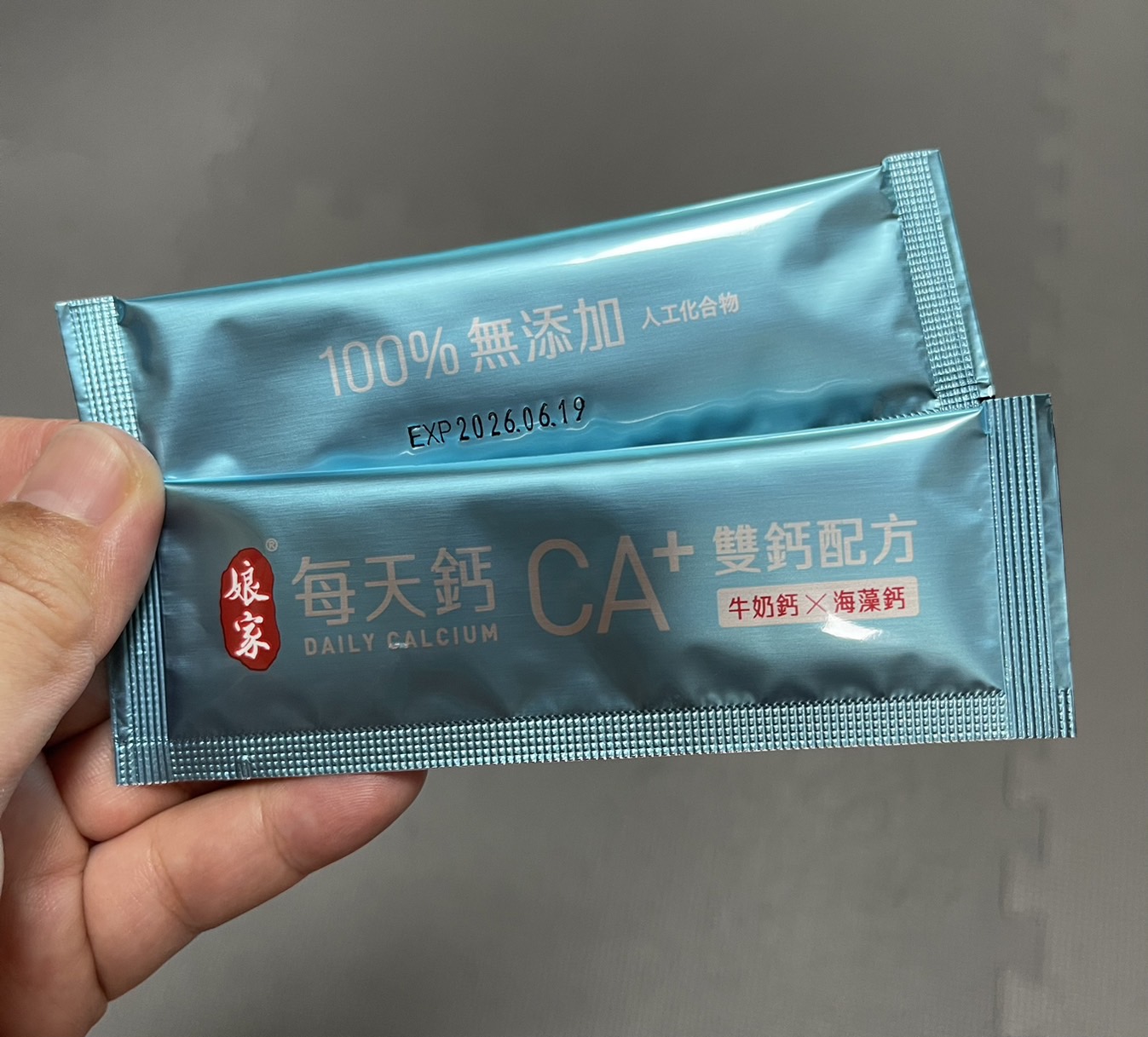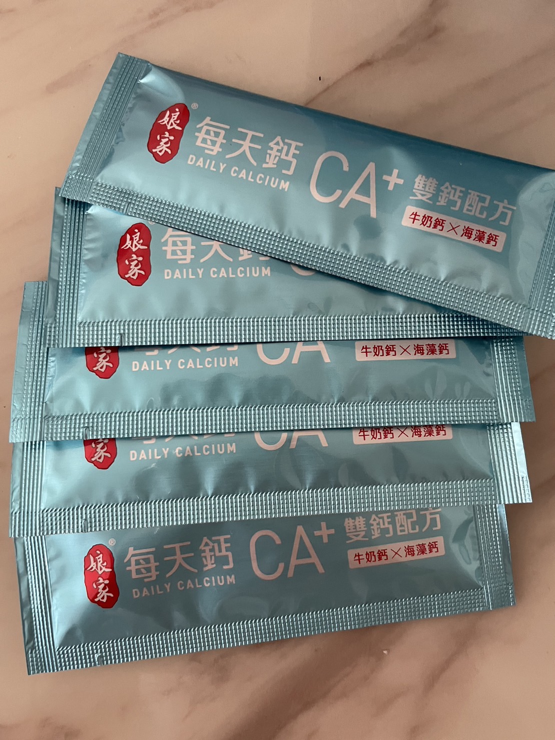 牛奶鈣(牛奶鈣、乳清蛋白)、全脂奶粉、葡萄糖、乳糖、玉米澱粉、酵母粉(含維生素D)、海藻鈣、納豆發酵物(含維生素K)、牛初乳(初乳粉、牛奶蛋白濃縮物、脫脂奶粉、中鏈三酸甘油脂、葵花卵磷脂、天然香料)、鋅酵母、鉬酵母、硒酵母、玉米來源可溶性纖維。