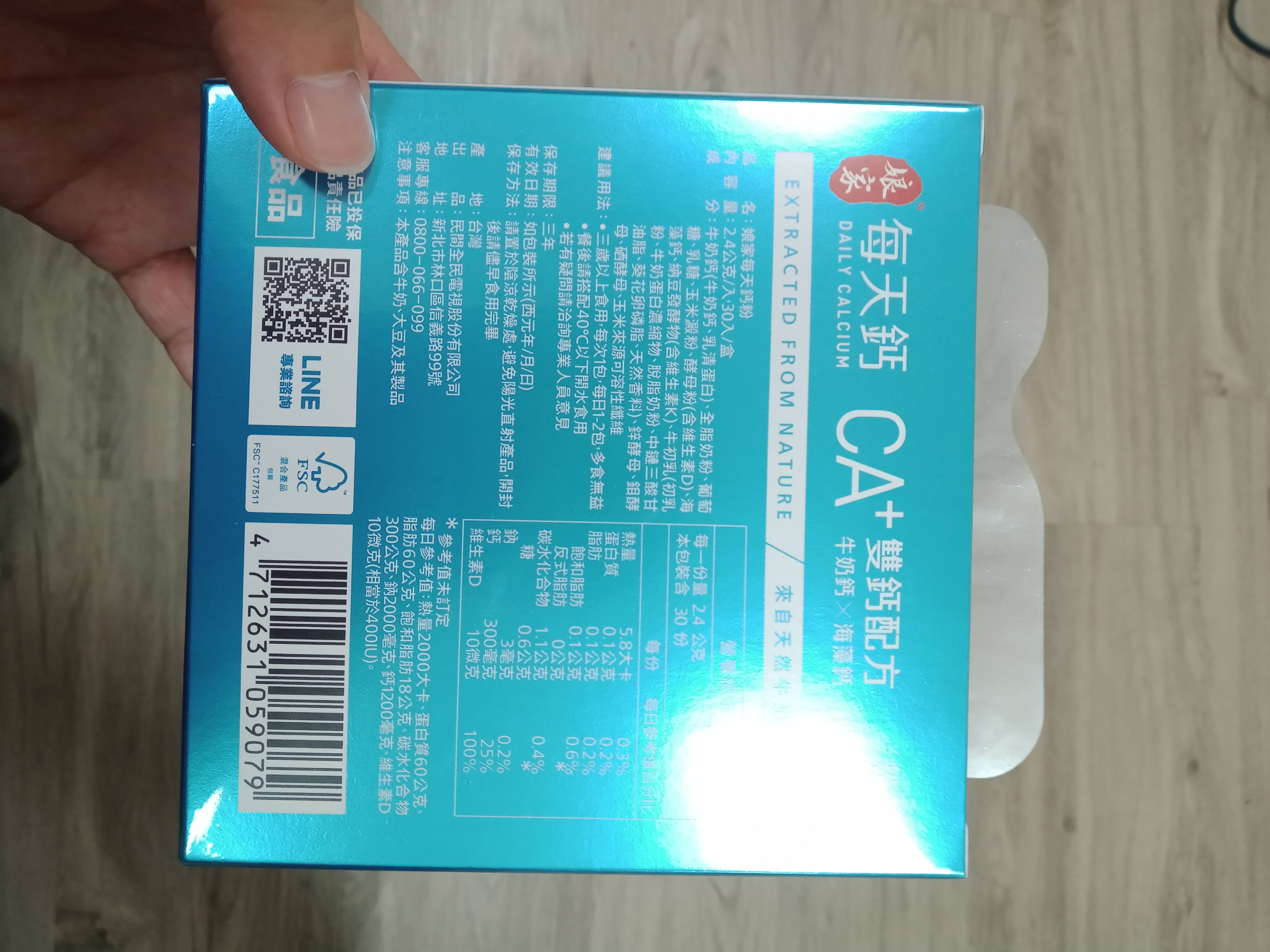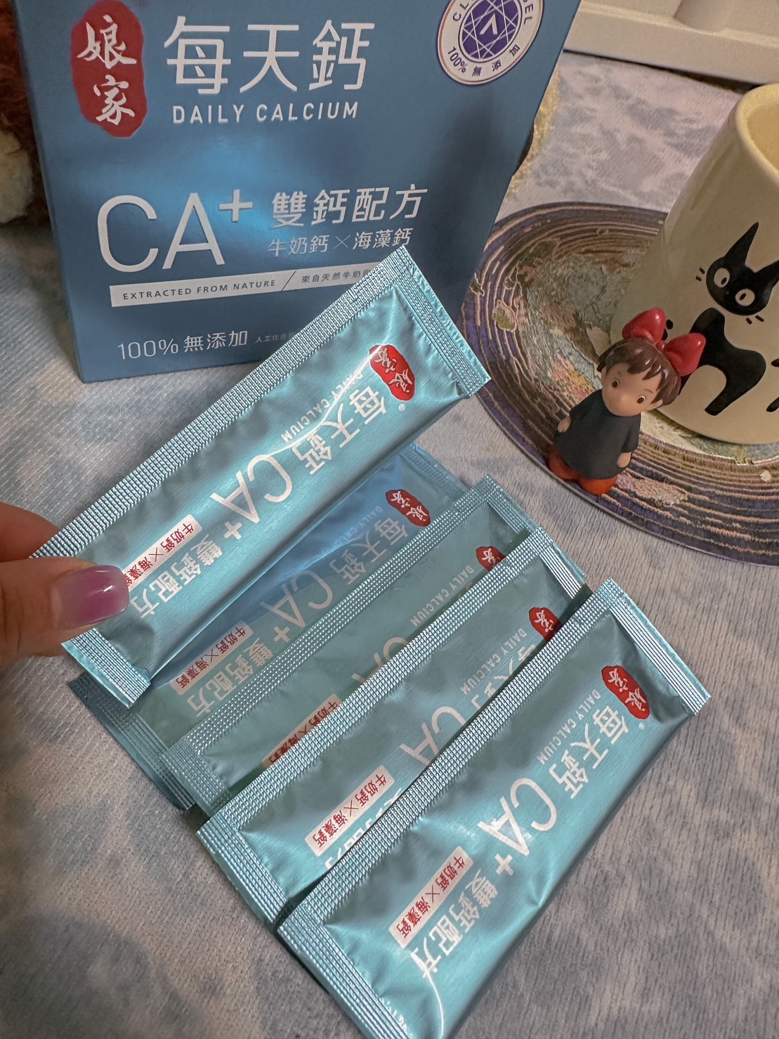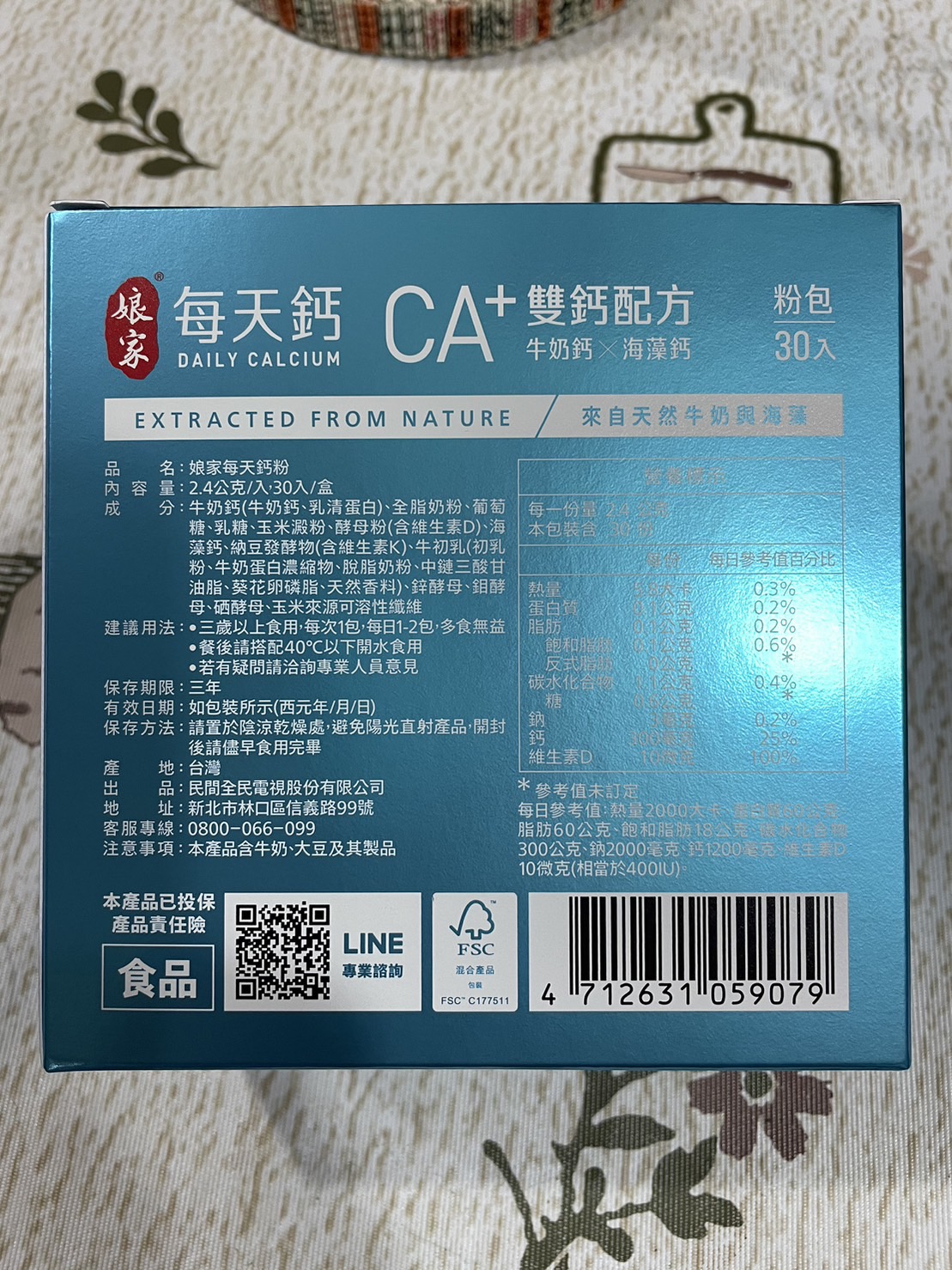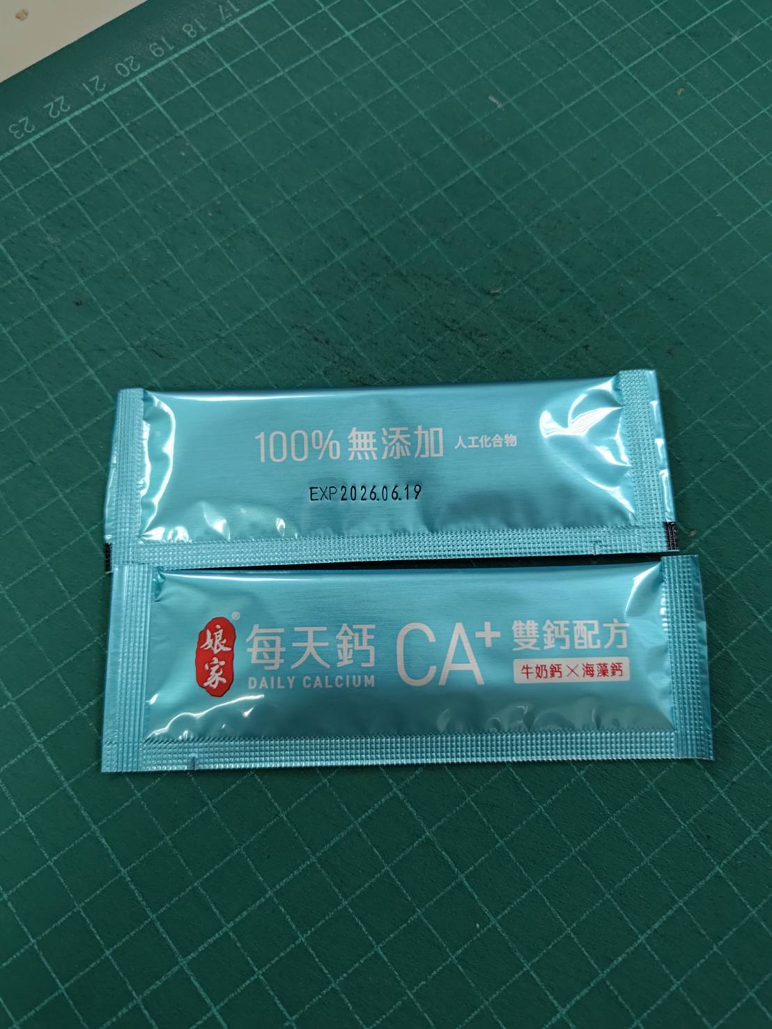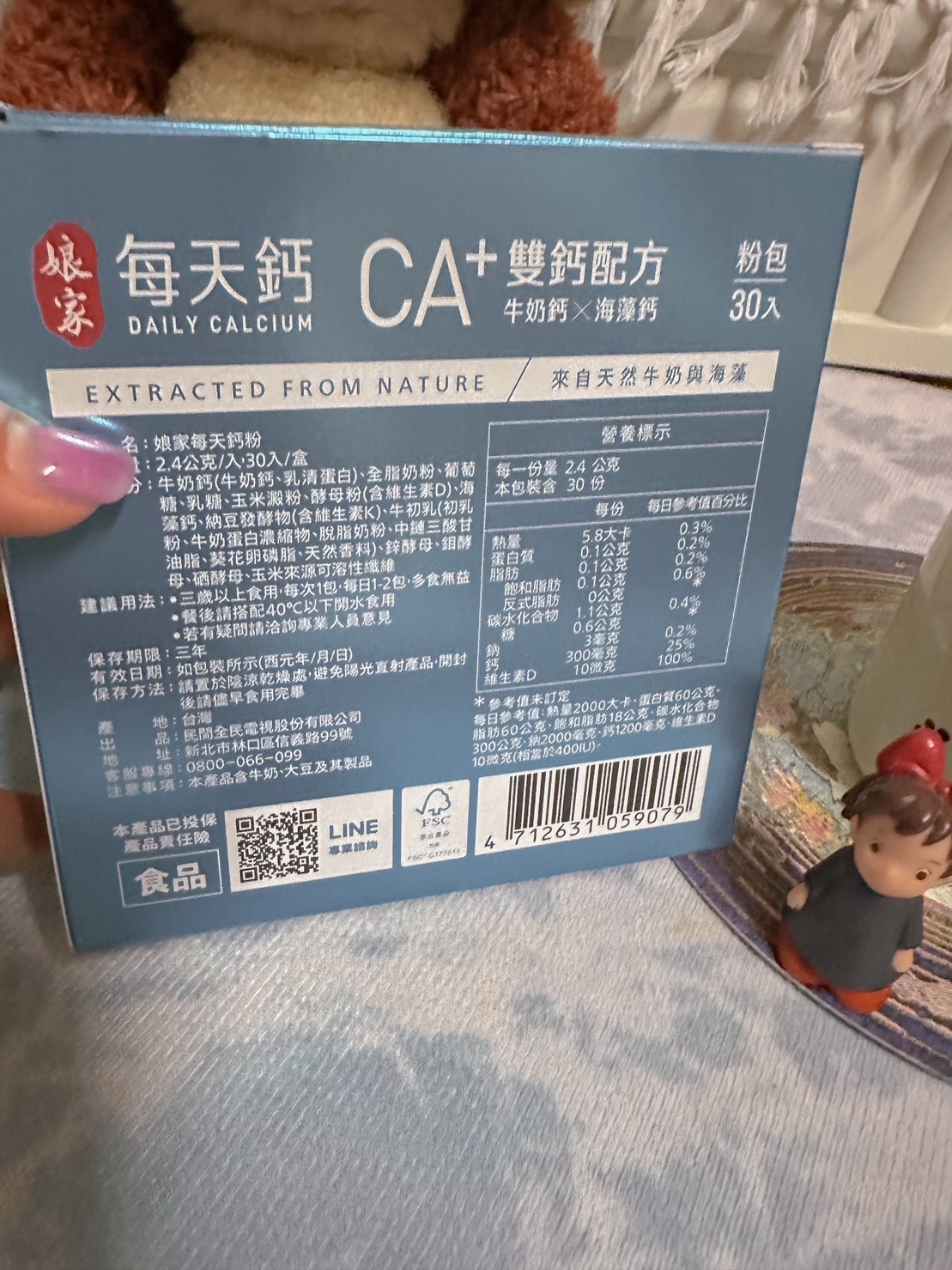 牛奶鈣(牛奶鈣、乳清蛋白)、全脂奶粉、葡萄糖、乳糖、玉米澱粉、酵母粉(含維生素D)、海藻鈣、納豆發酵物(含維生素K)、牛初乳(初乳粉、牛奶蛋白濃縮物、脫脂奶粉、中鏈三酸甘油脂、葵花卵磷脂、天然香料)、鋅酵母、鉬酵母、硒酵母、玉米來源可溶性纖維。