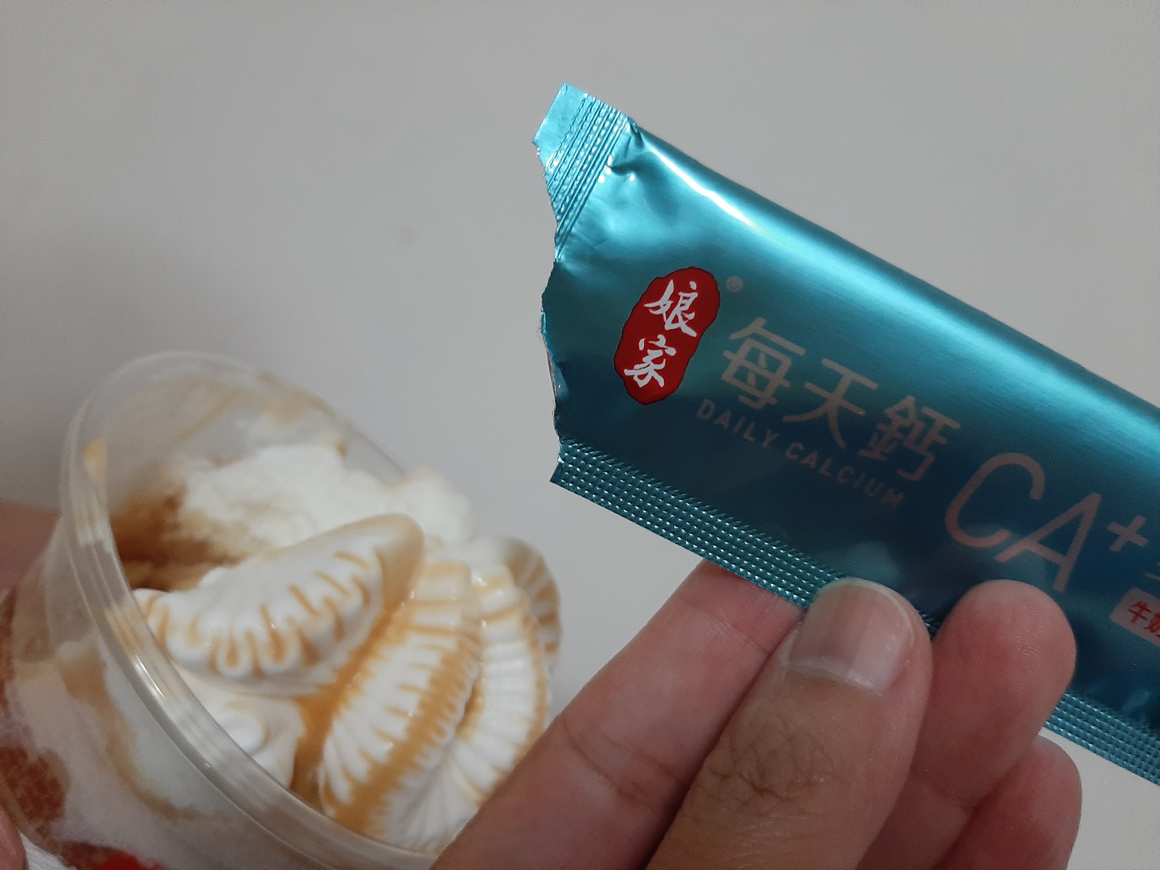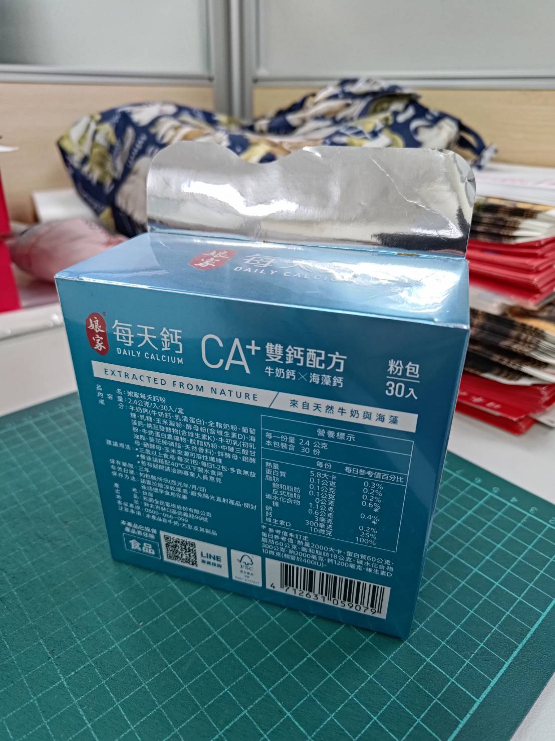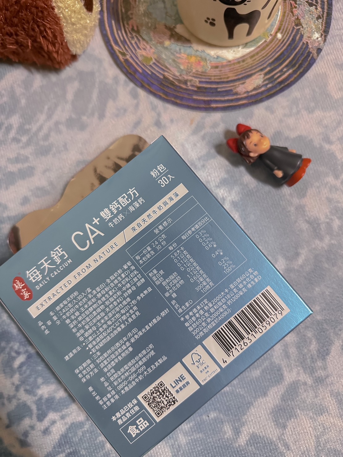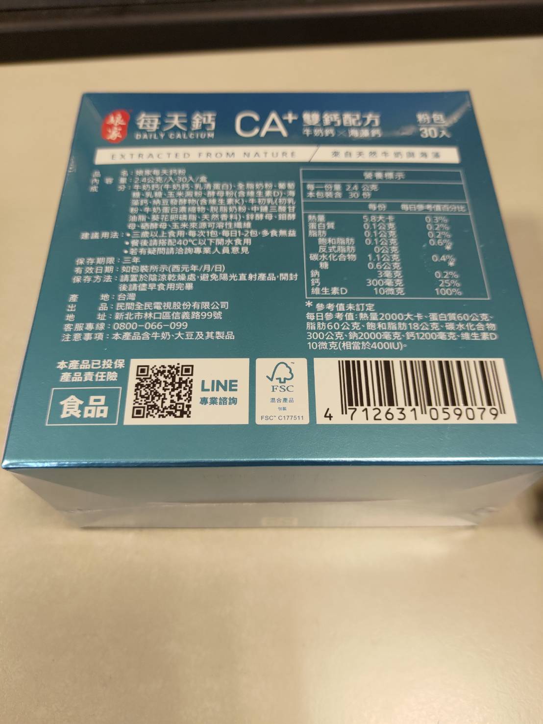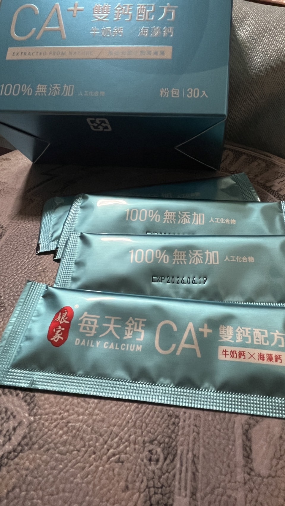 牛奶鈣(牛奶鈣、乳清蛋白)、全脂奶粉、葡萄糖、乳糖、玉米澱粉、酵母粉(含維生素D)、海藻鈣、納豆發酵物(含維生素K)、牛初乳(初乳粉、牛奶蛋白濃縮物、脫脂奶粉、中鏈三酸甘油脂、葵花卵磷脂、天然香料)、鋅酵母、鉬酵母、硒酵母、玉米來源可溶性纖維。