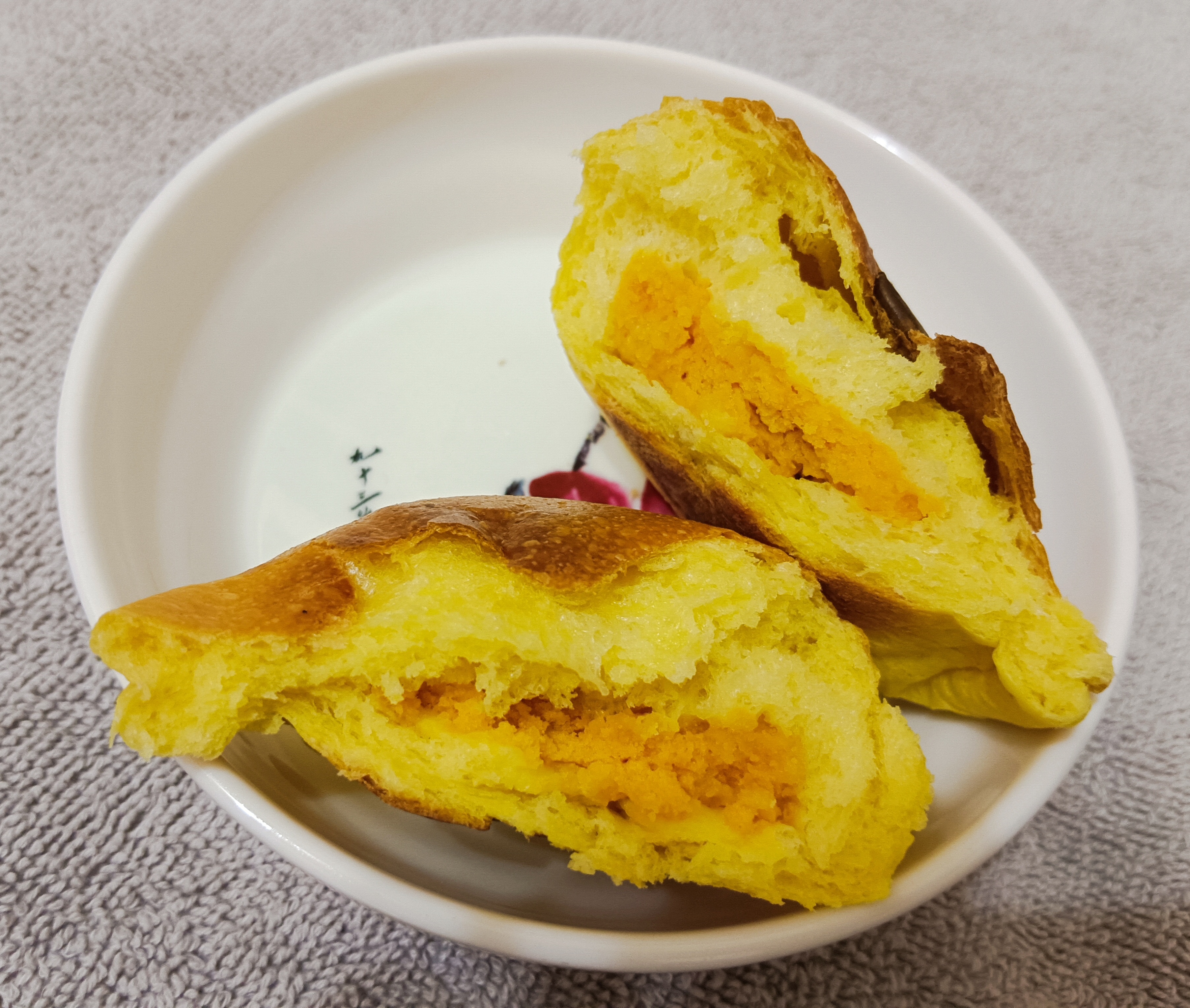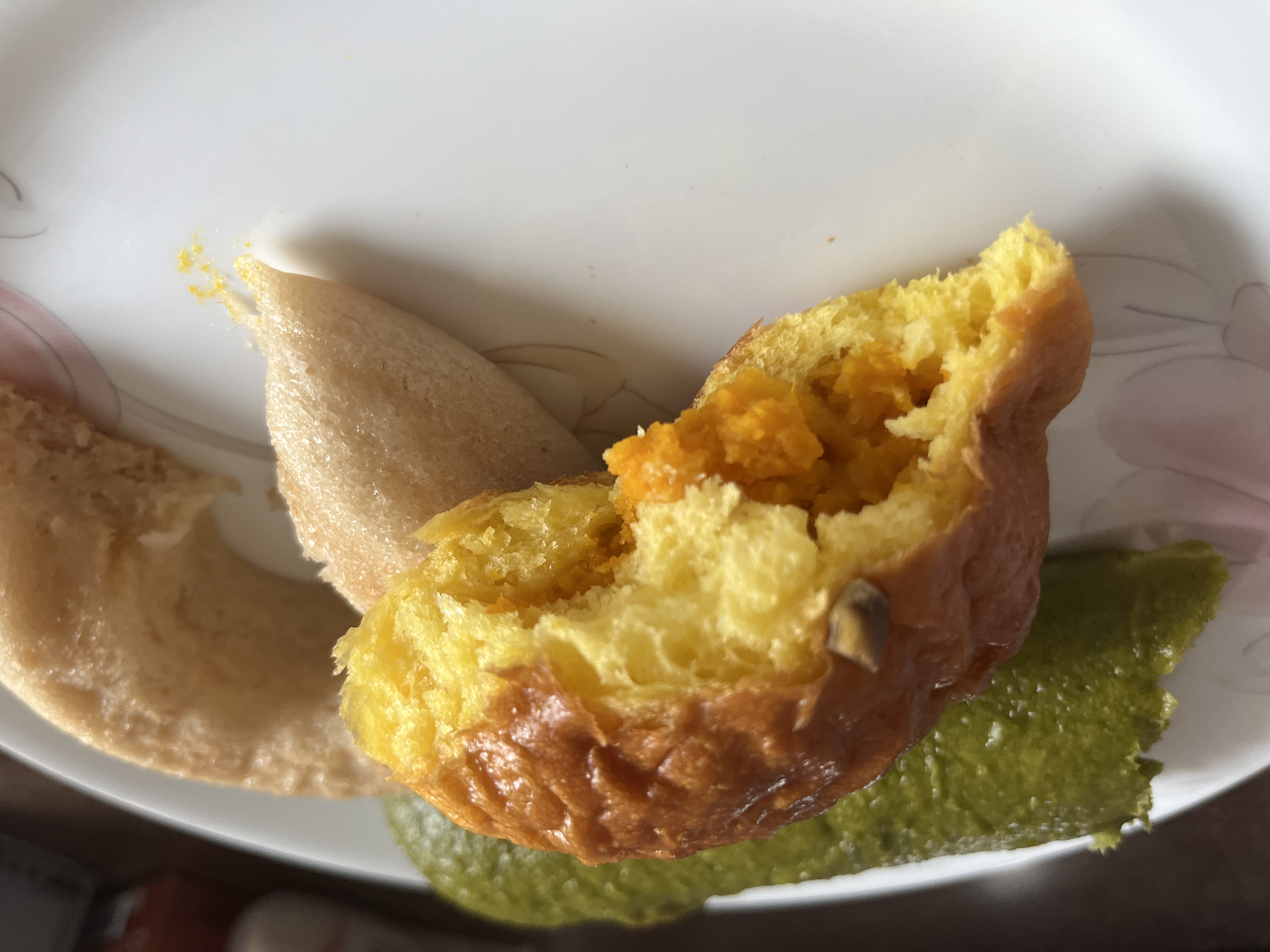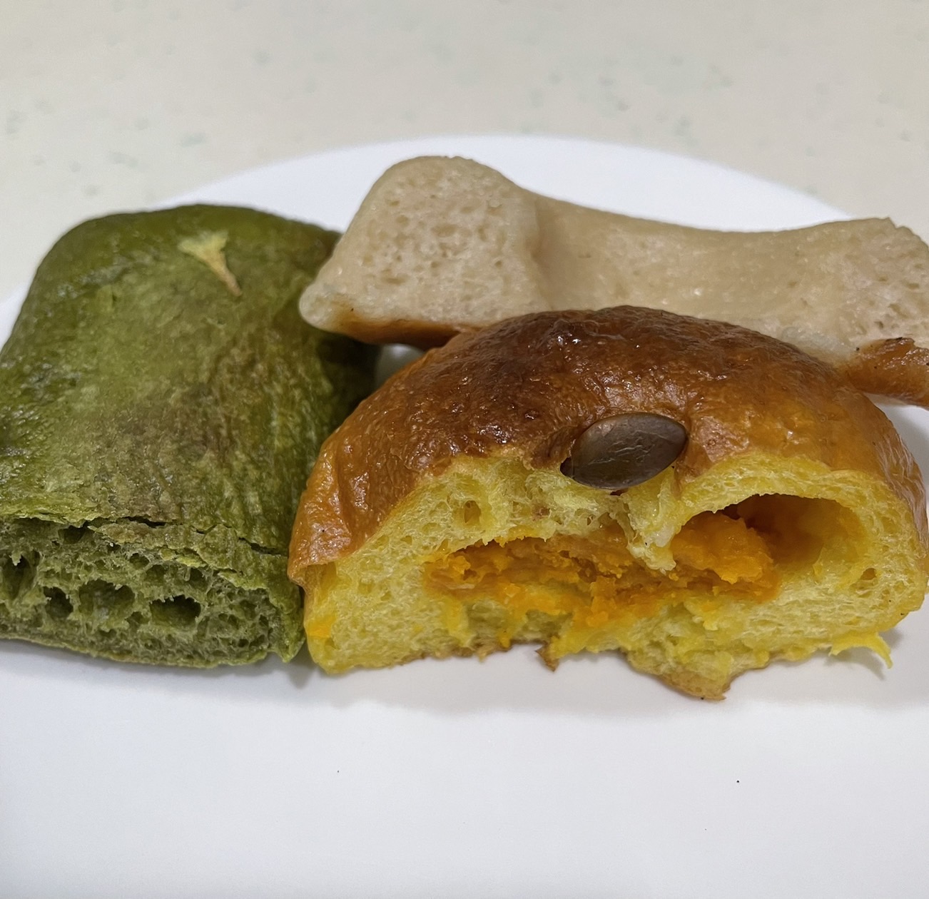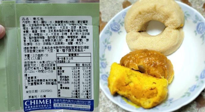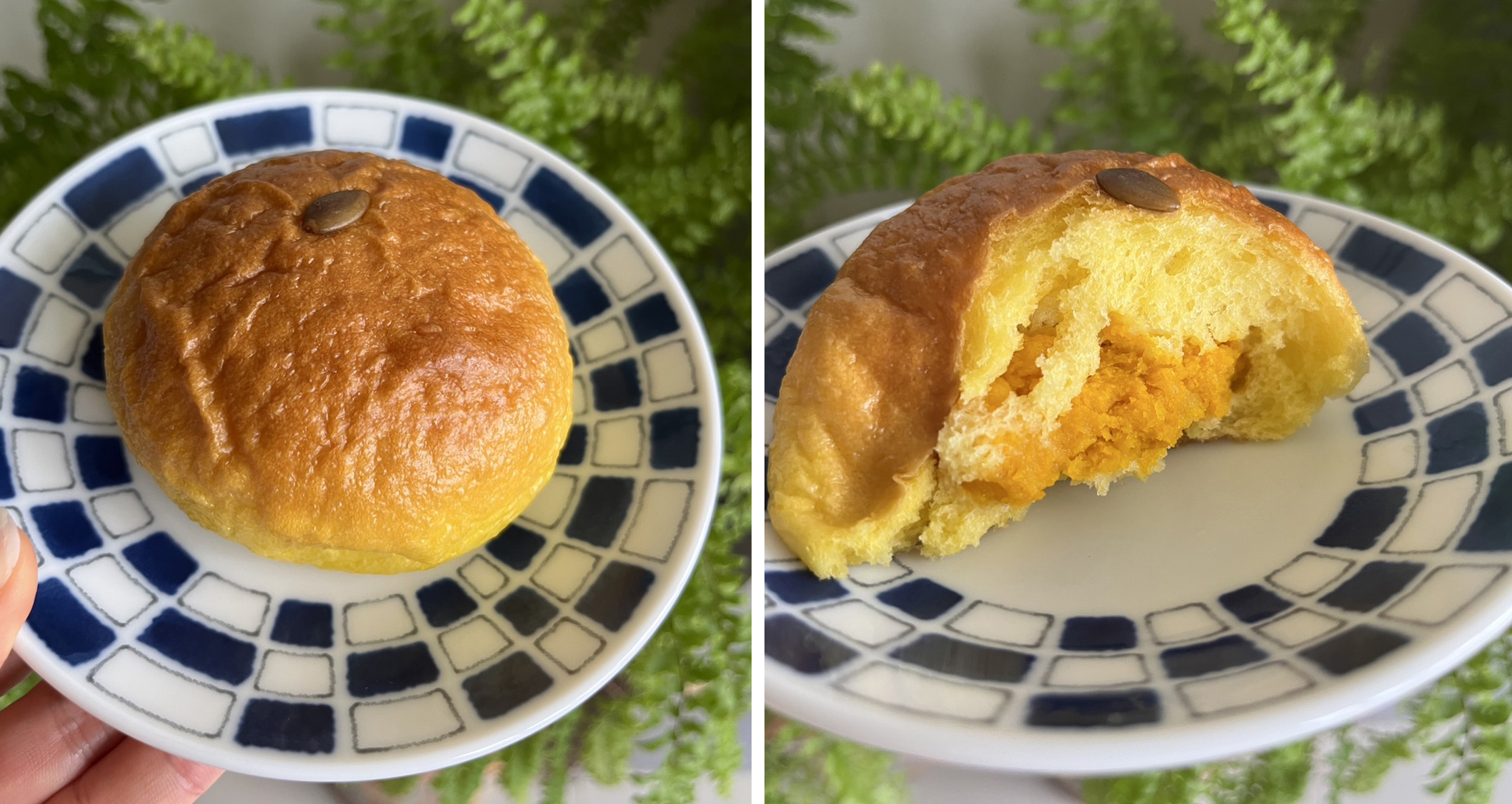 B. 南瓜包(蛋素): 日本熊本麵粉、日本熊本無麩質米粉、日本專利植物大豆脂肪抹醬、新鮮南瓜泥