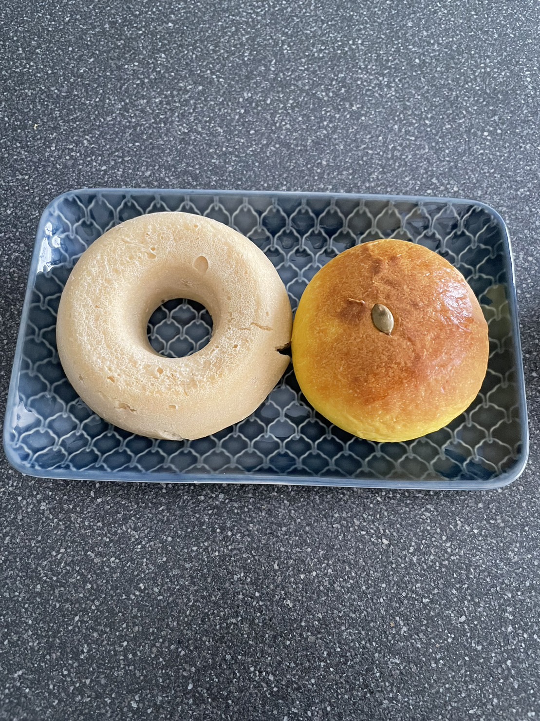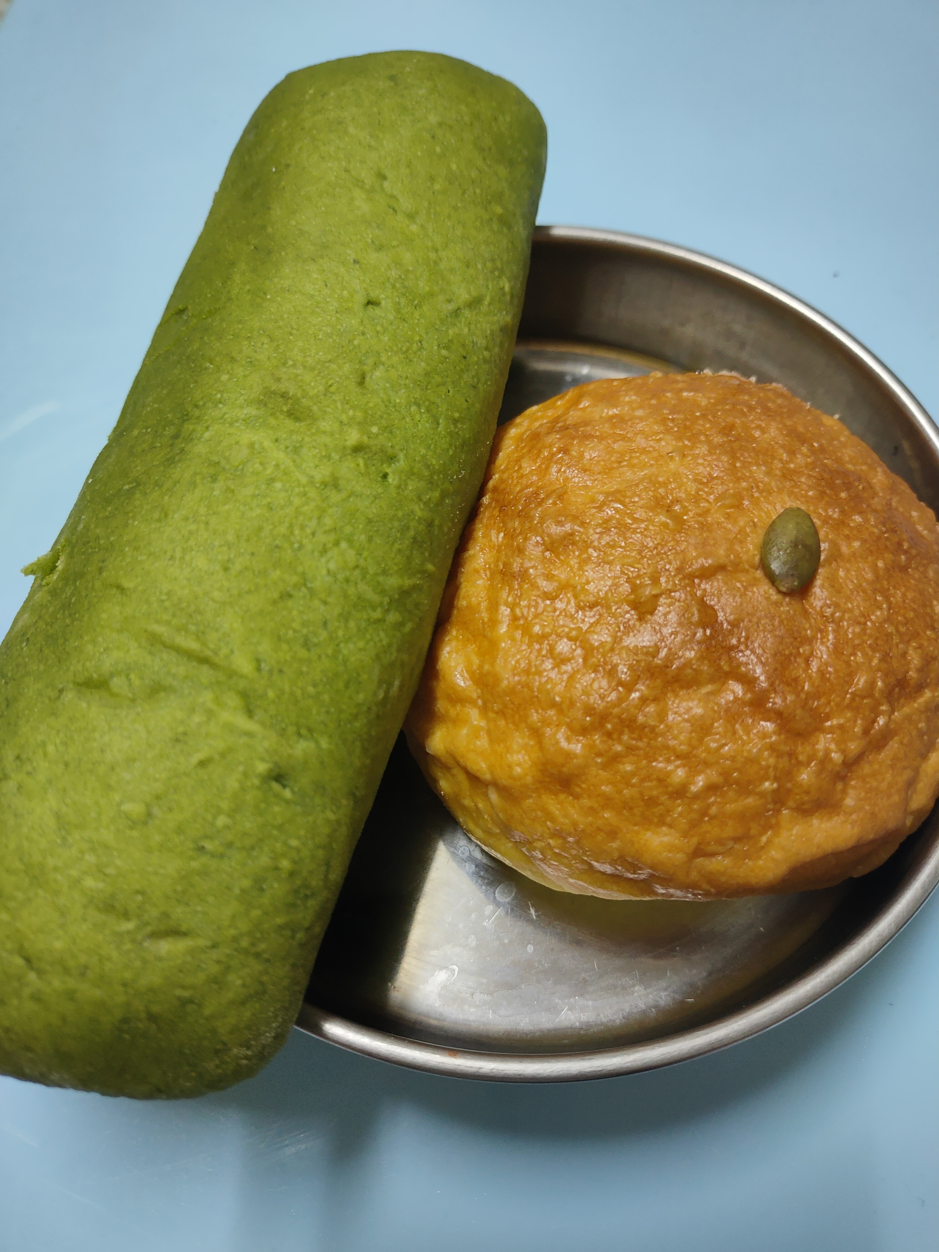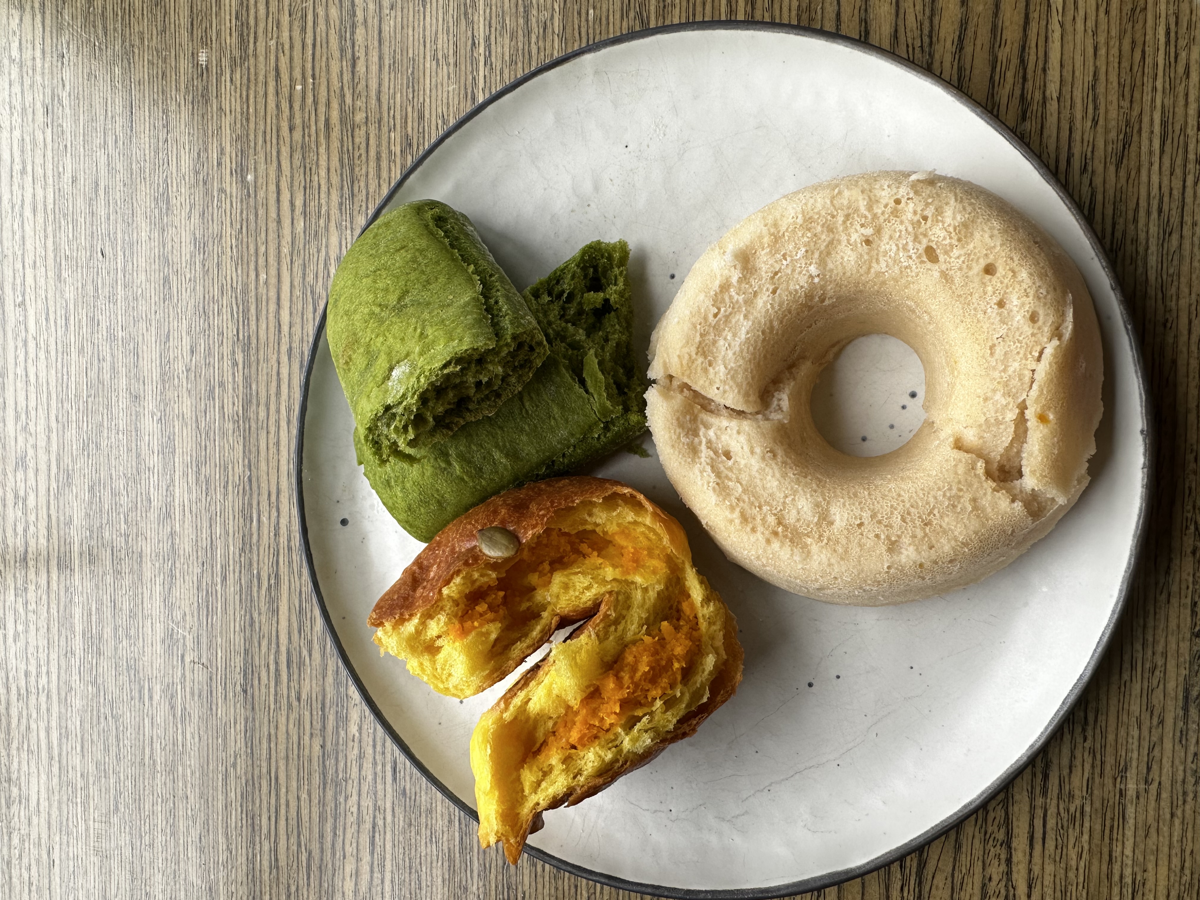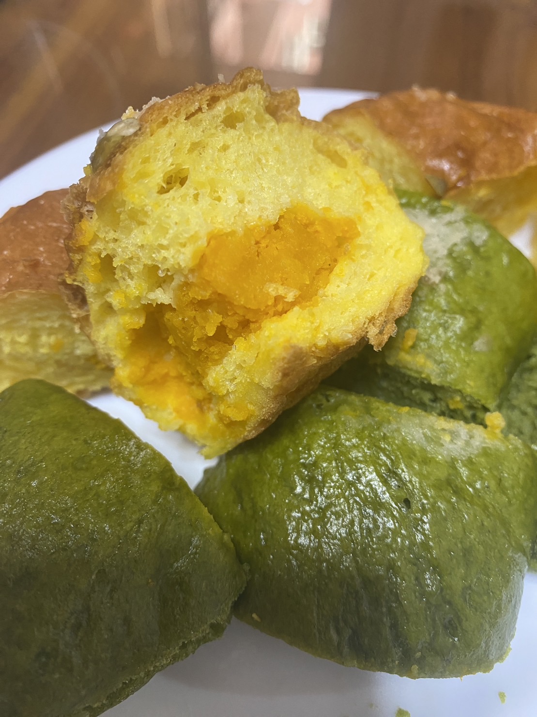 B. 南瓜包(蛋素): 日本熊本麵粉、日本熊本無麩質米粉、日本專利植物大豆脂肪抹醬、新鮮南瓜泥