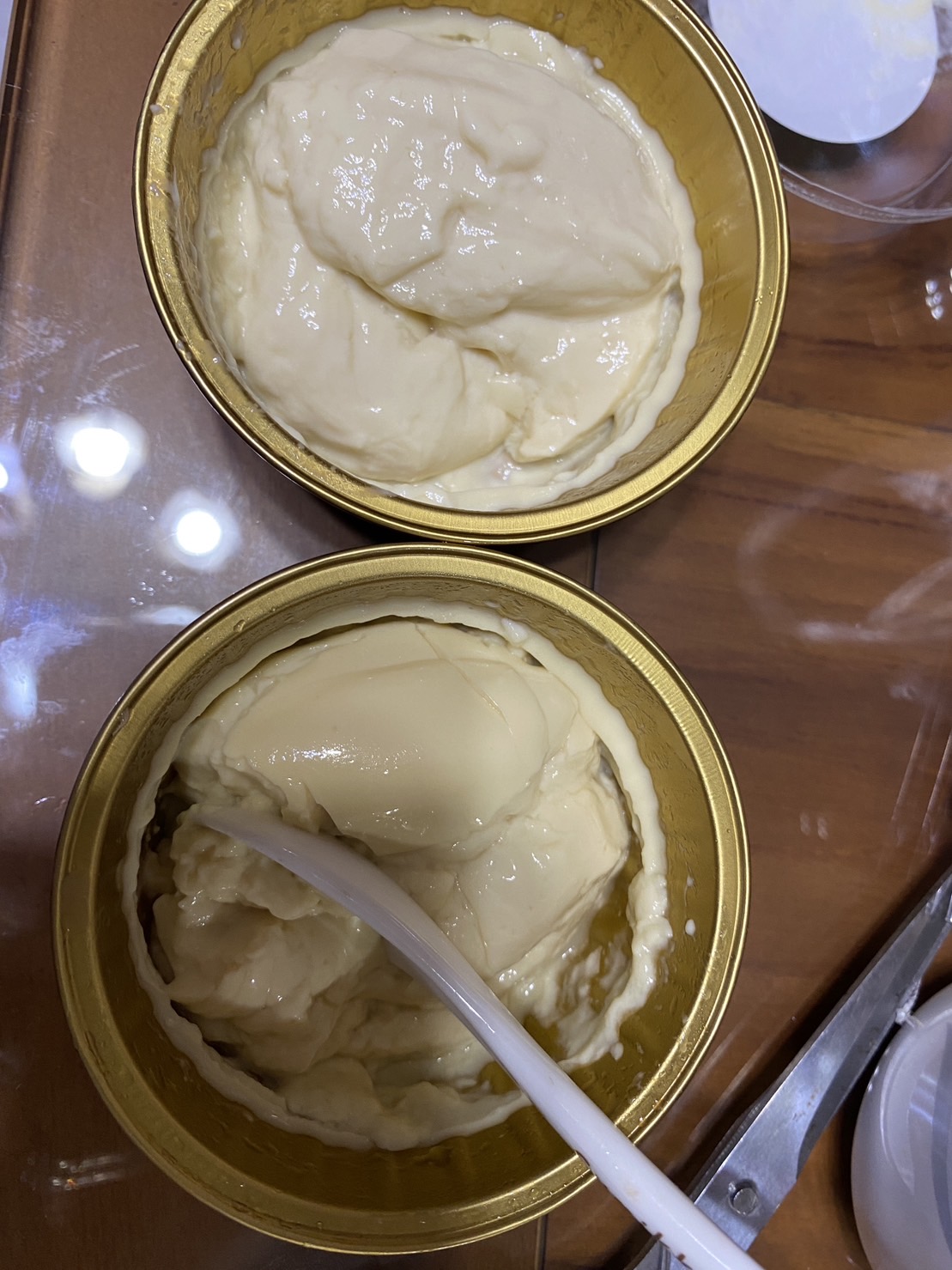 D. 豆乳布丁(奶蛋素): 日本專利植物大豆脂肪抹醬、日本海藻糖、豆漿、牛乳、蛋