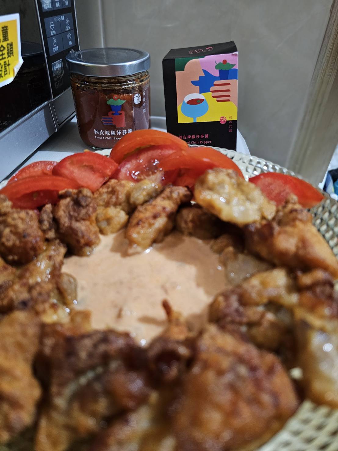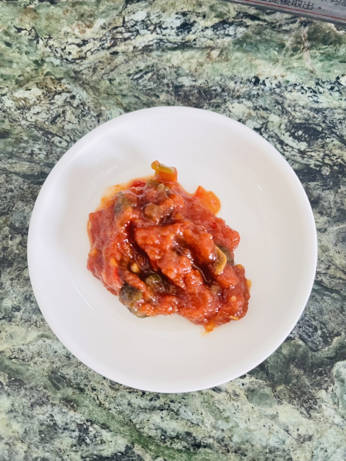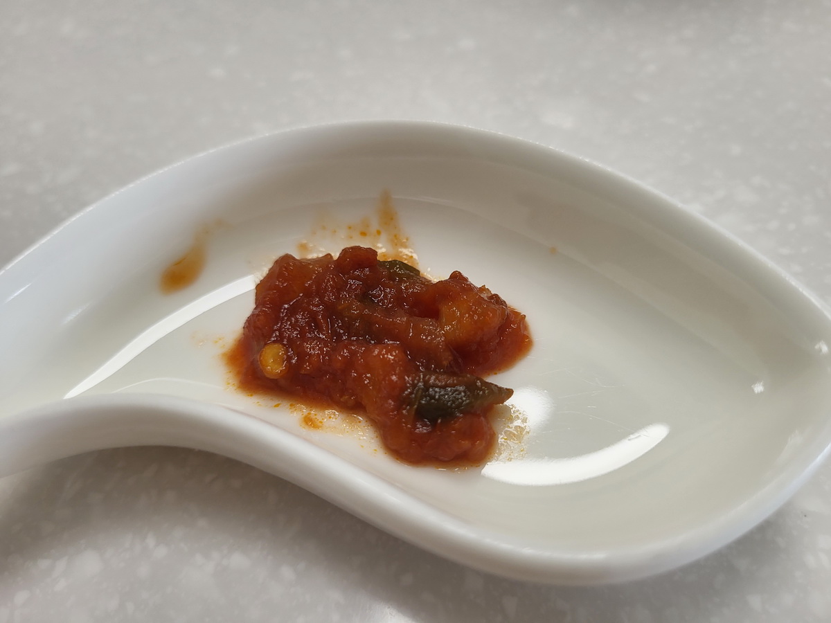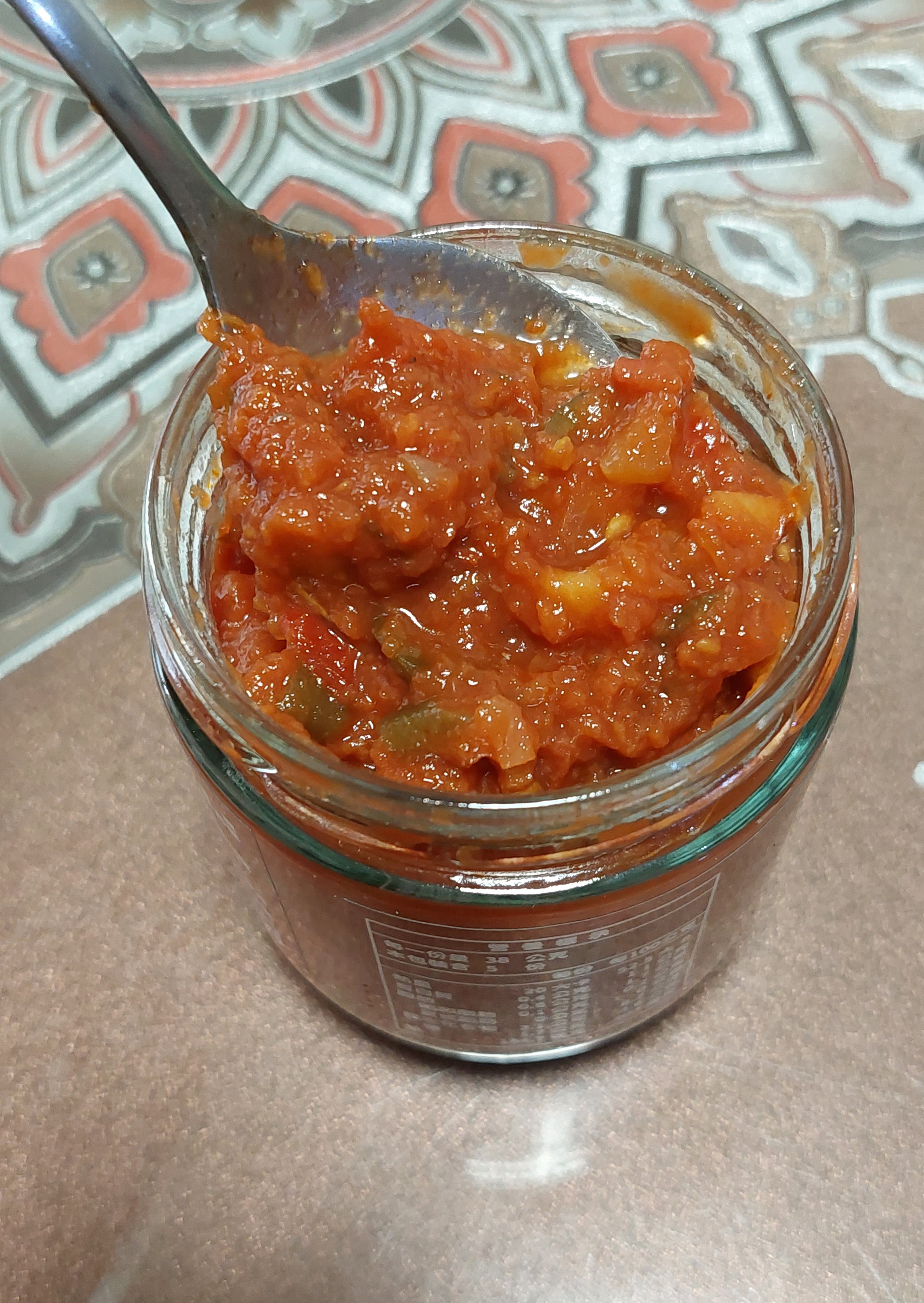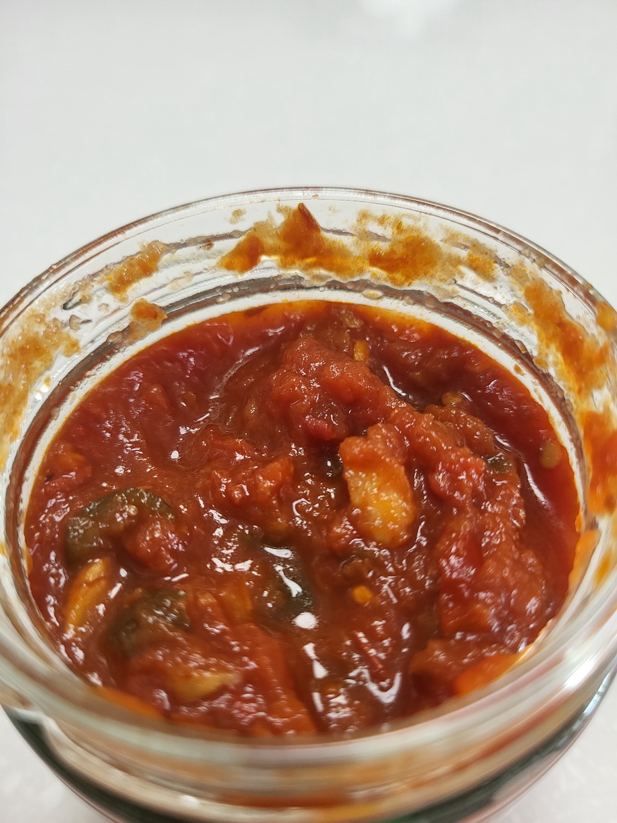 蕃茄丁(蕃茄)、洋蔥、剝皮辣椒[水、辣椒、大豆胺基酸液、糖、鹽、調味劑(L-麩酸鈉、檸檬酸)、甜味劑(甘草酸銨)、品質改良劑(氯化鈣)]、蕃茄糊[蕃茄糊、食鹽、檸檬酸]、荸薺、檸檬、辣椒、蒜頭、芥花油、海鹽
