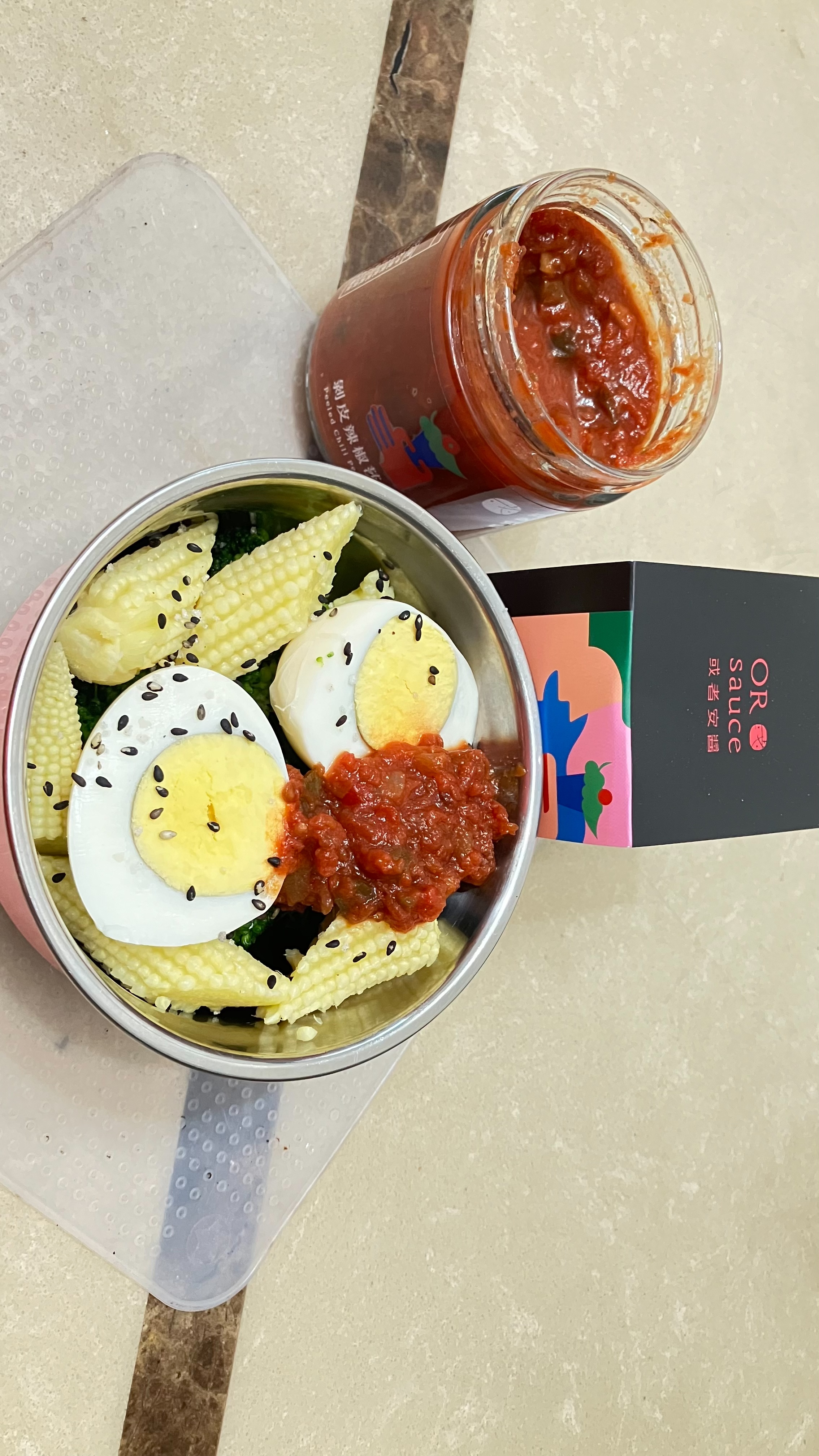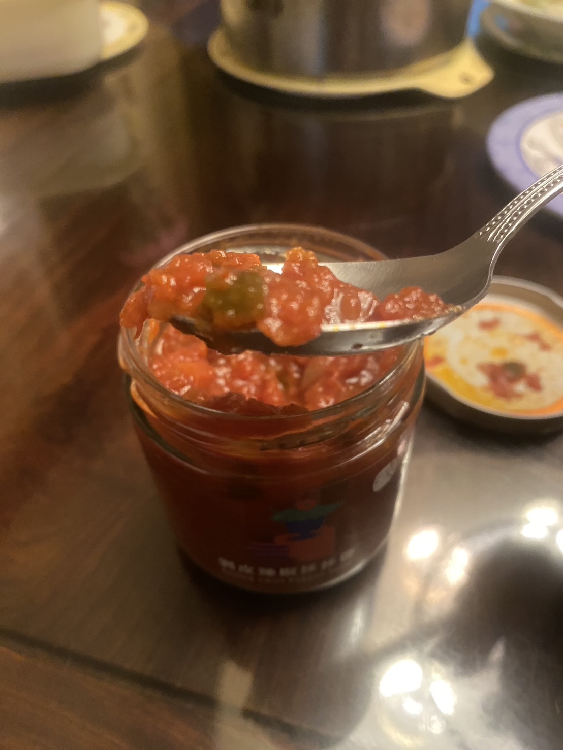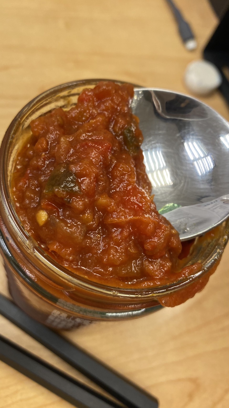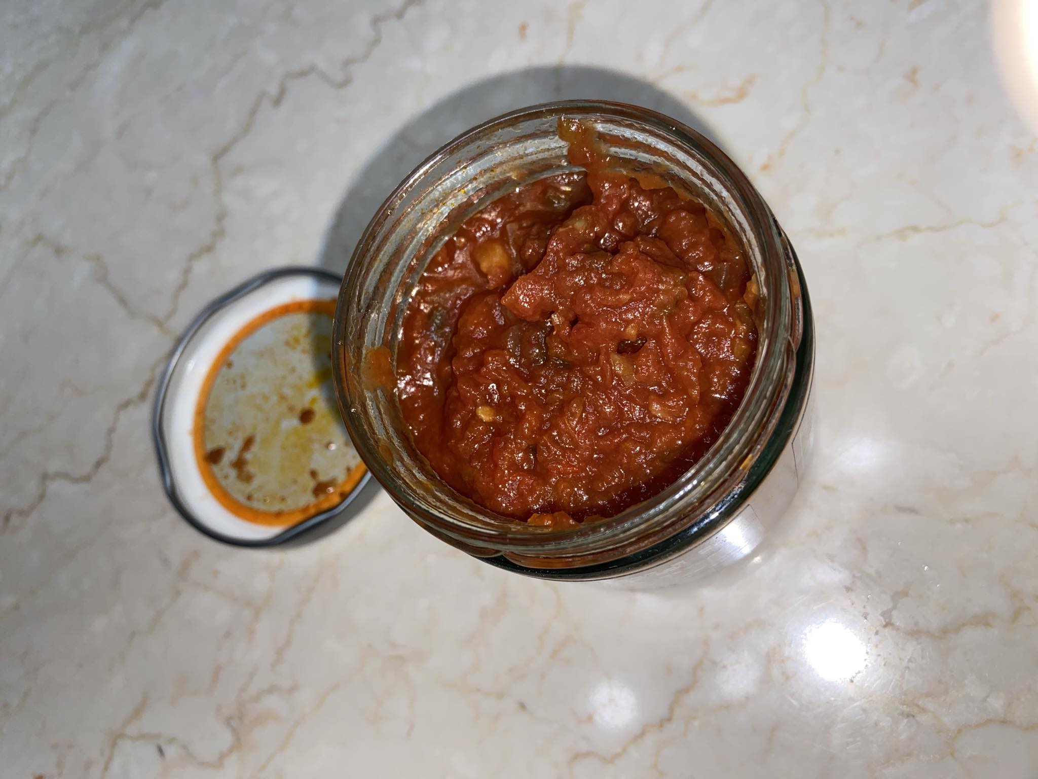 蕃茄丁(蕃茄)、洋蔥、剝皮辣椒[水、辣椒、大豆胺基酸液、糖、鹽、調味劑(L-麩酸鈉、檸檬酸)、甜味劑(甘草酸銨)、品質改良劑(氯化鈣)]、蕃茄糊[蕃茄糊、食鹽、檸檬酸]、荸薺、檸檬、辣椒、蒜頭、芥花油、海鹽