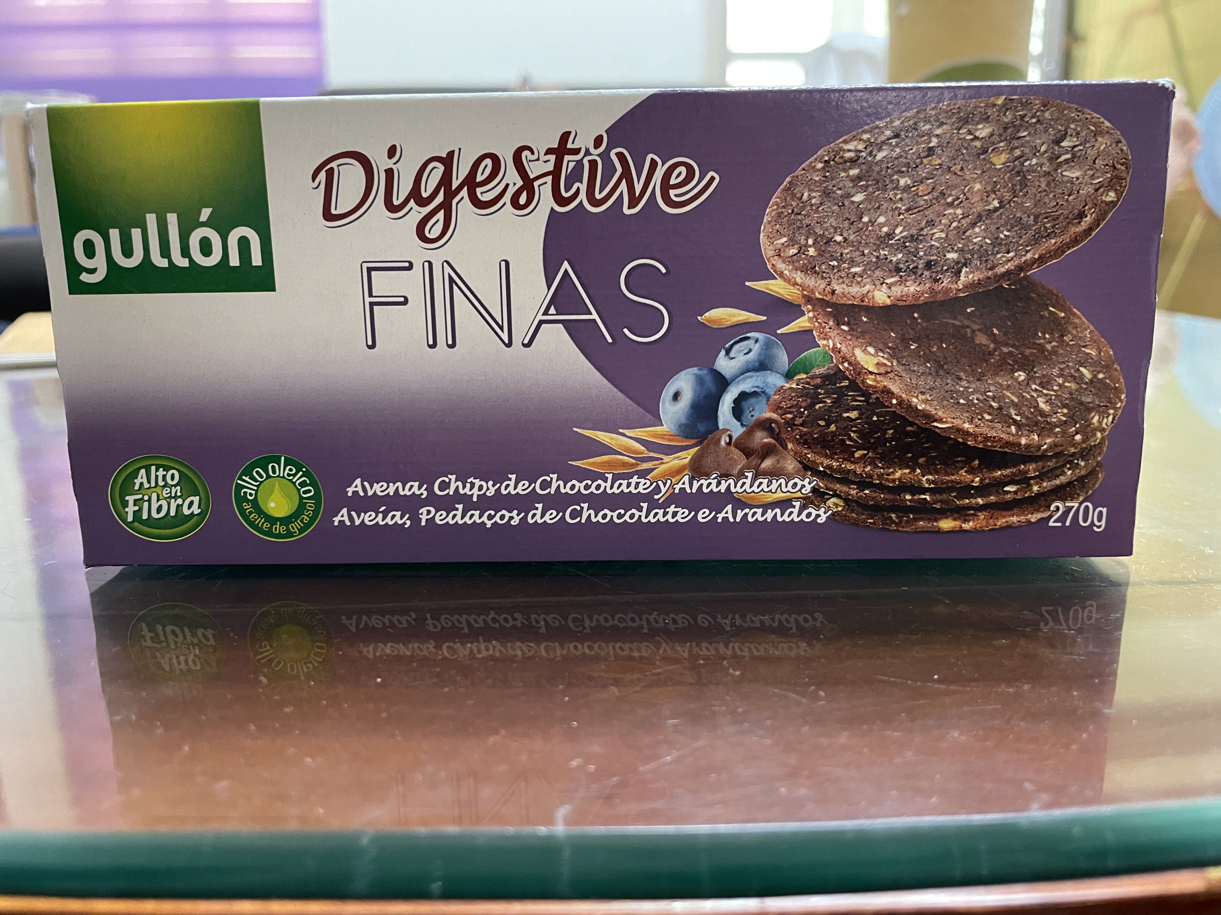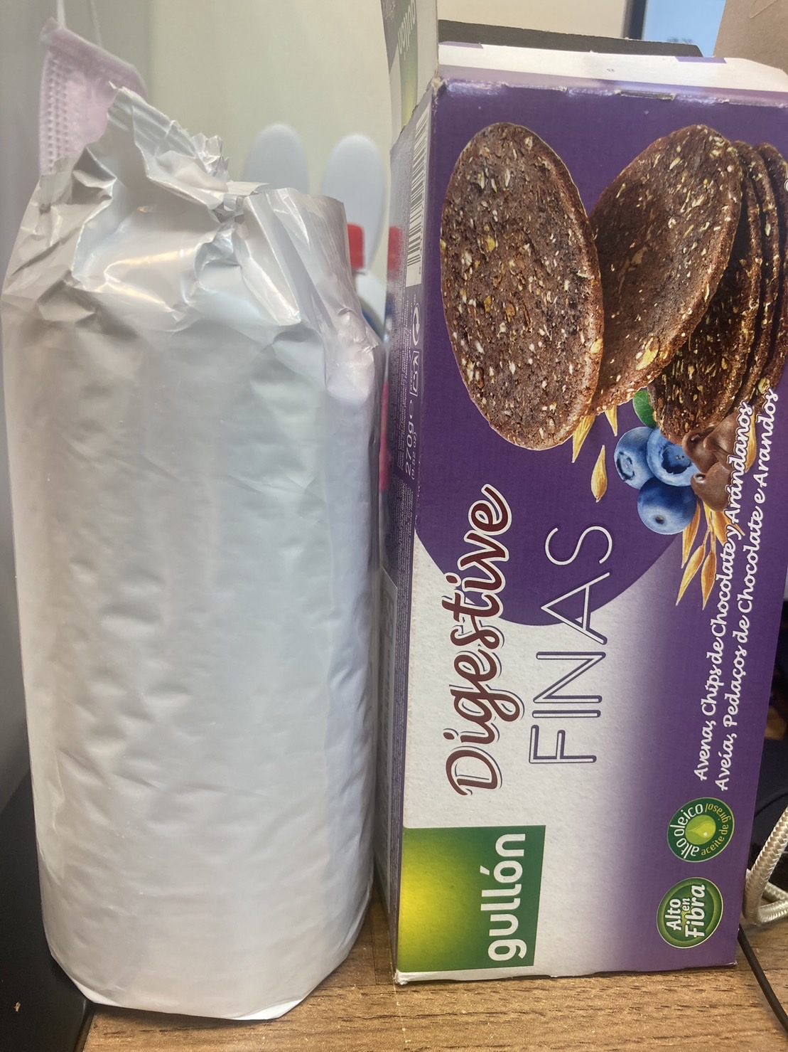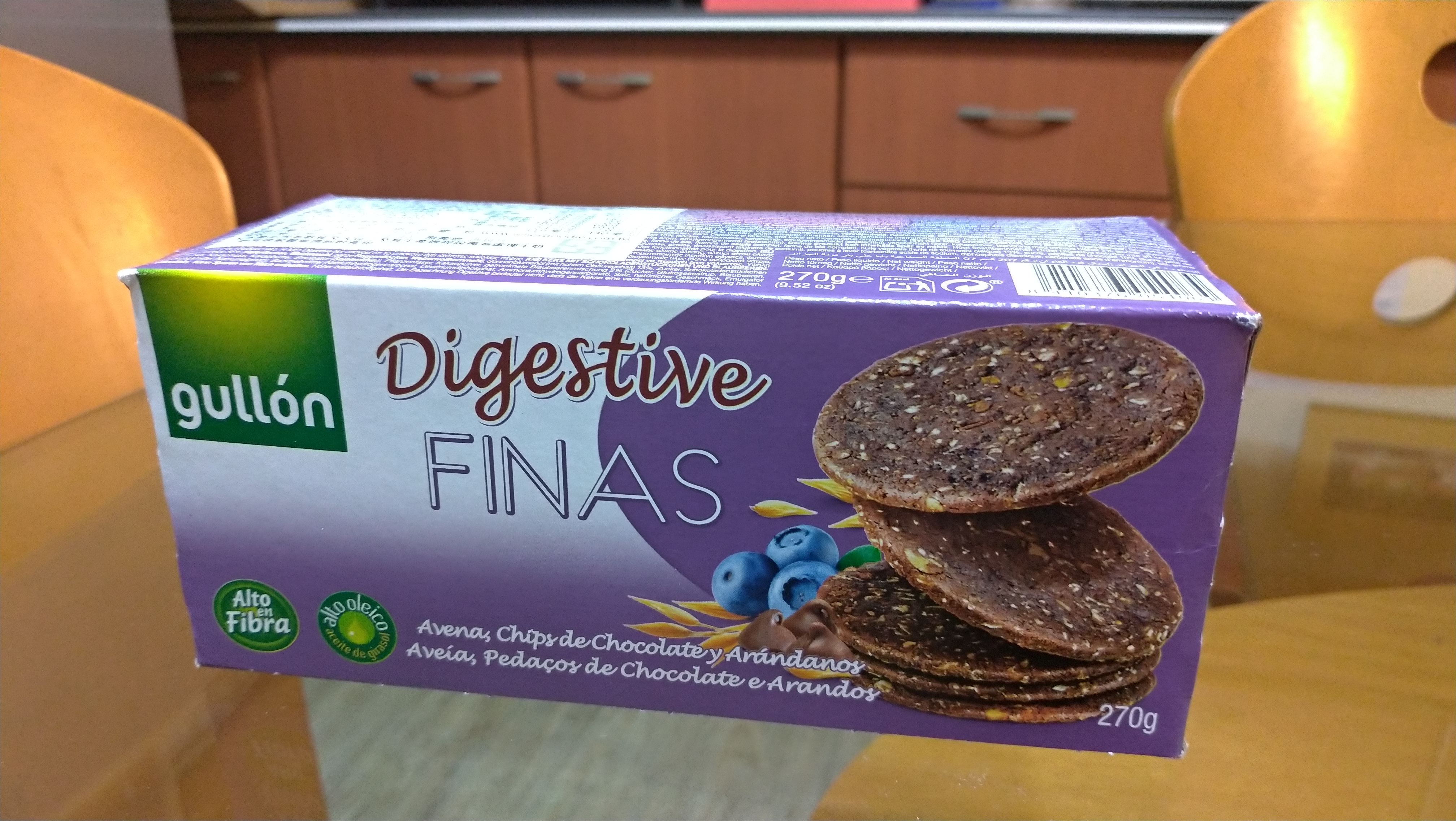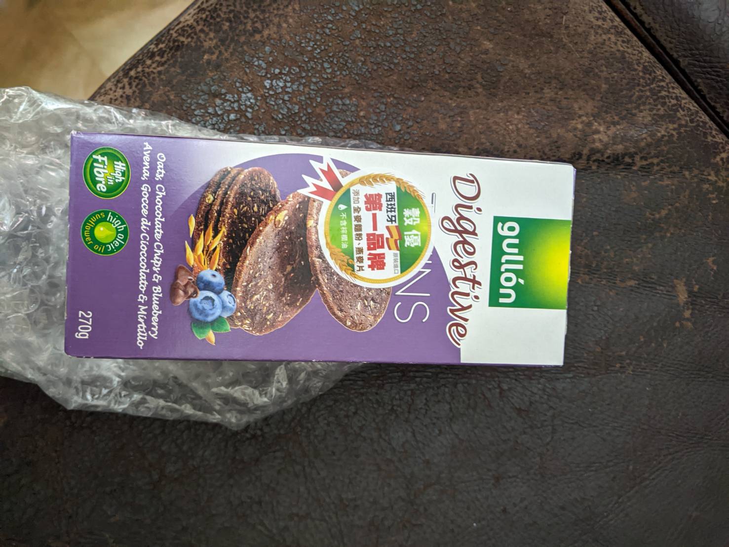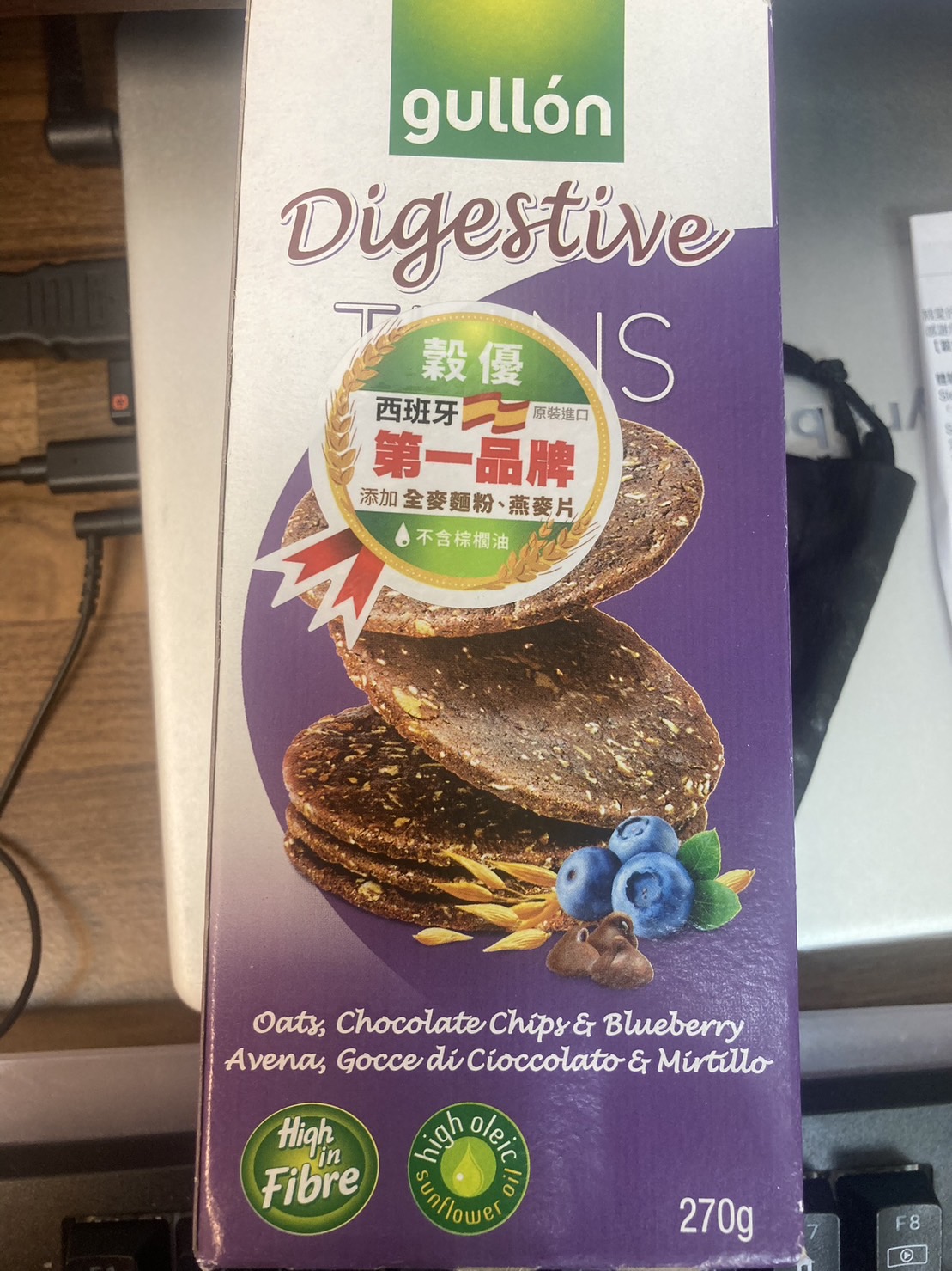 穀片56%(燕麥片、小麥粉、全黑麥片、全麥粉),高油酸葵花油13%,糖,巧克力豆10%(糖、可可塊、可可脂、大豆卵磷脂),植物纖維(果寡糖),可可粉,藍莓乾(糖、葡萄糖漿、藍莓、海藻酸鈉),碳酸氫鈉,酸性焦磷酸鈉,碳酸氫銨,鹽,天然香料,大豆卵磷脂。