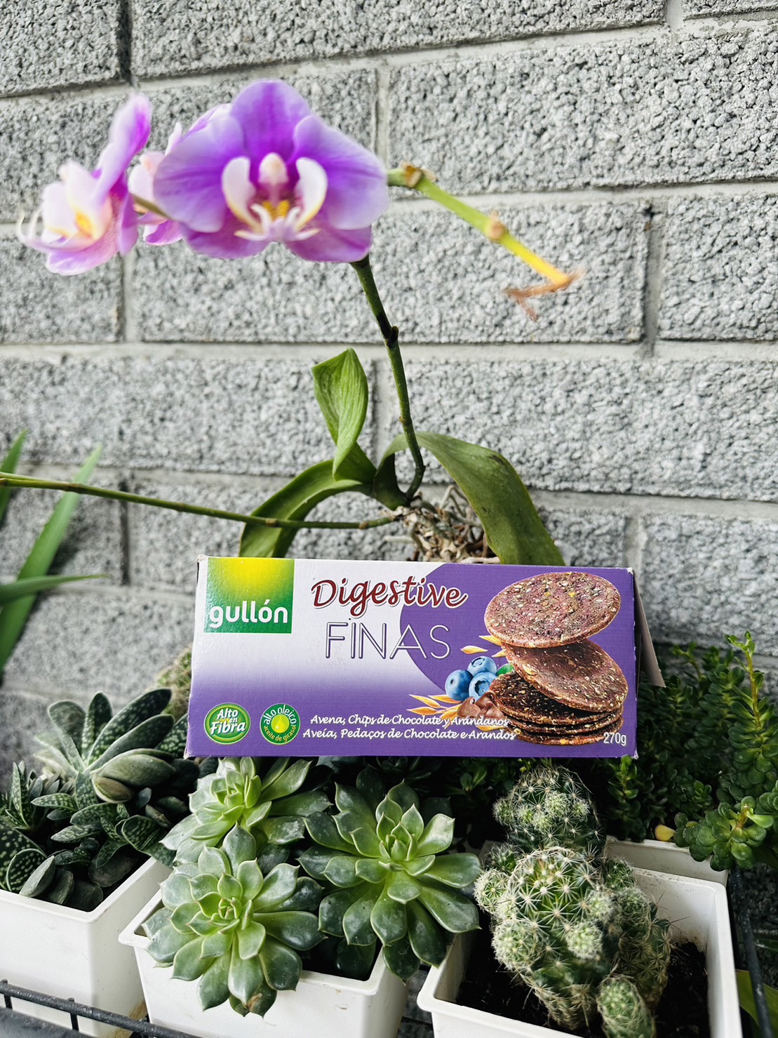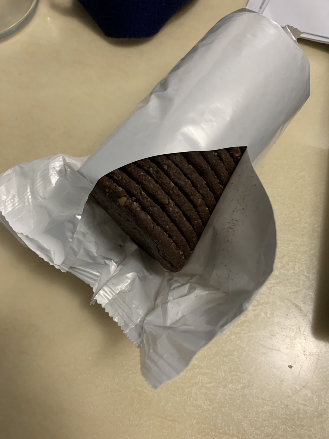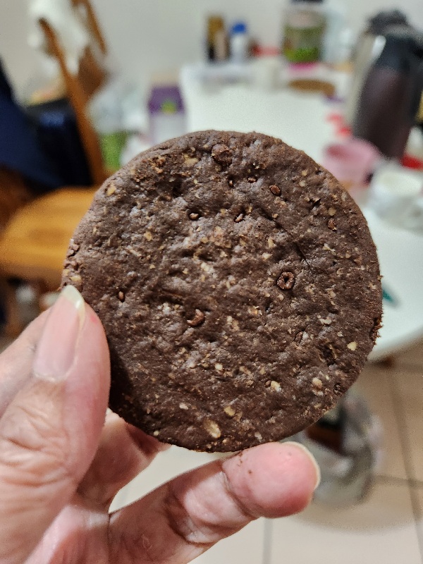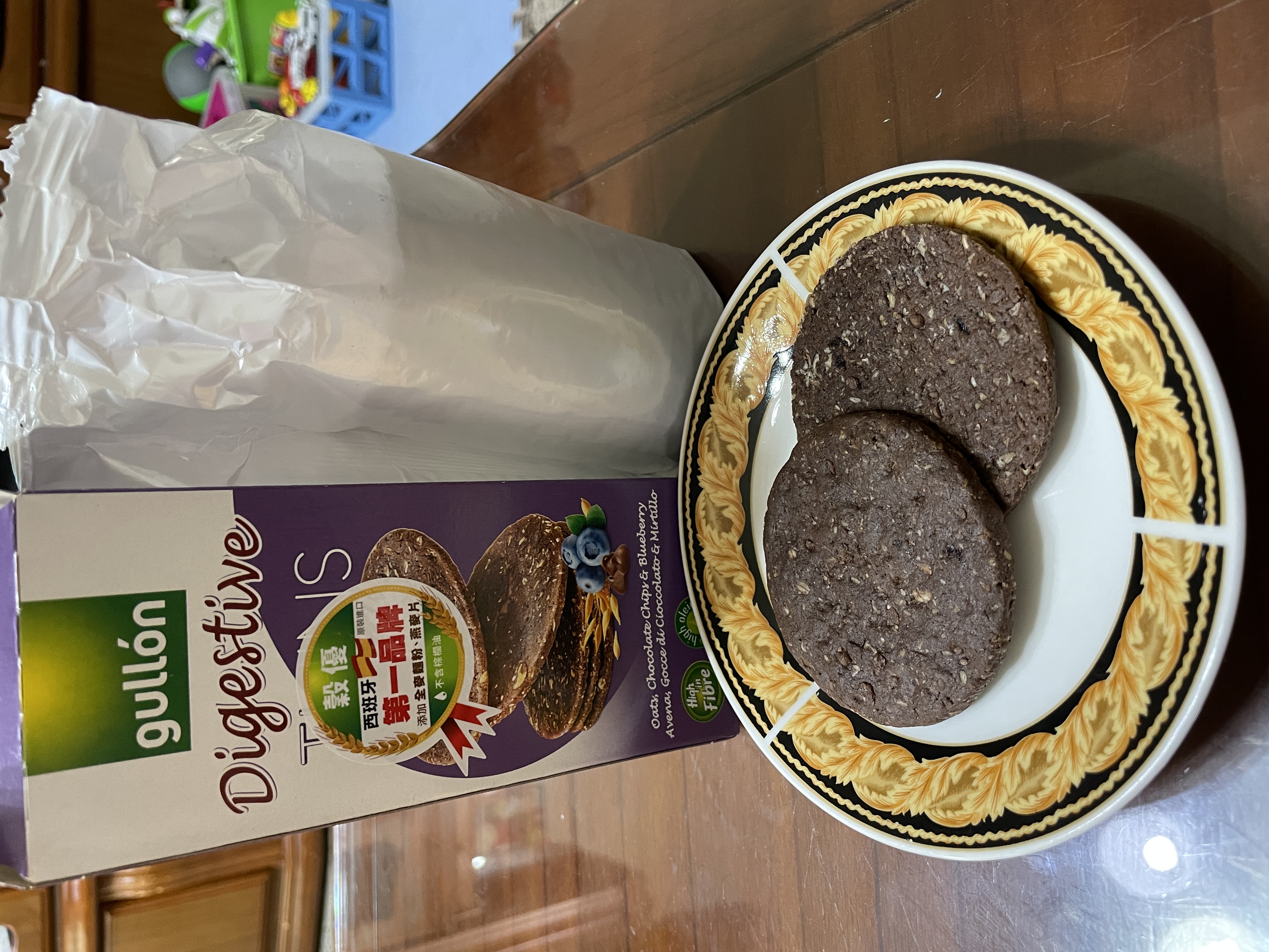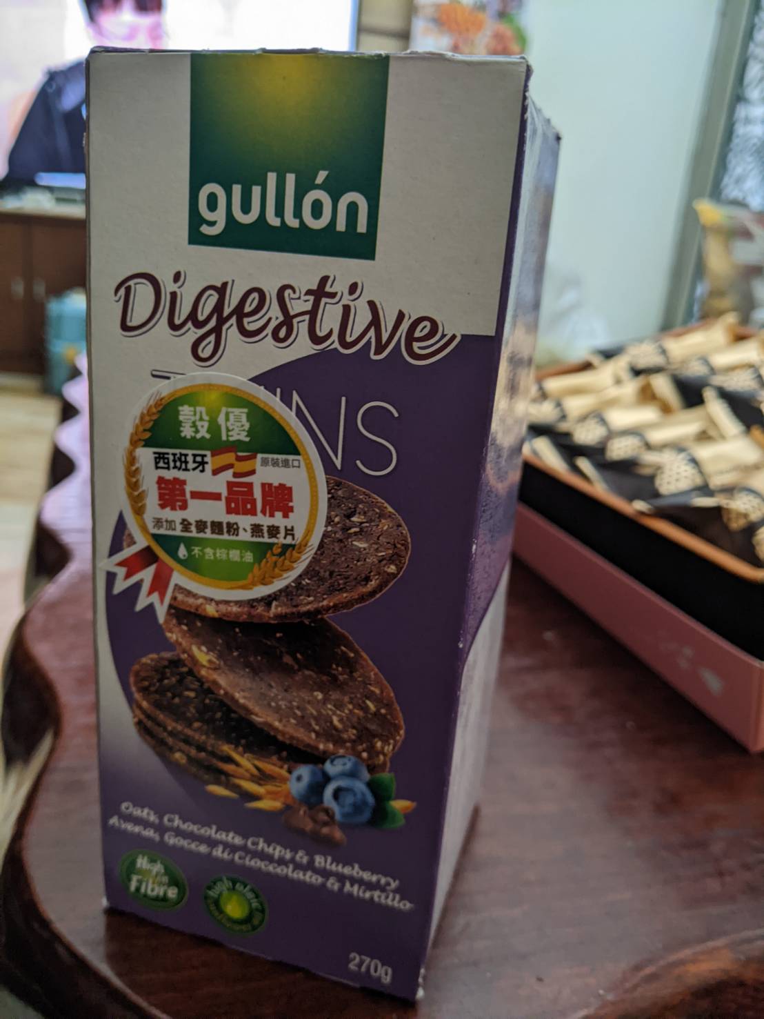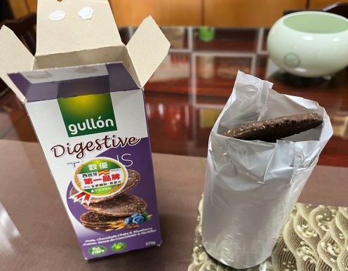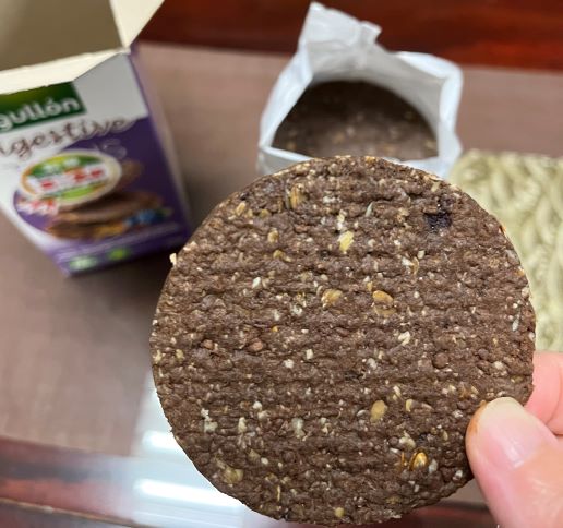 穀片56%(燕麥片、小麥粉、全黑麥片、全麥粉),高油酸葵花油13%,糖,巧克力豆10%(糖、可可塊、可可脂、大豆卵磷脂),植物纖維(果寡糖),可可粉,藍莓乾(糖、葡萄糖漿、藍莓、海藻酸鈉),碳酸氫鈉,酸性焦磷酸鈉,碳酸氫銨,鹽,天然香料,大豆卵磷脂。