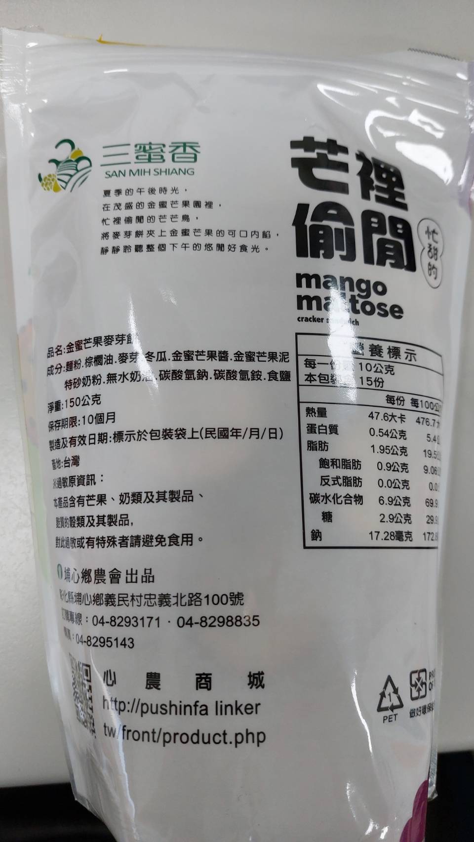 回列表 埔心鄉農會 金蜜芒果麥芽餅 不黏牙的黃金傳說!金蜜芒果麥芽餅,酥脆餅乾夾住濃縮果香 所需等級 一般會員以上 所需學分 50 體驗份數 15 關注人數 1065 申請人數 235 申請截止 立即購買 品牌業者:埔心鄉農會 負責廠商 彰化縣埔心鄉農會 廠商地址 彰化縣埔心鄉忠義北路108號 產地 台灣 試用產品規格 150g 食品業者登錄字號 N-159661907-00002-6 投保產品責任險字號 明台產物保險股份有限公司0805第14PDT00087號 心得分享 商品介紹 商品成分 使用方法 注意事項 體驗名單 8.7 埔心鄉農會 金蜜芒果麥芽餅 濃郁果香度 8.1 麥芽不黏牙 8.9 鹹甜平衡感 8.7 在地獨特性 9.0 建議推薦 8.7 心得分享 15則 關小因 金食達人 42歲 臺北市 2026/03/23 對埔心鄉農會 金蜜芒果麥芽餅留下評價 9 很高興有機會試吃金蜜芒果麥芽餅,整體滿驚喜的。平常其實就很喜歡吃麥芽糖類的點心,但常常會遇到一個困擾,就是太黏牙,不僅吃起來不方便,有時候還會影響口感體驗。不過這款由埔心鄉農會推出的金蜜芒果麥芽餅,成功改善了這個問題,吃起來完全不會過度黏牙,讓人可以輕鬆享受。外層餅乾酥脆不乾硬,搭配內餡的麥芽糖比例剛剛好,甜而不膩。最讓人印象深刻的是芒果的香氣,一打開包裝就能聞到自然的果香,入口後更是濃郁香甜,帶有淡淡的果酸,讓整體風味更有層次,不會單調。可以感受到使用的芒果品質不錯,有種在吃真實果乾的感覺。這款點心很適合當下午茶或隨手小零食,不論是配茶還是咖啡都很搭。整體來說,金蜜芒果麥芽餅不僅保留了傳統麥芽餅的特色,又加入創新的水果風味,是一款會讓人想回購的好選擇。 張貴強 金食達人 52歲 臺北市 2026/03/23 對埔心鄉農會 金蜜芒果麥芽餅留下評價 10 埔心鄉農會 金蜜芒果麥芽餅很榮幸能有機會試吃 這款麥芽餅最讓我驚豔的是它清爽不膩的風味。內餡選用在地金蜜芒果,與麥芽糖完美融合,甜度控制得很好、完全不黏牙,顛覆了我對傳統麥芽餅的印象。餅乾體酥脆爽口,帶有淡淡的芒果清香,與內餡相互呼應。最特別的是,這餅乾不似小時候吃的那種很鹹的餅乾,鹹度非常輕微,整體口味清淡順口,即使多吃幾塊也不會覺得負擔。獨立小包裝的設計也很貼心,隨手一包,乾淨又方便。這款麥芽餅不僅用料實在都是兼具美味與安心的好選擇。 陳一婷 鑽石達人 27歲 新北市 2026/03/23 對埔心鄉農會 金蜜芒果麥芽餅留下評價 8 首先感謝食力提供試吃機會。本次為埔心鄉農會推出的產品,收到的商品完好無損。外包裝一眼望去即可得知裡面的內容物,食物的外觀跟一般麥芽餅相似。對於麥芽餅印象就是黏牙,而此次產品完全不會,並且吃起來軟硬適中,這點超級讚的,不過內餡為芒果醬與冬瓜等原料去調和,嘗起來的芒果味不夠濃郁,對於在地特色可能稍嫌不足,若是能想辦法添加芒果顆粒,會更為驚人。整體就餅乾而言是好吃的,期望可以對於外型或內餡部份做些調整會更好。 陳韻涵 鑽石達人 34歲 臺中市 2026/03/23 對埔心鄉農會 金蜜芒果麥芽餅留下評價 9 這款由埔心鄉農會推出的金蜜芒果麥芽餅外包裝簡簡單單樸實無華,還有一隻很可愛的吉祥物芒果小雞在上面,雖然包裝很簡單但是裡面的內容物卻是不簡單。金蜜芒果麥芽餅外層的餅乾很酥脆,裡面的夾心甜中帶有淡淡的金蜜芒果特有的清香在裡面,甜度也不會到很甜,以前吃的麥芽餅很甜又很膩,不耐吃而且最困擾的地方就是麥芽糖都會黏在牙齒上面,吃完一個就要清理,縱使很愛吃也會覺得很麻煩,但是這一款金蜜芒果麥芽餅的麥芽卻顛覆了我舊有的觀念,裡面的麥芽幾乎不怎麼粘牙,而且很涮嘴,讓人忍不住吃了一個又一個。 郭素君 金食達人 42歲 高雄市 2026/03/24 對埔心鄉農會 金蜜芒果麥芽餅留下評價 10 家中的我和兩位小朋友都有一個甜點胃,選擇好吃又要符合我們口味的點心是非常重要的。埔心鄉農會的金蜜芒果麥芽餅口感酥脆又不粘牙,不僅使用純正麥芽糖,且產品的成分簡單不複雜,也沒有過多的添加物,吃起來的口感酥酥脆脆的又不甜膩,連不太愛吃甜食的老公都非常喜歡。剛剛給大兒子吃完後,他表示餅乾中帶有淡淡的芒果香味,麥芽糖的香氣很夠,且不會太甜,他表示非常的喜歡。小女兒更是連續吃了五個,她說真的太好吃了,希望媽媽我不要吃太多,以免她之後嚐不到。 吳佳霓 鑽石達人 35歲 雲林縣 2026/03/24 對埔心鄉農會 金蜜芒果麥芽餅留下評價 9 麥芽糖夾心餅一直是我的最愛!這次看到埔心鄉農會推出「金蜜芒果麥芽餅」的試吃體驗,立刻報名參加,還默默許願能被選中,沒想到真的成為體驗員,心裡滿滿的小確幸。打開包裝後,熟悉的夾心餅乾外型讓人倍感親切。咬下一口金蜜芒果麥芽餅,口感出乎意料地清爽,完全不黏牙,麥芽糖的甜度拿捏得剛剛好,不會過甜,也不會有傳統麥芽糖偏硬的問題,吃起來十分順口。更讓人驚喜的是,產品成分中沒有添加人工香料,吃完後口中只留下淡淡自然的芒果清香,香氣細緻不膩口。整體來說,是一款兼具傳統與創新的小點心,不僅保留了經典麥芽餅的風味,又融入了清新的水果元素。很適合作為飯後的小甜點,或是午後搭配茶飲的小確幸,真心推薦給喜歡傳統點心又想嘗試新口味的朋友! 徐梅燕 鑽石達人 39歲 苗栗縣 2026/03/24 對埔心鄉農會 金蜜芒果麥芽餅留下評價 9 感謝這次的試吃體驗” 彰化埔心鄉農會 金蜜芒果麥芽餅”第一次吃到不同於傳統
