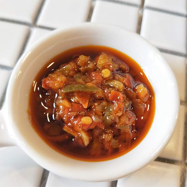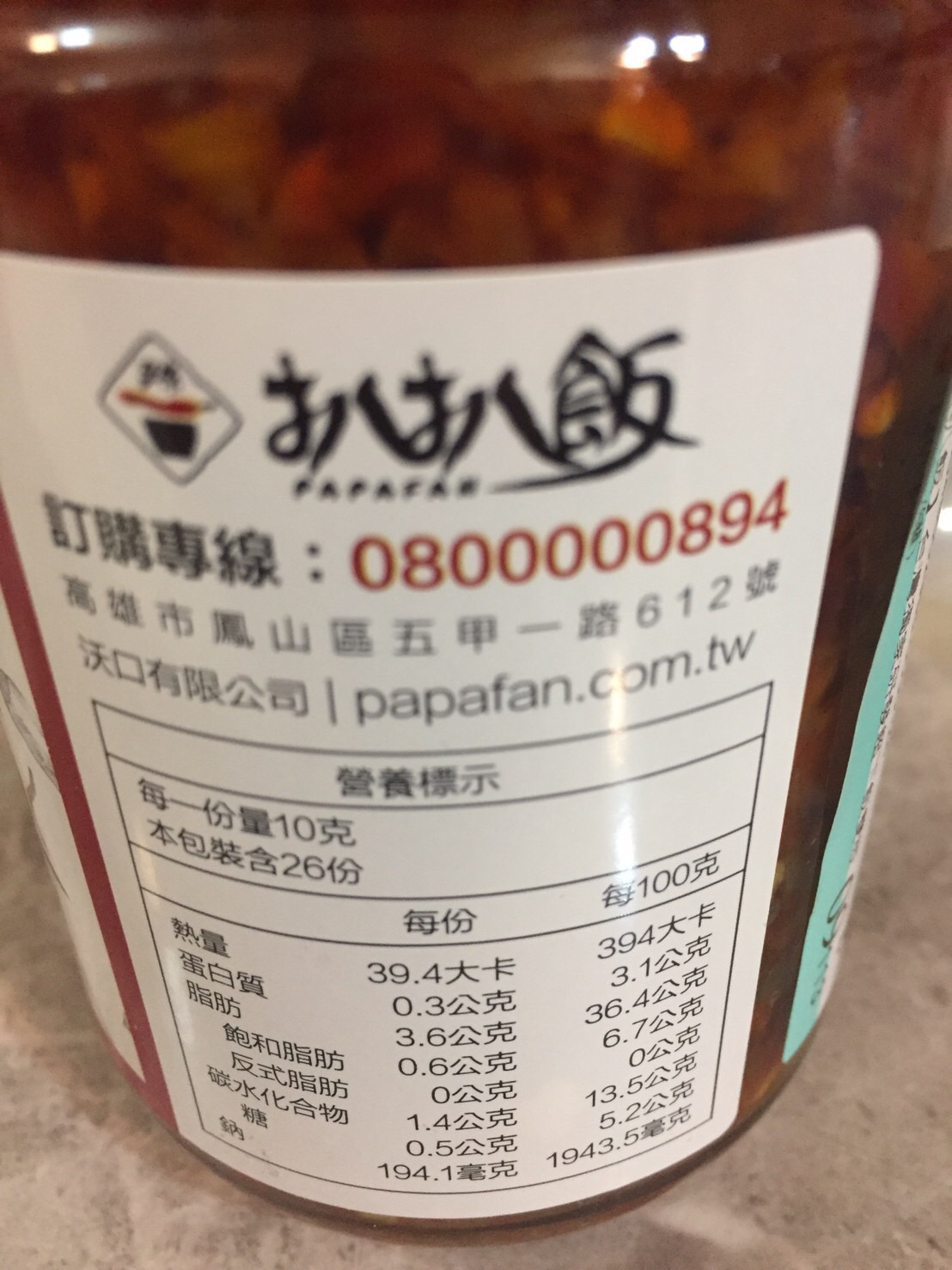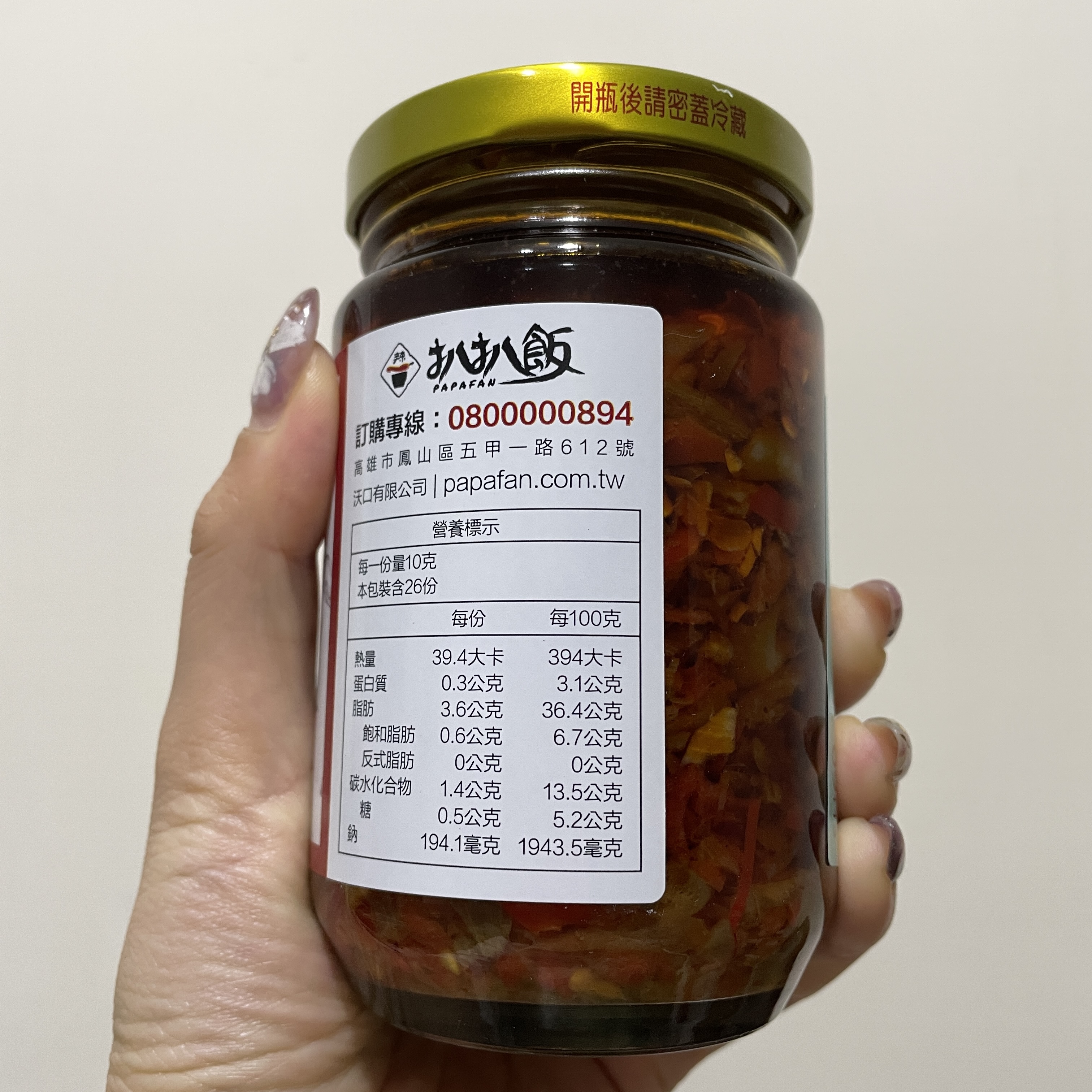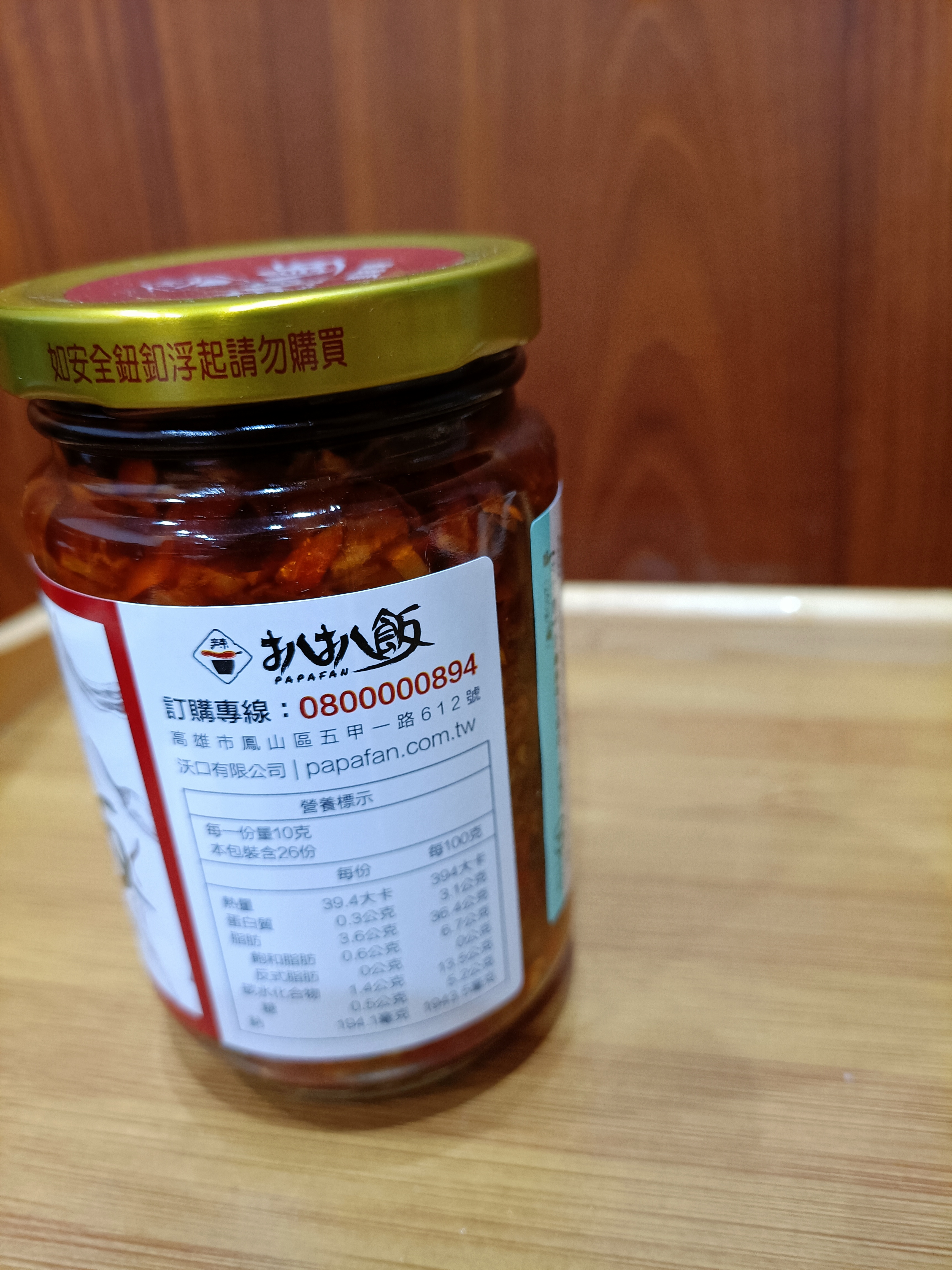 經典雙椒醬 (五辛素):辣椒、沙拉油、蒜頭、鹽、糖、青蔥、釀造醬油、香油、花椒粉、酵母萃取物、DL-胺基丙酸、胺基乙酸、檸檬酸、混合濃縮生育醇