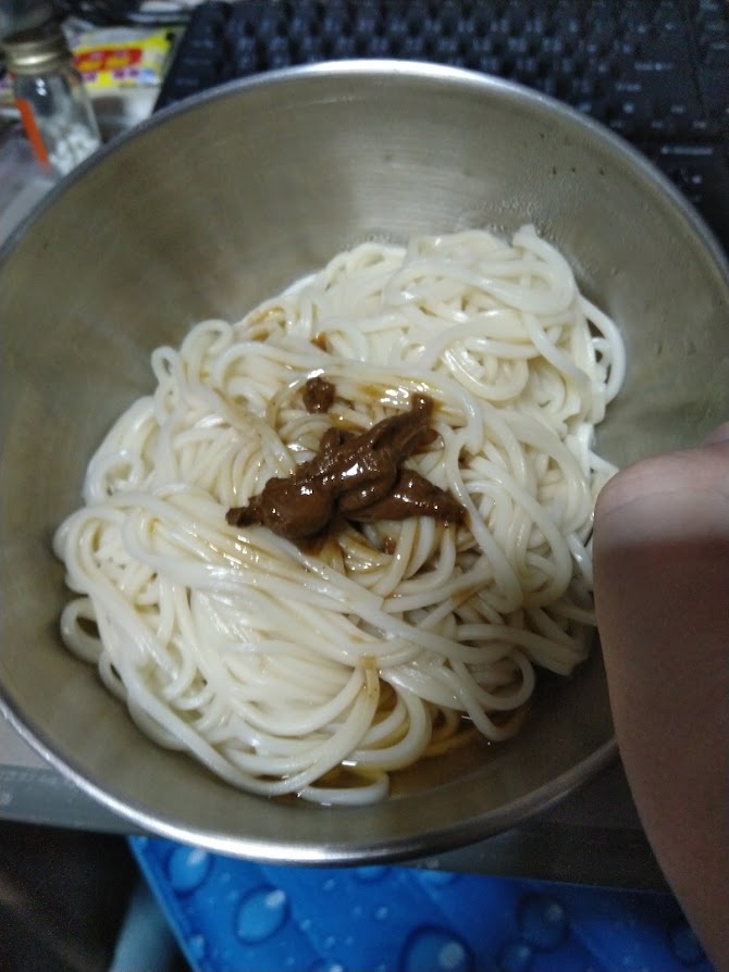4.再拌入醬包攪拌即可食用,記得要趁熱加(醬包請依個人口味添加)