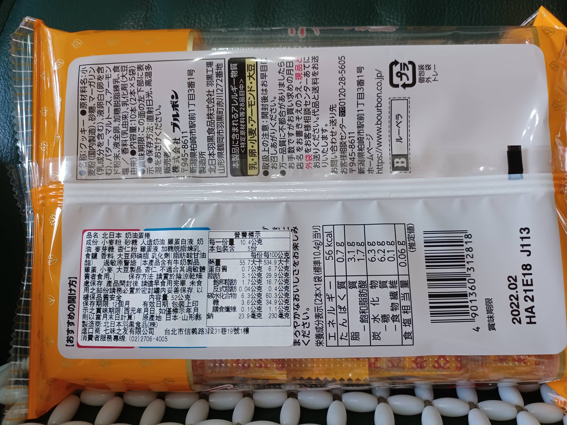 小麥粉、人造奶油、雞蛋白液、麥芽糖、奶油、杏仁粉、雞蛋液、加糖脫脂煉乳、食鹽、香料、大豆卵磷脂、乳化劑