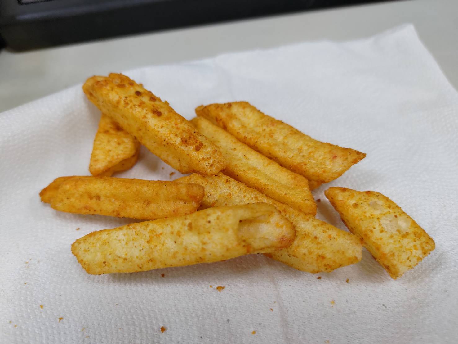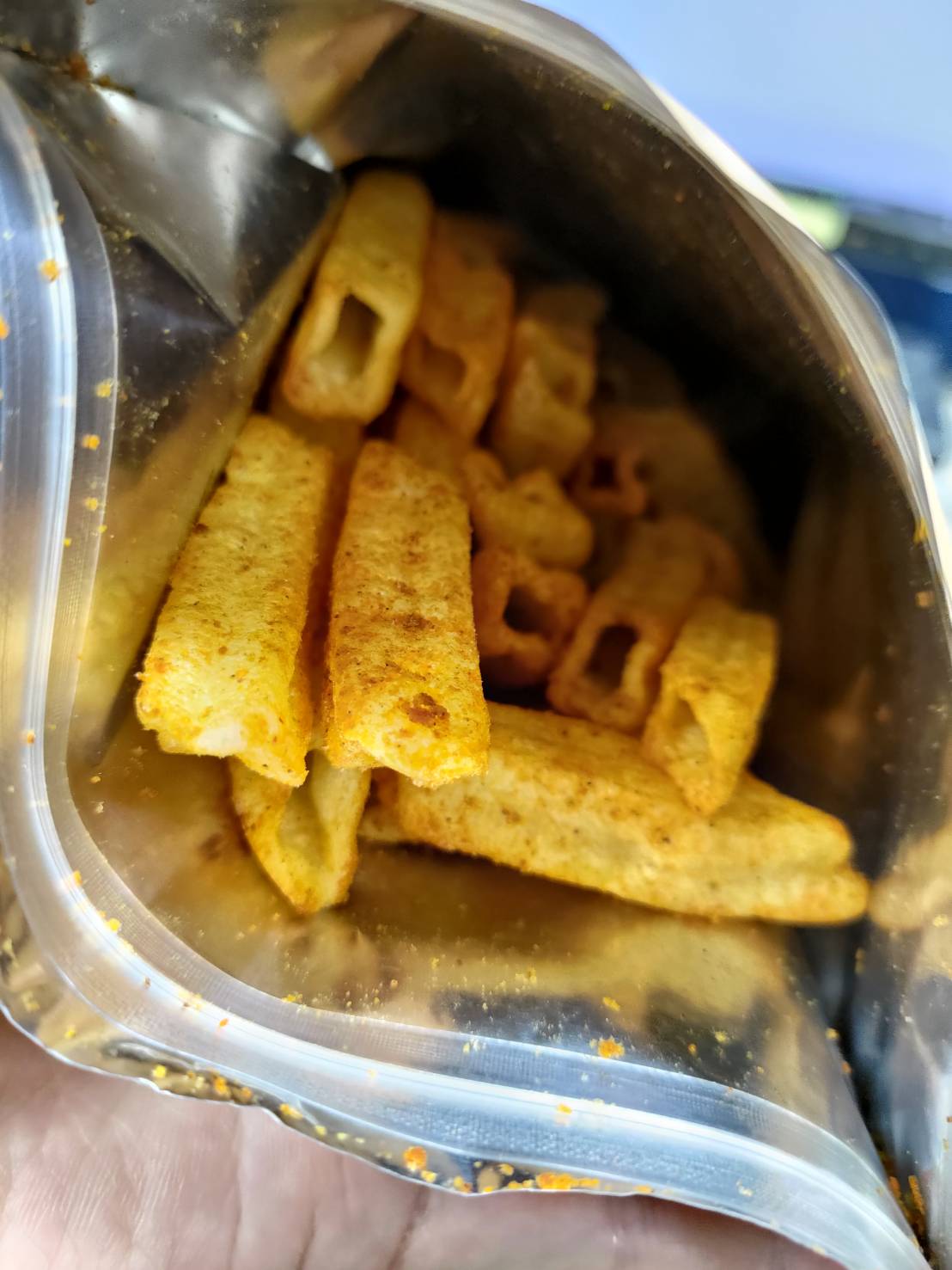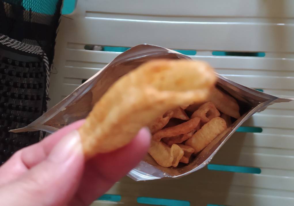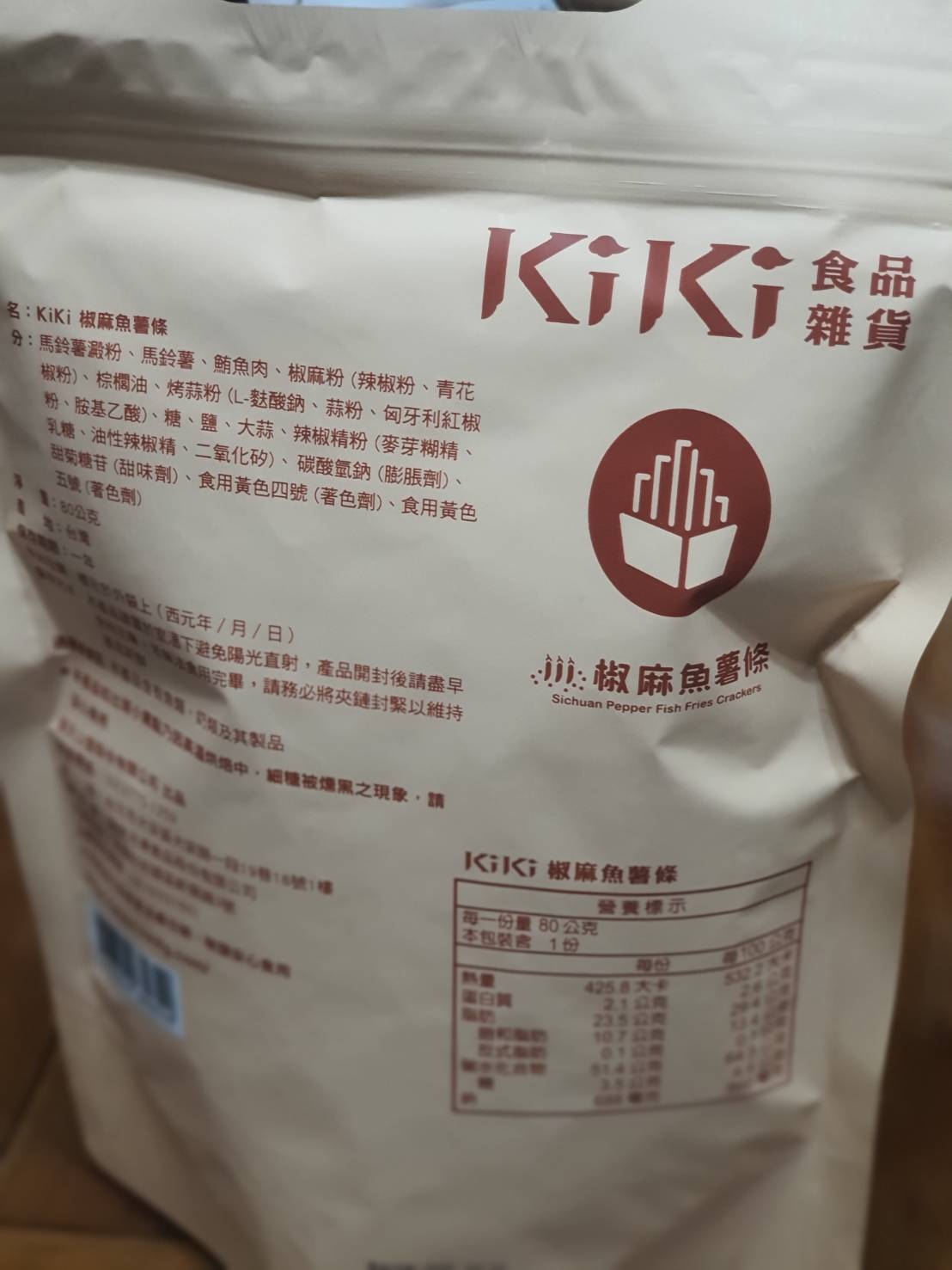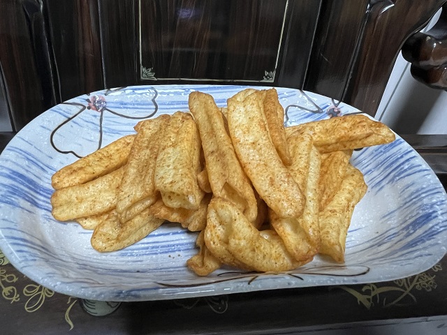 馬鈴薯澱粉、馬鈴薯、鮪魚肉、椒麻粉(辣椒粉、青花椒粉)、烤蒜粉(L-麩酸鈉、蒜粉、匈牙利紅椒粉、胺基乙酸)、糖、鹽、大蒜、辣椒精粉(麥芽糊精、乳糖、油性辣椒精、二氧化矽)、碳酸氫鈉(膨脹劑)、甜菊糖苷(甜味劑)、食用黃色4號(著色劑)、食用黃色五號(著色劑)