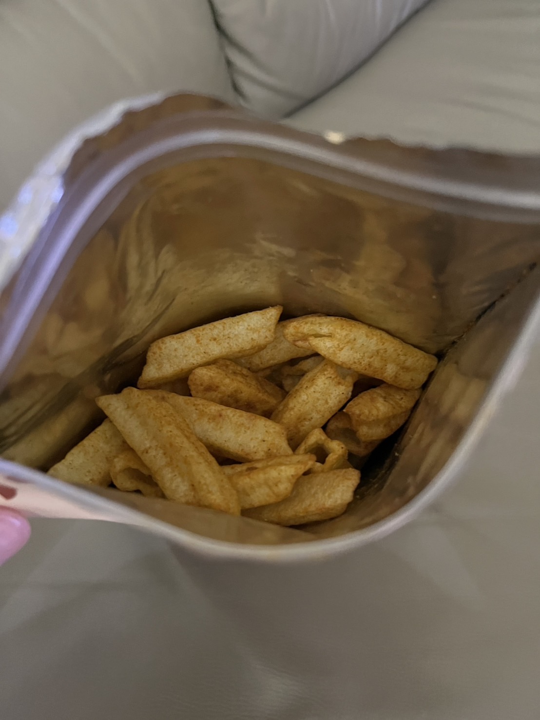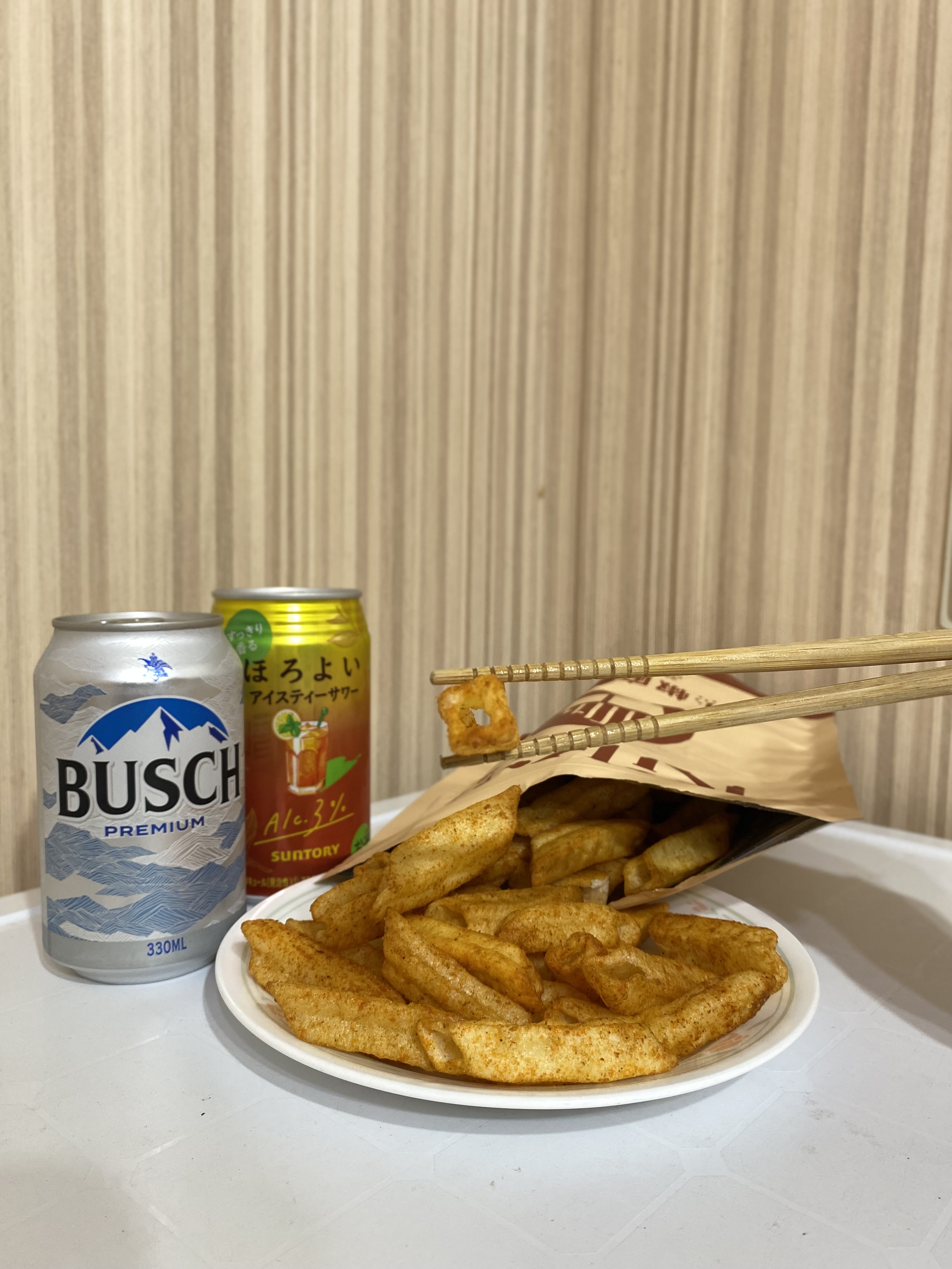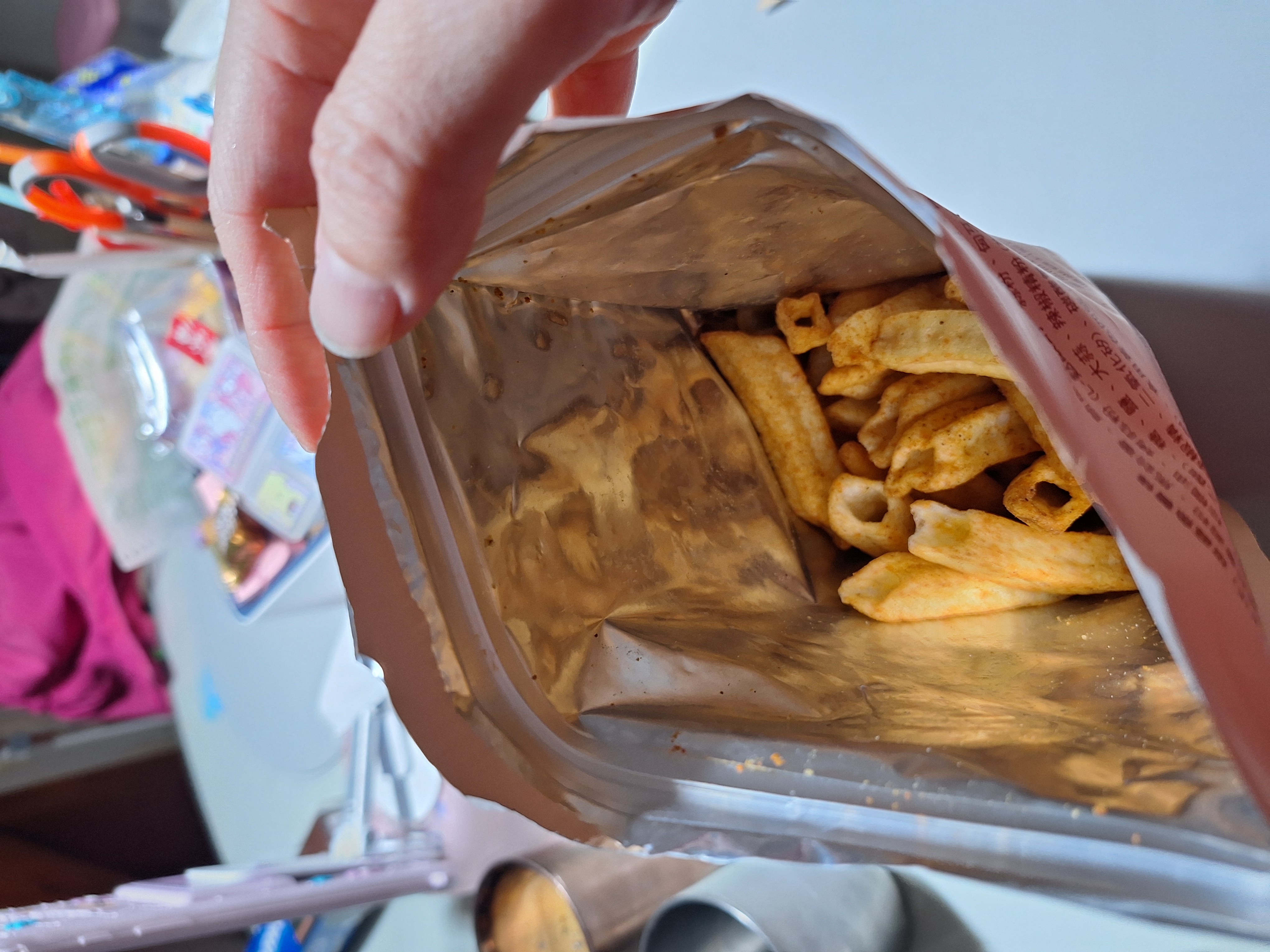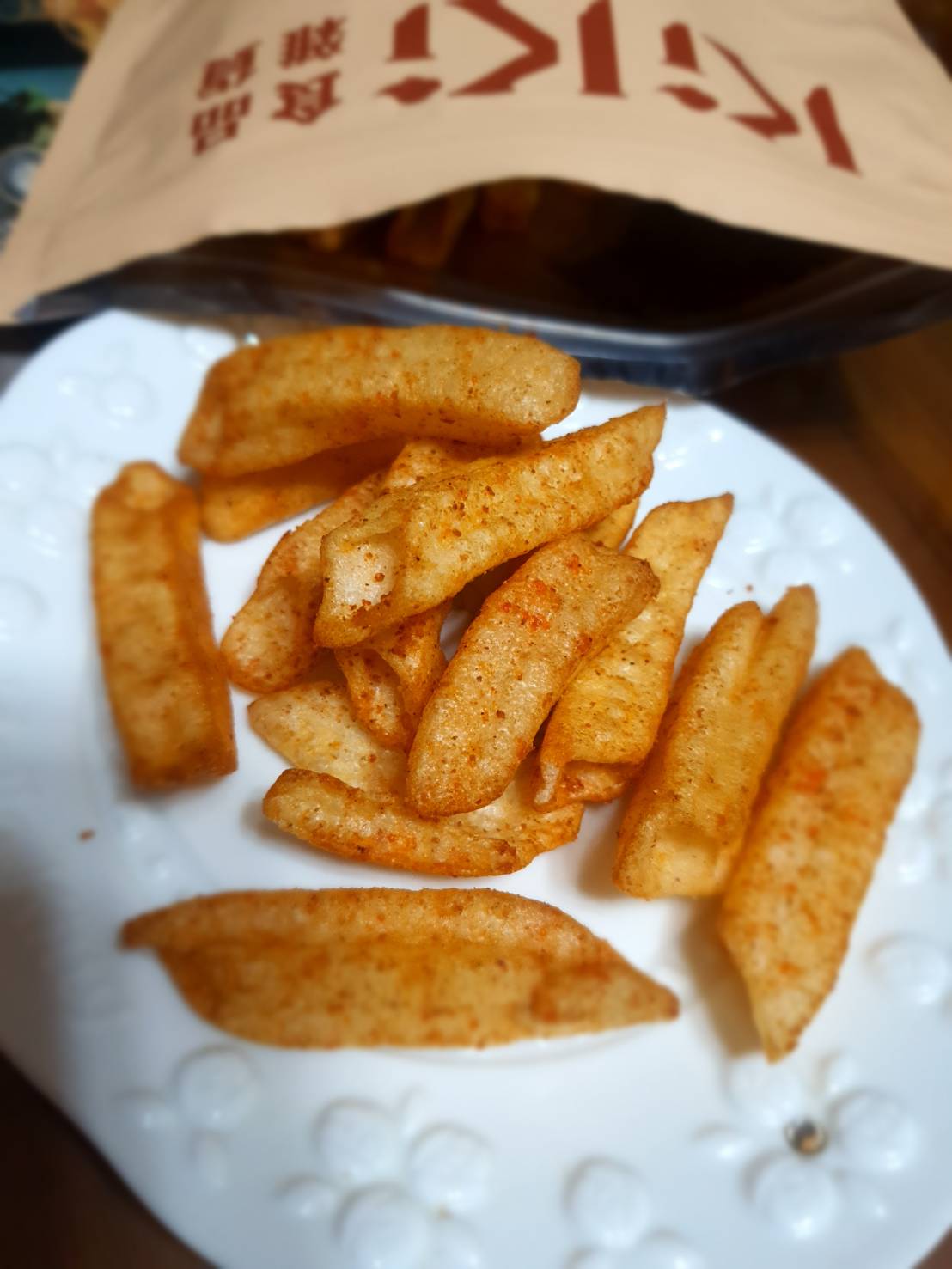 馬鈴薯澱粉、馬鈴薯、鮪魚肉、椒麻粉(辣椒粉、青花椒粉)、烤蒜粉(L-麩酸鈉、蒜粉、匈牙利紅椒粉、胺基乙酸)、糖、鹽、大蒜、辣椒精粉(麥芽糊精、乳糖、油性辣椒精、二氧化矽)、碳酸氫鈉(膨脹劑)、甜菊糖苷(甜味劑)、食用黃色4號(著色劑)、食用黃色五號(著色劑)