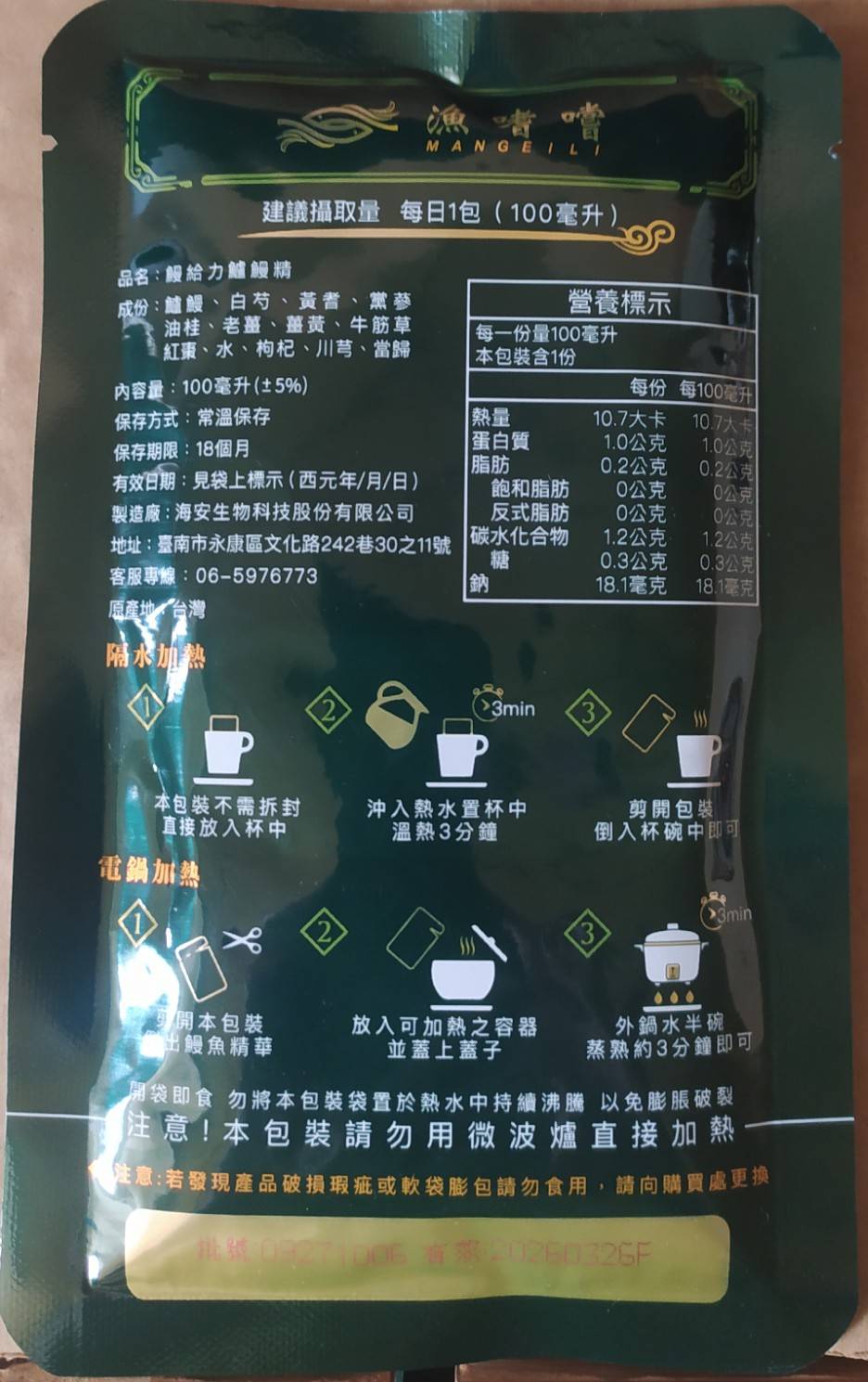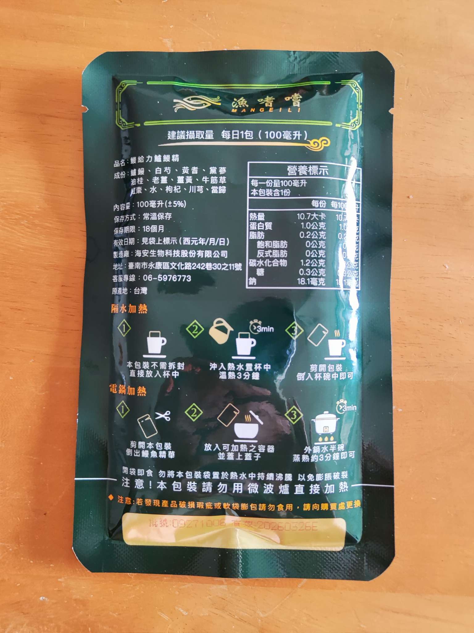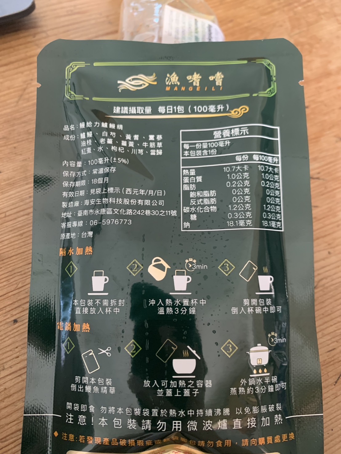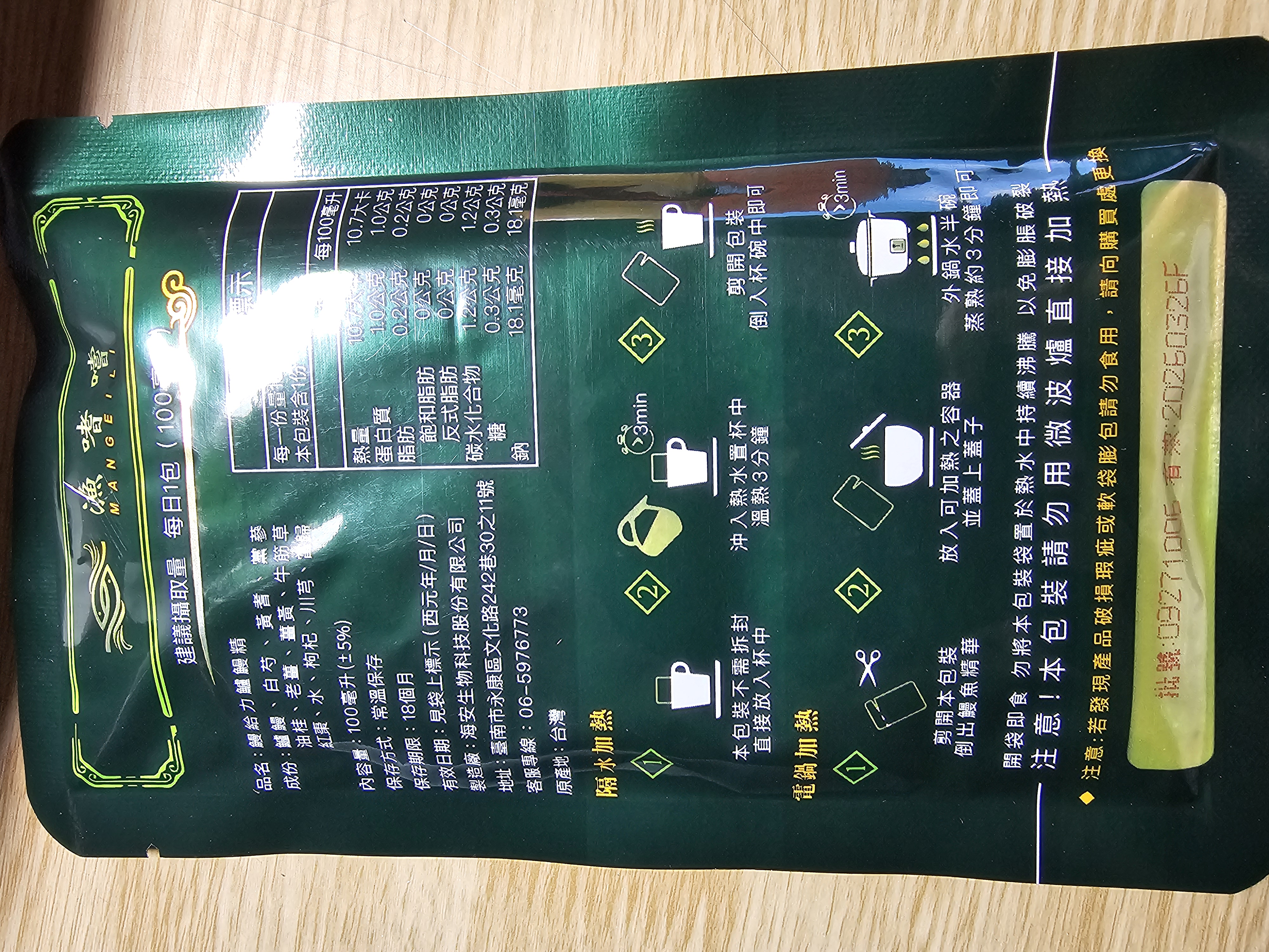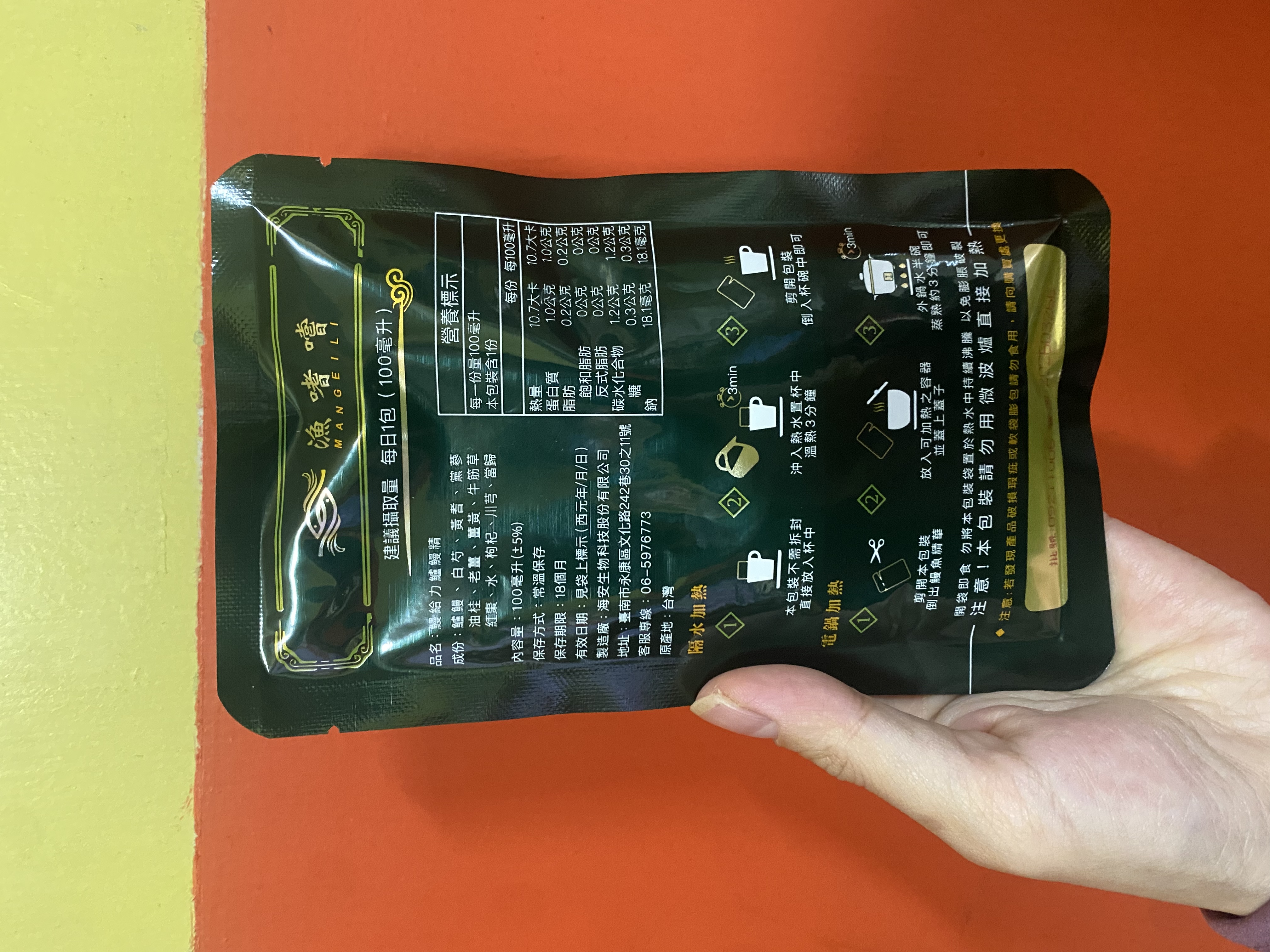 回列表 【漁嗜嚐】鰻給力鱸鰻精 - 術後恢復、產後無力、身體虛弱最佳營養補充品 市價768元 (免費申請) 所需等級 一般會員以上 所需學分 30 體驗份數 200 關注人數 1633 申請人數 302 申請截止 立即購買 品牌業者:漁嗜嚐 負責廠商 海安生物科技股份有限公司 廠商地址 台南市永康區文化路242巷30之11號 產地 台灣 試用產品規格 100毫克/包(共2包) 食品業者登錄字號 D-189176446-00000-6 投保產品責任險字號 華南產物保險1402-132050105 心得分享 商品介紹 商品成分 使用方法 注意事項 體驗名單 9.0 海安生技 鰻給力鱸鰻精 好喝無腥味 9.1 適合年節送禮/探病 9.3 有助於元氣補充 9.1 整體風味喜好 8.8 建議推薦 8.9 心得分享 193則 黃秀雯 鑽石達人 50歲 新北市 2024/10/18 對海安生技 鰻給力鱸鰻精留下評價 10 這次真的很謝謝食力和廠商提供的 鰻給力鱸鰻精,正好秋季,是最適合補益氣的時節,所以當下收到鱸鰻精時,就馬上拆封,準備好好的補一下,正好最近也覺得人累累的,所以喝下去一定最有感覺。於是乎就照著包裝上的說明,用熱泡的方式隔水加熱三分鐘,一打開包裝,就有香味撲鼻而來,真的是有當歸的香味,真的香氣四溢,讓人迫不及待的想要喝上一口。入口時的溫潤,不會讓人覺得強烈的剌鼻味,很好入喉,溫和的中藥味並不讓人討厭,其實敝人是很不能接受中藥味,所以幾乎是不喝,但是這個鱸鰻精是讓人接受度很高的產品,而且喝完,真的會覺得元氣滿滿,本來還覺得身體有些疲勞,喝完沒多久後,就覺得精神變好了不少,謝謝廠商和食力提供的鱸鰻精! 陳奕丞 鑽石達人 37歲 新北市 2024/10/20 對海安生技 鰻給力鱸鰻精留下評價 10 首先謝謝 【食力】 & 【海安生物科技股份有限公司】提供這次試用【鰻給力鱸鰻精】的機會,因為我常常熬夜加班工作,只要熬夜的隔日一早,我都有服用雞精或是鱸魚精的習慣,看到這次的鰻魚精,特別的感興趣,尤其是由【海安生物科技股份有限公司】推出的產品,更是品質保證,因為是第一次喝鱸鰻精,我特別到官網做了一下功課(如下),經由自身的體驗後,分享心得給大家。我特別到網路搜尋了一下相關資料^^(取自官網及網頁相關資料)養殖五年以上鱸鰻與老中醫傳承中藥複方結合。專利『甕粹工法』,炭火熬製12小時。鱸鰻歷經獨有淨化程序,無腥味、無土味。為術後、產後、虛弱無體力的你,補足每日所需能量。親自拿到試吃品後,『鰻給力鱸鰻精』喝起來口感像濃郁的藥膳魚湯,但完全沒有油脂和魚腥味,十分爽口,每一包獨立包裝,加熱十分容易,立即打開水即可喝完,收到試吃品的同時,小弟我剛好在感冒的恢復期,食用後,感覺病後的恢復比較快,疲勞感有明顯減輕,精神變得比較好。如果您跟我一樣常常熬夜加班,偶而不小心感冒,需要補充元氣時,那我真心覺得的【海安生物科技股份有限公司】這款【鰻給力鱸鰻精】不錯。真心推薦給您。PS很高興參加本次的試吃活動,謝謝 張佑安(yuanchang) 鑽石達人 63歲 臺中市 2024/10/27 對海安生技 鰻給力鱸鰻精留下評價 10 很高興有此機會試吃「鰻給力鱸鰻精」這款保健食品,是一個令人愉快的「吃」體驗。這款試飲配方看起來包含了不少補氣補血、溫補驅寒的成分,像是當歸、川芎、黨蔘和黃耆等都是中藥材中常見的補品。而鱸鰻則提供蛋白質,搭配牛筋草(馬齒莧)可增加一些清熱去火的效果;加上老薑、薑黃、油桂等暖身成分,整體應該偏向溫潤、稍帶辛香的滋補風味。這樣的配方可能會帶有中藥材的特有香氣,帶著薑黃和老薑的微辣辛香,當歸和川芎則有一點濃郁的土味。枸杞、紅棗可能讓湯頭有淡淡的甘甜,平衡藥材的苦味。因為含有鱸鰻,可能帶有一些鮮甜的底味,尤其是經過長時間熬煮,湯頭應該會變得滑順。若牛筋草用量較多,可能會增加些微的植物清香。這款湯應該有溫補驅寒、補氣補血的效果,適合在天氣較涼的季節或身體疲勞、需要補氣時飲用。尤其適合手腳容易冰冷、氣血虛弱的人飲用,長期飲用可能有改善氣色和提振體力的效果。 林雅文 鑽石達人 45歲 新北市 2024/10/28 對海安生技 鰻給力鱸鰻精留下評價 10 作為一名長期加班的科技業工程師,我最近試用了【漁嗜嚐】的鰻給力鱸鰻精,這款產品讓我在忙碌的工作中感受到了一絲滋養,特別適合像我這樣的上班族。首先,這款鰻精的好喝無腥味讓我驚喜。通常對於海鮮類產品,總是有些顧慮。但這款鰻精的口感非常順滑,完全沒有腥味,反而帶有淡淡的香氣,讓我在繁忙的工作中也能享受美味。在元氣補充方面,我感覺到明顯的提升。經過長時間的加班,身體常常感到疲憊,喝了這款鰻精後,精神狀態有了很大的改善,讓我能夠更專注於工作。整體風味上,這款鰻精的配方非常講究,除了鱸鰻,還添加了多種中藥材,如老薑和枸杞,讓整體風味更加豐富,喝起來不會感到單調。最後,我認為這款產品非常適合送禮自用,特別是在年節或探病時,帶上一盒,既體面又實用。對於忙碌的上班族來說,這是一個很好的食補選擇,讓我們能夠在工作中保持最佳狀態! 盧鳴 金食達人 40歲 新北市 2024/10/29 對海安生技 鰻給力鱸鰻精留下評價 9 非常開心可以收到食力的試用商品:【漁嗜嚐】鰻給力鱸鰻精。收到的試用品為墨綠色的小盒包裝,搭配金色的品牌字樣,裡面內裝兩份鰻給力鱸鰻精,很雅致的包裝設計。官方網站看到大盒裝的設計,整體相當典雅精緻,送人自用兩相