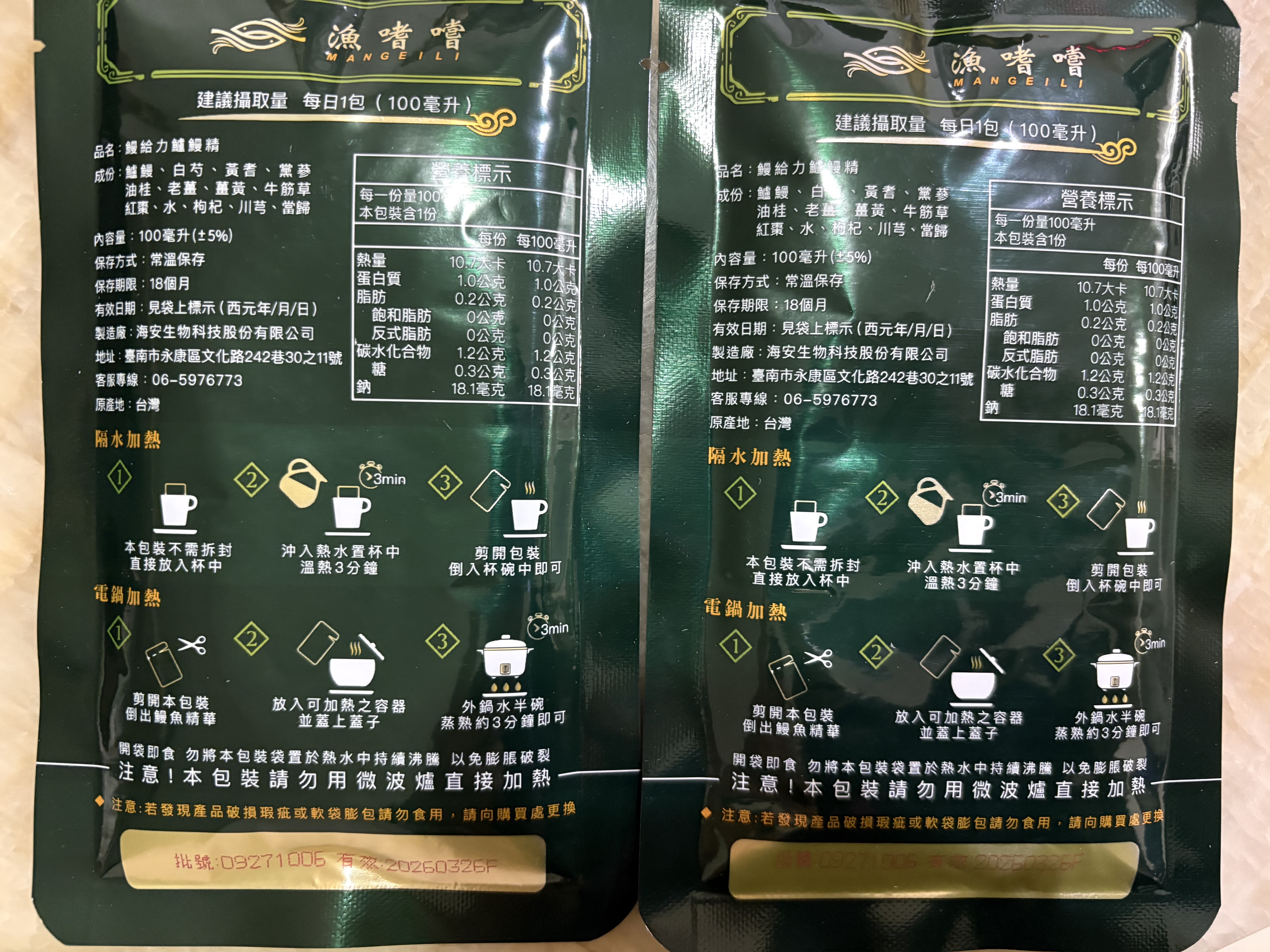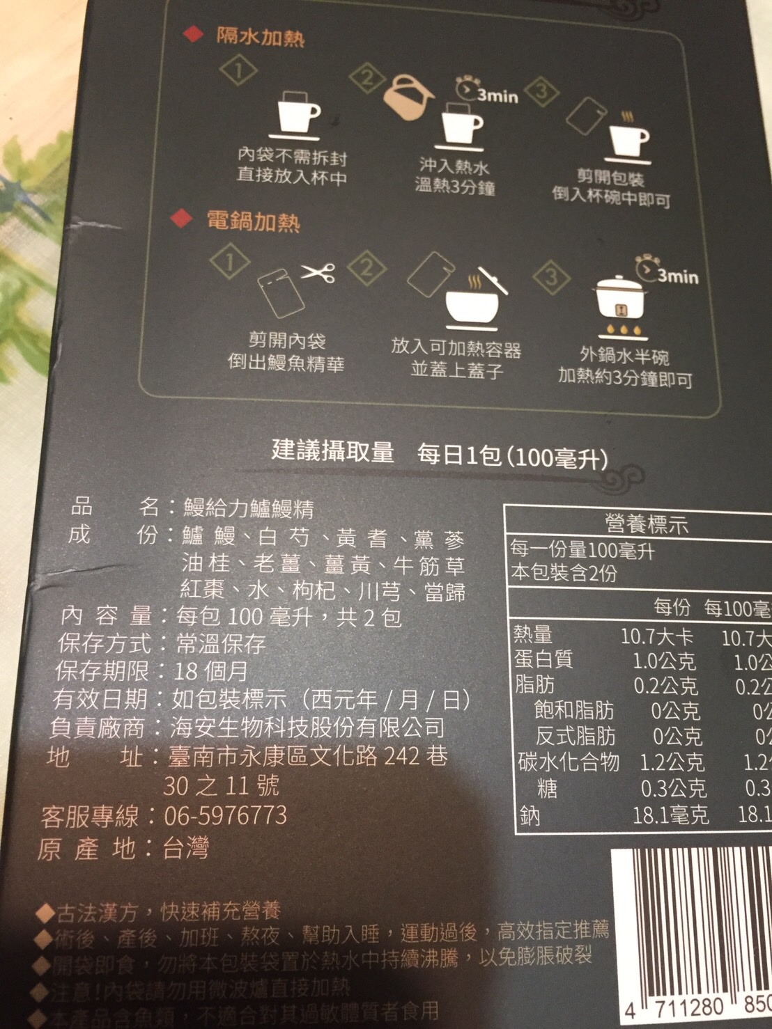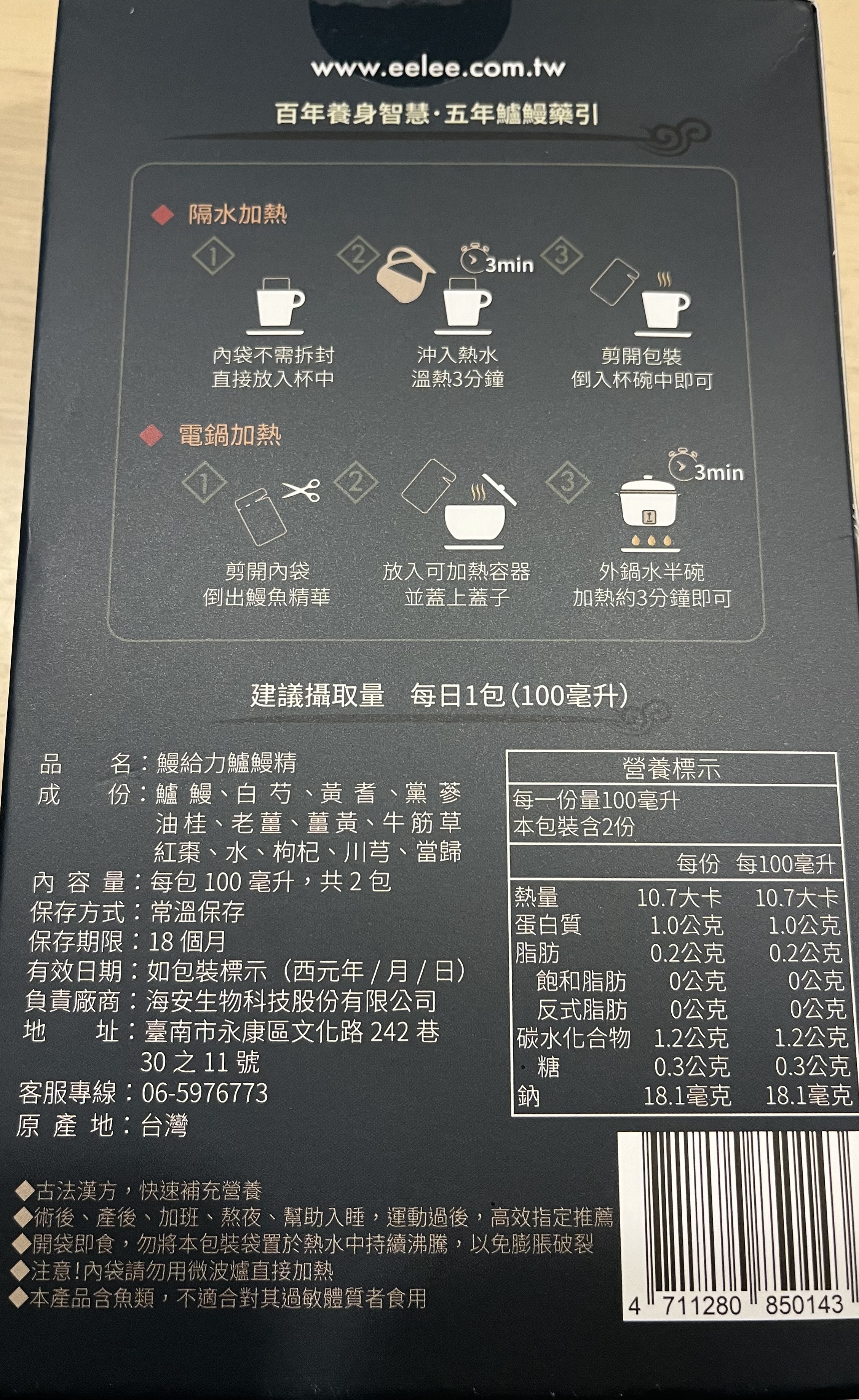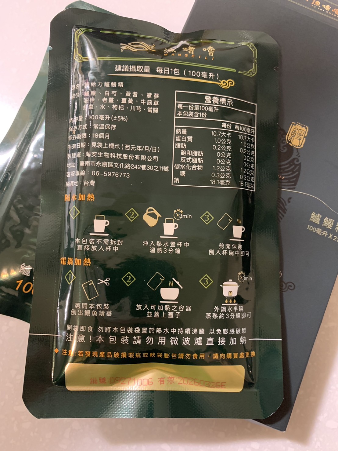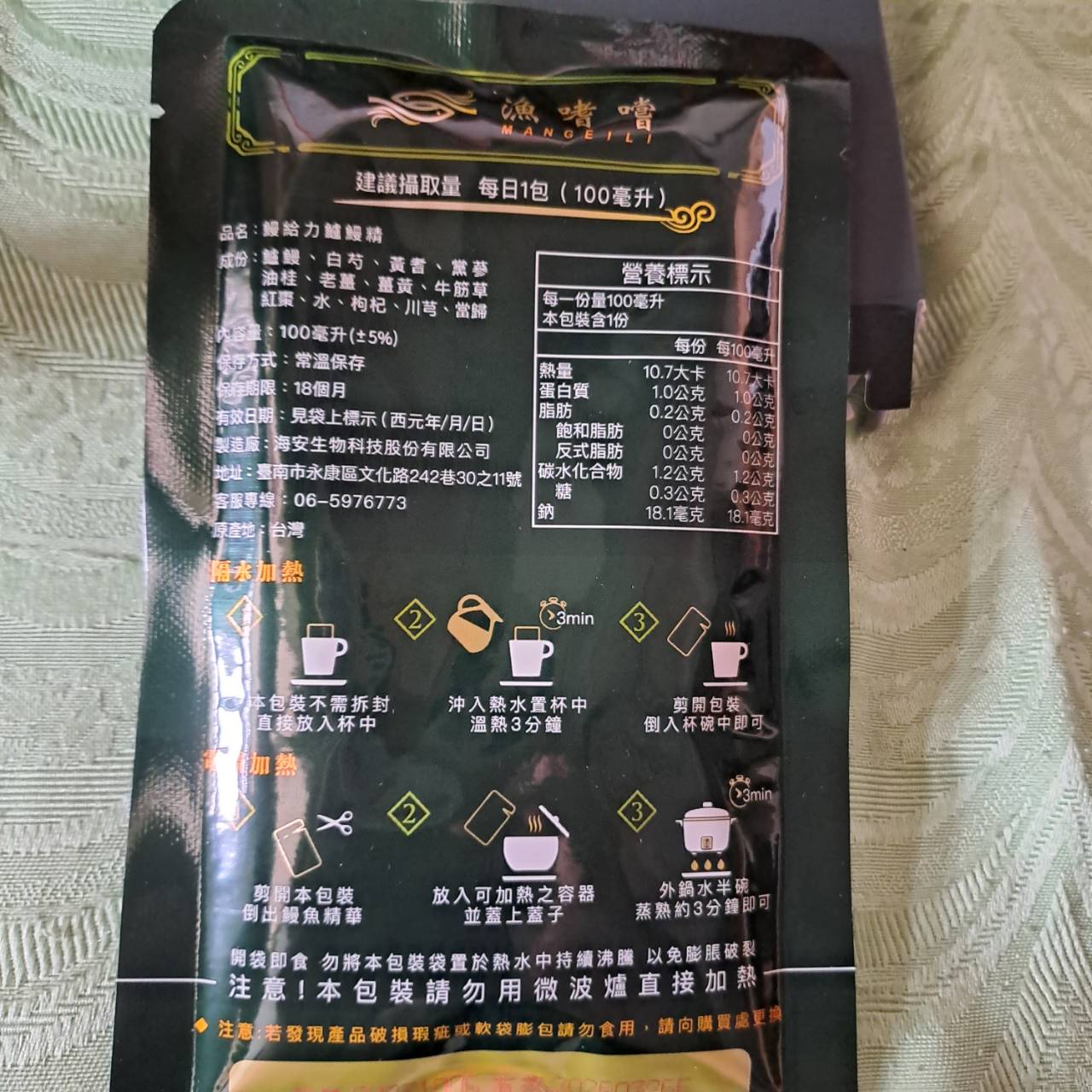 回列表 【漁嗜嚐】鰻給力鱸鰻精 - 術後恢復、產後無力、身體虛弱最佳營養補充品 市價768元 (免費申請) 所需等級 一般會員以上 所需學分 30 體驗份數 200 關注人數 1633 申請人數 302 申請截止 立即購買 品牌業者:漁嗜嚐 負責廠商 海安生物科技股份有限公司 廠商地址 台南市永康區文化路242巷30之11號 產地 台灣 試用產品規格 100毫克/包(共2包) 食品業者登錄字號 D-189176446-00000-6 投保產品責任險字號 華南產物保險1402-132050105 心得分享 商品介紹 商品成分 使用方法 注意事項 體驗名單 9.0 海安生技 鰻給力鱸鰻精 好喝無腥味 9.1 適合年節送禮/探病 9.3 有助於元氣補充 9.1 整體風味喜好 8.8 建議推薦 8.9 心得分享 193則 黃秀雯 鑽石達人 50歲 新北市 2024/10/18 對海安生技 鰻給力鱸鰻精留下評價 10 這次真的很謝謝食力和廠商提供的 鰻給力鱸鰻精,正好秋季,是最適合補益氣的時節,所以當下收到鱸鰻精時,就馬上拆封,準備好好的補一下,正好最近也覺得人累累的,所以喝下去一定最有感覺。於是乎就照著包裝上的說明,用熱泡的方式隔水加熱三分鐘,一打開包裝,就有香味撲鼻而來,真的是有當歸的香味,真的香氣四溢,讓人迫不及待的想要喝上一口。入口時的溫潤,不會讓人覺得強烈的剌鼻味,很好入喉,溫和的中藥味並不讓人討厭,其實敝人是很不能接受中藥味,所以幾乎是不喝,但是這個鱸鰻精是讓人接受度很高的產品,而且喝完,真的會覺得元氣滿滿,本來還覺得身體有些疲勞,喝完沒多久後,就覺得精神變好了不少,謝謝廠商和食力提供的鱸鰻精! 陳奕丞 鑽石達人 37歲 新北市 2024/10/20 對海安生技 鰻給力鱸鰻精留下評價 10 首先謝謝 【食力】 & 【海安生物科技股份有限公司】提供這次試用【鰻給力鱸鰻精】的機會,因為我常常熬夜加班工作,只要熬夜的隔日一早,我都有服用雞精或是鱸魚精的習慣,看到這次的鰻魚精,特別的感興趣,尤其是由【海安生物科技股份有限公司】推出的產品,更是品質保證,因為是第一次喝鱸鰻精,我特別到官網做了一下功課(如下),經由自身的體驗後,分享心得給大家。我特別到網路搜尋了一下相關資料^^(取自官網及網頁相關資料)養殖五年以上鱸鰻與老中醫傳承中藥複方結合。專利『甕粹工法』,炭火熬製12小時。鱸鰻歷經獨有淨化程序,無腥味、無土味。為術後、產後、虛弱無體力的你,補足每日所需能量。親自拿到試吃品後,『鰻給力鱸鰻精』喝起來口感像濃郁的藥膳魚湯,但完全沒有油脂和魚腥味,十分爽口,每一包獨立包裝,加熱十分容易,立即打開水即可喝完,收到試吃品的同時,小弟我剛好在感冒的恢復期,食用後,感覺病後的恢復比較快,疲勞感有明顯減輕,精神變得比較好。如果您跟我一樣常常熬夜加班,偶而不小心感冒,需要補充元氣時,那我真心覺得的【海安生物科技股份有限公司】這款【鰻給力鱸鰻精】不錯。真心推薦給您。PS很高興參加本次的試吃活動,謝謝 張佑安(yuanchang) 鑽石達人 63歲 臺中市 2024/10/27 對海安生技 鰻給力鱸鰻精留下評價 10 很高興有此機會試吃「鰻給力鱸鰻精」這款保健食品,是一個令人愉快的「吃」體驗。這款試飲配方看起來包含了不少補氣補血、溫補驅寒的成分,像是當歸、川芎、黨蔘和黃耆等都是中藥材中常見的補品。而鱸鰻則提供蛋白質,搭配牛筋草(馬齒莧)可增加一些清熱去火的效果;加上老薑、薑黃、油桂等暖身成分,整體應該偏向溫潤、稍帶辛香的滋補風味。這樣的配方可能會帶有中藥材的特有香氣,帶著薑黃和老薑的微辣辛香,當歸和川芎則有一點濃郁的土味。枸杞、紅棗可能讓湯頭有淡淡的甘甜,平衡藥材的苦味。因為含有鱸鰻,可能帶有一些鮮甜的底味,尤其是經過長時間熬煮,湯頭應該會變得滑順。若牛筋草用量較多,可能會增加些微的植物清香。這款湯應該有溫補驅寒、補氣補血的效果,適合在天氣較涼的季節或身體疲勞、需要補氣時飲用。尤其適合手腳容易冰冷、氣血虛弱的人飲用,長期飲用可能有改善氣色和提振體力的效果。 林雅文 鑽石達人 45歲 新北市 2024/10/28 對海安生技 鰻給力鱸鰻精留下評價 10 作為一名長期加班的科技業工程師,我最近試用了【漁嗜嚐】的鰻給力鱸鰻精,這款產品讓我在忙碌的工作中感受到了一絲滋養,特別適合像我這樣的上班族。首先,這款鰻精的好喝無腥味讓我驚喜。通常對於海鮮類產品,總是有些顧慮。但這款鰻精的口感非常順滑,完全沒有腥味,反而帶有淡淡的香氣,讓我在繁忙的工作中也能享受美味。在元氣補充方面,我感覺到明顯的提升。經過長時間的加班,身體常常感到疲憊,喝了這款鰻精後,精神狀態有了很大的改善,讓我能夠更專注於工作。整體風味上,這款鰻精的配方非常講究,除了鱸鰻,還添加了多種中藥材,如老薑和枸杞,讓整體風味更加豐富,喝起來不會感到單調。最後,我認為這款產品非常適合送禮自用,特別是在年節或探病時,帶上一盒,既體面又實用。對於忙碌的上班族來說,這是一個很好的食補選擇,讓我們能夠在工作中保持最佳狀態! 盧鳴 金食達人 40歲 新北市 2024/10/29 對海安生技 鰻給力鱸鰻精留下評價 9 非常開心可以收到食力的試用商品:【漁嗜嚐】鰻給力鱸鰻精。收到的試用品為墨綠色的小盒包裝,搭配金色的品牌字樣,裡面內裝兩份鰻給力鱸鰻精,很雅致的包裝設計。官方網站看到大盒裝的設計,整體相當典雅精緻,送人自用兩相