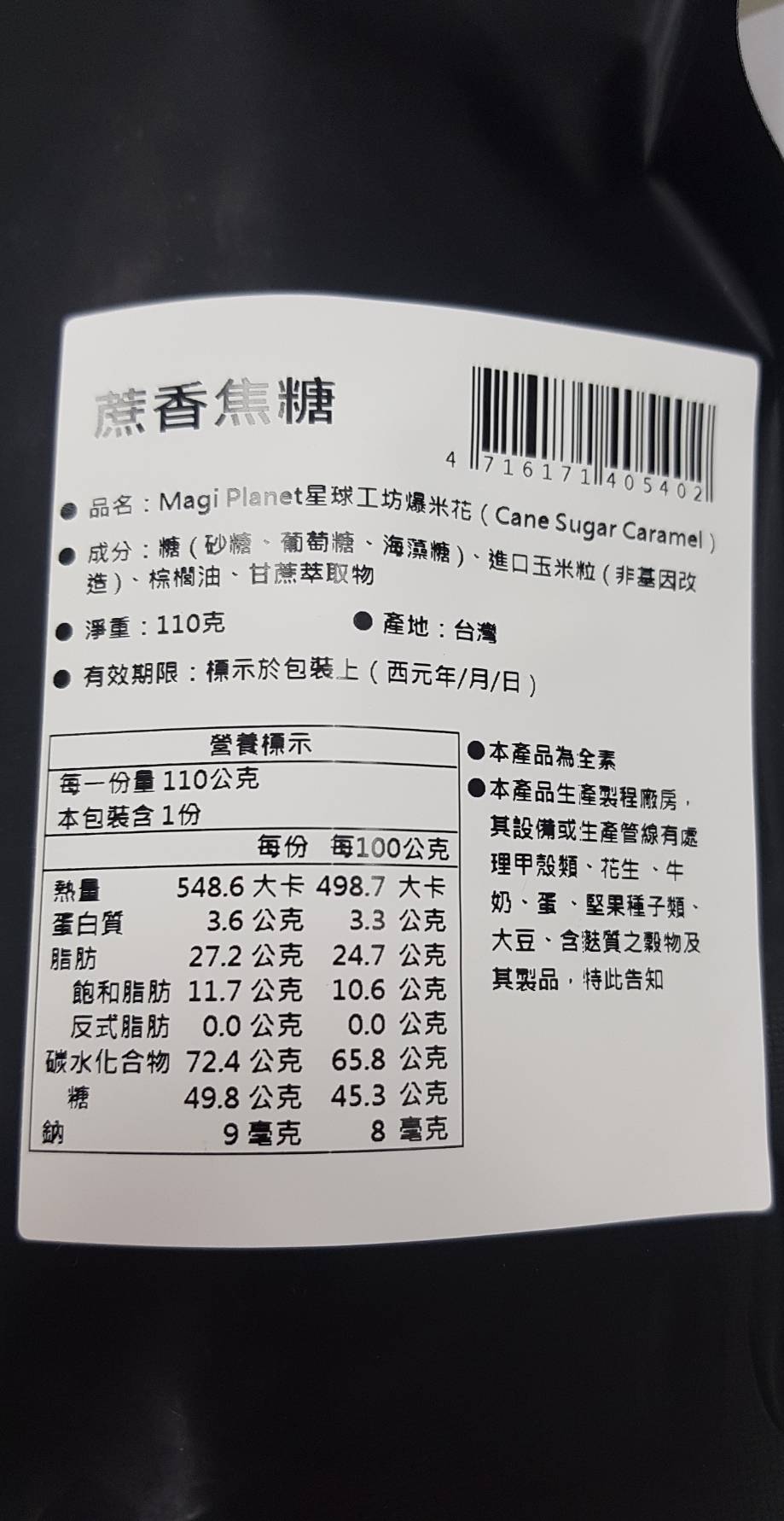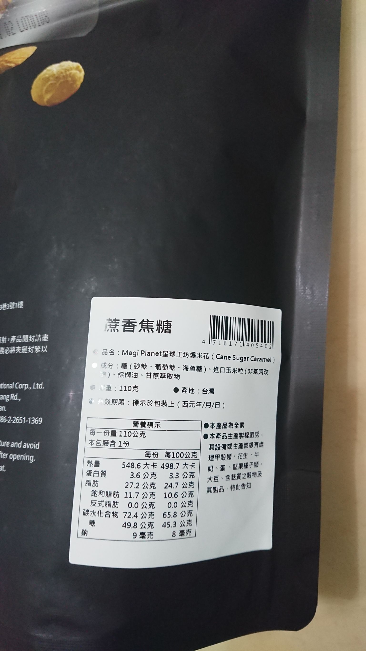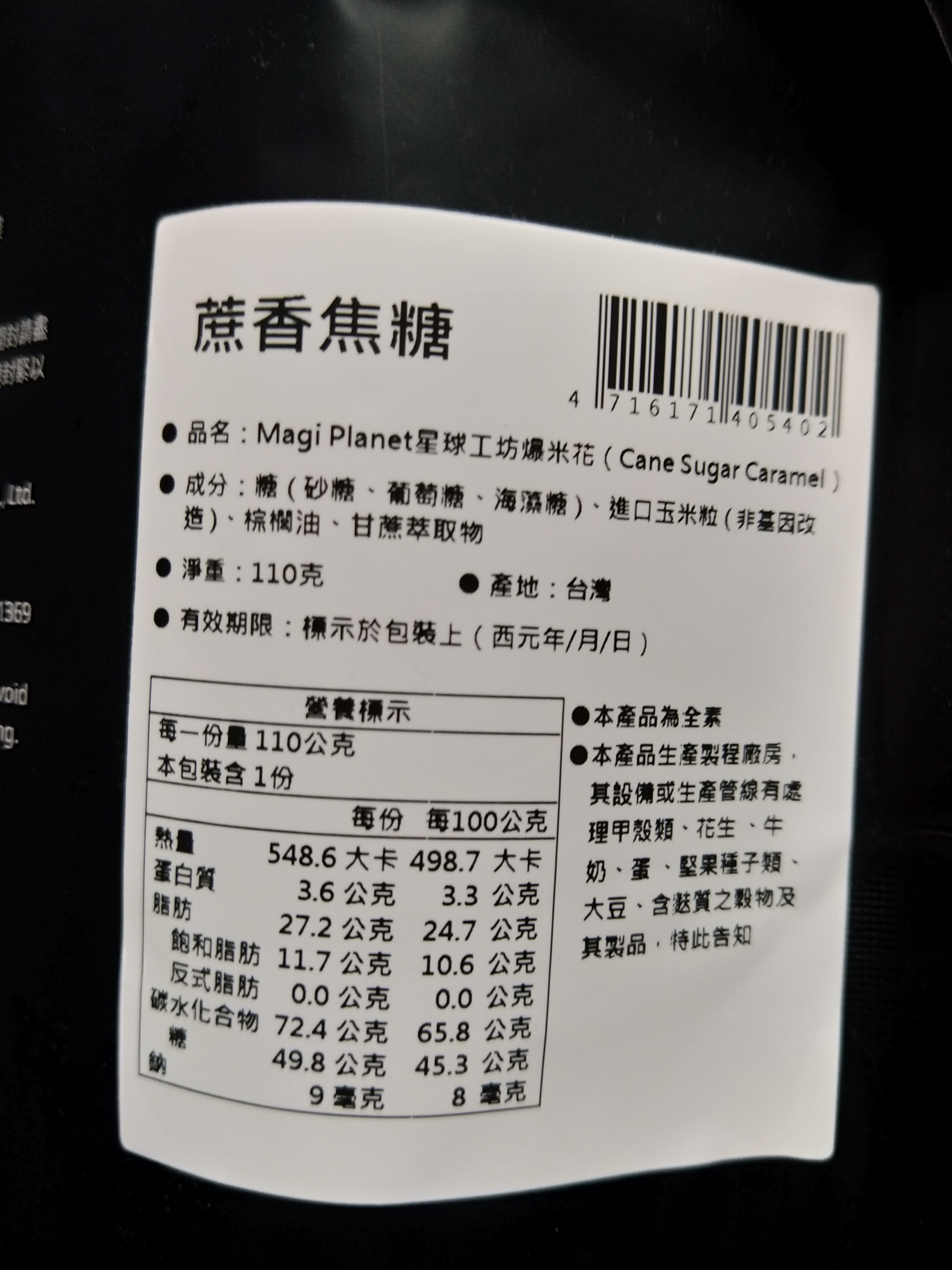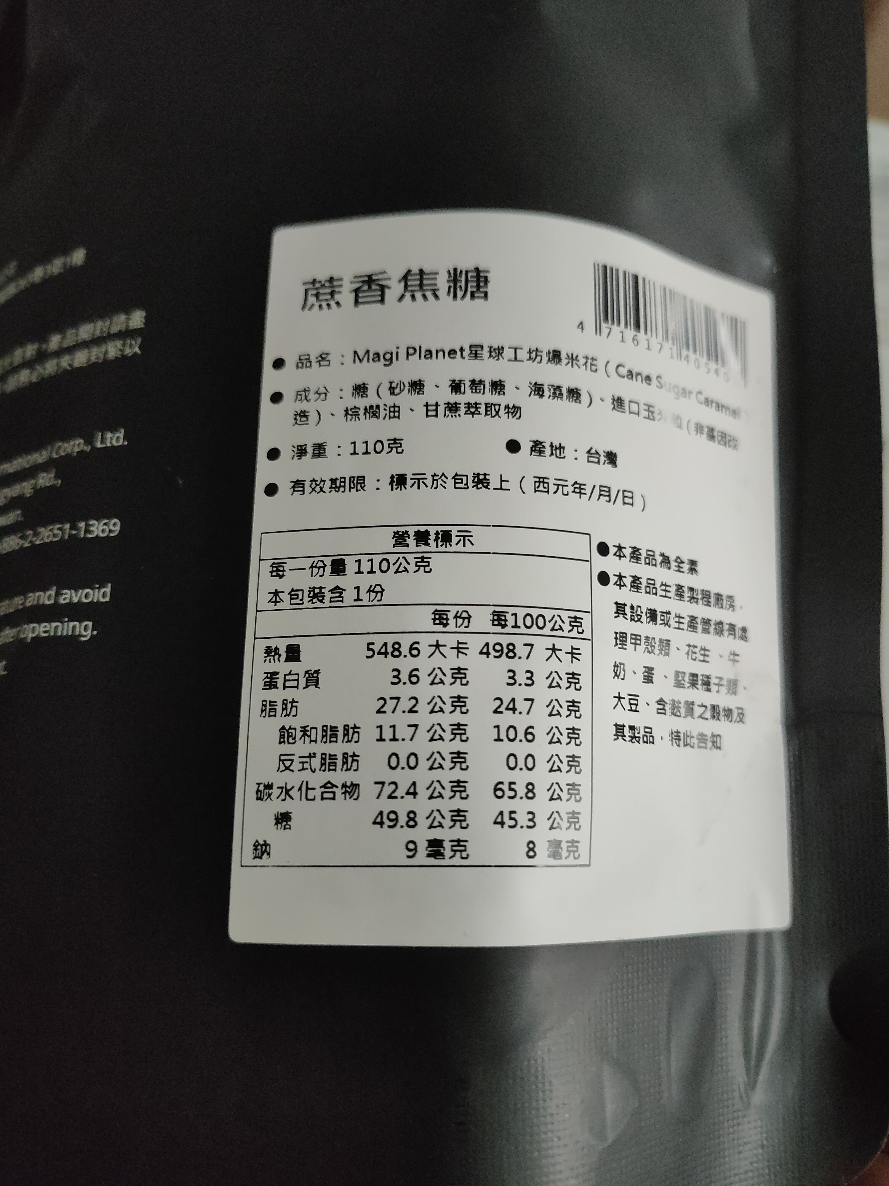 回列表 星球工坊 蔗香焦糖爆米花 涮嘴甜蜜好味道 市售價格150元 所需等級 一般會員以上 所需學分 30 體驗份數 50 關注人數 1358 申請人數 339 申請截止 品牌業者:星球工坊 負責廠商 星奕企業股份有限公司 廠商地址 台北市南港區重陽路263巷3號2樓 產地 台灣 試用產品規格 110g/袋 食品業者登錄字號 A-125144882-00000-2 心得分享 商品介紹 商品成分 使用方法 注意事項 體驗名單 8.9 星球工坊 蔗香焦糖爆米花 包裝美學 8.9 口感香脆 9.1 風味層次 8.6 甜度適中 8.5 建議推薦 8.7 心得分享 49則 陳麗婷 鑽石達人 52歲 苗栗縣 2022/01/13 對星球工坊 蔗香焦糖爆米花留下評價 10 星球工坊--蔗香焦糖爆米花~~收到產品的同時,包裹內還附上星球工坊系列產品的DM型錄~~星球工坊選用的都是美國進口頂級非基因改造玉米粒所製成而成的爆米花~~口味多元~每一款看起來都很好吃耶~~~今天要品嚐的就是經典系列之一的:蔗香焦糖爆米花~~星球工坊除了在台灣有門市,海外也有門市據點~~星球工坊 蔗香焦糖爆米花~~黑色系的包裝設計頗有星球神秘的感覺~~這一大包約110克~份量不少哦~~看起來就很好吃耶~~蔗香焦糖口味~~保存期限蠻長的~~標榜無添加很健康,低糖又爽口~~成分:糖( 砂糖、葡萄糖、海藻糖 )、進口玉米粒 ( 非基因改造 )、棕櫚油、甘蔗萃取物~一打開就是香香甜甜的蔗糖香氣~裡面的爆米花顆顆渾圓飽滿~每顆爆米花上都均勻沾裹了甜甜的焦糖~~香氣十足,粒粒爽脆不死甜~~星球工坊的蔗香焦糖爆米花~~第一次品嚐,留下很好的印象~~我不喜歡電影院賣的爆米花,因為奶油味很重,又潤潤的,可是星球工坊的爆米花不會耶~蔗香焦糖爆米花~~很好吃很脆口卻又不會死甜~~很容易一顆接一顆的吃個不停啊~~每顆爆米花幾乎都這麼完整又大粒啊~~每顆都均勻沾滿了焦糖的香甜~~真的很好吃,顛覆了我對爆米花的印象~因為成分單純自然,無添加,讓消費者能安心享用~~希望下次還有機會嚐試其它不同的口味~~愛上星球工坊的爆米花啦~~ 林彥廷 金食達人 40歲 桃園市 2022/01/13 對星球工坊 蔗香焦糖爆米花留下評價 10 當吃下的第一口 脆中帶軟 香中帶些微甜 感覺跟一般爆米花不一樣 這款-蔗香焦糖爆米花- 完全吃不到硬硬的爆米花米 也沒有焦味 簡直是極品 連我家小朋友吃了也還想再吃.意猶未盡的香味 感謝食力提供這麼棒的產品 第一次體驗感覺很棒 讓人體驗到美味 余曉雯 金食達人 44歲 臺南市 2022/01/13 對星球工坊 蔗香焦糖爆米花留下評價 9 這次試吃的是星球工坊爆米花 蔗香焦糖口味 包裝袋手感不錯 很容易撕開 封口有夾鏈袋 不用擔心吃不完不好保存 袋口不適合手直接伸進去拿出來食用 適合倒在容器上食用 爆米花外型圓滾滾的 醬色也都很平均 看起來很討喜 很適合過年的氛圍 口感硬脆 口味有點甜 我有搭配黑咖啡 咀嚼到最後還有點苦感 會忍不住一顆接一顆的吃 然後就把一包吃完了 我以前有吃過星球工坊其它口味的爆米花 星球工坊對於爆米花硬脆口感和圓潤外型的創新 會讓人有很高的評價 殷聖善 金食達人 50歲 桃園市 2022/01/13 對星球工坊 蔗香焦糖爆米花留下評價 10 星球工坊-蔗香焦糖爆米花,脆脆的口感,好吃耶^^首先是焦糖的香氣四溢,嚼著嚼著開始出現淡淡的蔗香味,就像喝完甘蔗汁後留在嘴裡的餘味。甜而不膩,真的是一吃就停不下來,差點就要直接完食。其實我一向是喜歡吃鹹口味的爆米花,但這款蔗香焦糖口味改變了我對甜味爆米花的觀感。 林益詠 鑽石達人 36歲 臺中市 2022/01/13 對星球工坊 蔗香焦糖爆米花留下評價 10 爆米花是許多人的童年回憶,更是現今觀看電影不可或缺的好物,今天收到了由食力寄來星球工坊的蔗香焦糖爆米花,在吃之前,先做了上網搜尋,爆米花其實是很常見的食物,而星球工坊在口味上多樣化與用心,已經成功打響了知名度,是一個很有名的爆米花品牌。 而焦糖口味的爆米花更是榮獲A.A.無添加三星認證,這更讓我好奇吃起來的感覺了。包裝上採用黑色系,中間放著球形金黃色爆米花堆疊在一起的圖片,彷彿置身在宇宙的黑暗中,看到了爆米花星球的光芒一般。打開包裝,一陣焦糖的香氣,使人聞了之後心情很好,吃起來的口感先是一股清甜,加上爆米花鬆軟的口感,觸動了小時候品嘗爆米花的味蕾,也是這樣簡簡單單,甜甜的口感。 星球工坊的蔗香焦糖爆米花因為有無添加認證,讓我能更安心享用這兒時回憶。 楊雅婷 鑽石達人 45歲 新北市 2022/01/13 對星球工坊 蔗香焦糖爆米花留下評價 9 爆米花一直都是大人、小孩喜愛的零食之一,所以家中都會固定備庫存,通常是巧克力口味。這次帶蔗糖口味回家,小孩都非常驚奇,迫不及待要打開來試吃。 蔗糖爆米花的口感真是讓人非常驚豔,甜中還帶有焦糖味,吃多了也不會覺得膩。重點它是純甘庶的糖,非常放心讓小孩食用。喜歡吃爆米花的朋友不防買來吃看看,真的非常好吃哦! Liu Hao 鑽石達人 43歲 屏東縣 2022/01/13 對星球工坊 蔗香焦糖爆米花留下評價 10 很開心能獲選本產品試吃活動,我平時是不會主動去買爆米花當零嘴來吃的人,除非是家人有買或是去電影院看電影的時候。首先,以產品外包裝來說,本產品包裝設計是以黑色為底,非常的簡潔,我個人推測可能是跟品牌名稱”星球”有關吧?爆米花代表黑色宇宙中的星球,雖然配色不是非常鮮豔華麗,但是近乎全黑的外袋擺在眾多產品中,還是會讓人特別
