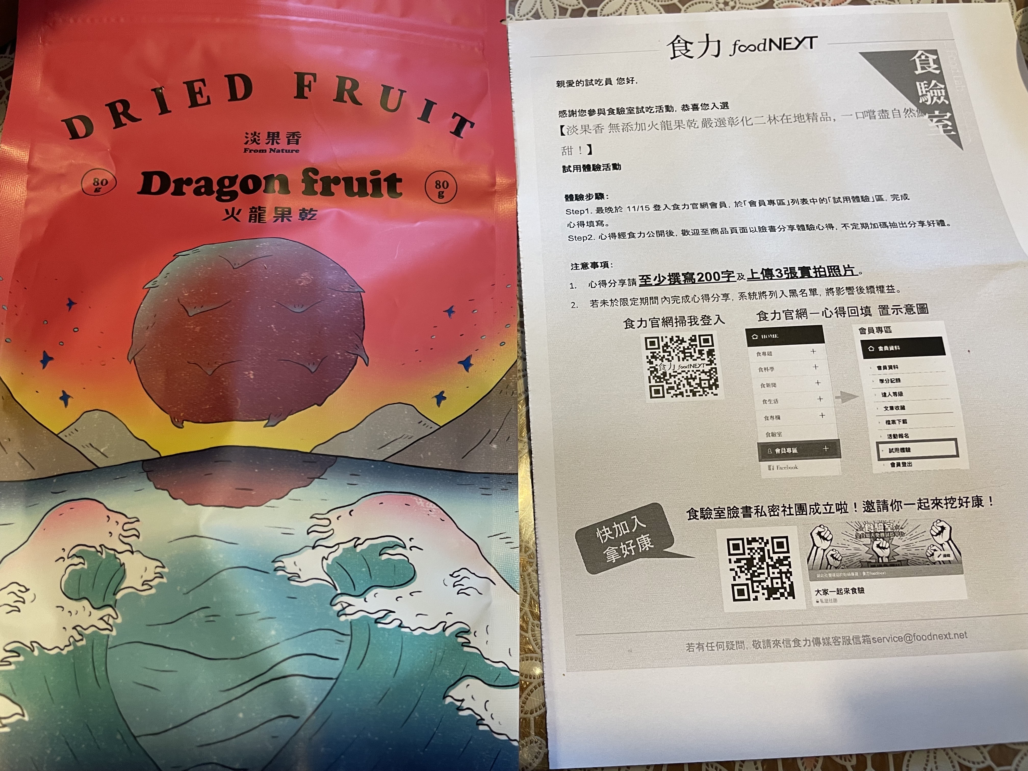 免費試吃體驗由食力指定物流配送,恕不接受由超商代收或寄至郵政信箱, 若不符合規範而遭退貨,視同放棄錄取資格並將列為黑名單。