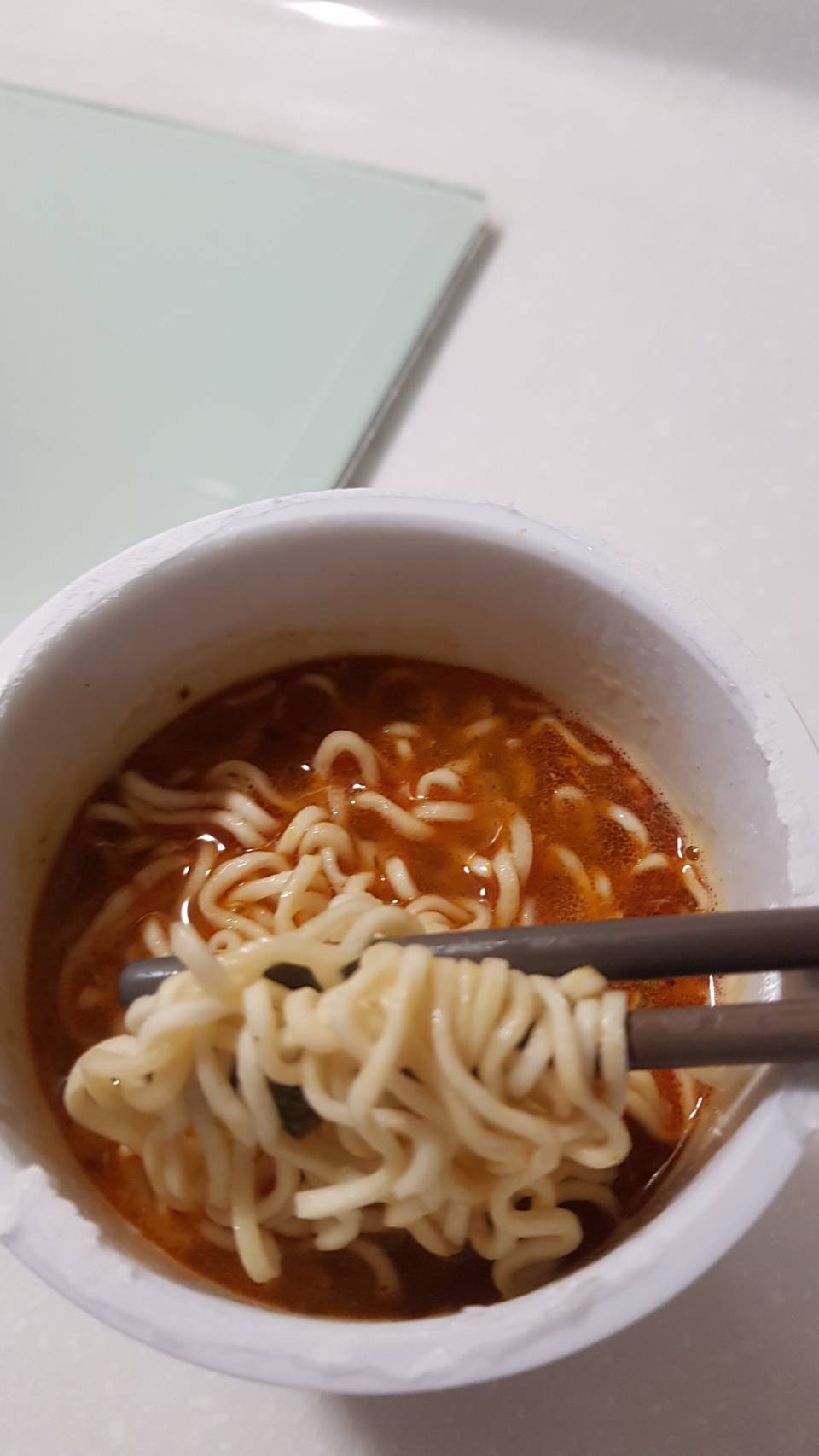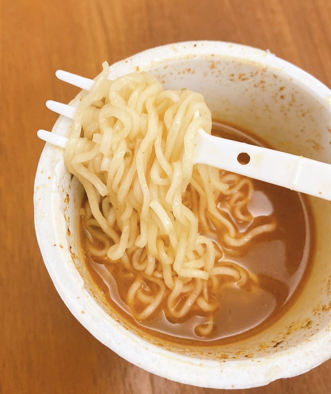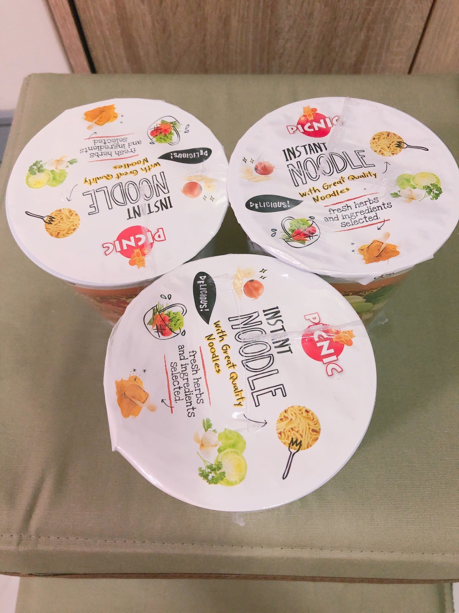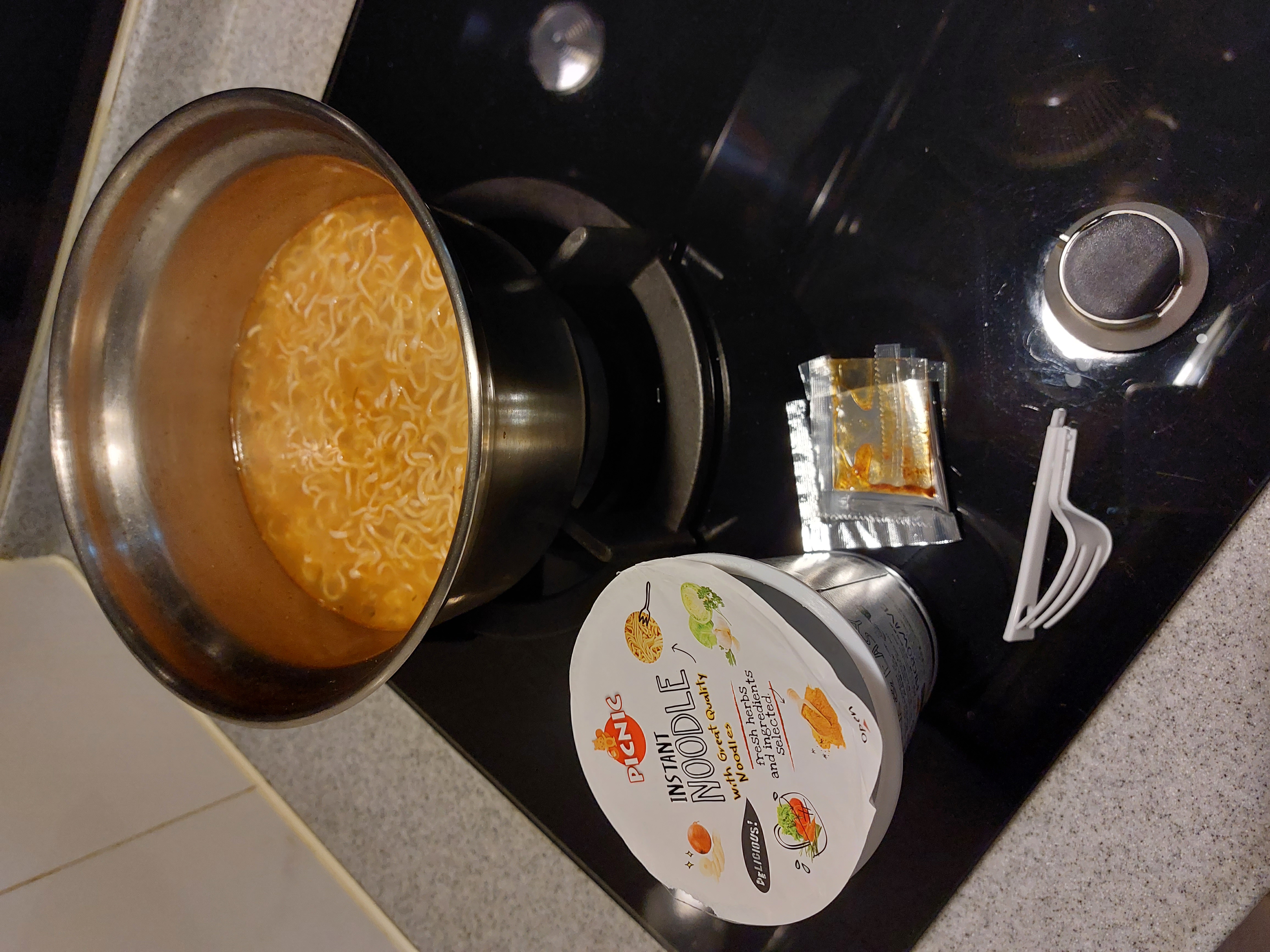 將油包、粉包倒入杯中,注入沸水,蓋上燜煮3分鐘,即可食用。