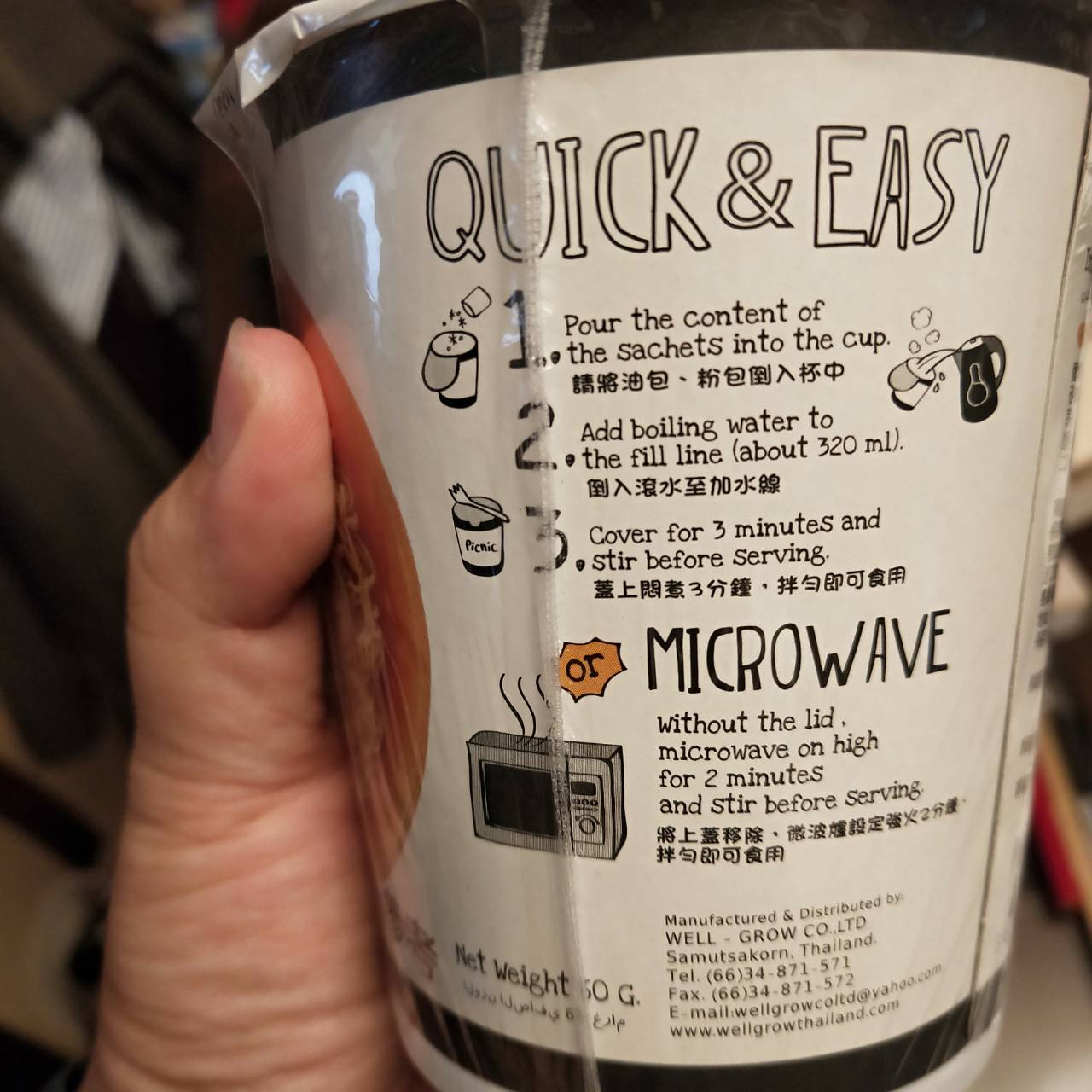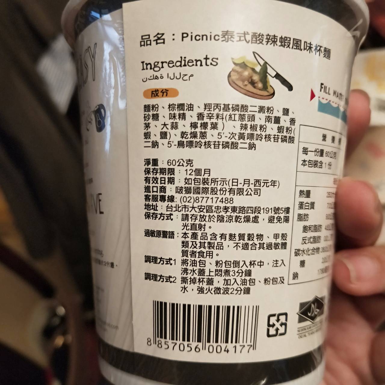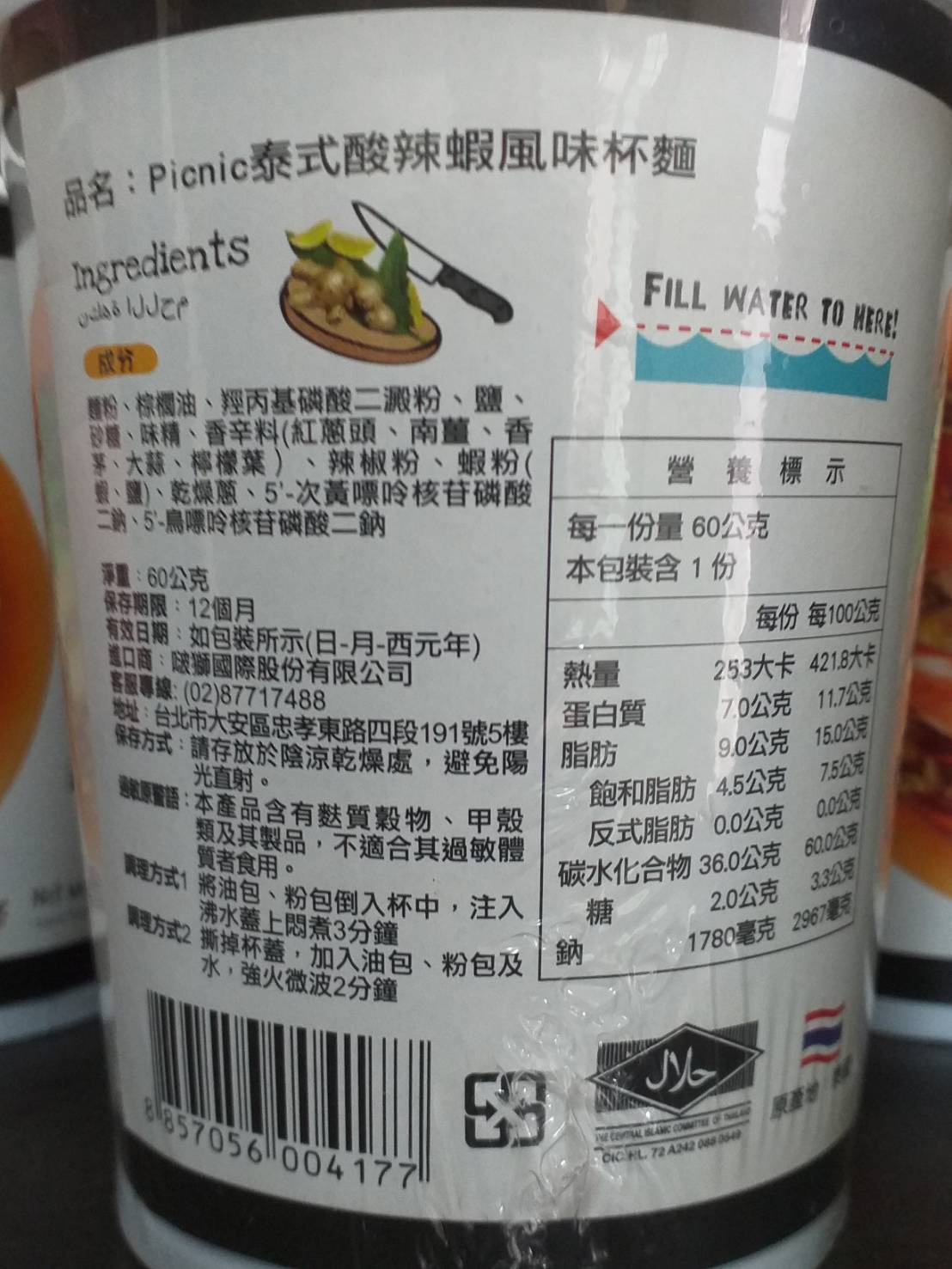調味包:食用鹽、砂糖、味精、辛香料(紅蔥頭、南薑、香茅、大蒜、檸檬葉)、辣椒粉、蝦粉、乾燥蔥、5’-次黃嘌呤核苷磷酸二鈉、5’-鳥嘌呤核苷磷酸二鈉。