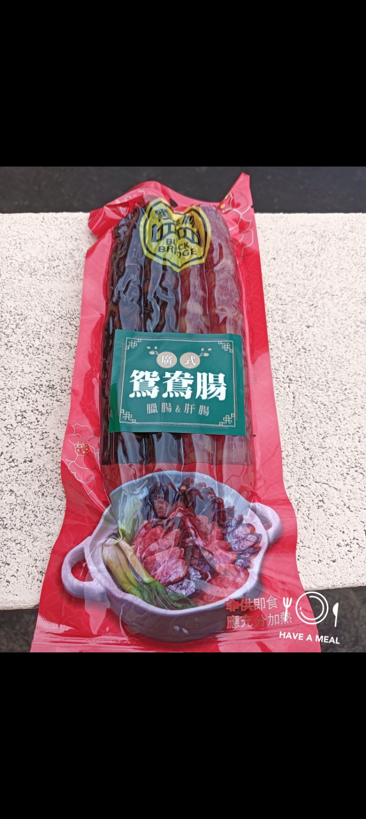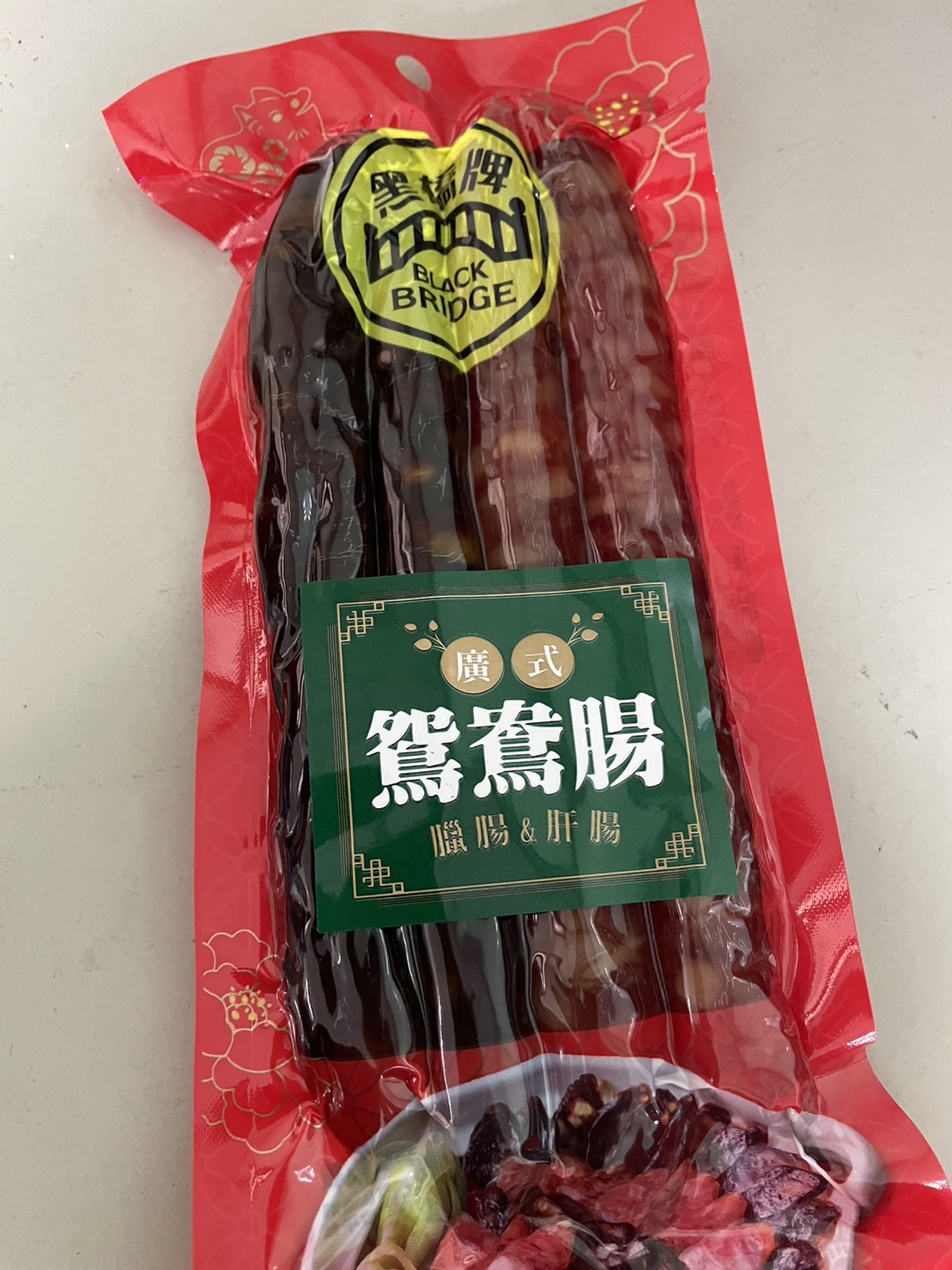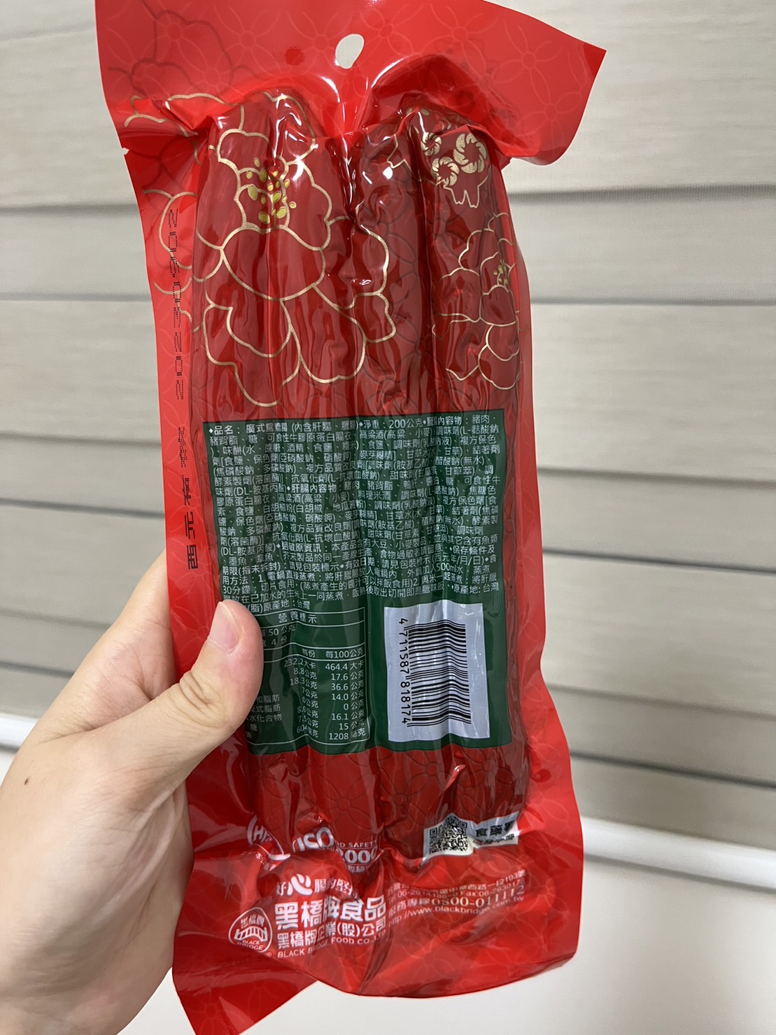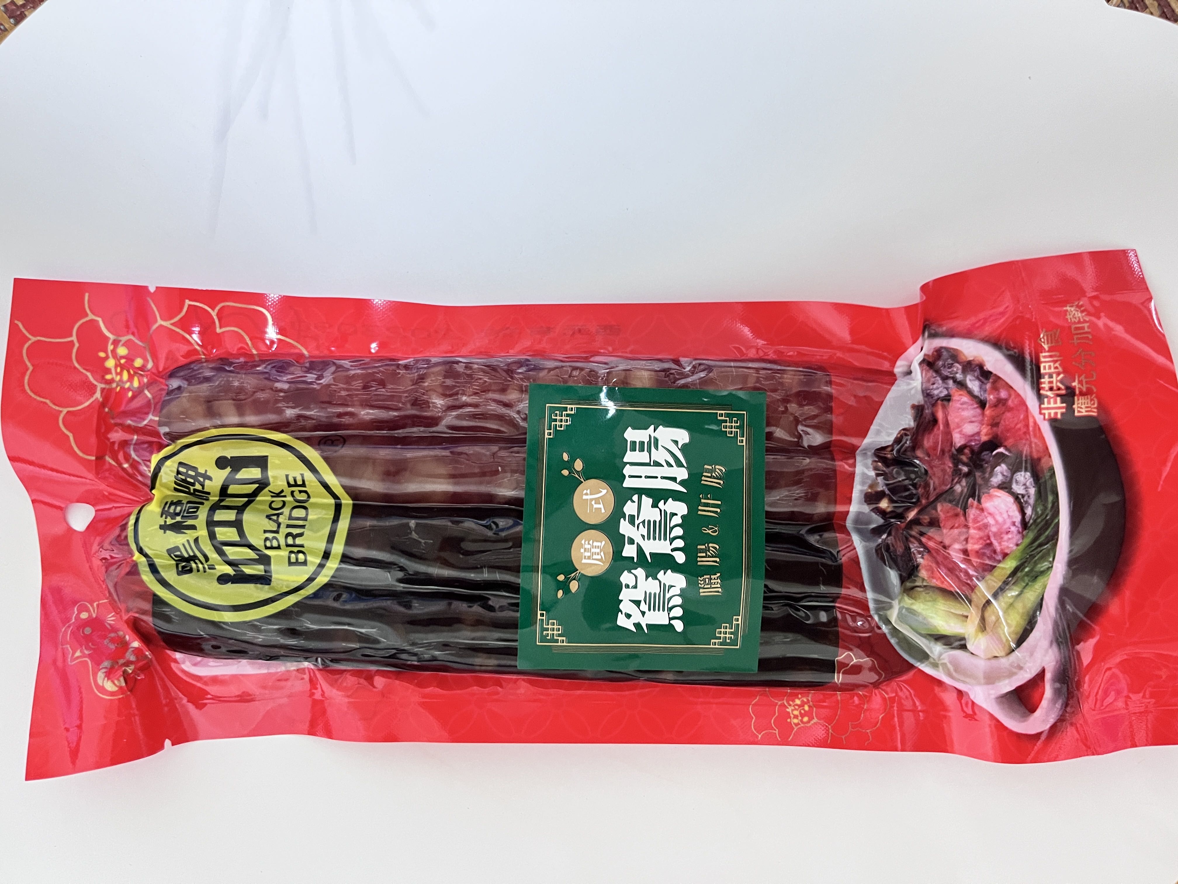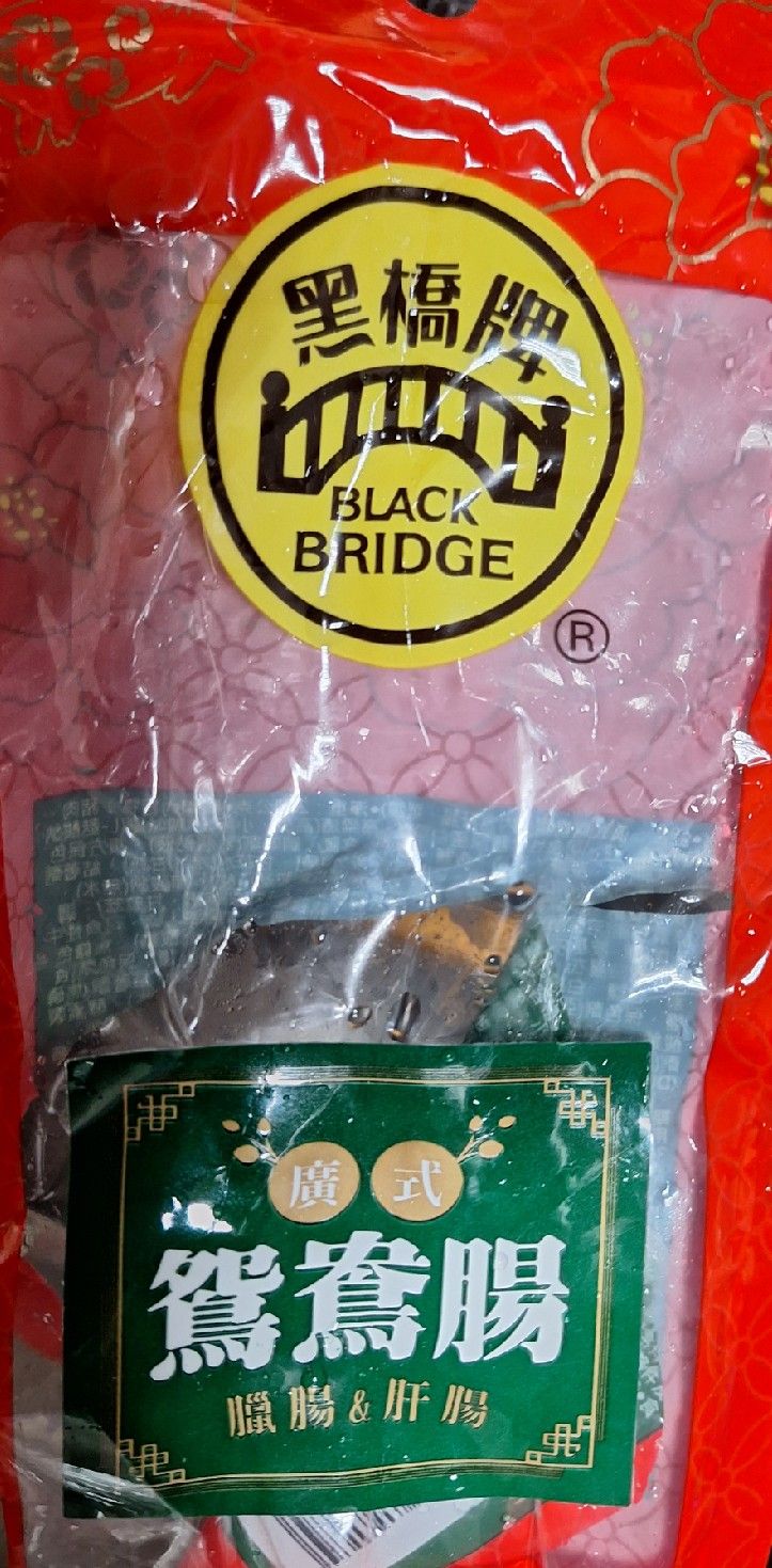 肝腸:豬肉、豬背脂、鴨肝、醬油、糖、可食性牛膠原蛋白腸衣、高粱酒(高粱、小麥)、料理米酒、調味劑( L-麩酸鈉)、焦糖色素、食鹽、白胡椒粉(白胡椒、地瓜澱粉)、調味劑(乳酸鈉液)、複方保色劑[食鹽、保色劑(亞硝酸鈉、硝酸鉀)、麥芽糊精]、甘草水(水、甘草)、結著劑(焦磷酸鈉、多磷酸鈉)、複方品質改良劑[調味劑(胺基乙酸)、醋酸鈉(無水)、酵素製劑(溶菌酶)]、抗氧化劑(L-抗壞血酸鈉)、甜味劑(甘草素、甘草萃)、調味劑(DL-胺基丙酸)