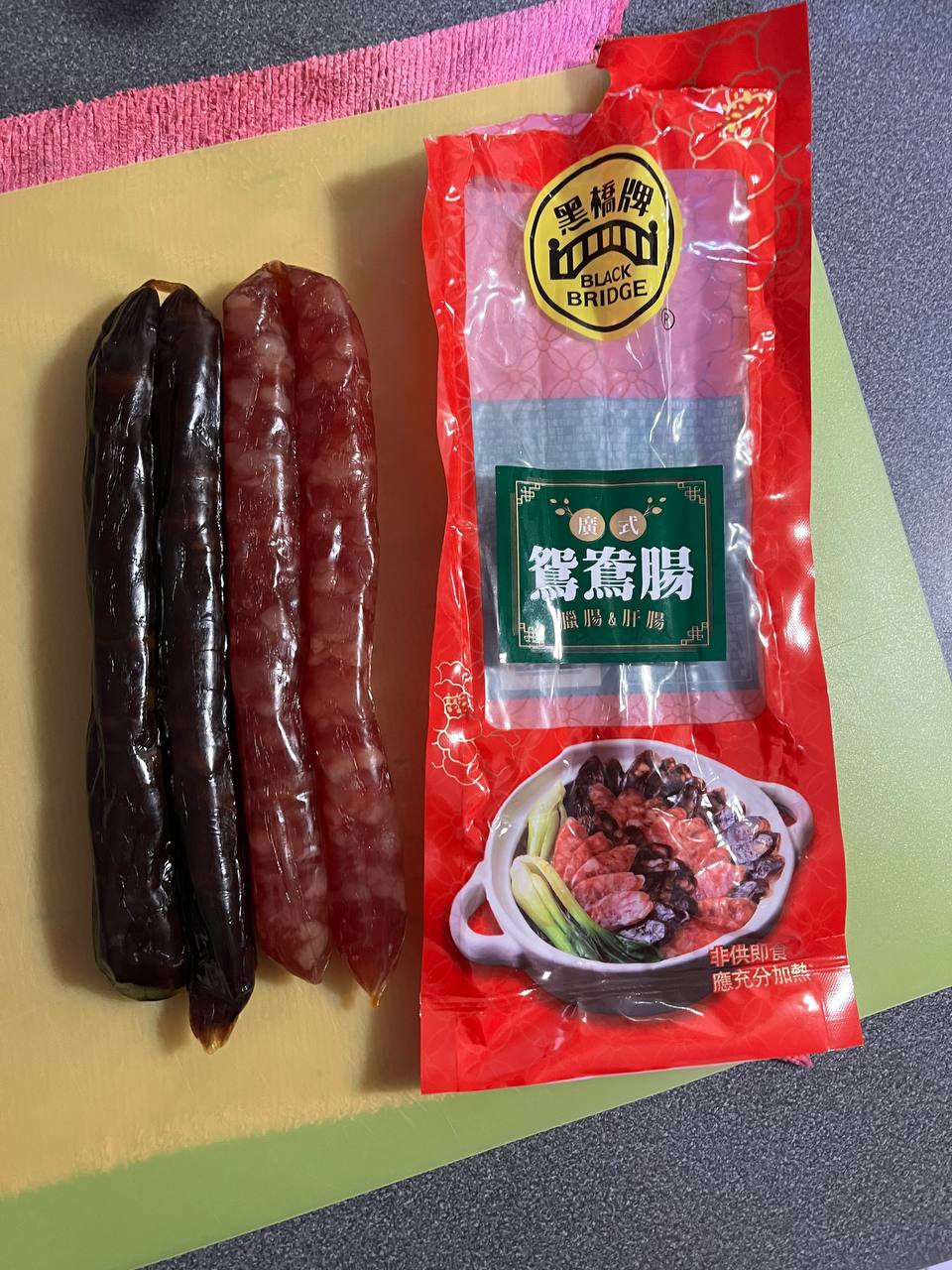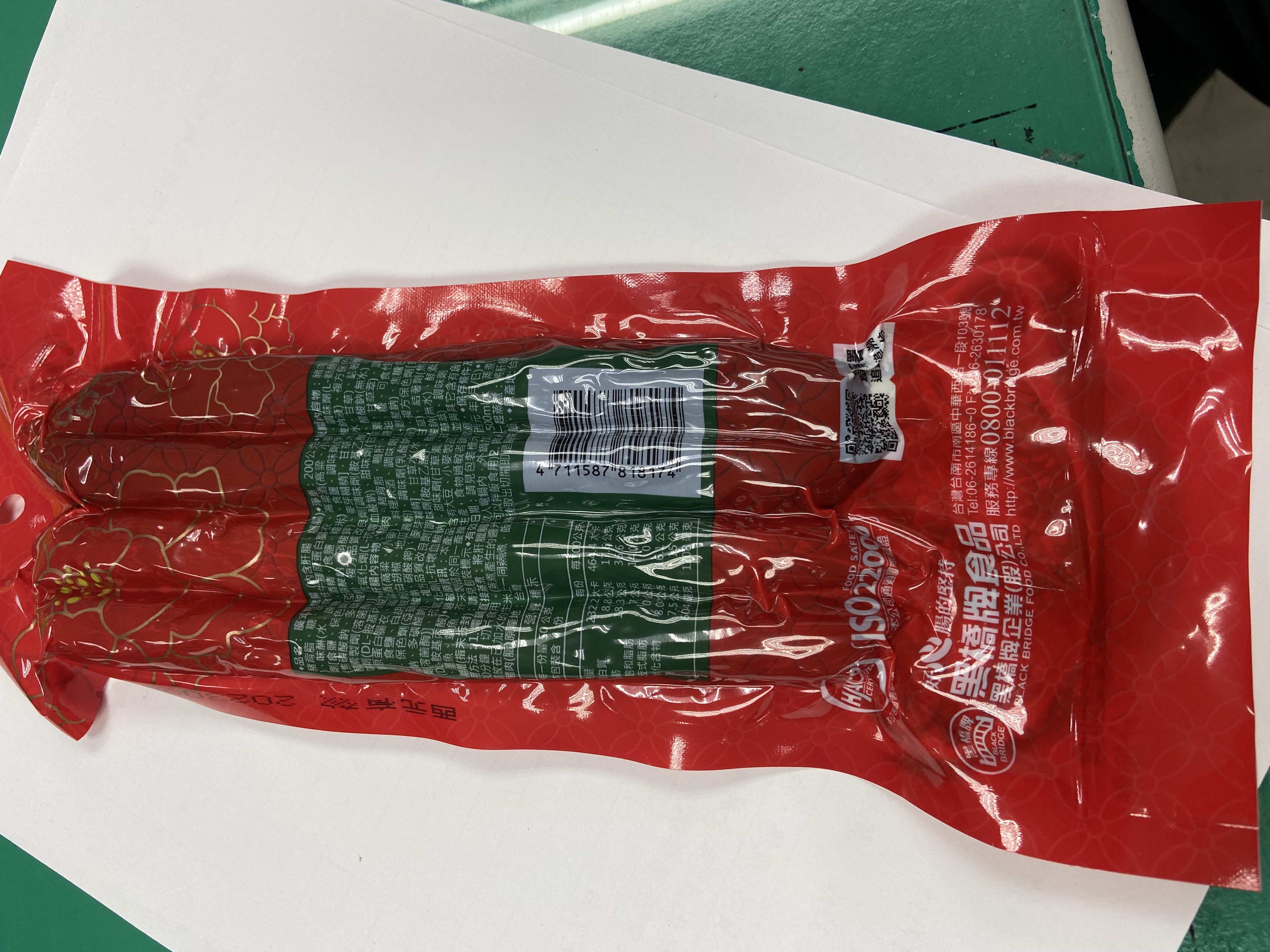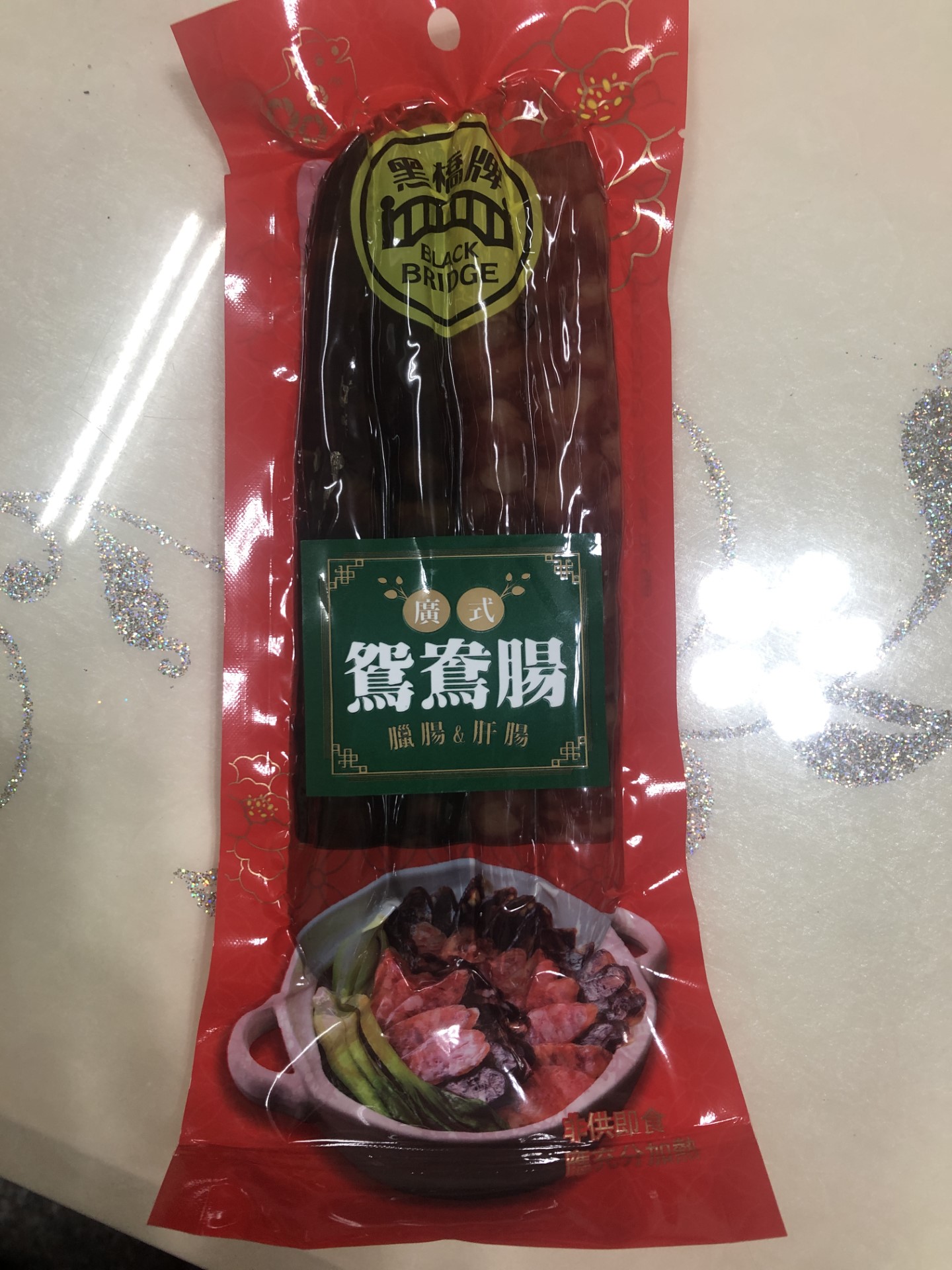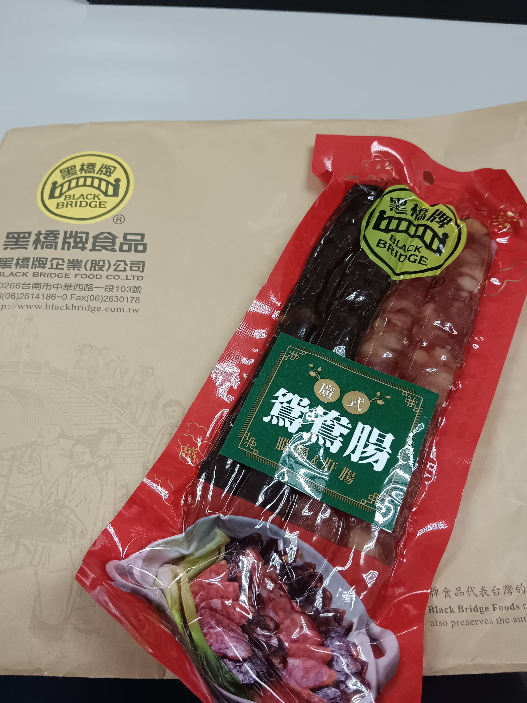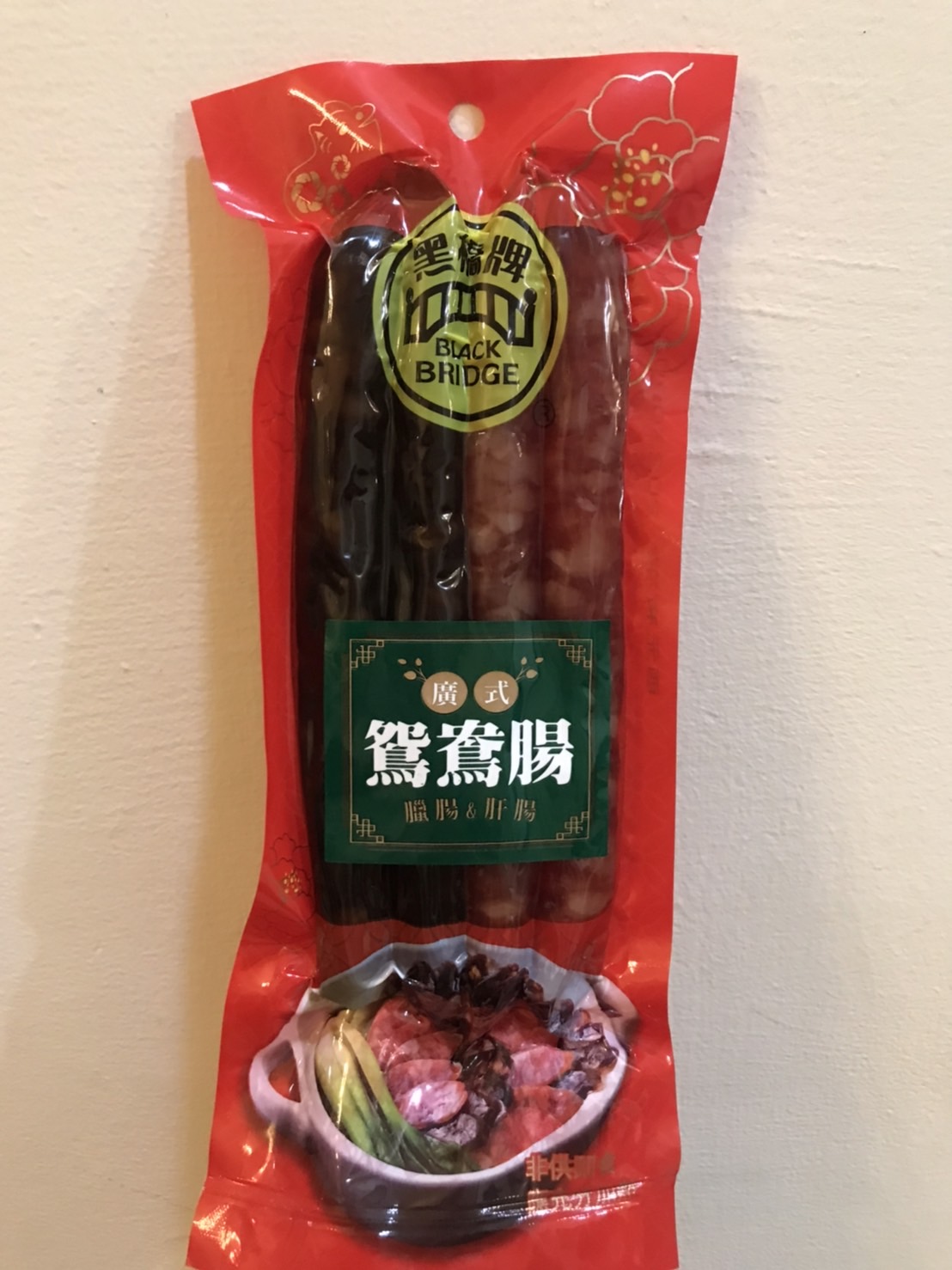 肝腸:豬肉、豬背脂、鴨肝、醬油、糖、可食性牛膠原蛋白腸衣、高粱酒(高粱、小麥)、料理米酒、調味劑( L-麩酸鈉)、焦糖色素、食鹽、白胡椒粉(白胡椒、地瓜澱粉)、調味劑(乳酸鈉液)、複方保色劑[食鹽、保色劑(亞硝酸鈉、硝酸鉀)、麥芽糊精]、甘草水(水、甘草)、結著劑(焦磷酸鈉、多磷酸鈉)、複方品質改良劑[調味劑(胺基乙酸)、醋酸鈉(無水)、酵素製劑(溶菌酶)]、抗氧化劑(L-抗壞血酸鈉)、甜味劑(甘草素、甘草萃)、調味劑(DL-胺基丙酸)