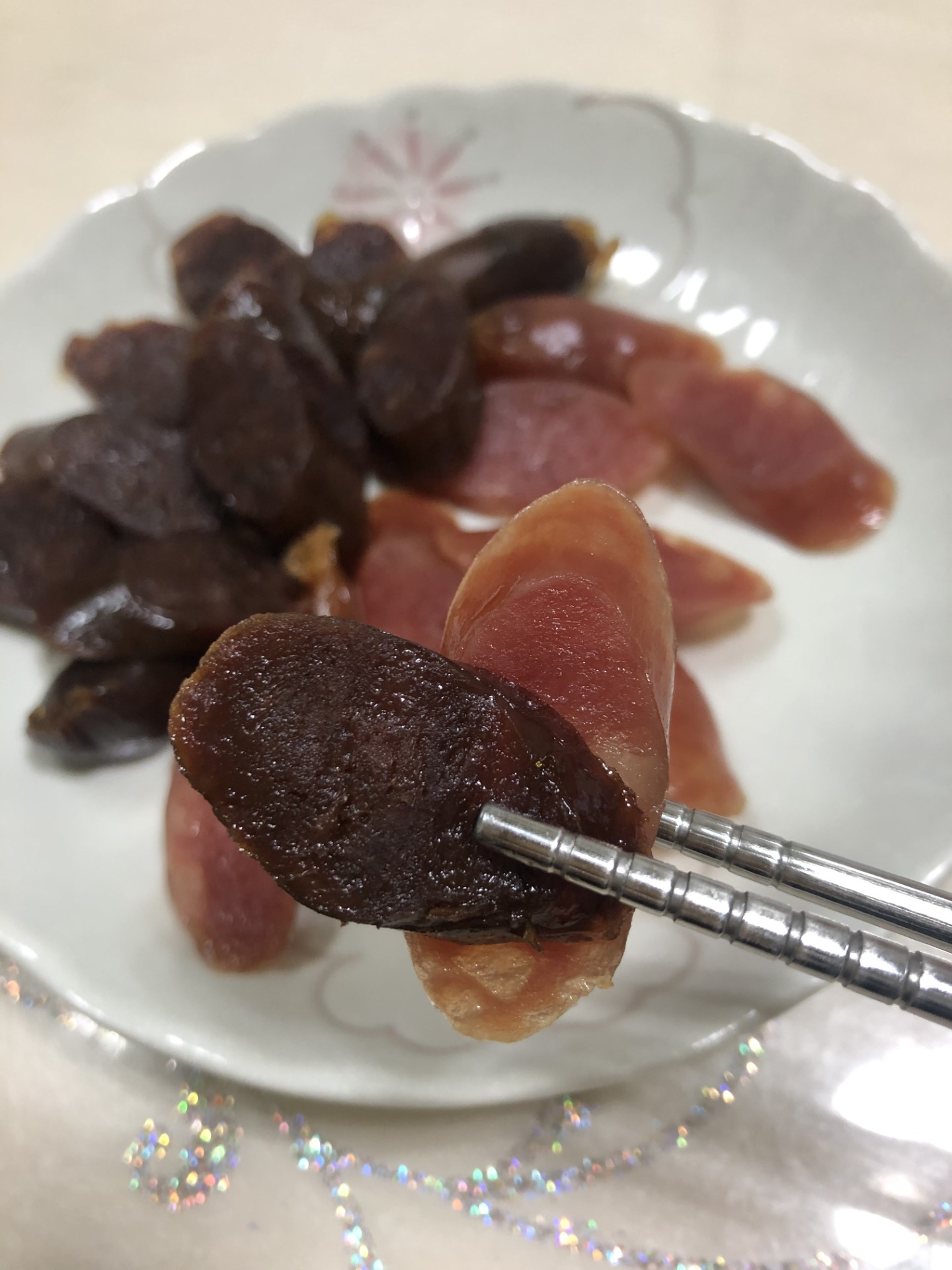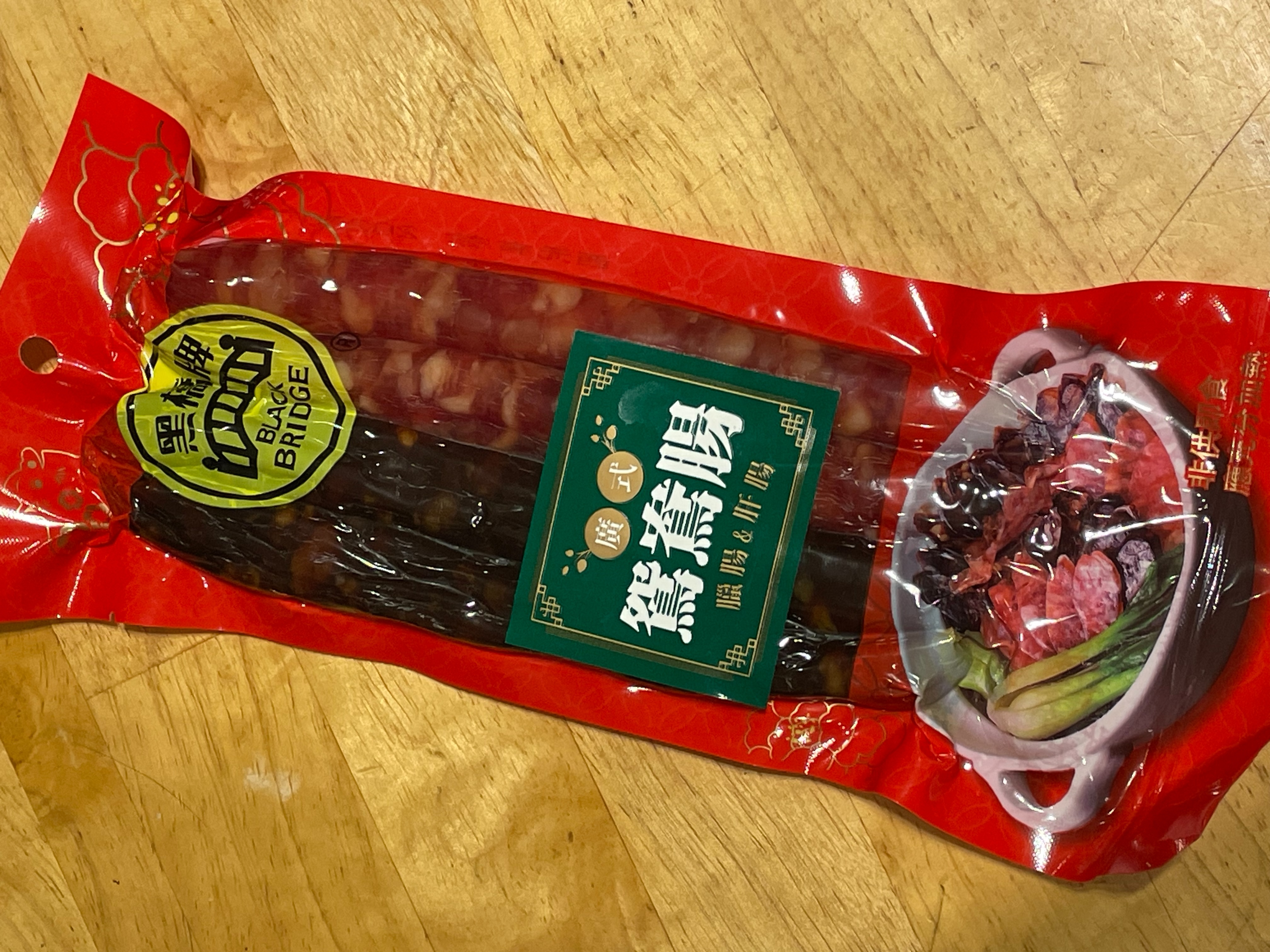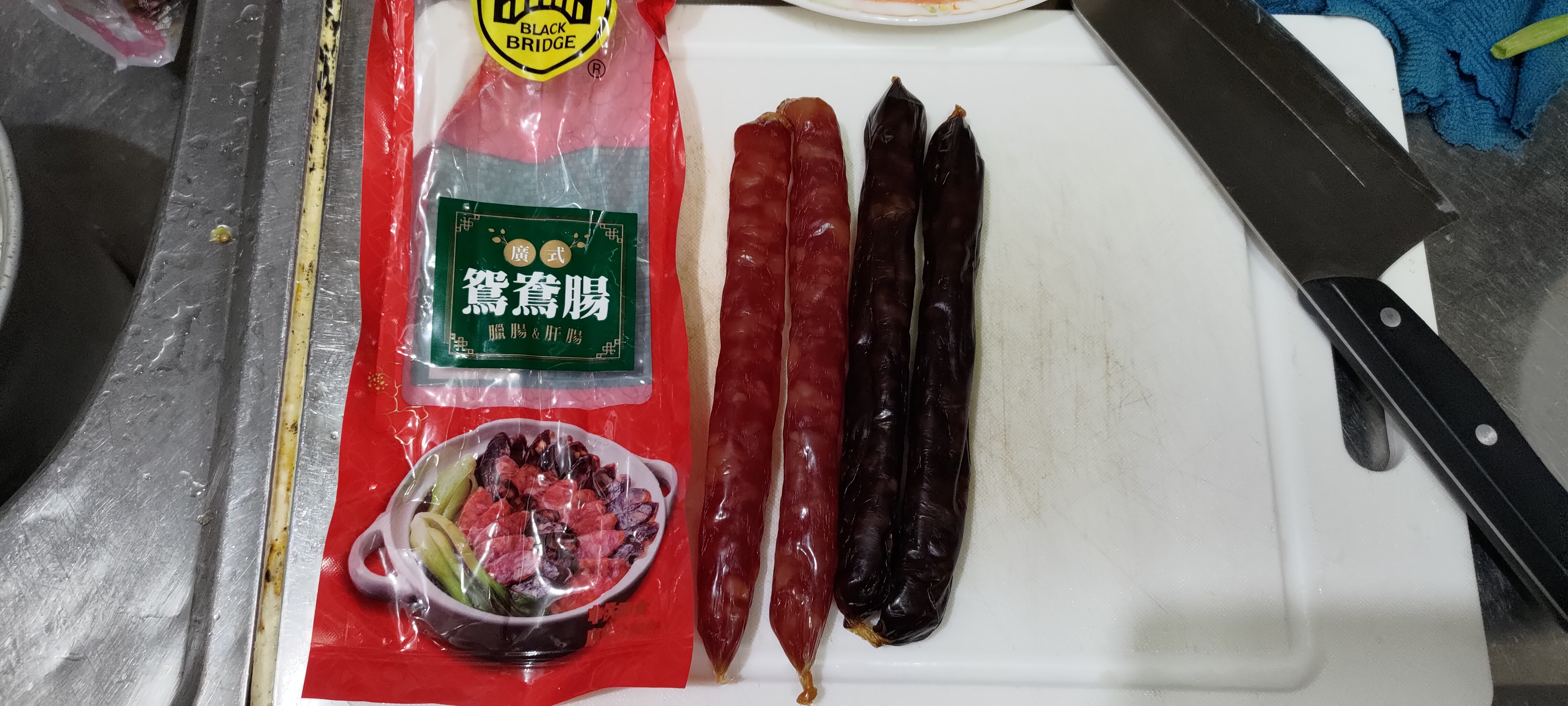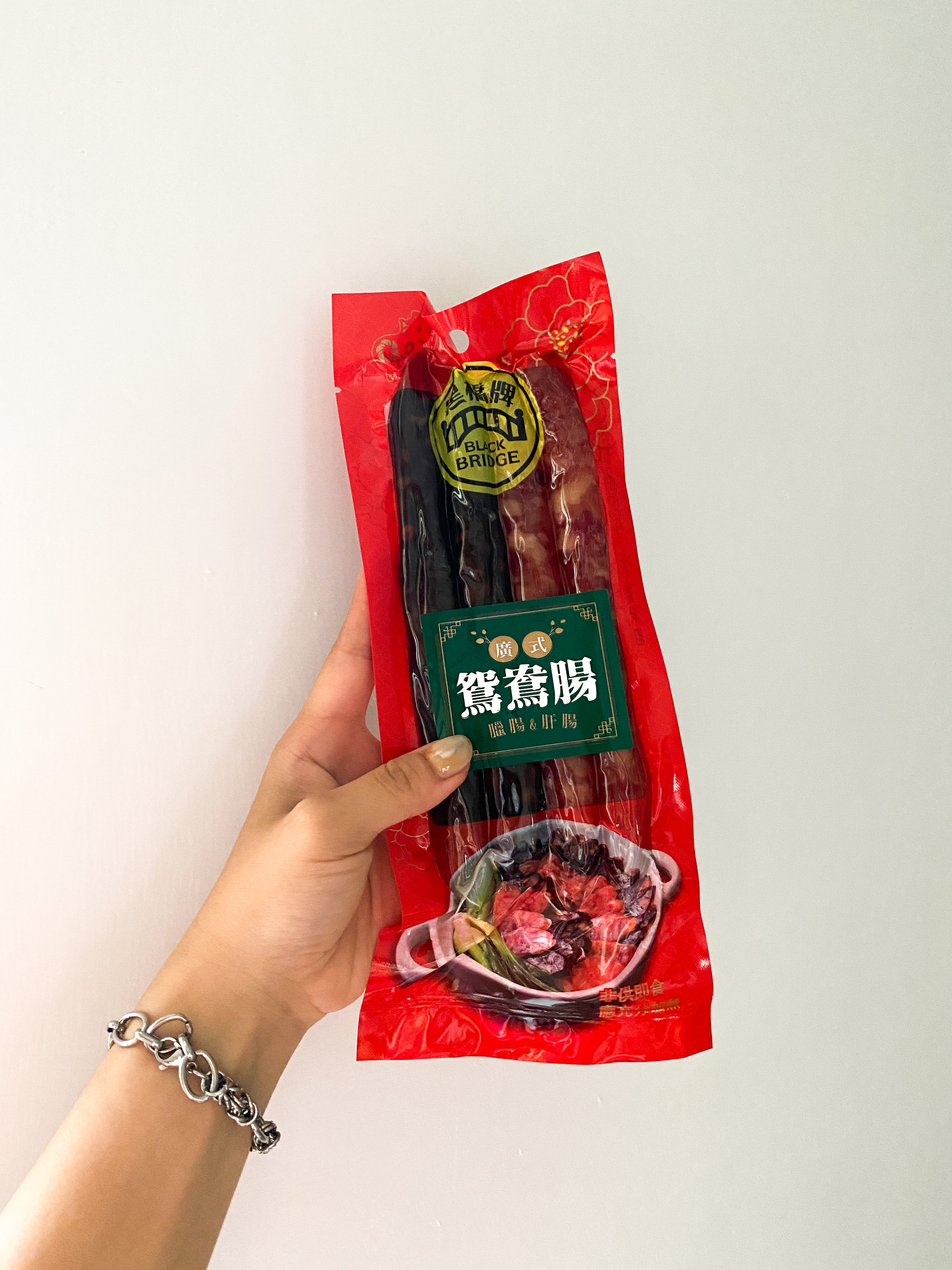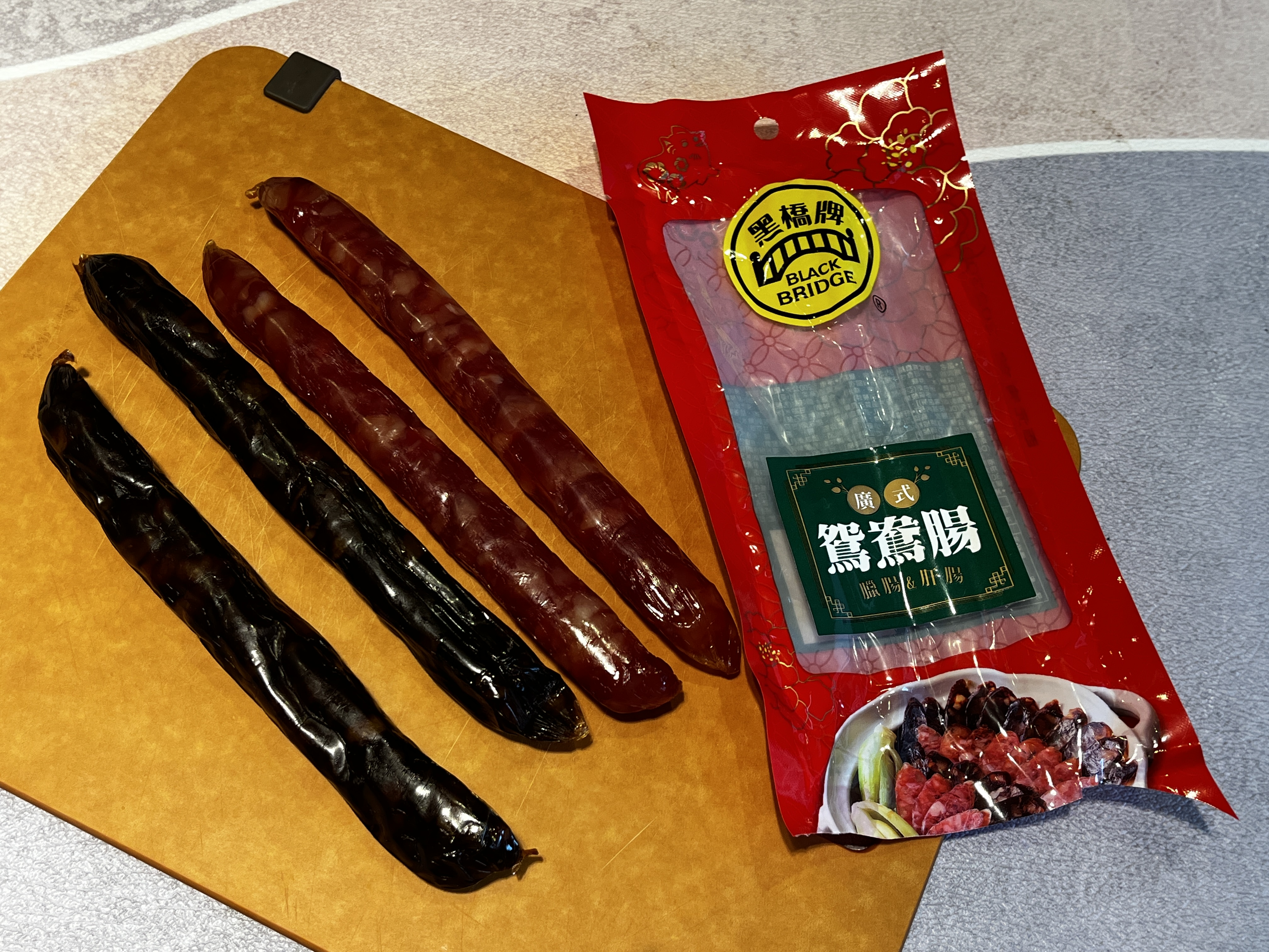 肝腸:豬肉、豬背脂、鴨肝、醬油、糖、可食性牛膠原蛋白腸衣、高粱酒(高粱、小麥)、料理米酒、調味劑( L-麩酸鈉)、焦糖色素、食鹽、白胡椒粉(白胡椒、地瓜澱粉)、調味劑(乳酸鈉液)、複方保色劑[食鹽、保色劑(亞硝酸鈉、硝酸鉀)、麥芽糊精]、甘草水(水、甘草)、結著劑(焦磷酸鈉、多磷酸鈉)、複方品質改良劑[調味劑(胺基乙酸)、醋酸鈉(無水)、酵素製劑(溶菌酶)]、抗氧化劑(L-抗壞血酸鈉)、甜味劑(甘草素、甘草萃)、調味劑(DL-胺基丙酸)