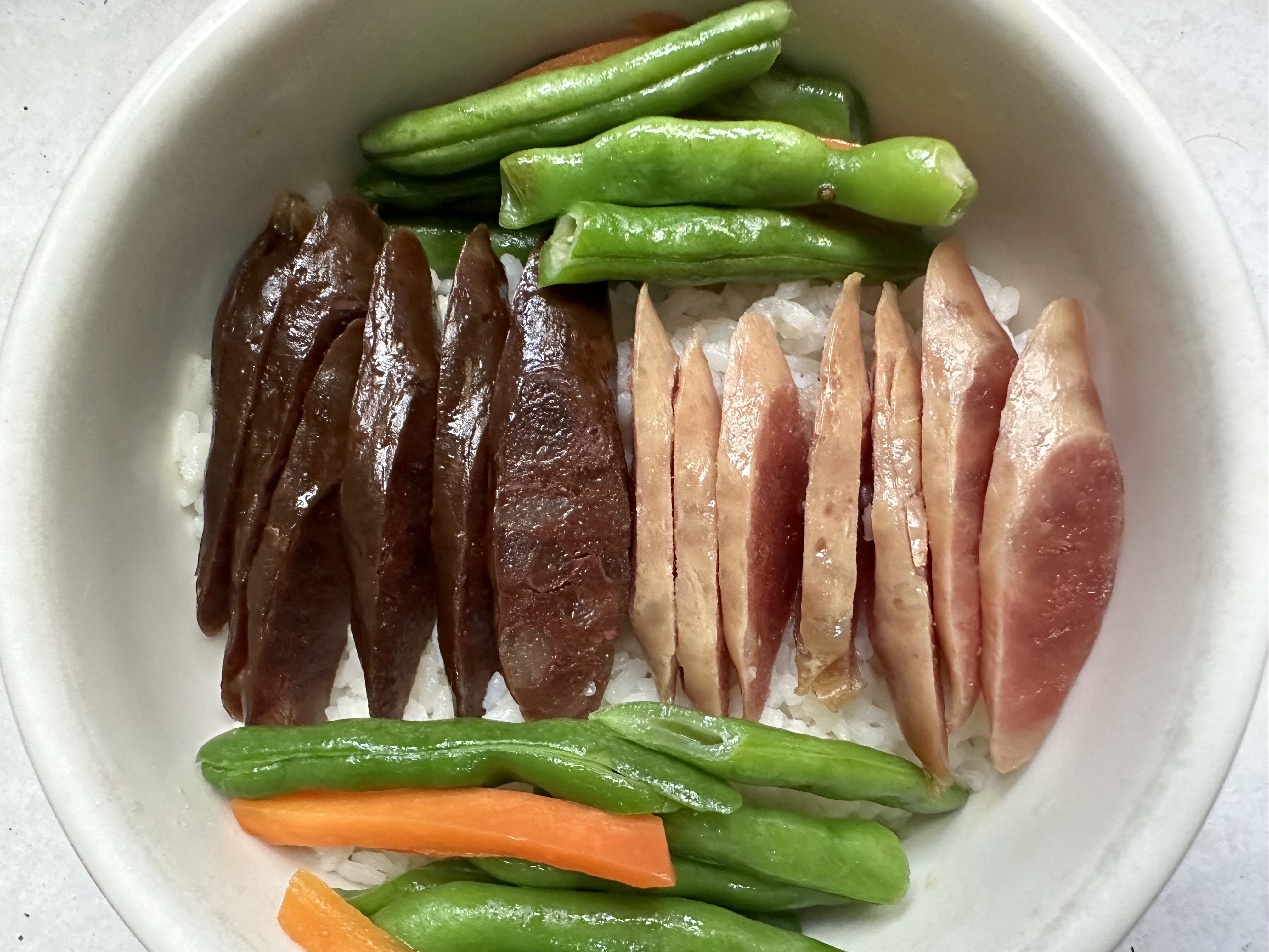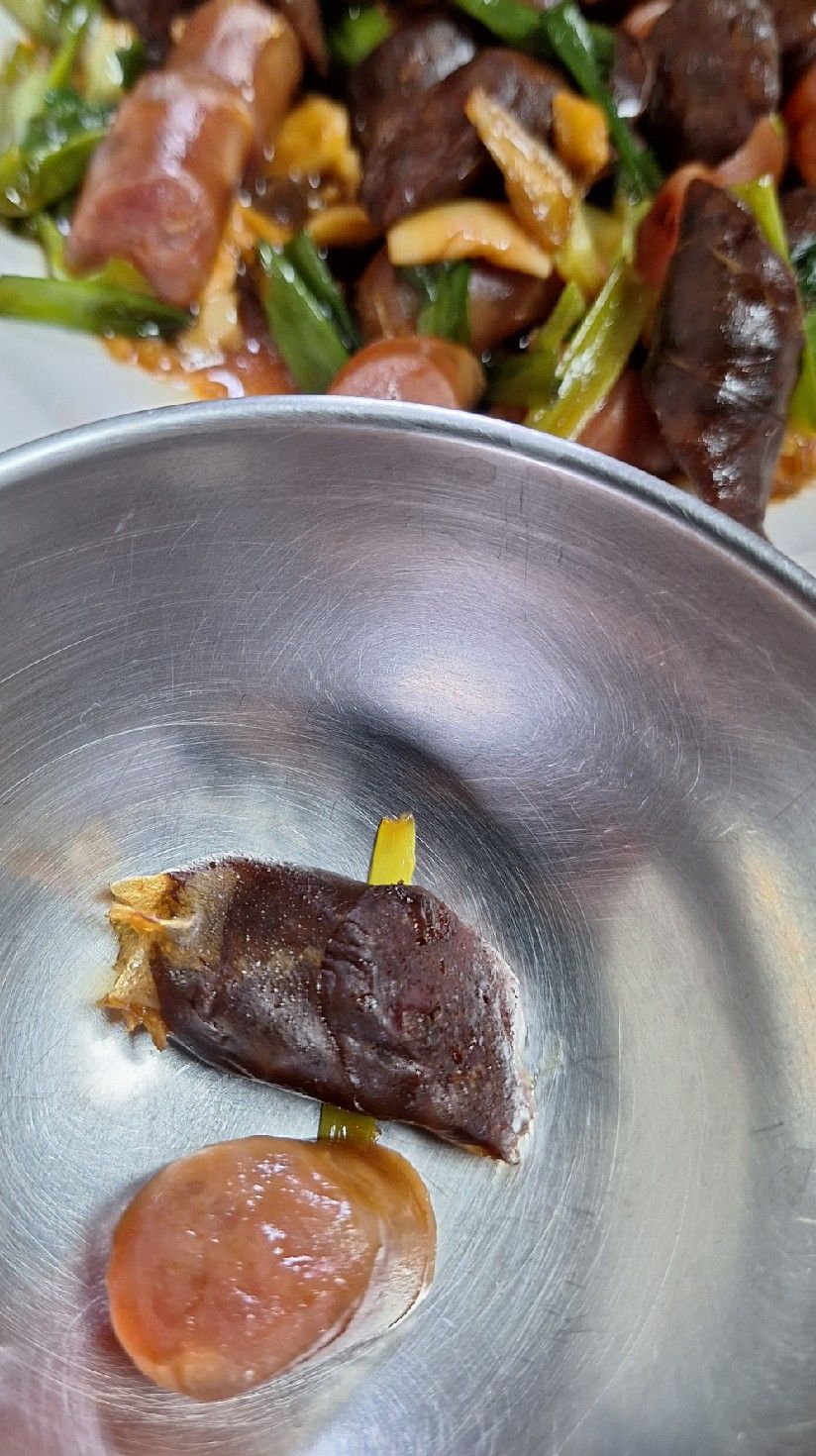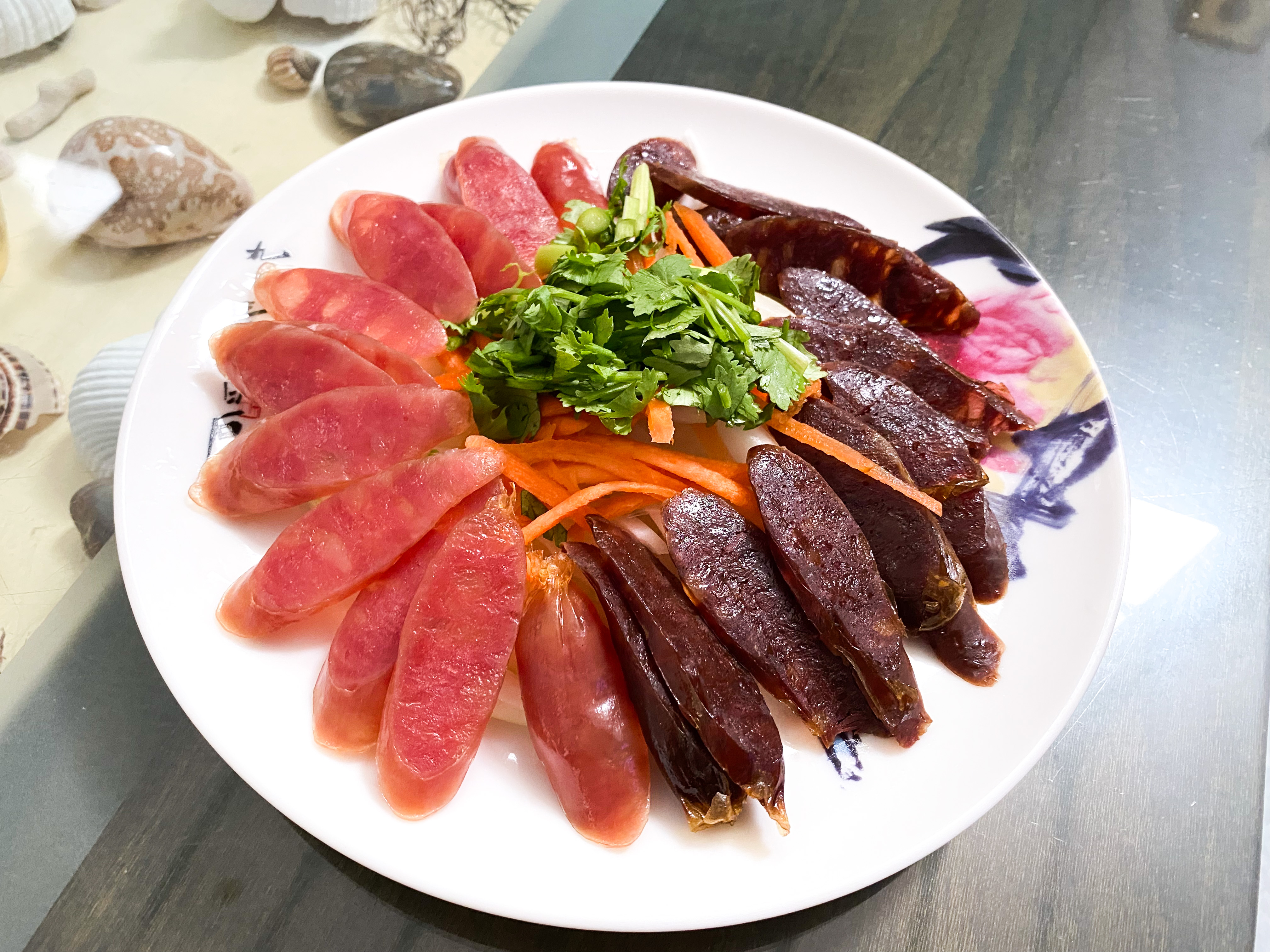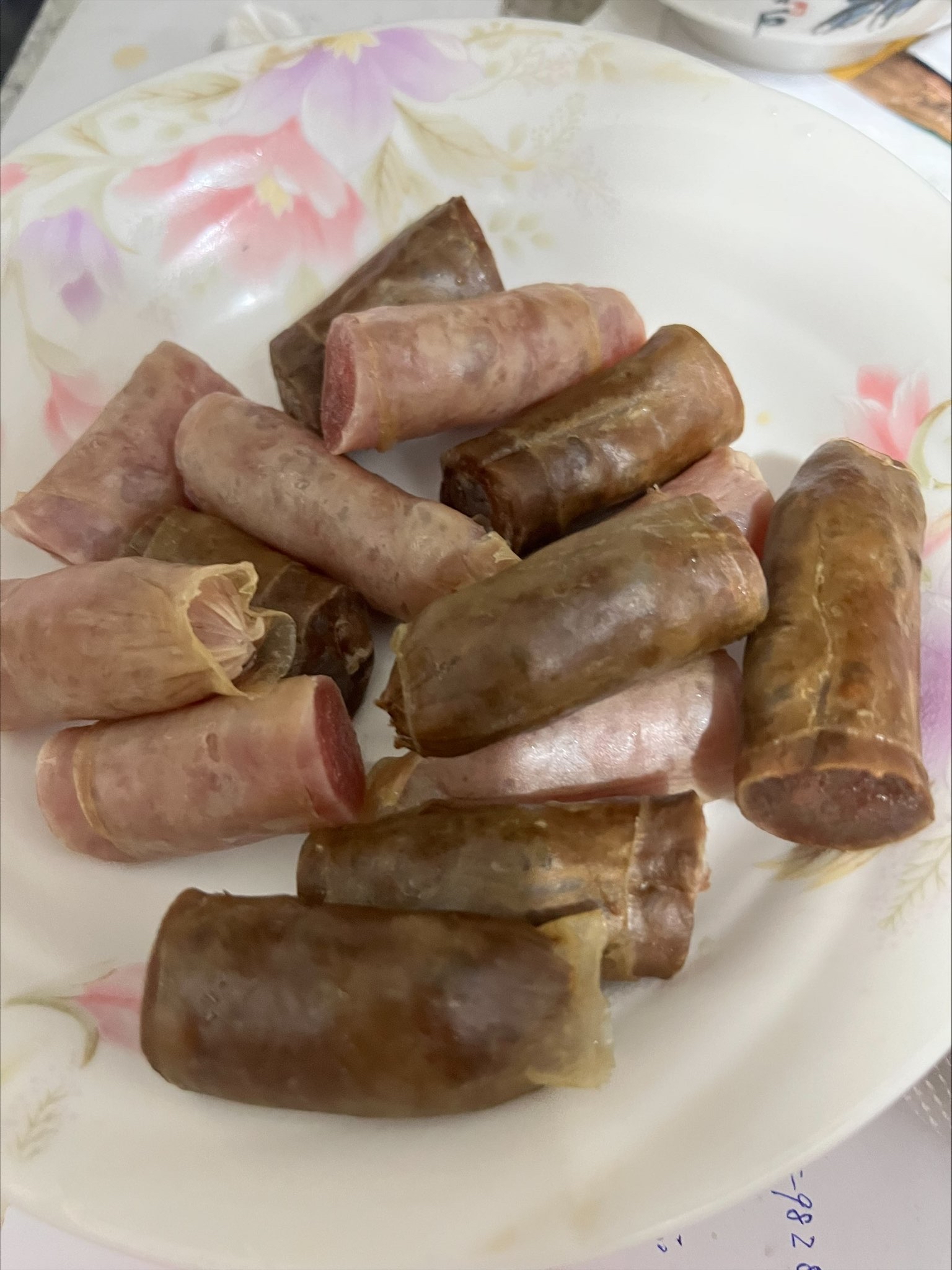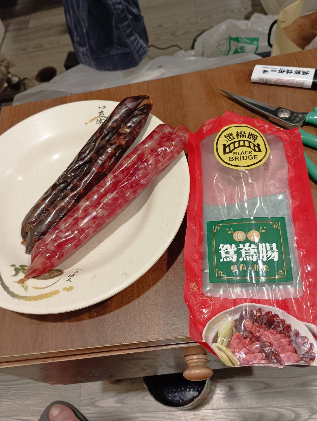 肝腸:豬肉、豬背脂、鴨肝、醬油、糖、可食性牛膠原蛋白腸衣、高粱酒(高粱、小麥)、料理米酒、調味劑( L-麩酸鈉)、焦糖色素、食鹽、白胡椒粉(白胡椒、地瓜澱粉)、調味劑(乳酸鈉液)、複方保色劑[食鹽、保色劑(亞硝酸鈉、硝酸鉀)、麥芽糊精]、甘草水(水、甘草)、結著劑(焦磷酸鈉、多磷酸鈉)、複方品質改良劑[調味劑(胺基乙酸)、醋酸鈉(無水)、酵素製劑(溶菌酶)]、抗氧化劑(L-抗壞血酸鈉)、甜味劑(甘草素、甘草萃)、調味劑(DL-胺基丙酸)
