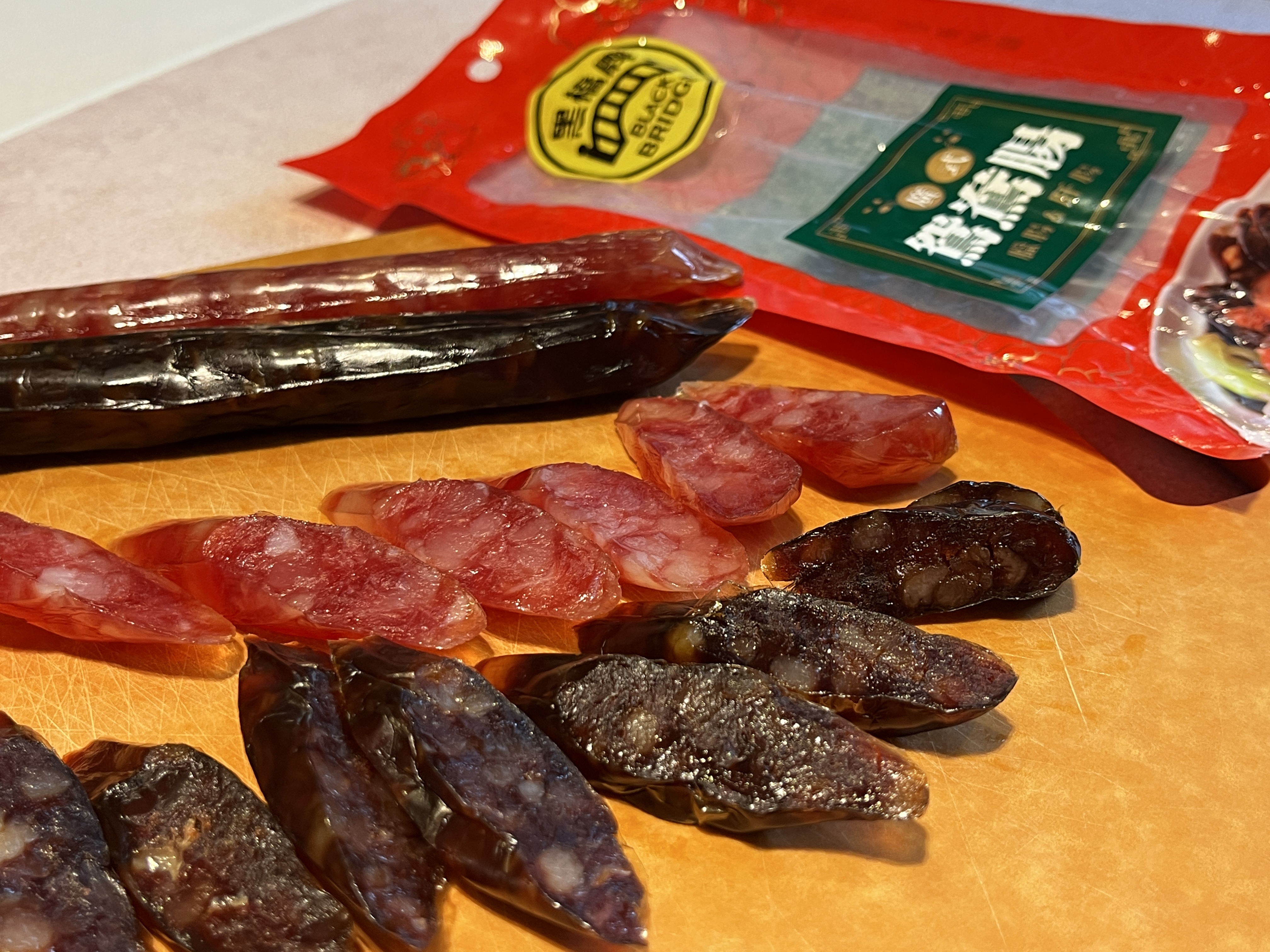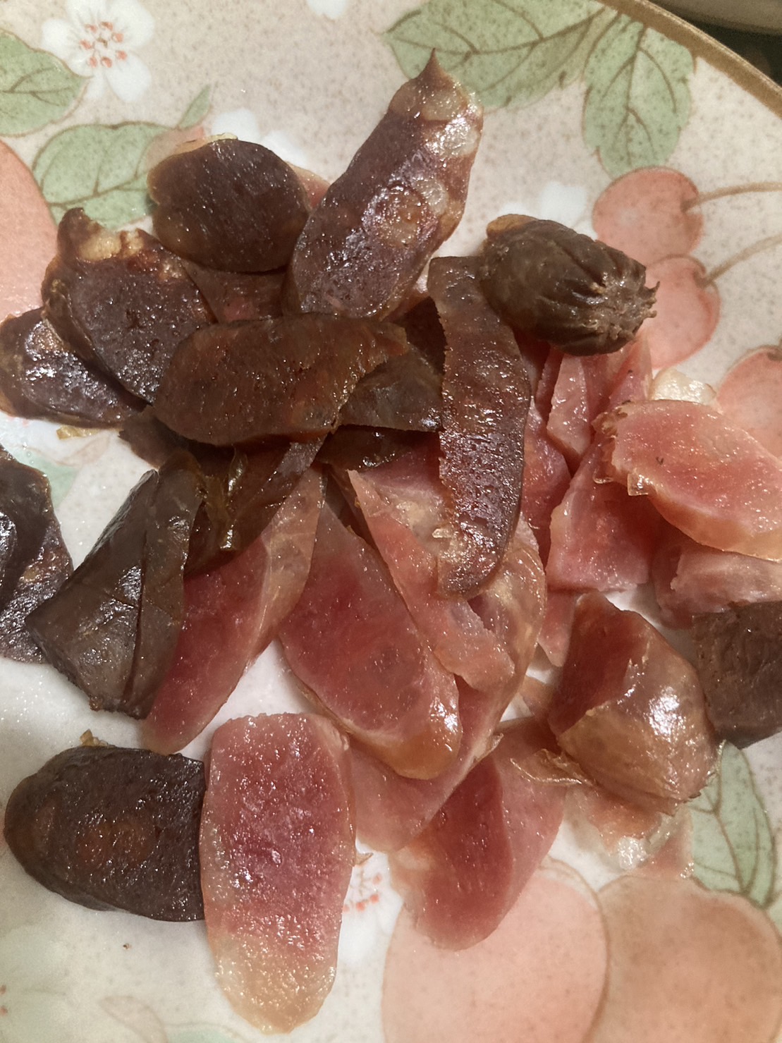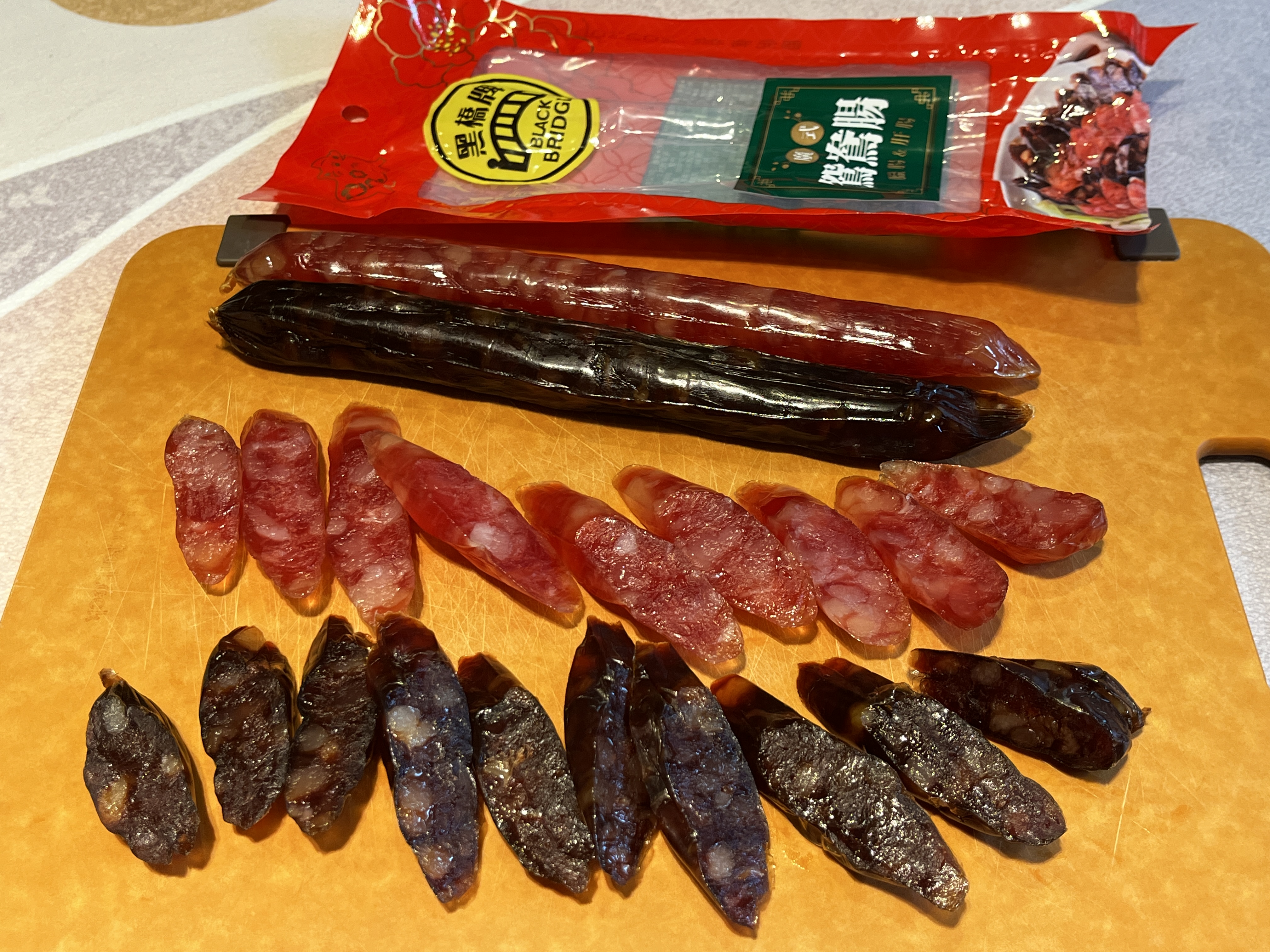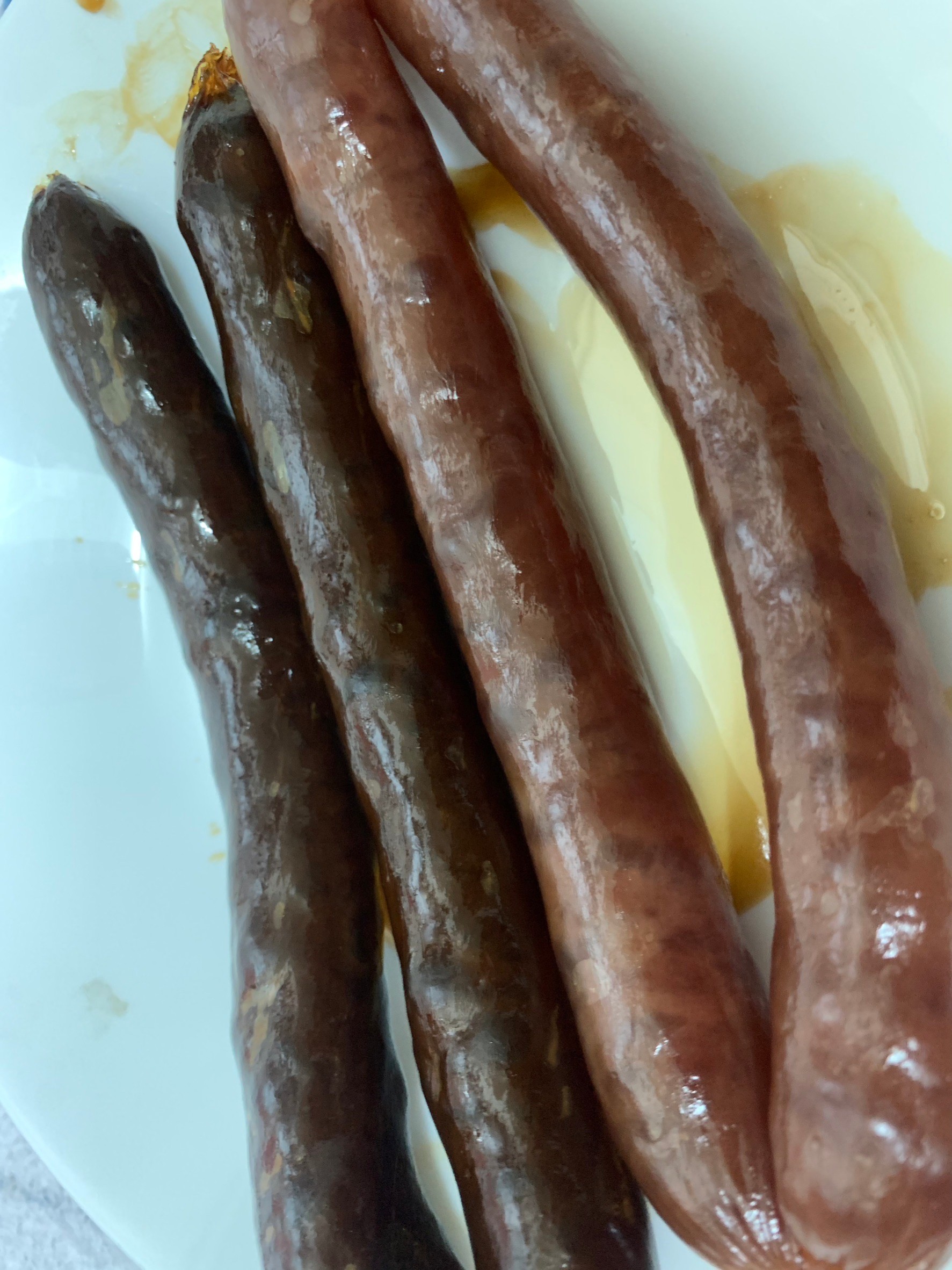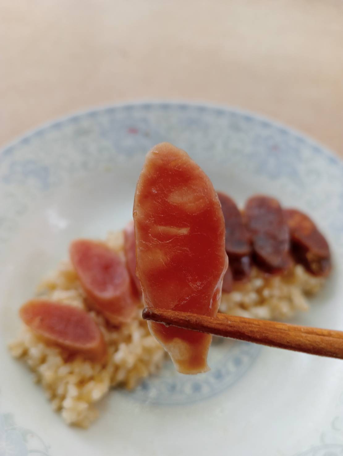 臘腸:豬肉、豬背脂、糖、可食性牛膠原蛋白腸衣、高粱酒(高粱、小麥)、調味劑(L-麩酸鈉)、味醂(水、蔗糖、酒精、食鹽、糯米)、食鹽、調味劑(乳酸鈉液)、複方保色劑[食鹽、保色劑(亞硝酸鈉、硝酸鉀)、麥芽糊精]、甘草水(水、甘草)、結著劑(焦磷酸鈉、多磷酸鈉)、複方品質改良劑[調味劑(胺基乙酸)、醋酸鈉(無水)、酵素製劑(溶菌酶)]、抗氧化劑(L-抗壞血酸鈉)、甜味劑(甘草素、甘草萃)、調味劑(DL-胺基丙酸)