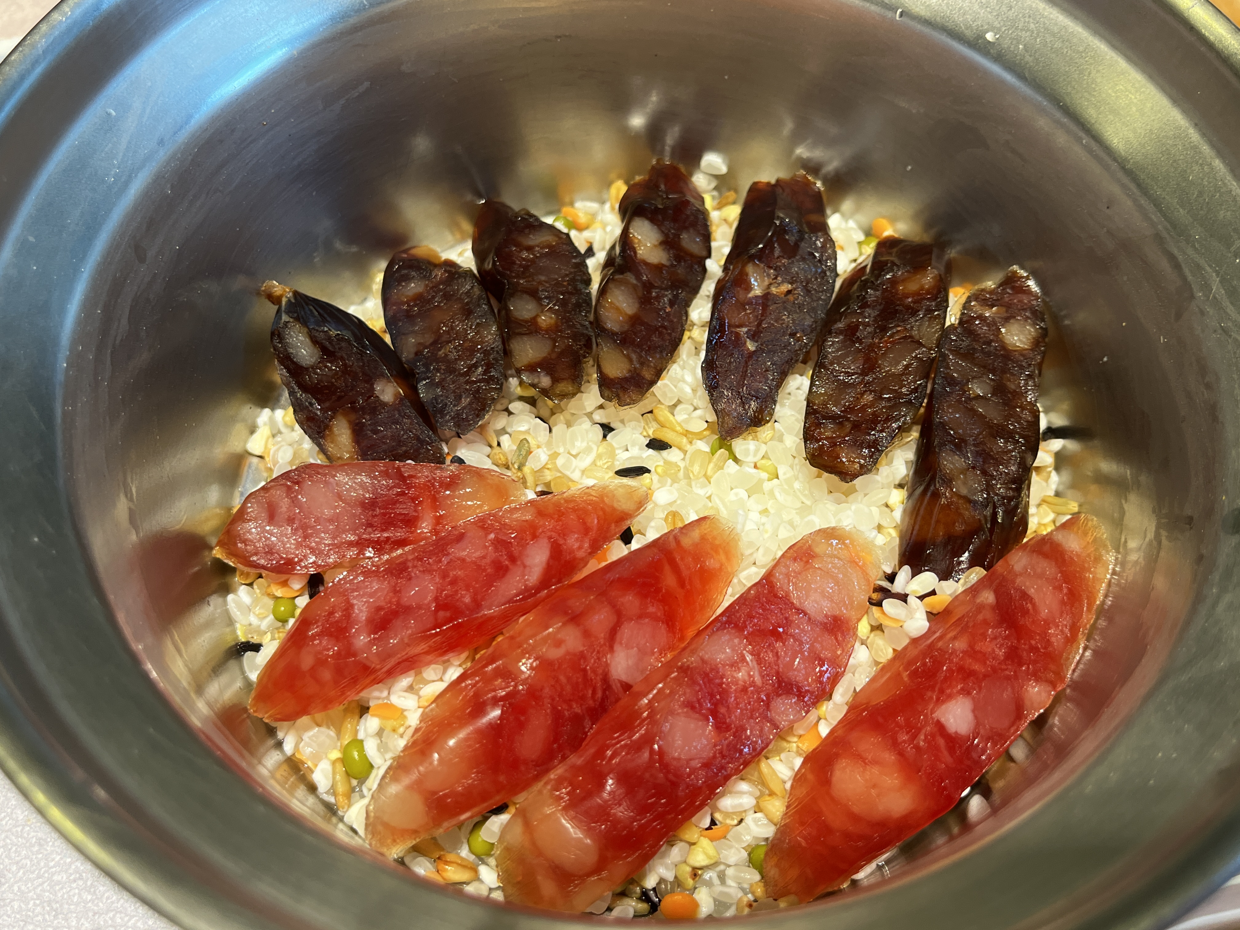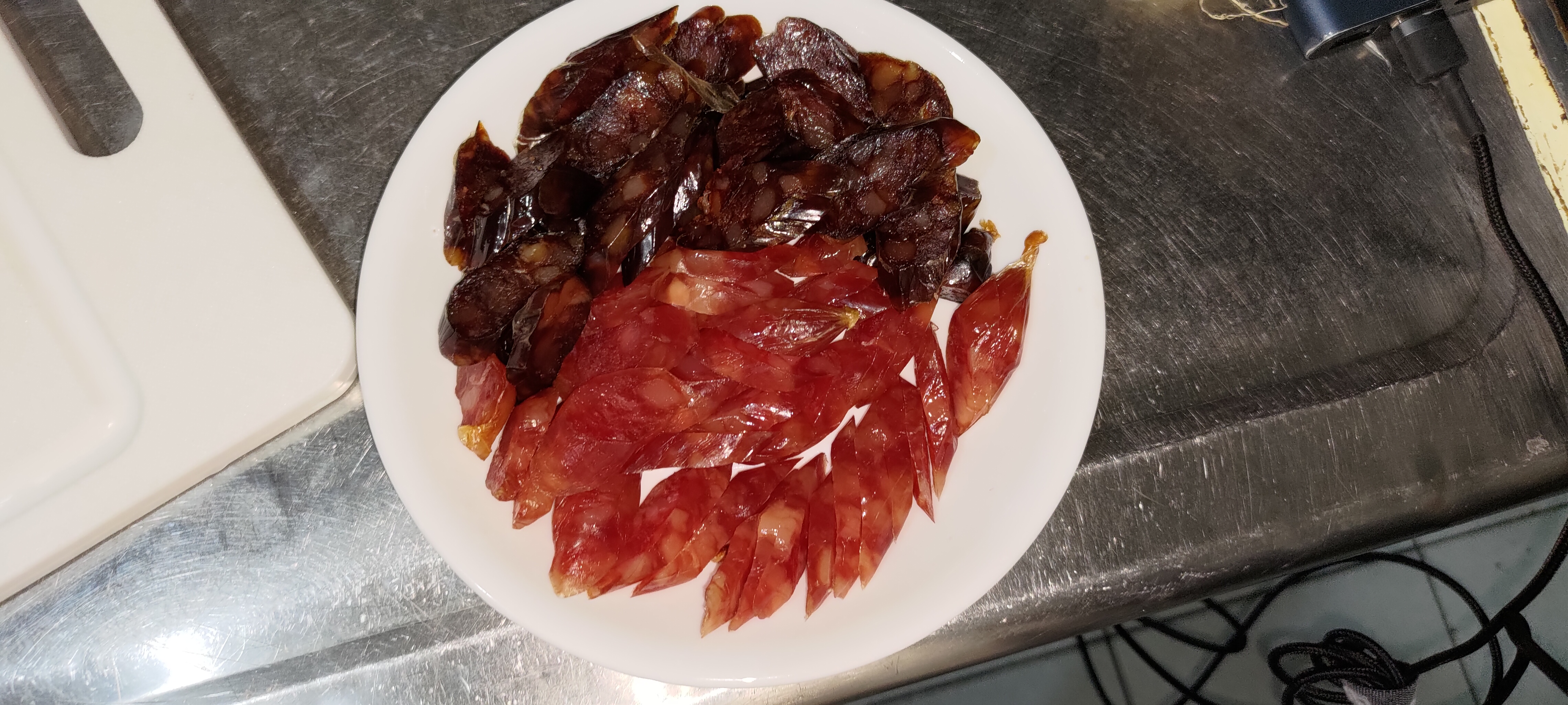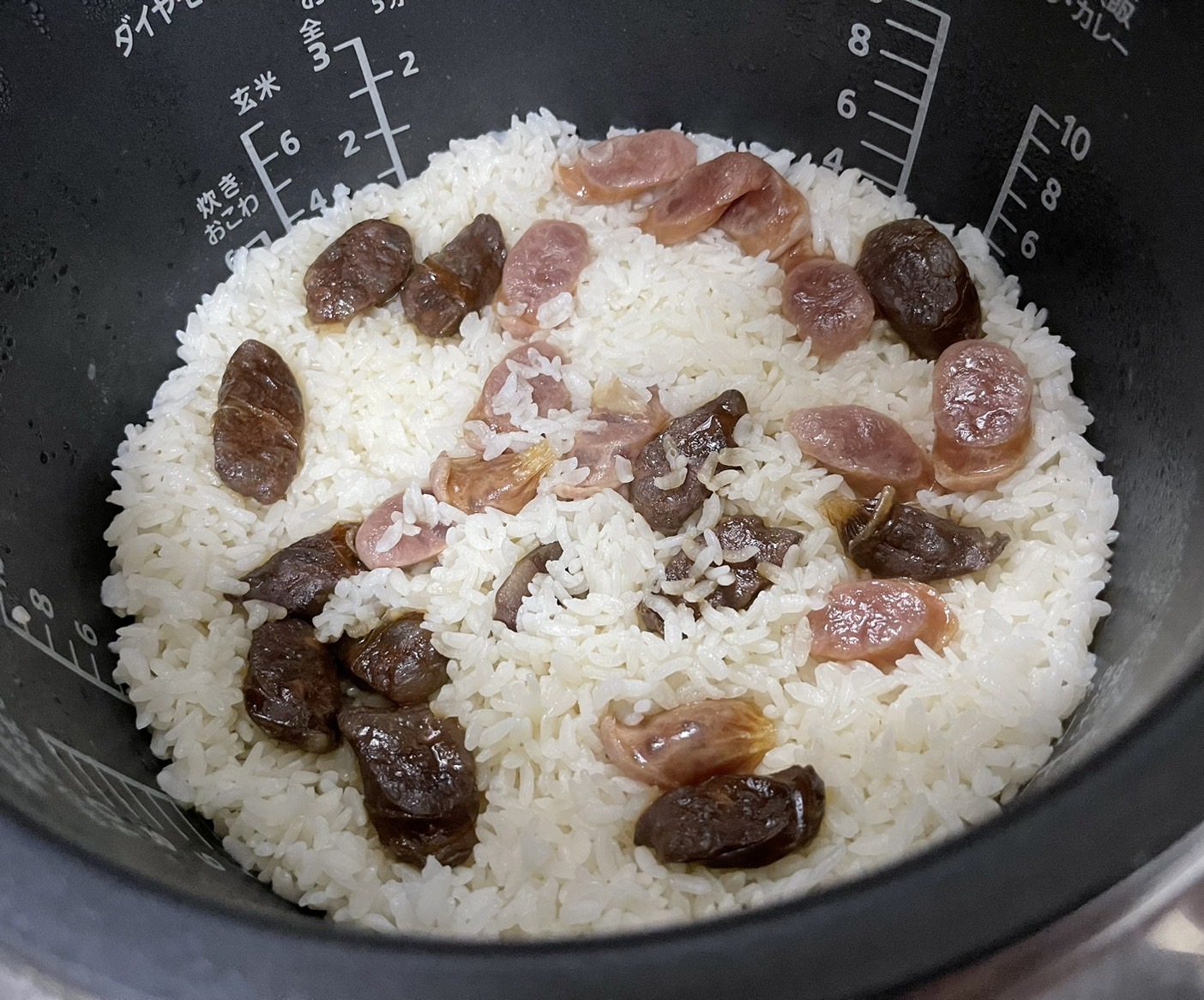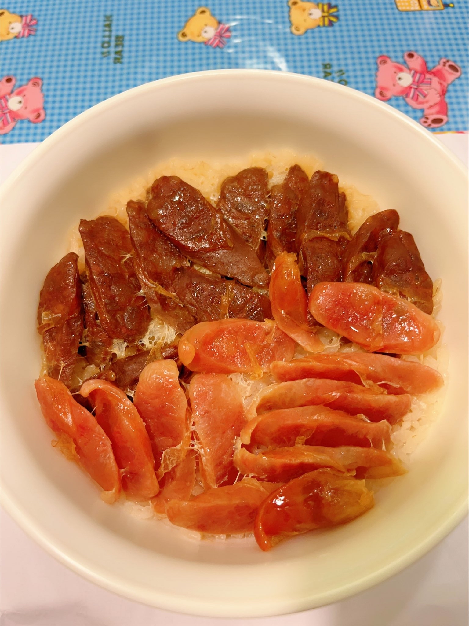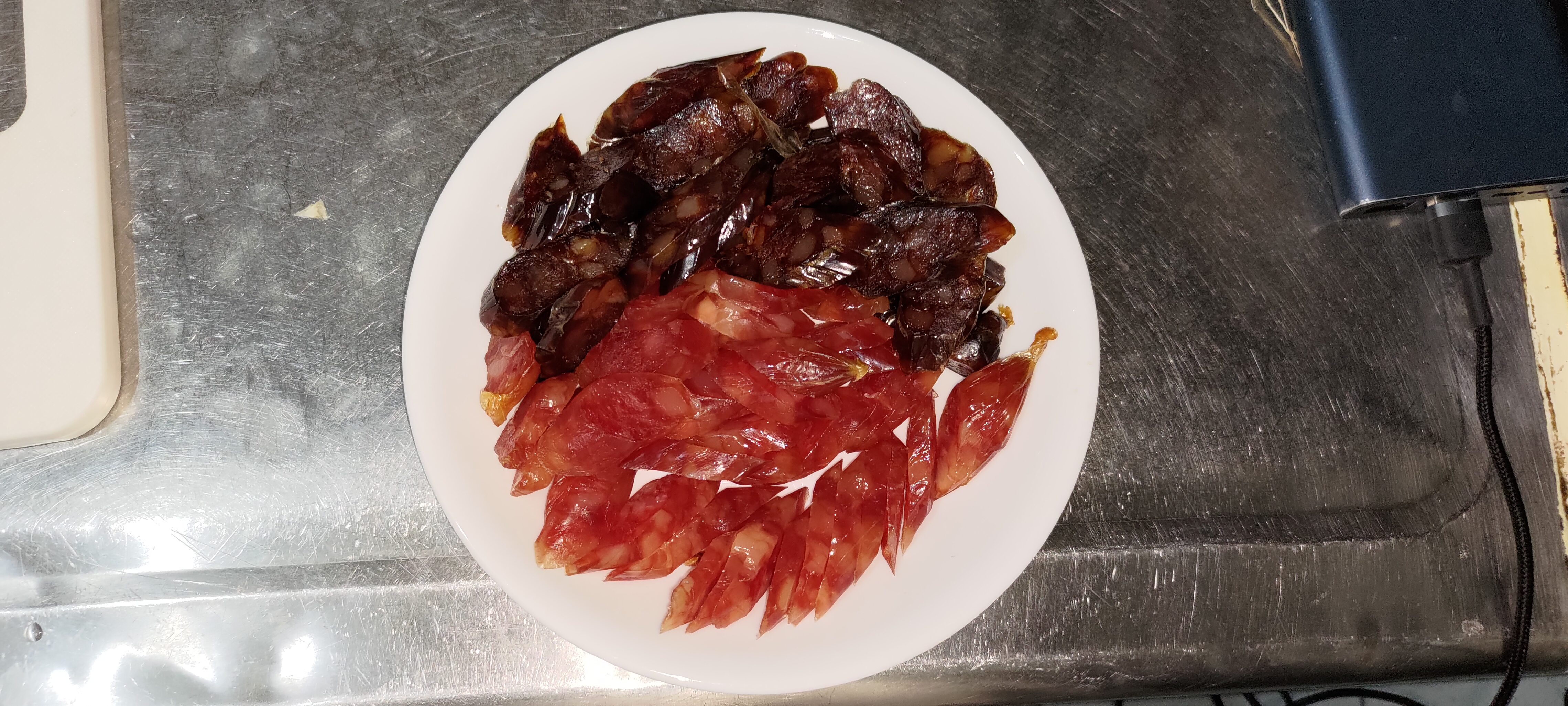 臘腸:豬肉、豬背脂、糖、可食性牛膠原蛋白腸衣、高粱酒(高粱、小麥)、調味劑(L-麩酸鈉)、味醂(水、蔗糖、酒精、食鹽、糯米)、食鹽、調味劑(乳酸鈉液)、複方保色劑[食鹽、保色劑(亞硝酸鈉、硝酸鉀)、麥芽糊精]、甘草水(水、甘草)、結著劑(焦磷酸鈉、多磷酸鈉)、複方品質改良劑[調味劑(胺基乙酸)、醋酸鈉(無水)、酵素製劑(溶菌酶)]、抗氧化劑(L-抗壞血酸鈉)、甜味劑(甘草素、甘草萃)、調味劑(DL-胺基丙酸)