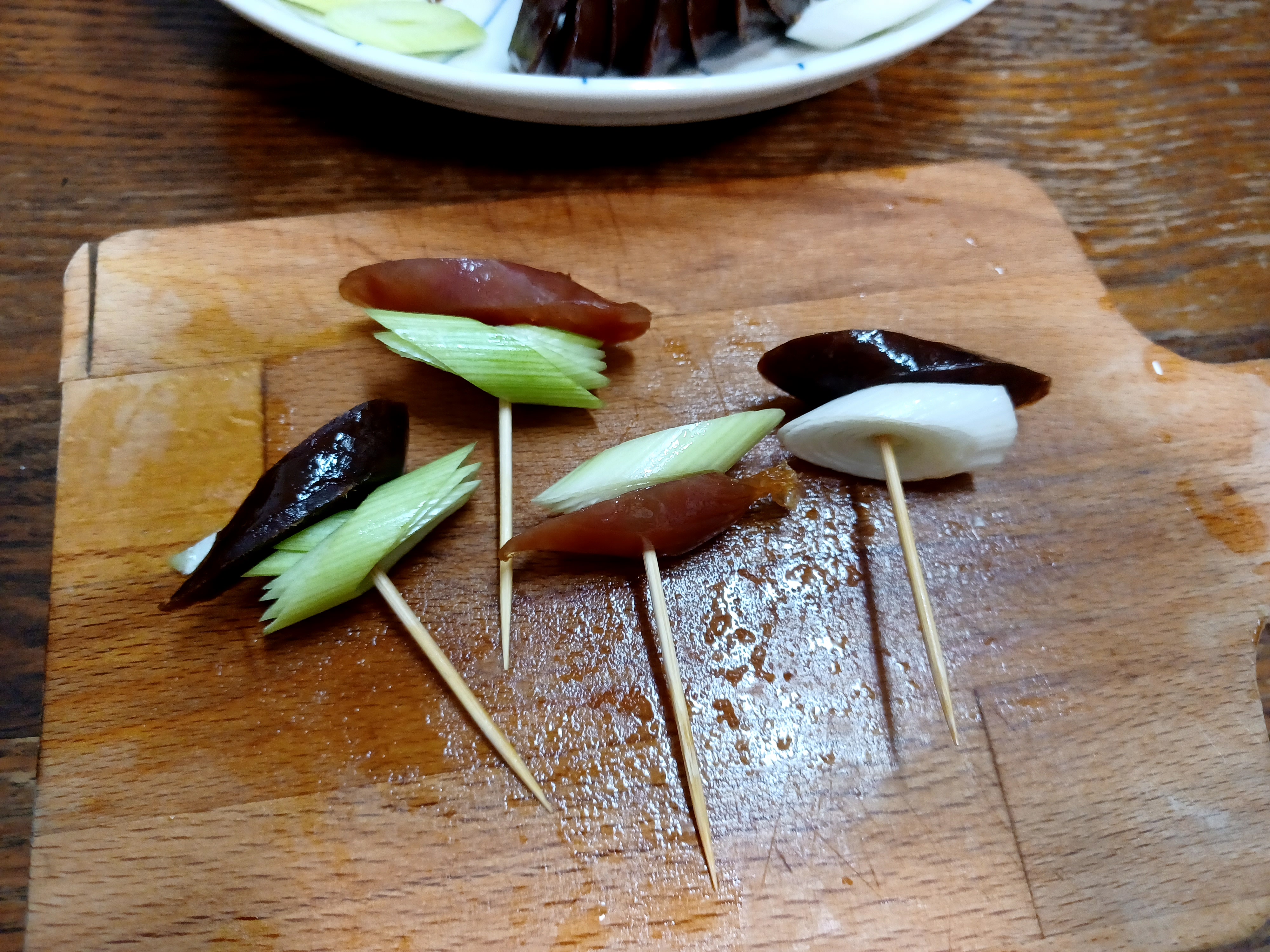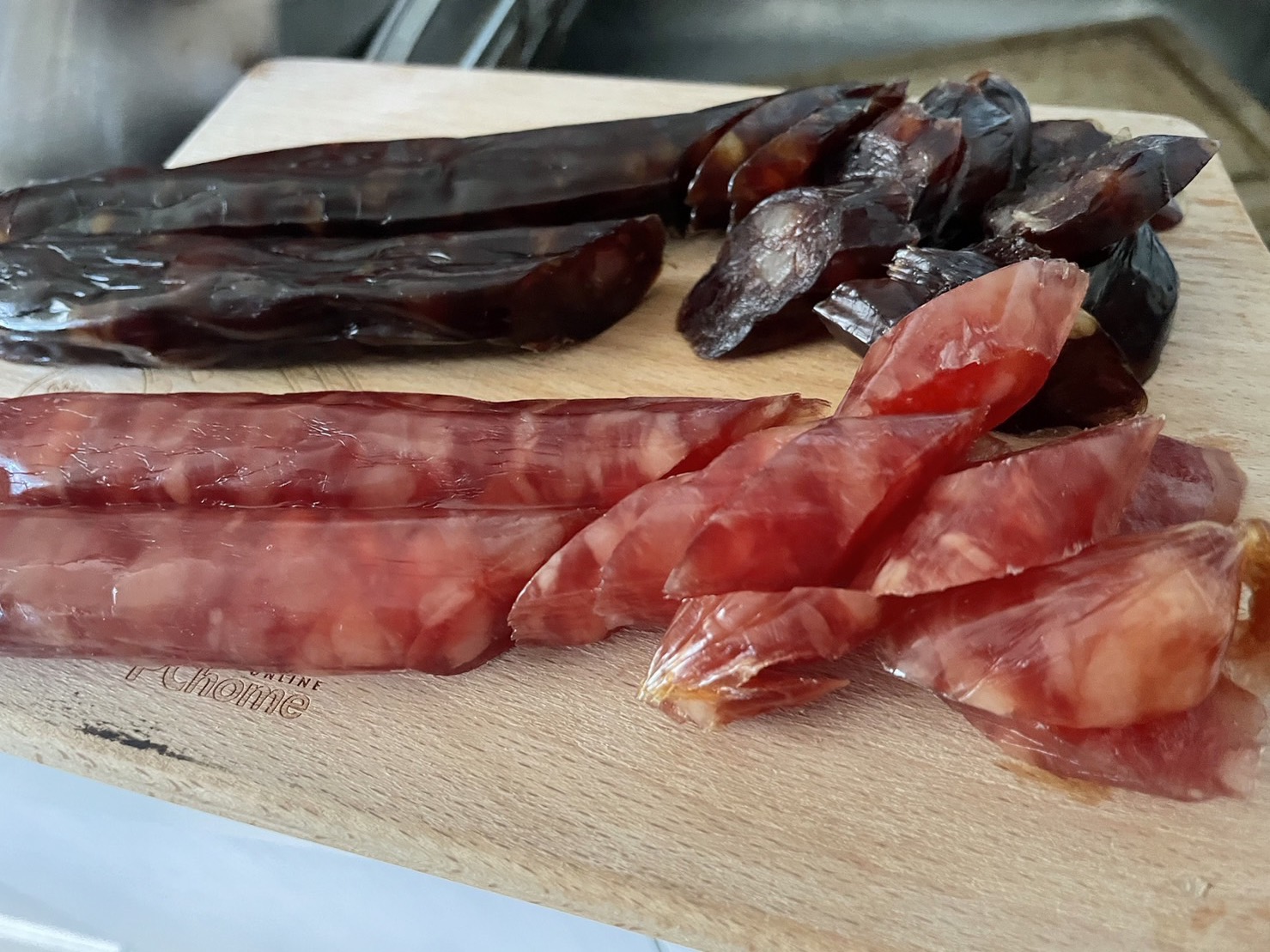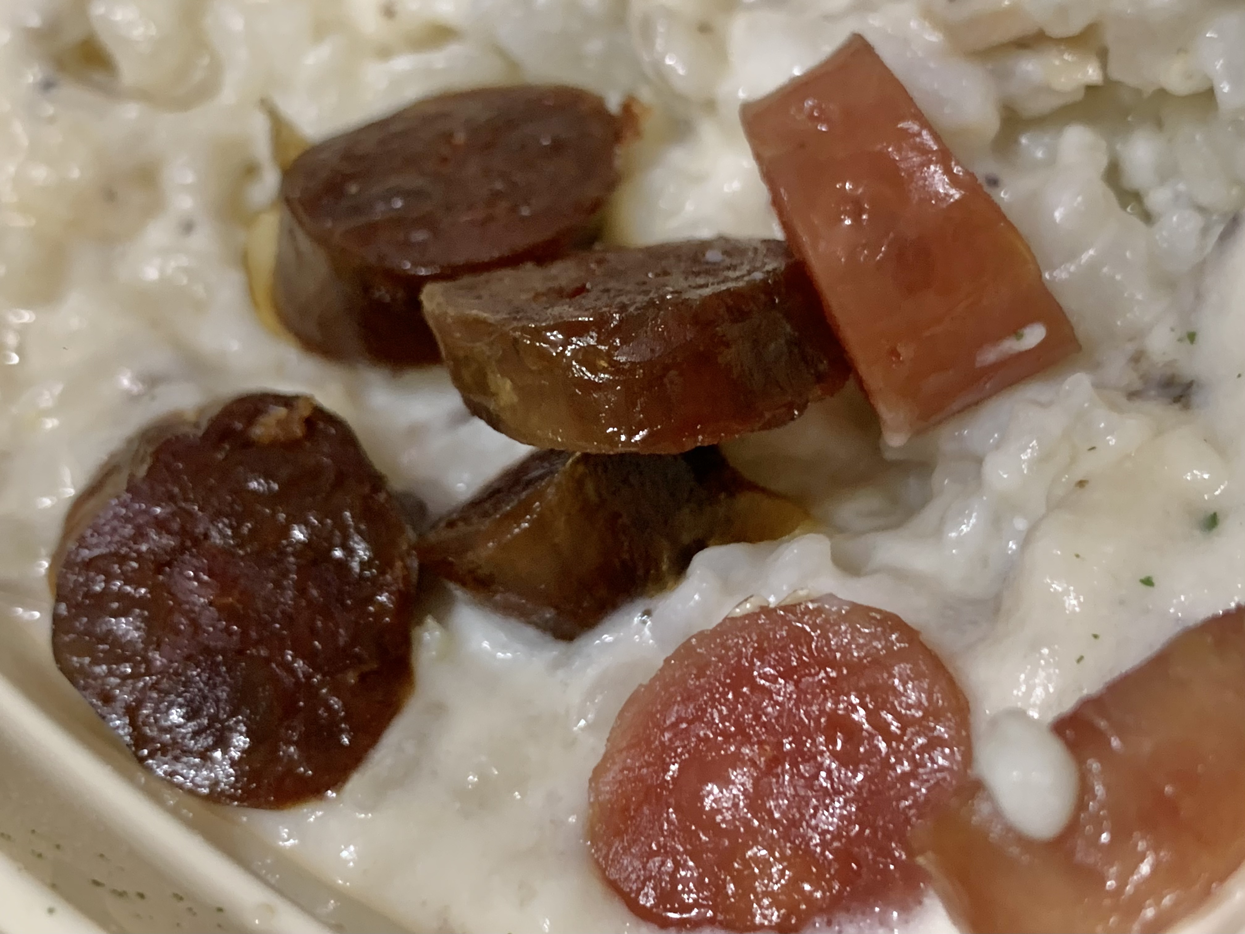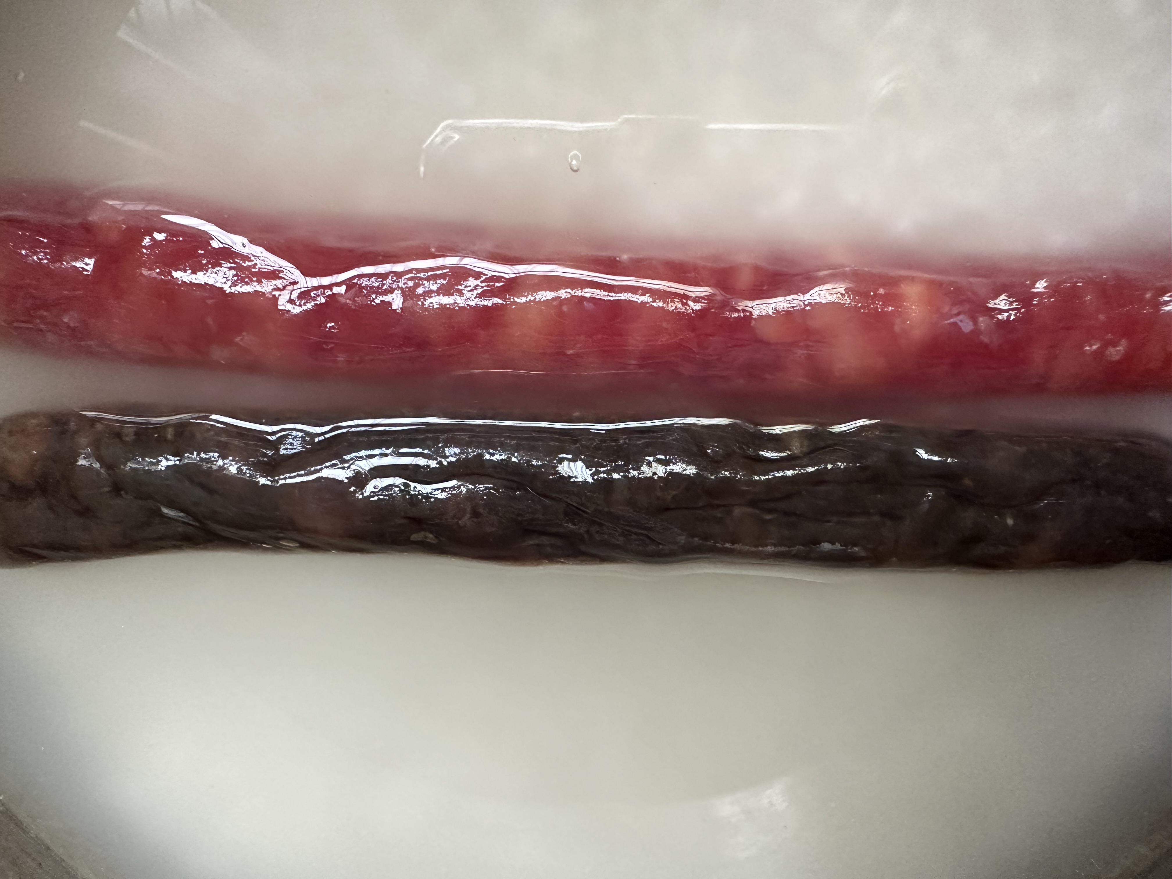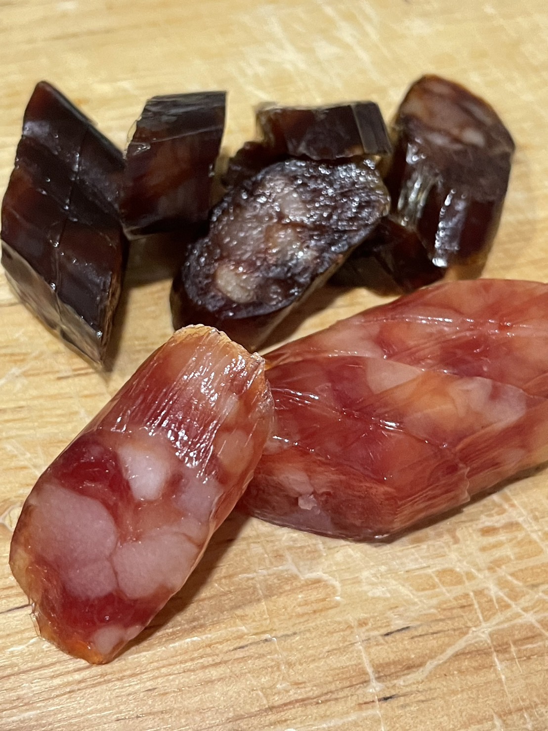 臘腸:豬肉、豬背脂、糖、可食性牛膠原蛋白腸衣、高粱酒(高粱、小麥)、調味劑(L-麩酸鈉)、味醂(水、蔗糖、酒精、食鹽、糯米)、食鹽、調味劑(乳酸鈉液)、複方保色劑[食鹽、保色劑(亞硝酸鈉、硝酸鉀)、麥芽糊精]、甘草水(水、甘草)、結著劑(焦磷酸鈉、多磷酸鈉)、複方品質改良劑[調味劑(胺基乙酸)、醋酸鈉(無水)、酵素製劑(溶菌酶)]、抗氧化劑(L-抗壞血酸鈉)、甜味劑(甘草素、甘草萃)、調味劑(DL-胺基丙酸)