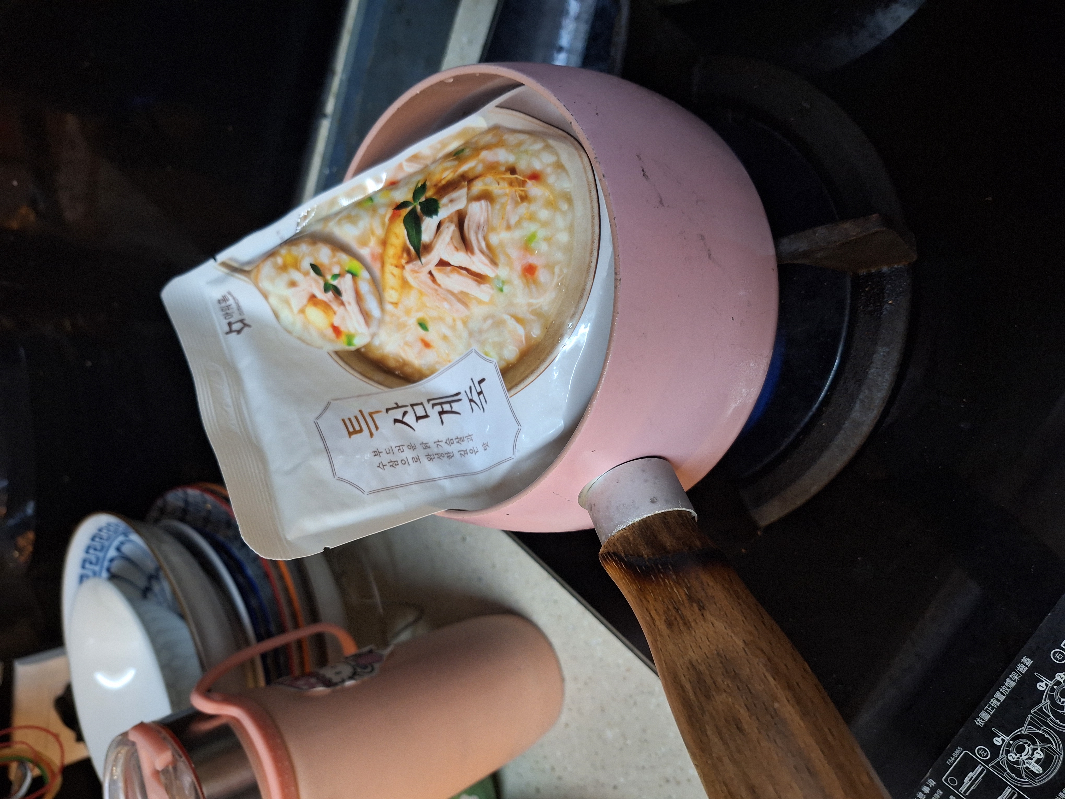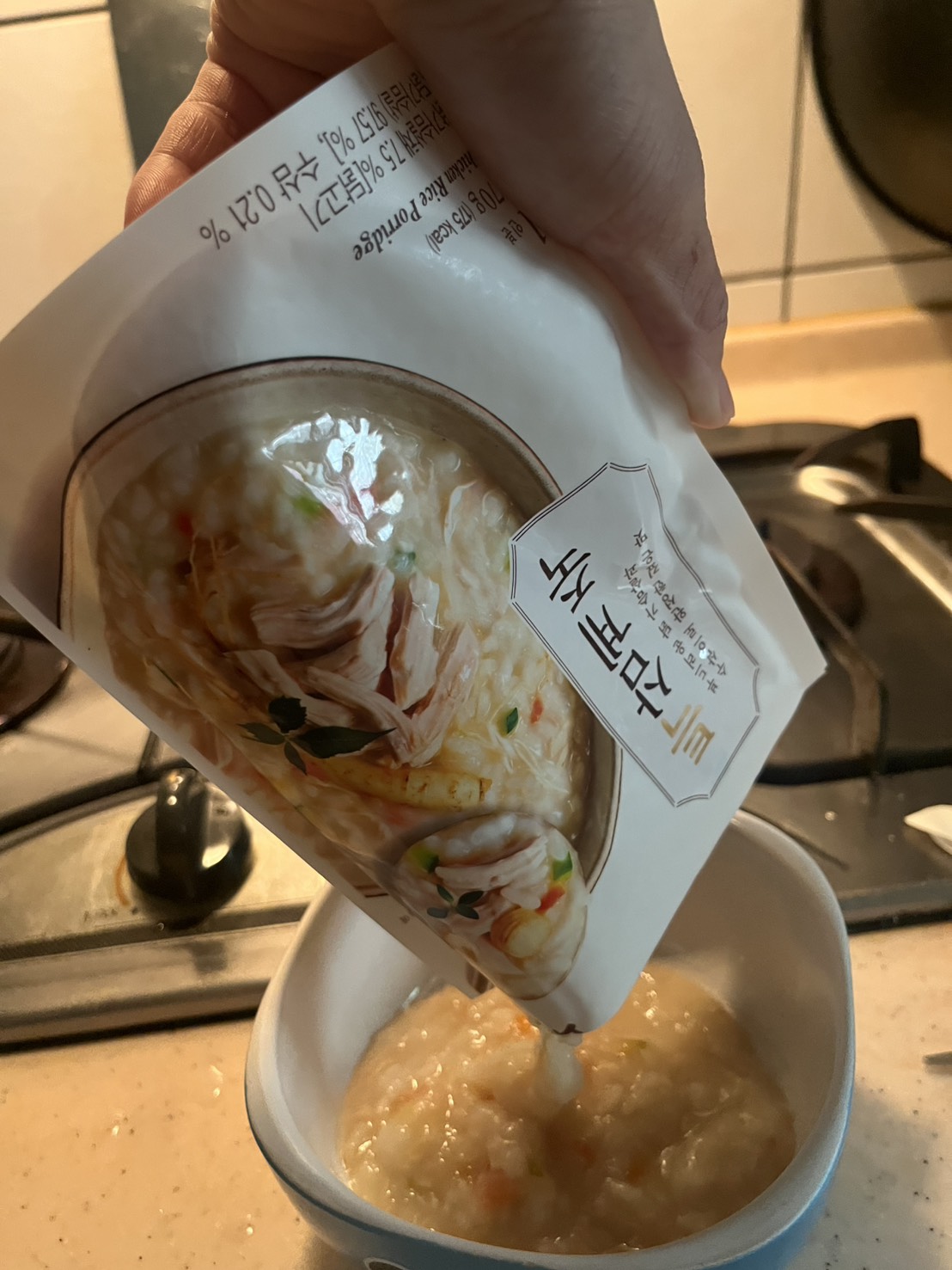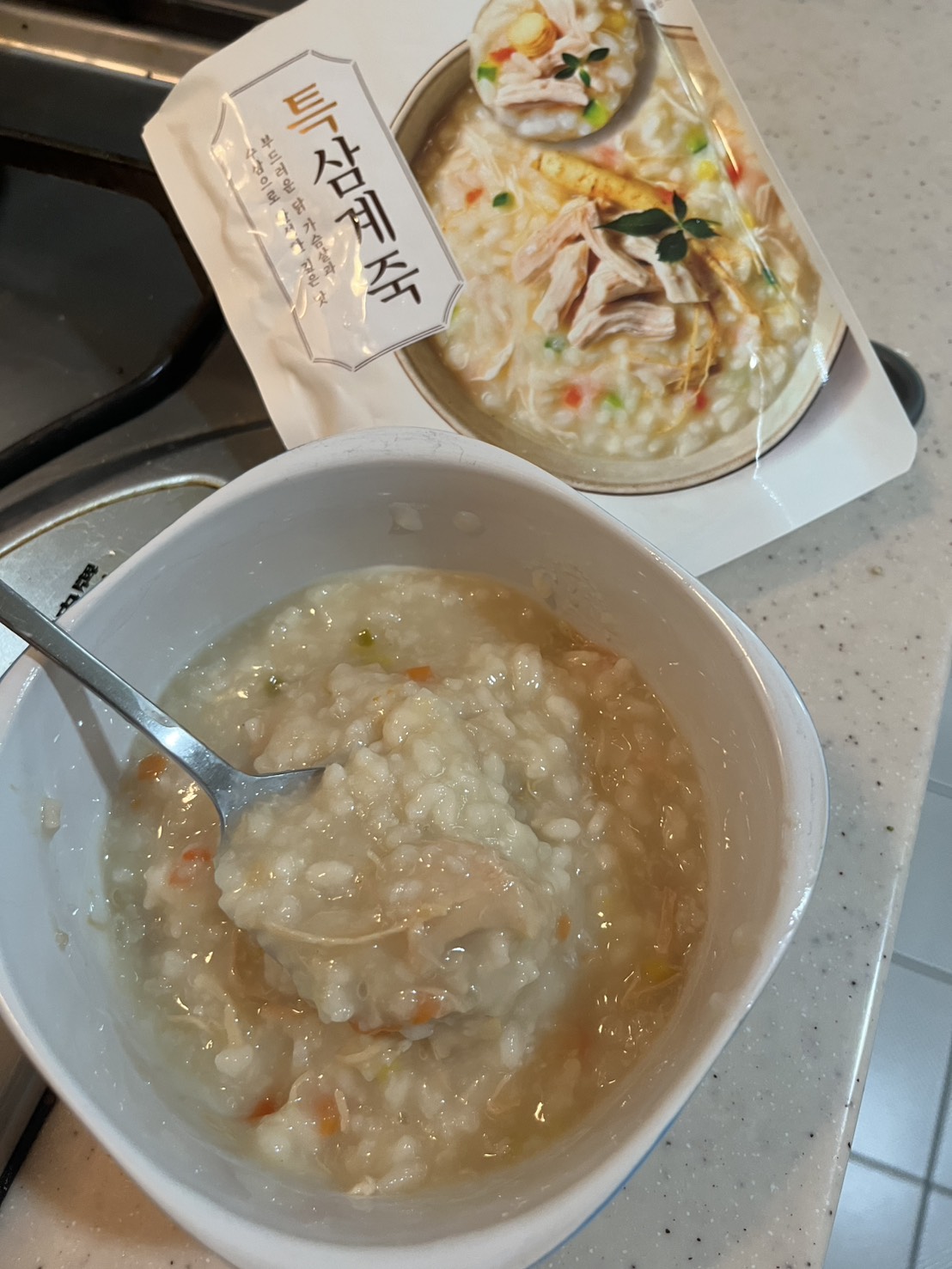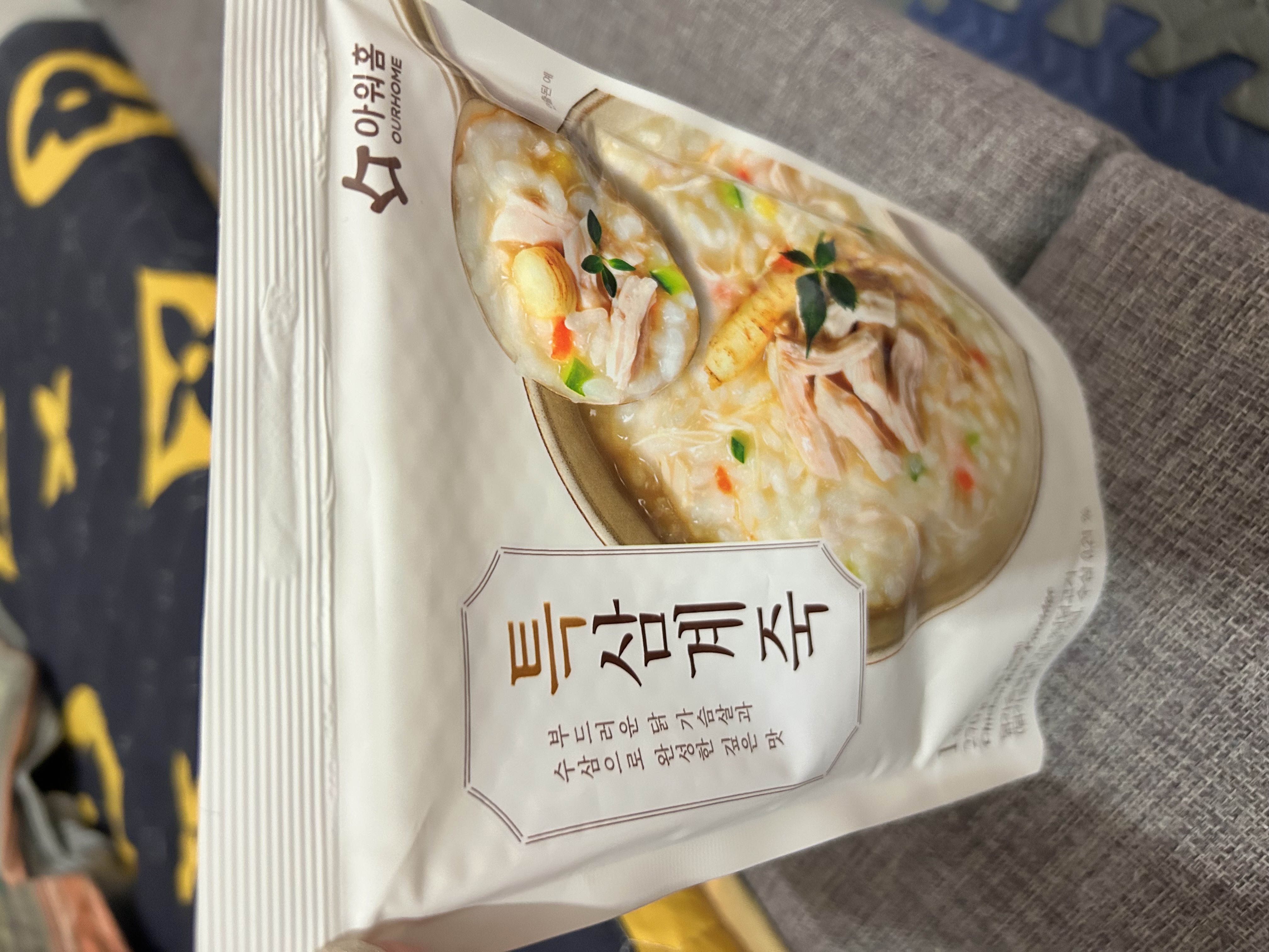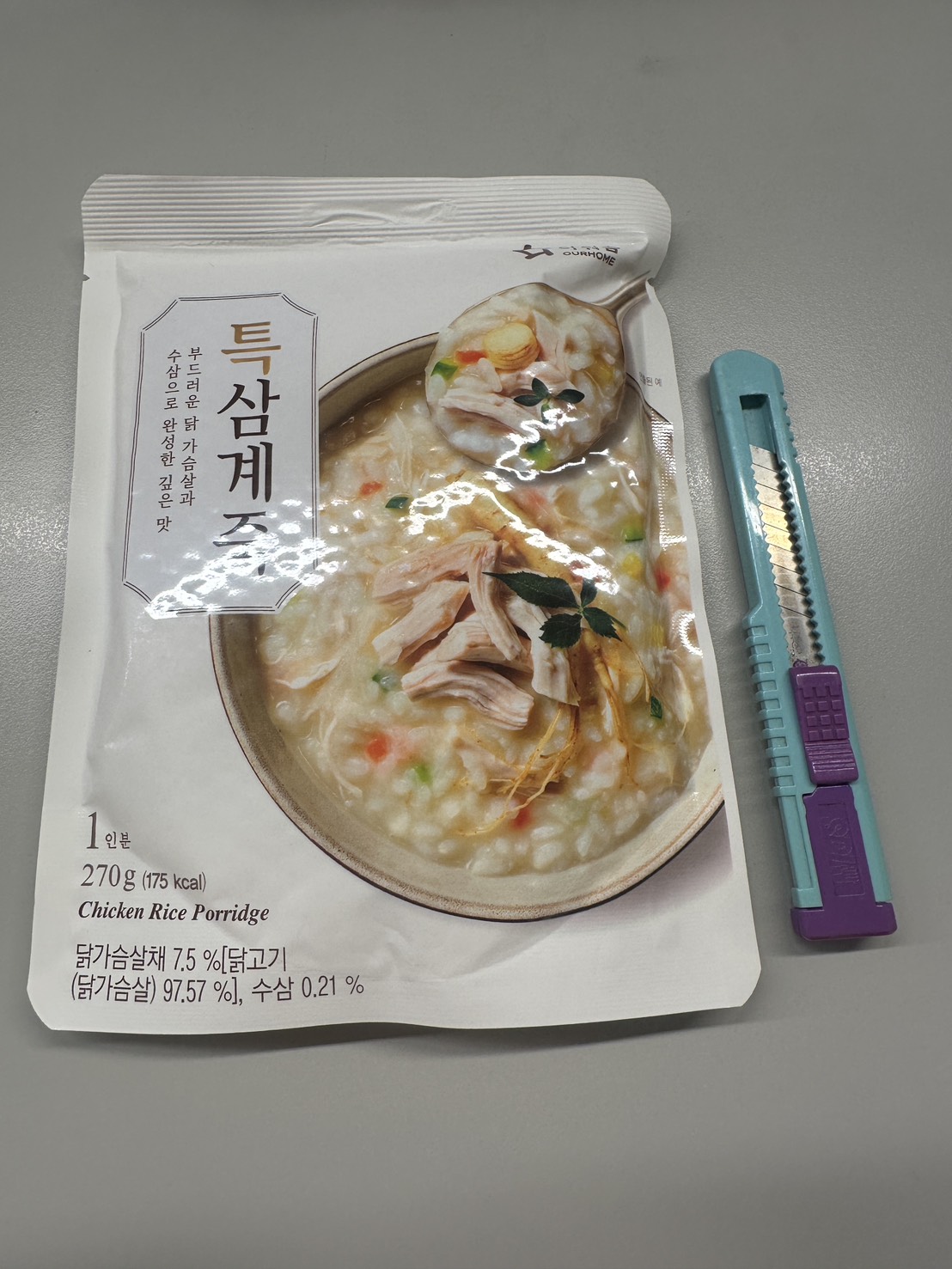 水、雞胸肉片[雞肉(雞胸肉)、鹽、糖、香菇提取物,混合劑(多磷酸鈉、焦磷酸鈉)]、米、調味玉米(鹽、玉米)、紅蘿蔔、小南瓜、糯米、混合劑(羥丙基磷酸二澱粉、麥芽糊精)、米粉、大蒜、牛骨提取物、芝麻油、醬汁(香菇提取物、鹽、糖、大豆、螃蟹、小麥)、鹽、水蔘、混合劑[丙二醇、混合劑(丙二醇、天然香料、酒精、甘油、人工香料)、甘油]、調味劑(5’-次黃嘌呤核苷磷酸二鈉、5'-鳥嘌呤核苷磷酸二鈉)