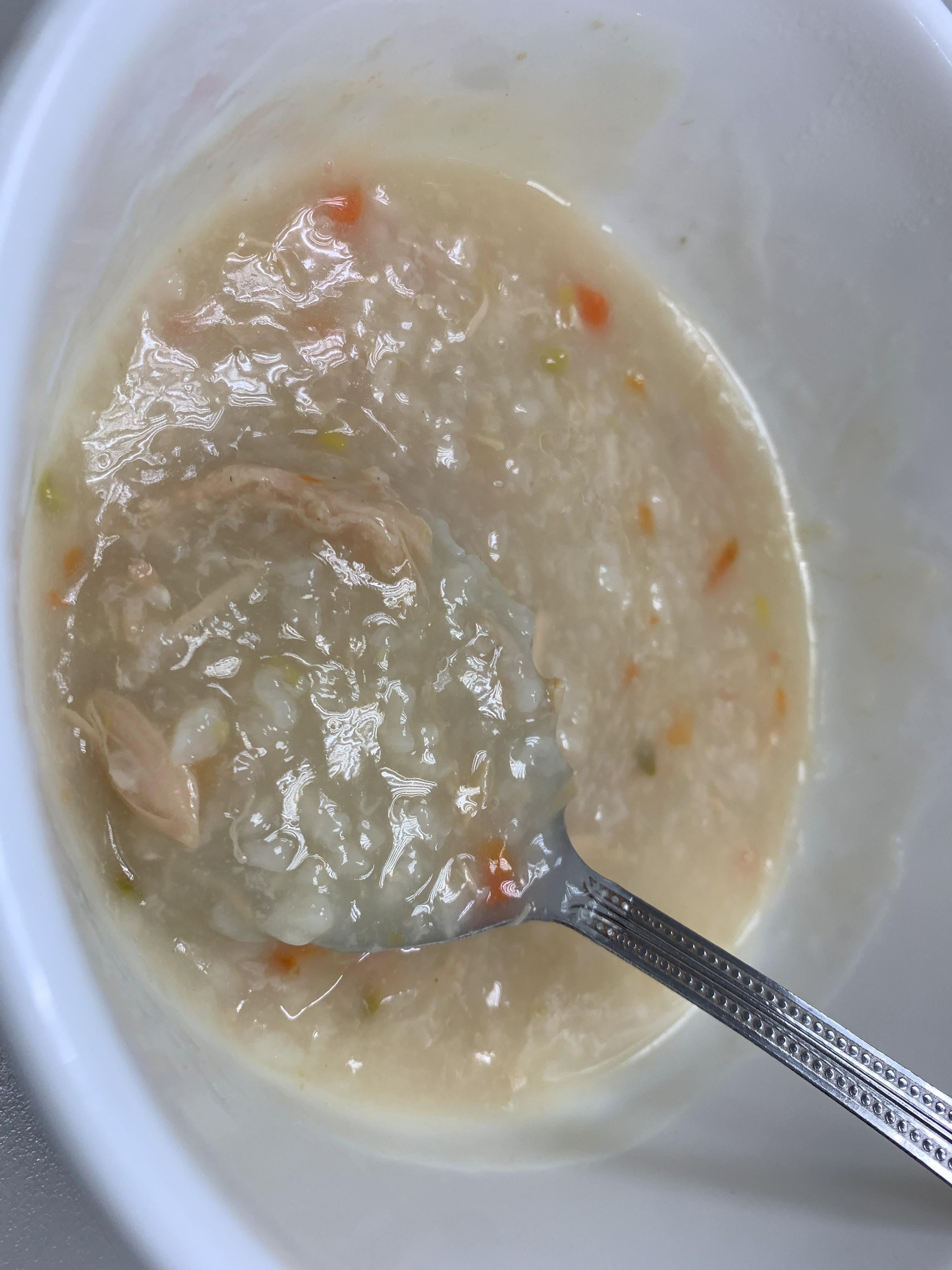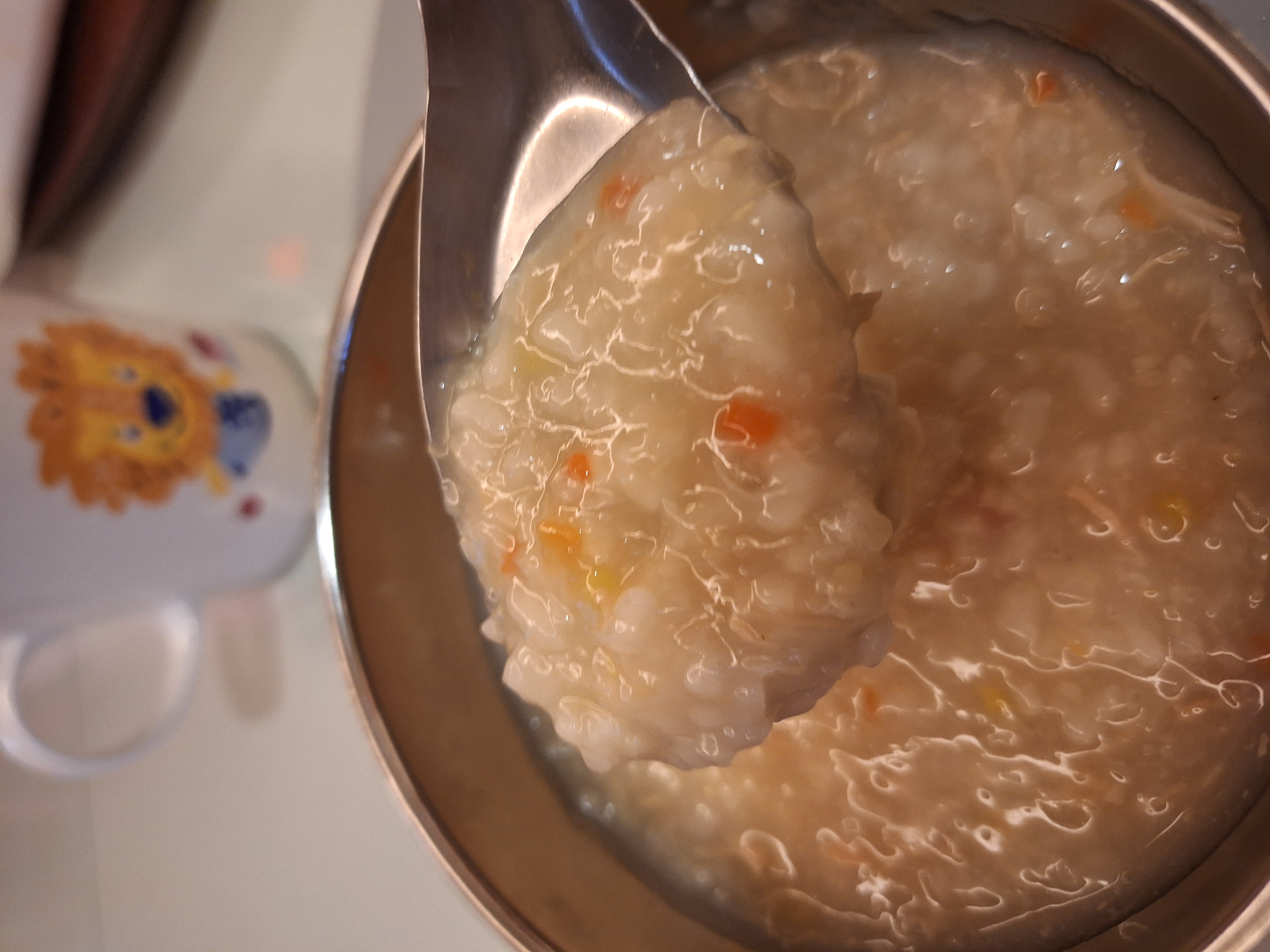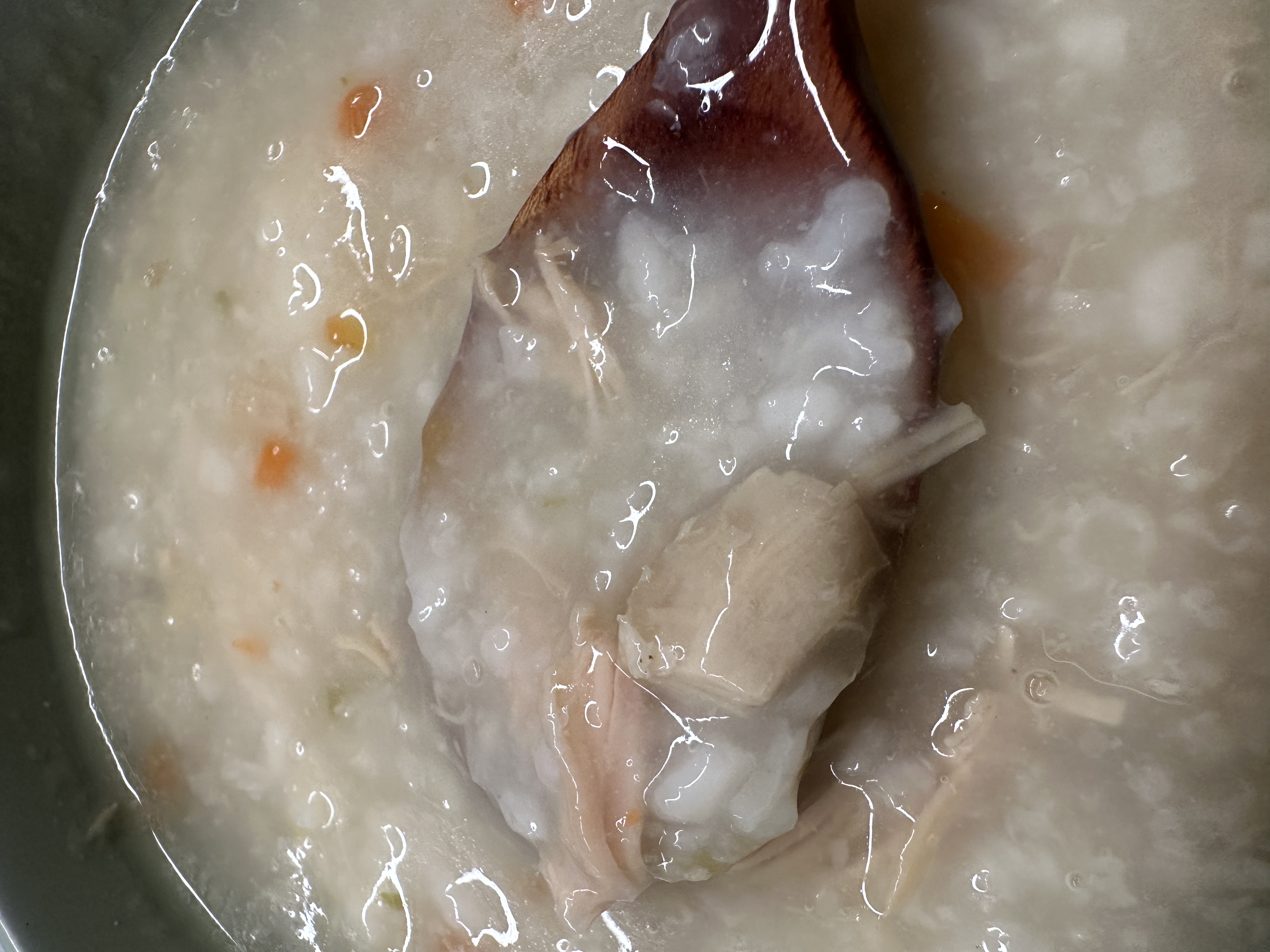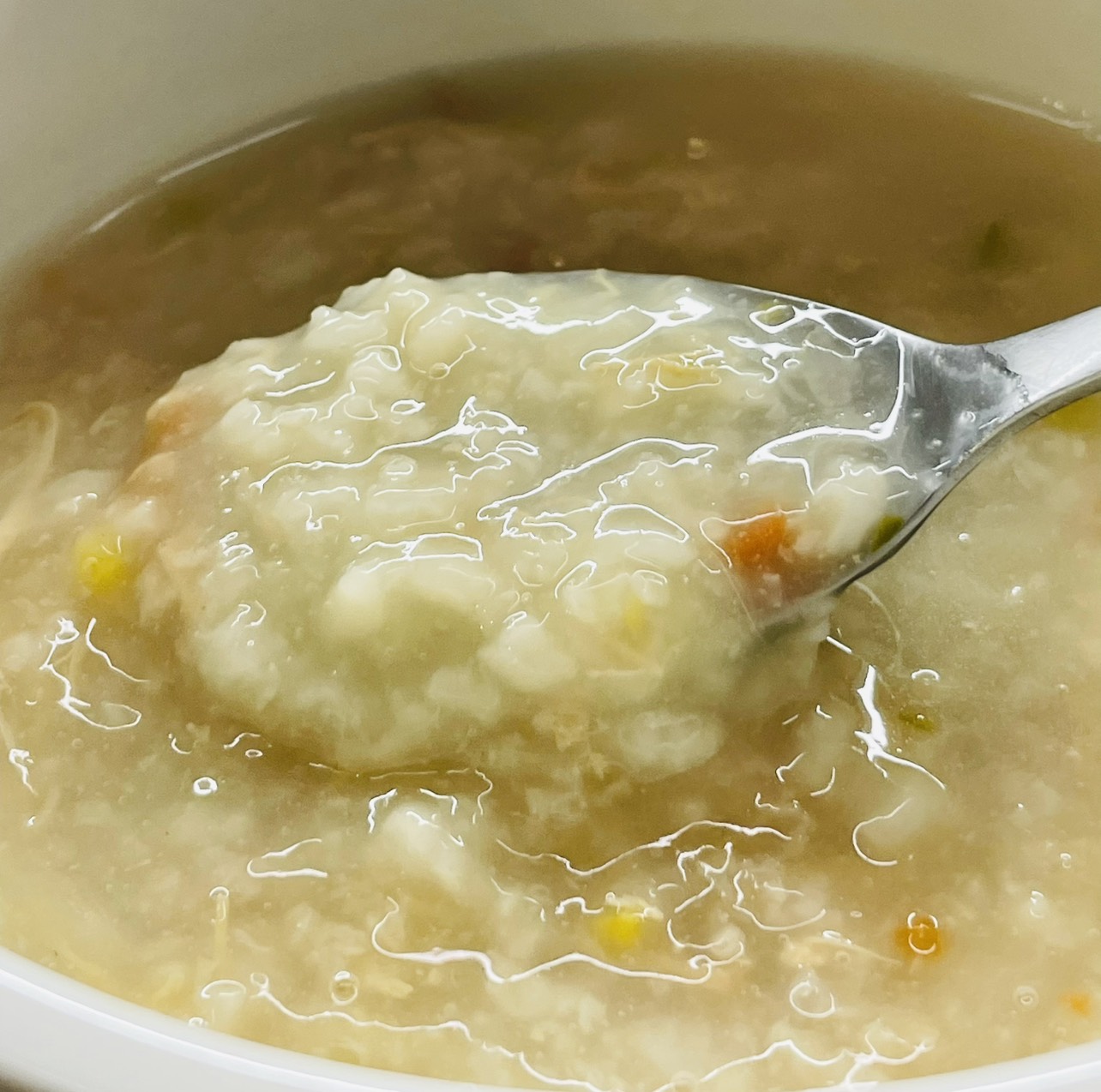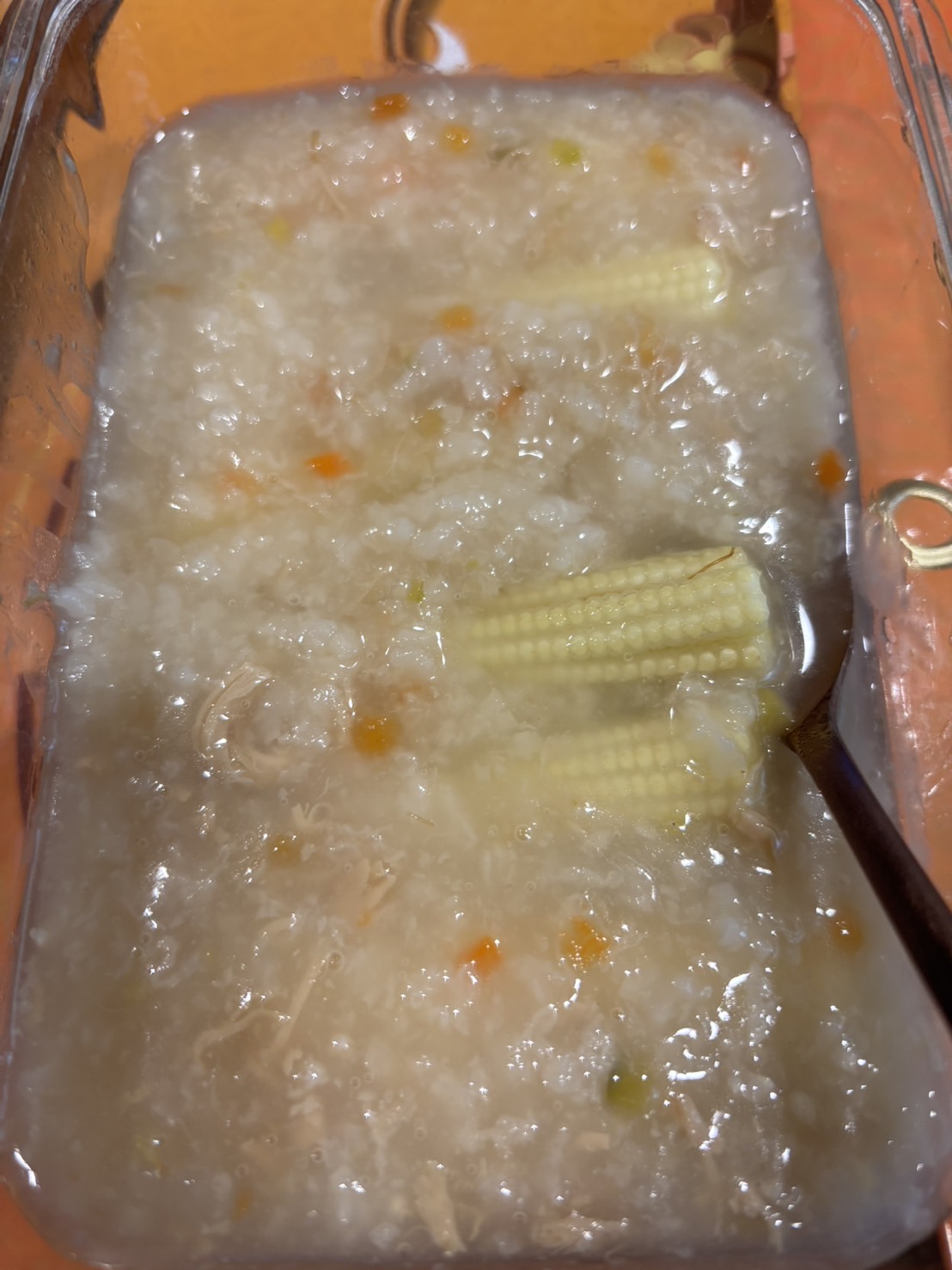 水、雞胸肉片[雞肉(雞胸肉)、鹽、糖、香菇提取物,混合劑(多磷酸鈉、焦磷酸鈉)]、米、調味玉米(鹽、玉米)、紅蘿蔔、小南瓜、糯米、混合劑(羥丙基磷酸二澱粉、麥芽糊精)、米粉、大蒜、牛骨提取物、芝麻油、醬汁(香菇提取物、鹽、糖、大豆、螃蟹、小麥)、鹽、水蔘、混合劑[丙二醇、混合劑(丙二醇、天然香料、酒精、甘油、人工香料)、甘油]、調味劑(5’-次黃嘌呤核苷磷酸二鈉、5'-鳥嘌呤核苷磷酸二鈉)