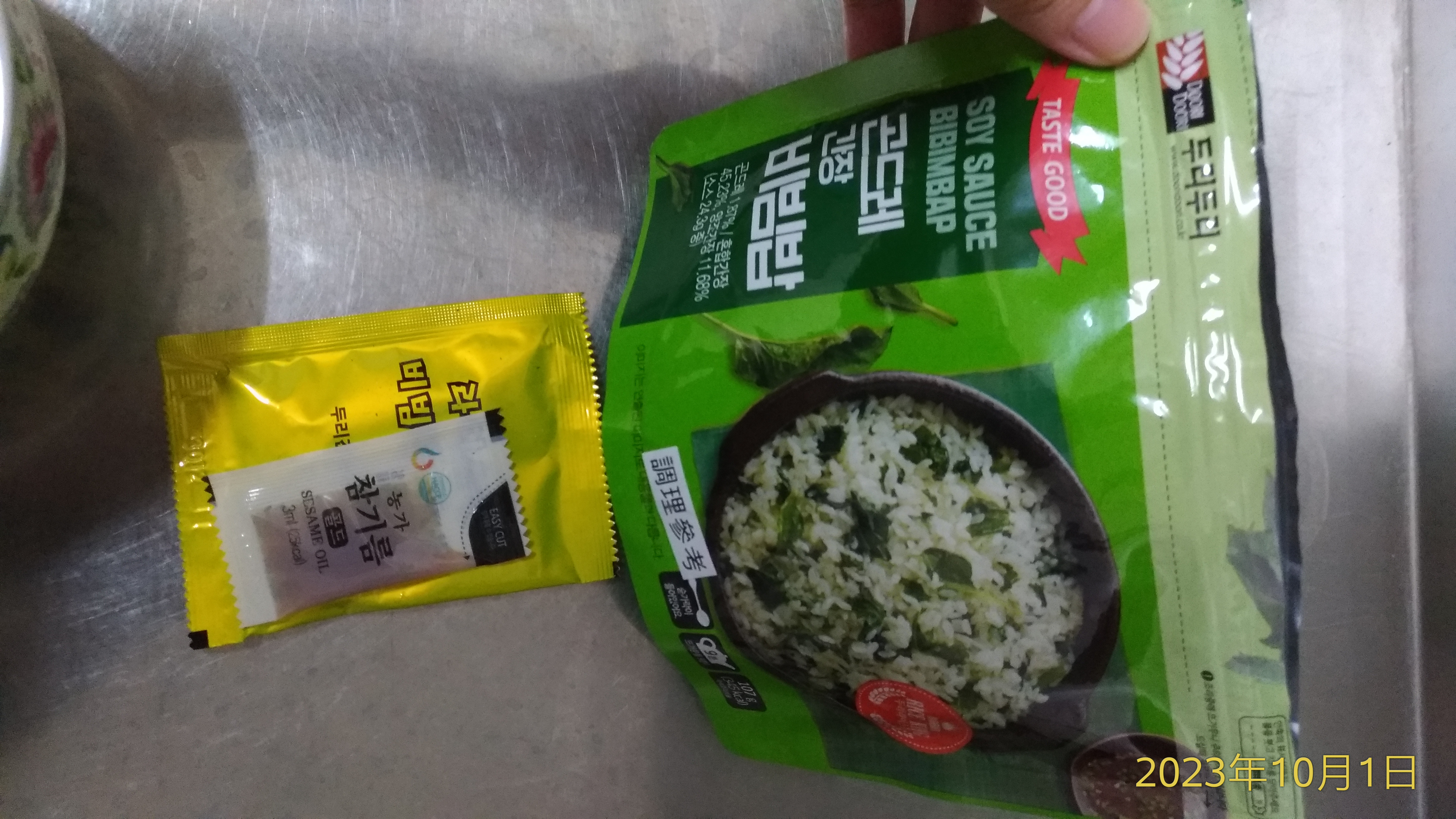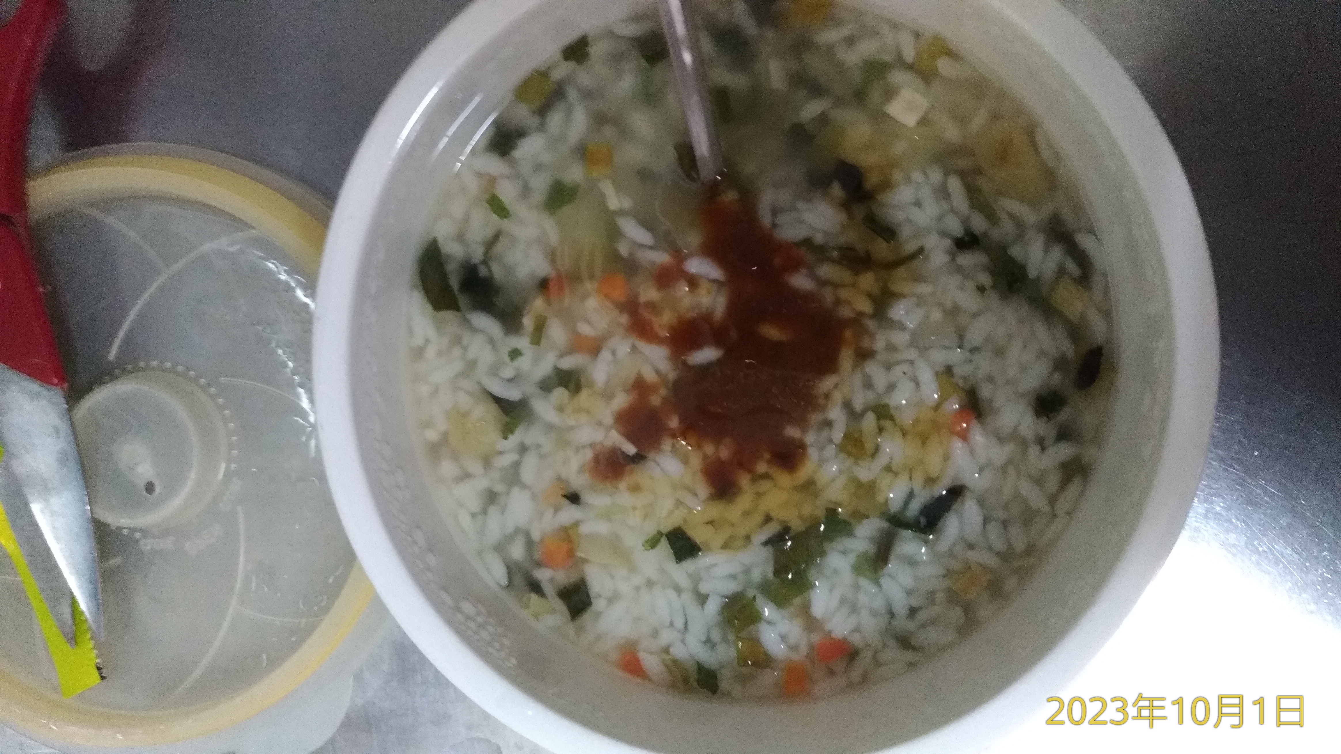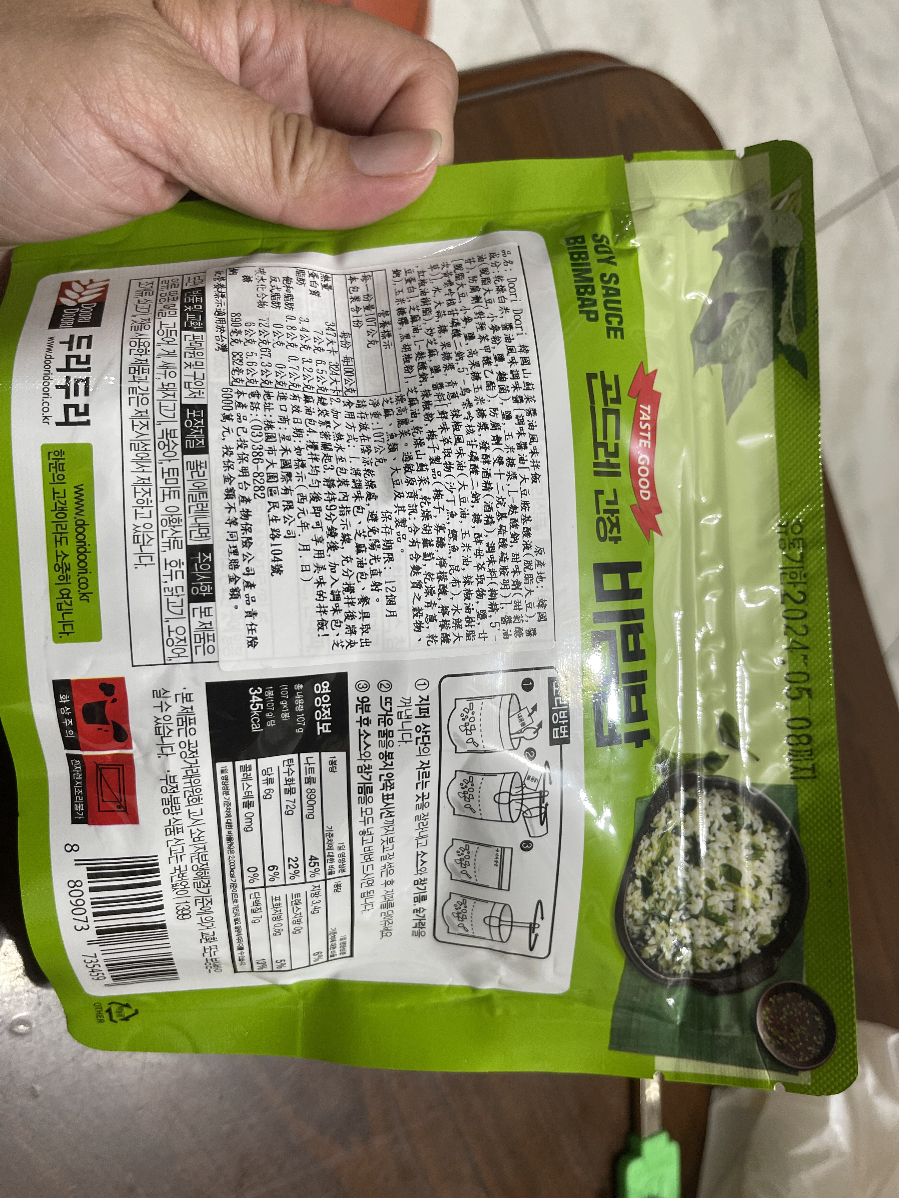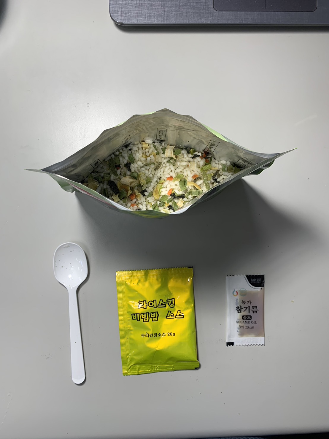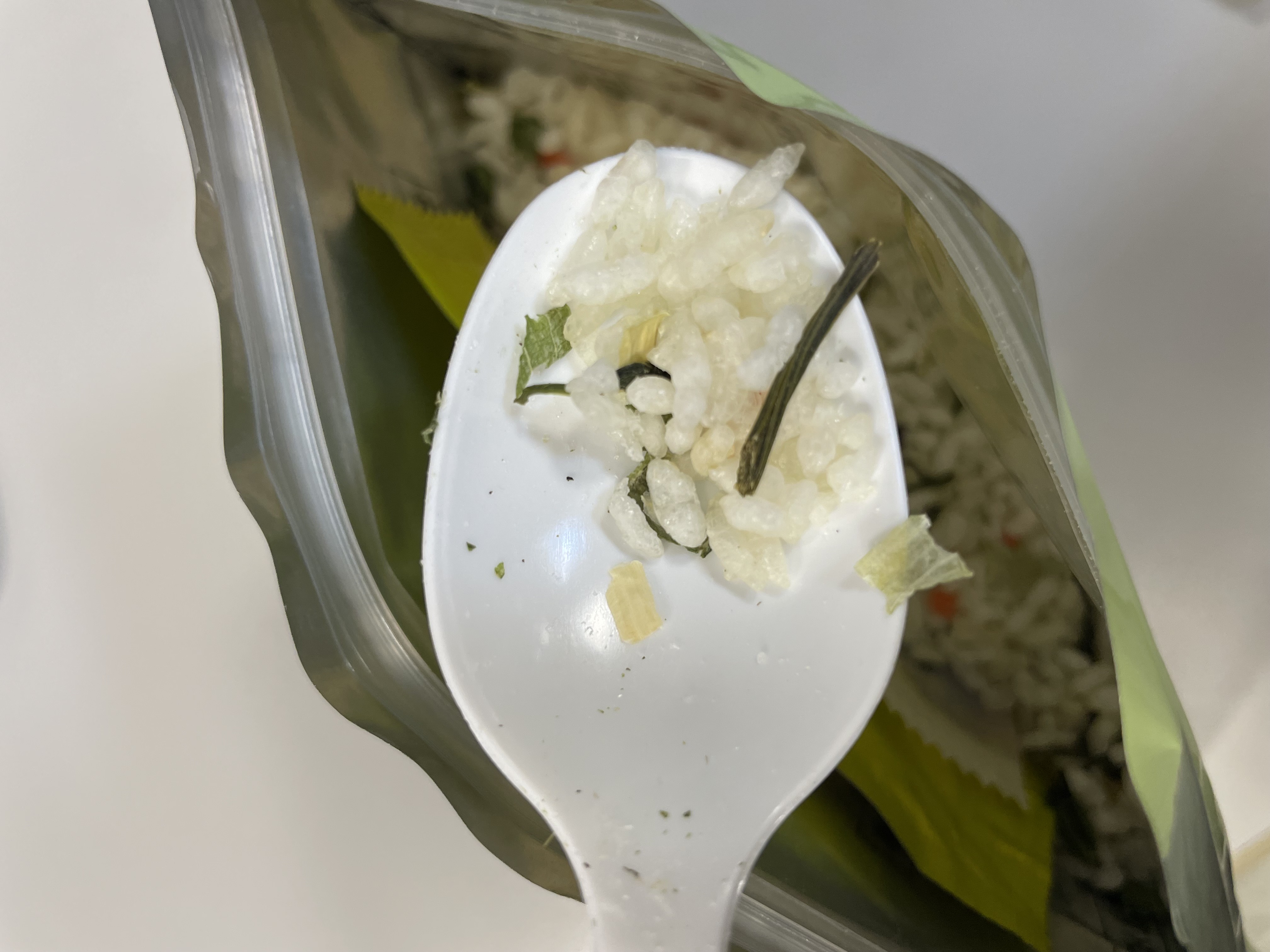 乾燥白米、醬油風味調味醬(大豆胺基酸液-脫脂大豆)、醬油(脫脂大豆,小麥粉,鹽,麴菌)、鹽、玉米糖漿、L-麩酸鈉、甜味劑(甜菊醣苷)、防腐劑(對羥苯甲酸乙酯)、防腐劑(雙十二烷基硫酸硫胺明)、醬油(脫脂大豆、小麥、鹽、高果糖玉米糖漿、發酵酒精(酒精)、調味料(糊精,5’-次黃嘌呤核苷磷酸二鈉、5’-鳥嘌呤核苷磷酸二鈉、糖、酵母萃取物、鹽、甘草)、水、大蒜、糖、果糖漿、青蔥、辣椒風味油(大豆油、玉米油、辣椒油樹脂、紅椒油樹脂)、炒芝麻、鹽、醬料(鮮味萃取物:沙丁魚、鰹魚、昆布)、水解大豆蛋白、芝麻油、L-麩酸鈉、辣椒粉、梅子製品(梅子、寡醣、檸檬酸、檸檬酸鈉)、玉米糖膠、黑胡椒粉、芝麻油、乾燥山薊菜、乾燥胡蘿蔔、乾燥青蔥、乾燥高麗菜。