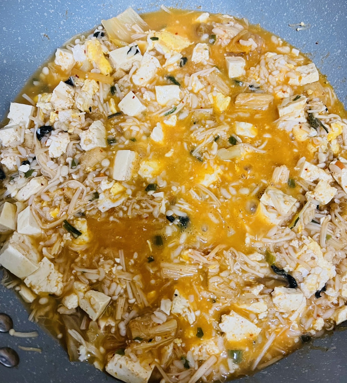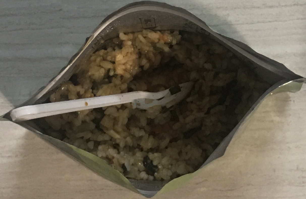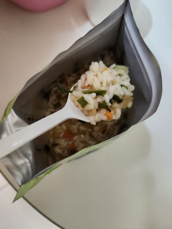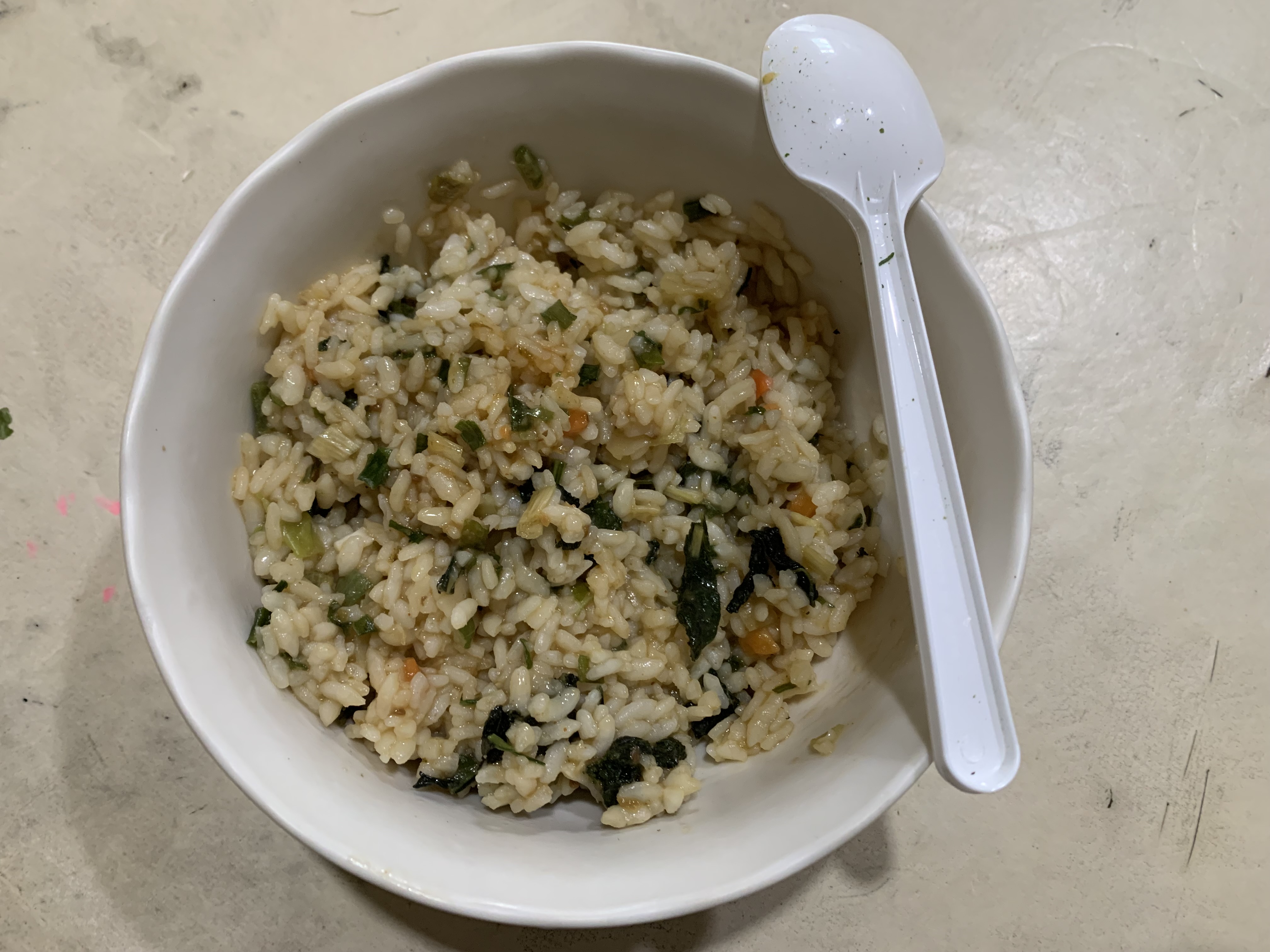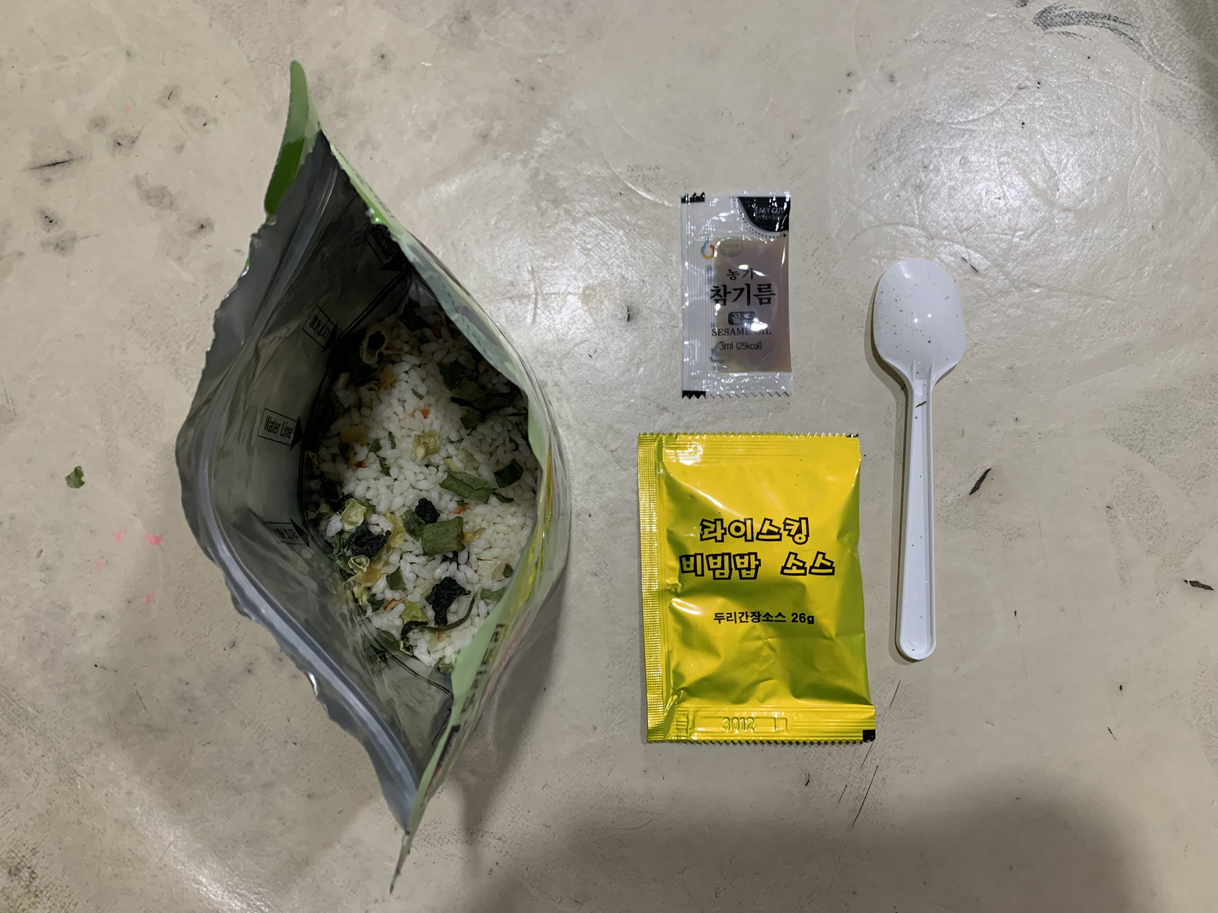 乾燥白米、醬油風味調味醬(大豆胺基酸液-脫脂大豆)、醬油(脫脂大豆,小麥粉,鹽,麴菌)、鹽、玉米糖漿、L-麩酸鈉、甜味劑(甜菊醣苷)、防腐劑(對羥苯甲酸乙酯)、防腐劑(雙十二烷基硫酸硫胺明)、醬油(脫脂大豆、小麥、鹽、高果糖玉米糖漿、發酵酒精(酒精)、調味料(糊精,5’-次黃嘌呤核苷磷酸二鈉、5’-鳥嘌呤核苷磷酸二鈉、糖、酵母萃取物、鹽、甘草)、水、大蒜、糖、果糖漿、青蔥、辣椒風味油(大豆油、玉米油、辣椒油樹脂、紅椒油樹脂)、炒芝麻、鹽、醬料(鮮味萃取物:沙丁魚、鰹魚、昆布)、水解大豆蛋白、芝麻油、L-麩酸鈉、辣椒粉、梅子製品(梅子、寡醣、檸檬酸、檸檬酸鈉)、玉米糖膠、黑胡椒粉、芝麻油、乾燥山薊菜、乾燥胡蘿蔔、乾燥青蔥、乾燥高麗菜。
